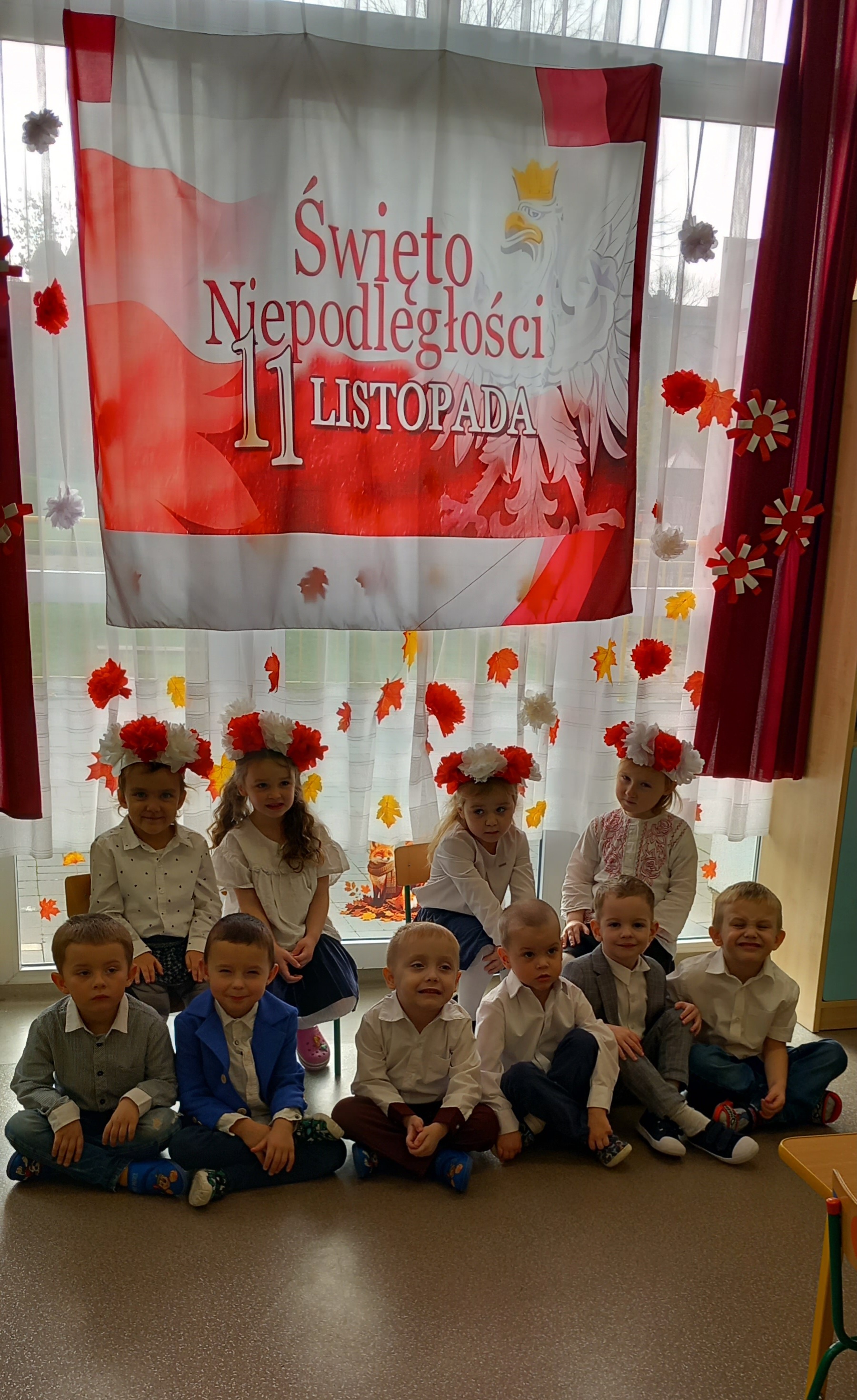 Z tej okazji odbyła się uroczysta akademia, podczas której wspólnie zaśpiewaliśmy Hymn Polski oraz każda z grup zaprezentowała krótki występ patriotyczny.