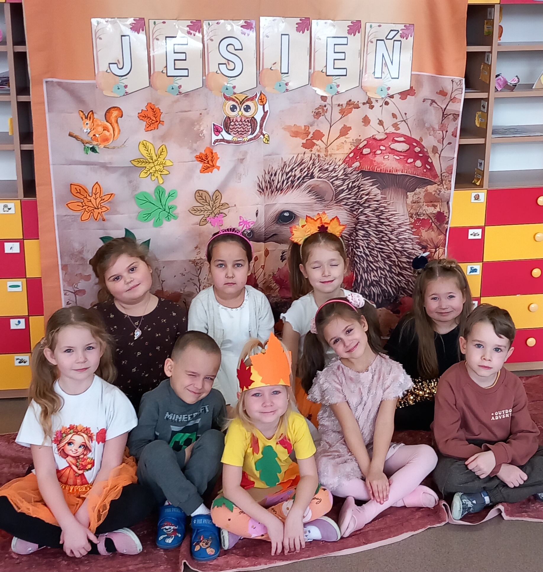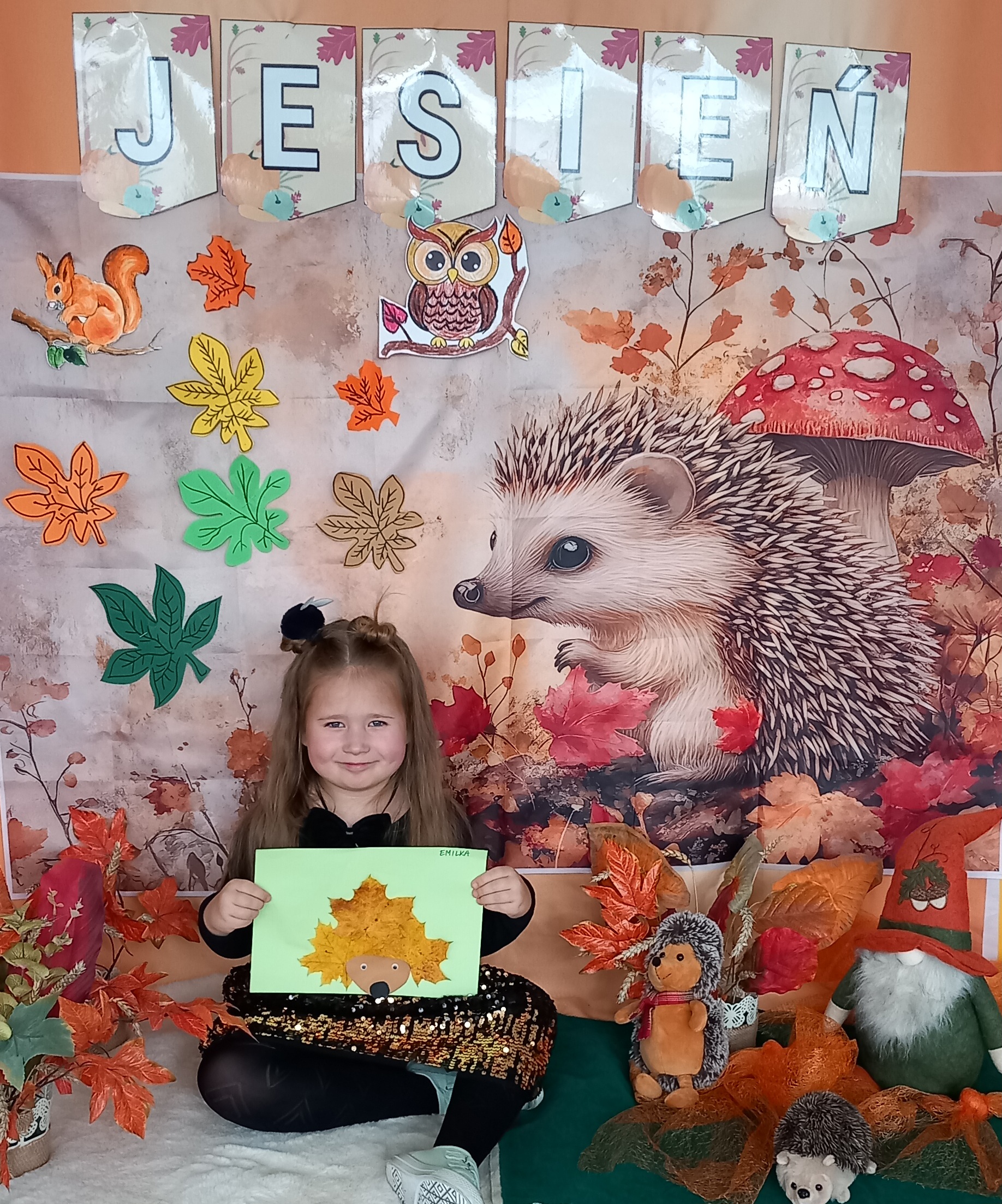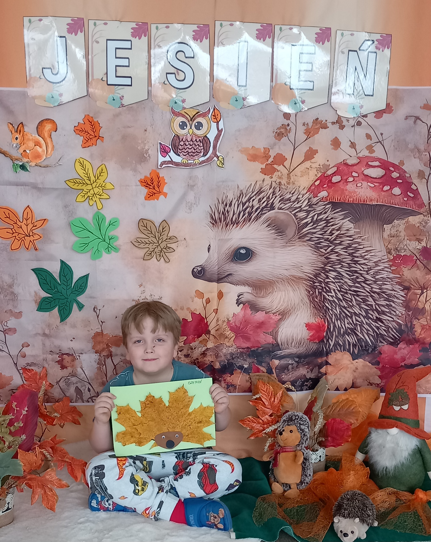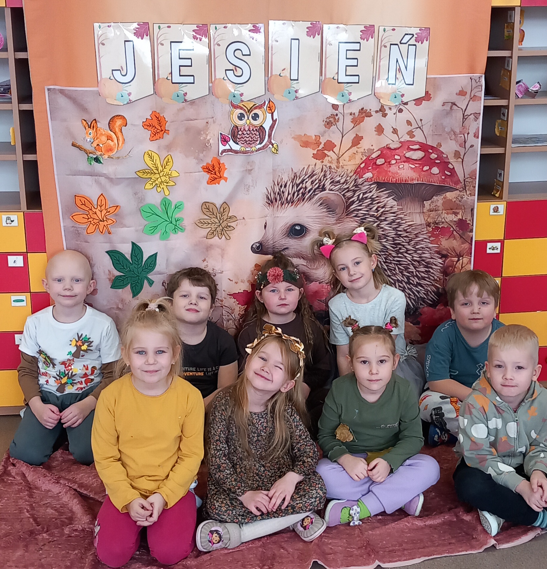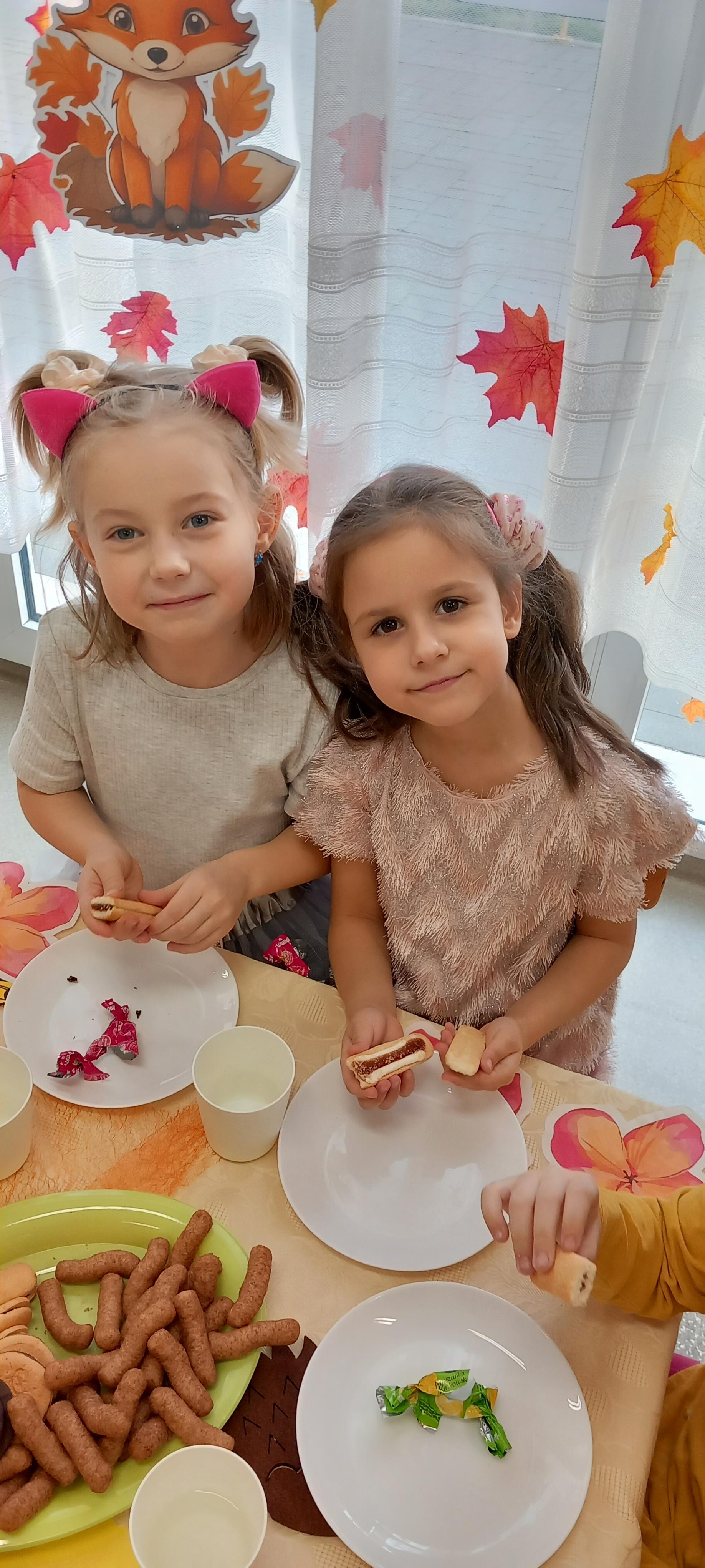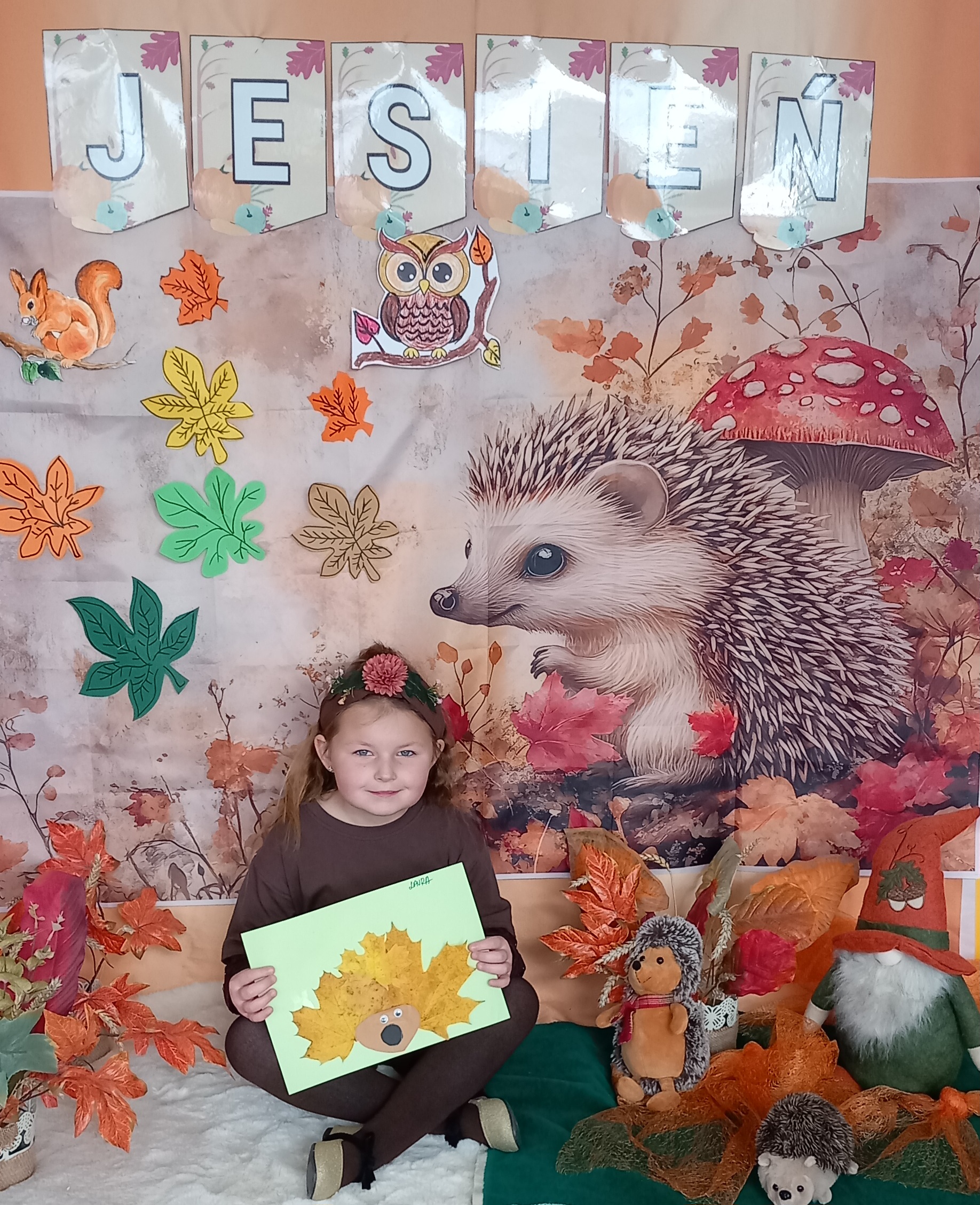 Wspólnie ułożyliśmy opowiadanie do historyjki obrazkowej ,,O tym jak krasnal się do zimy szykował ", były zabawy ruchowe, jesienna gimnastyka buzi i języka, konkursy, słodki poczęstunek oraz sesja zdjęciowa na pamiątkę.