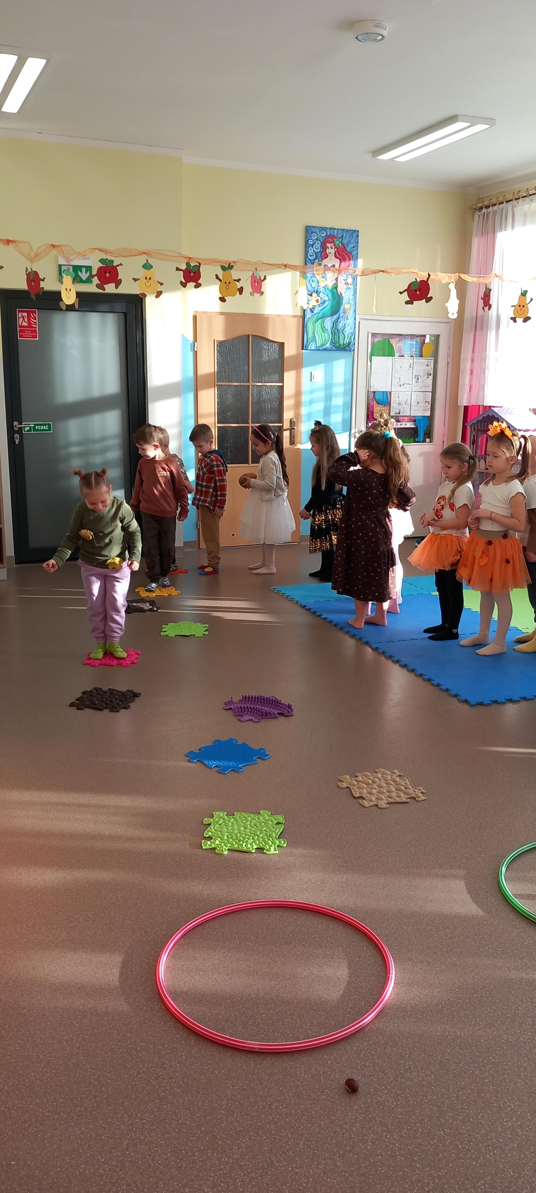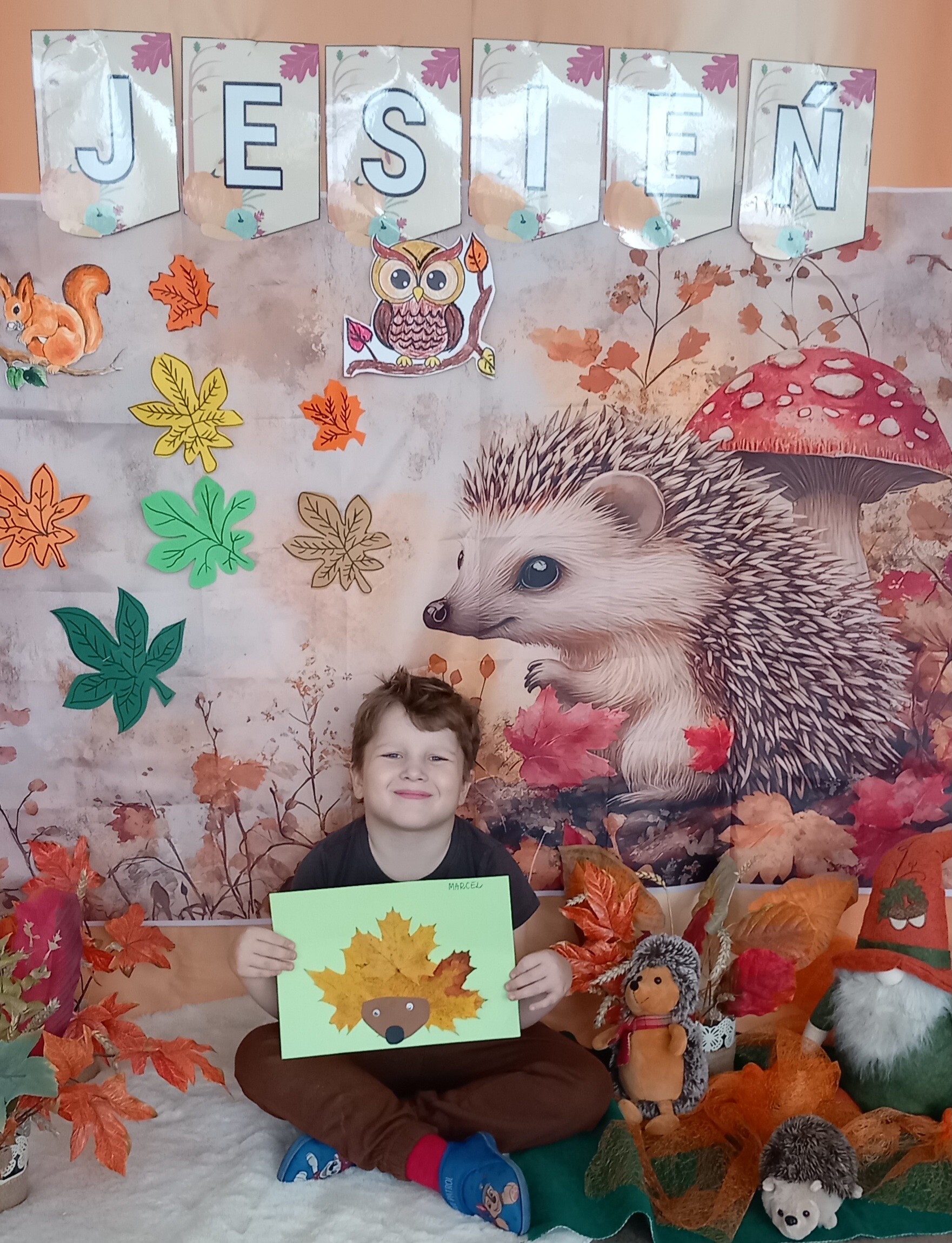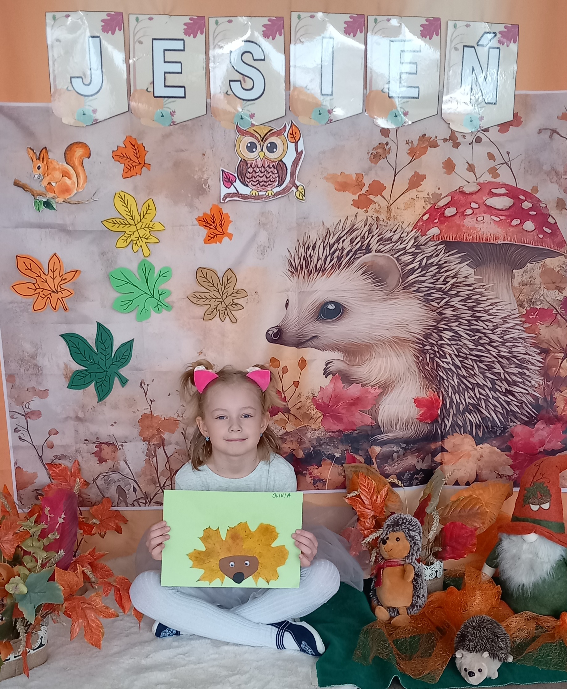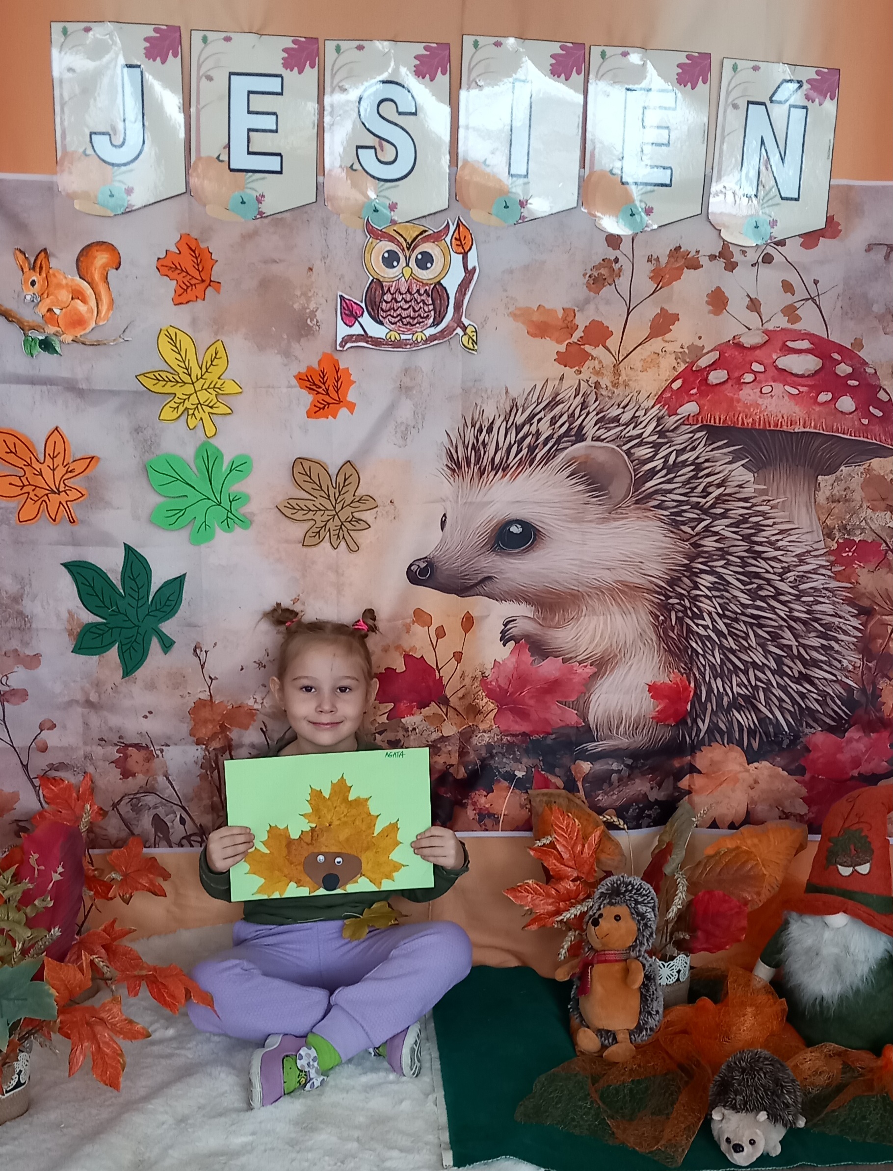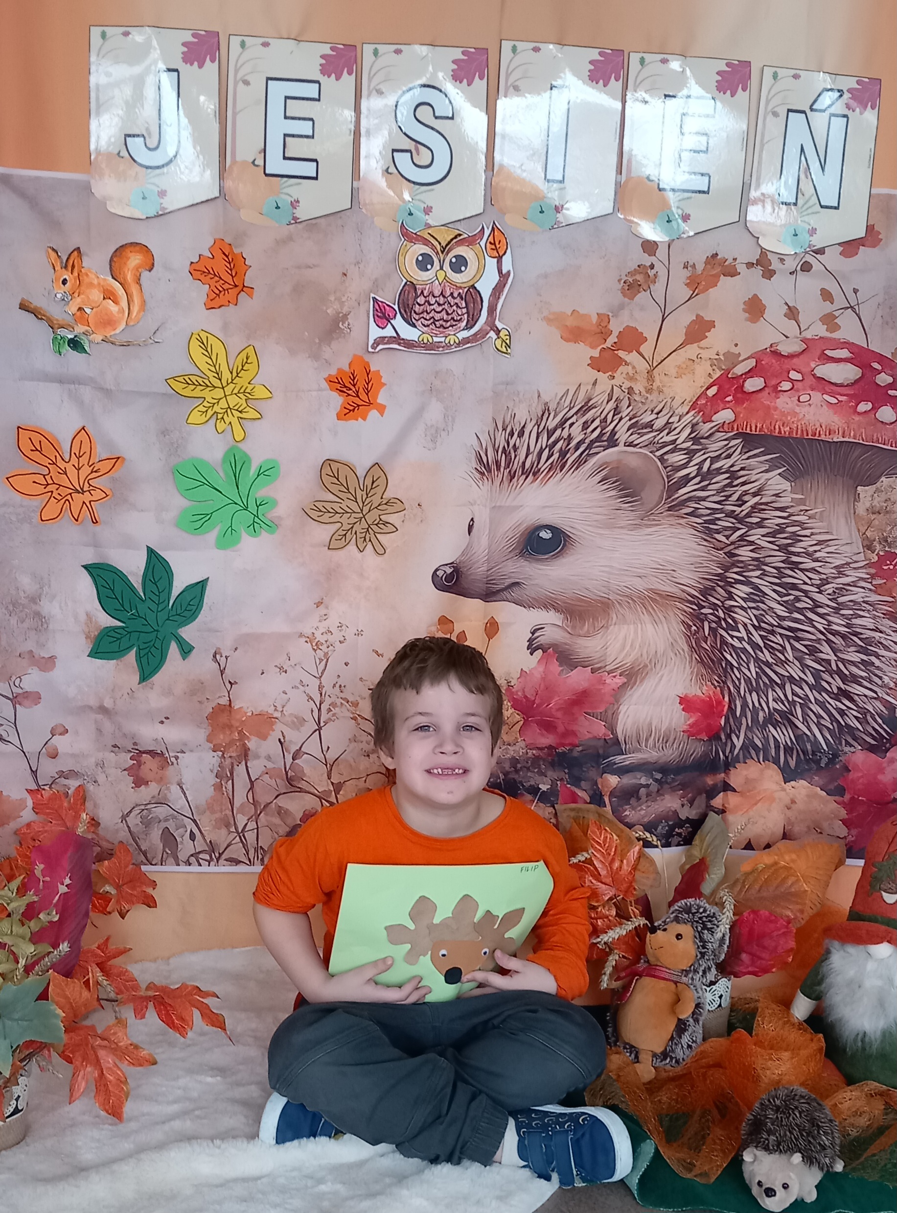Wspólnie ułożyliśmy opowiadanie do historyjki obrazkowej ,,O tym jak krasnal się do zimy szykował ", były zabawy ruchowe, jesienna gimnastyka buzi i języka, konkursy, słodki poczęstunek oraz sesja zdjęciowa na pamiątkę.