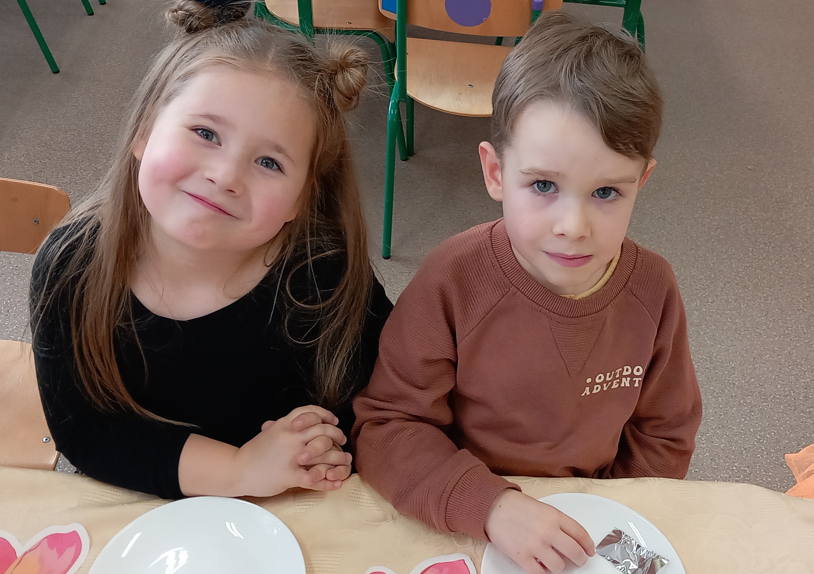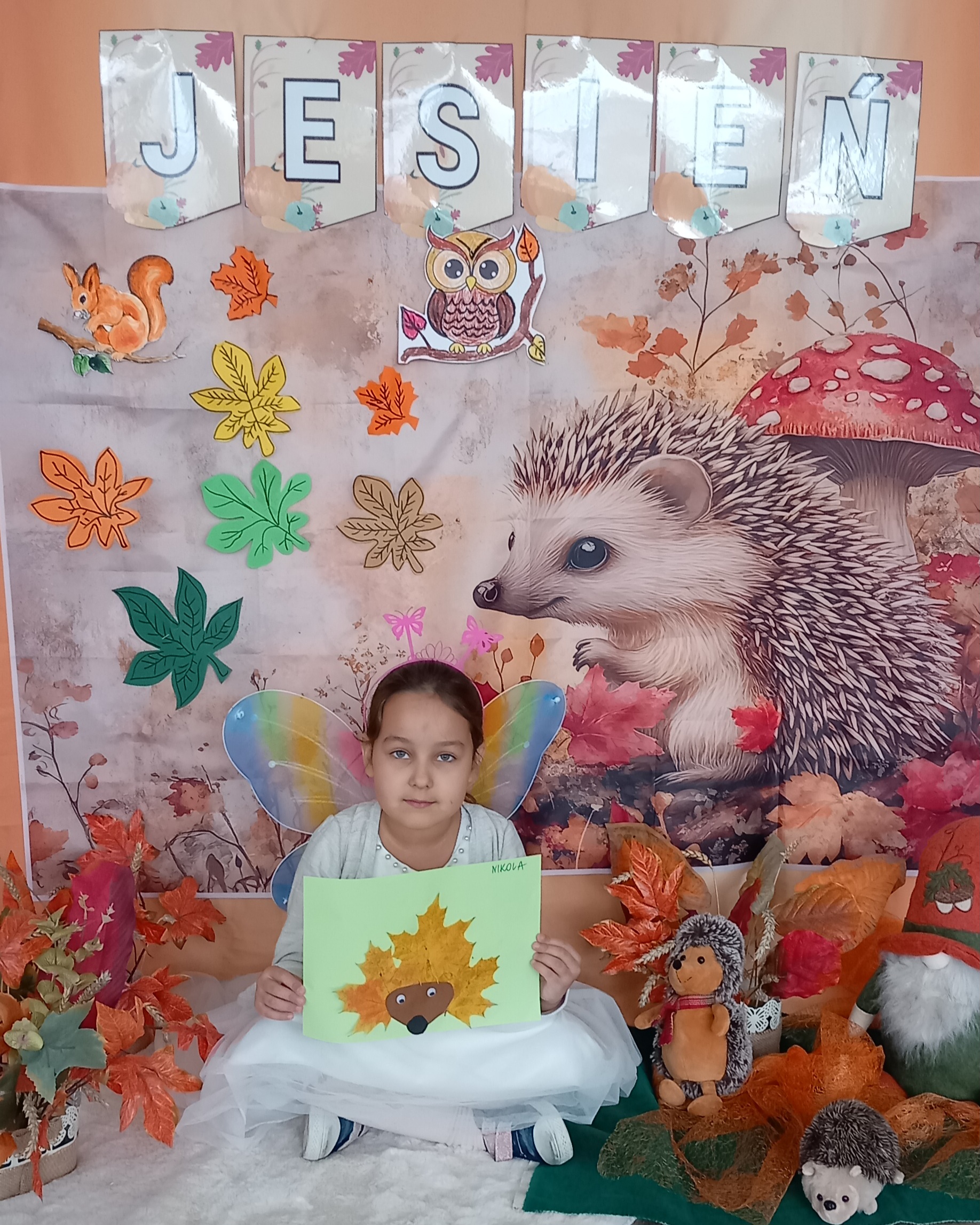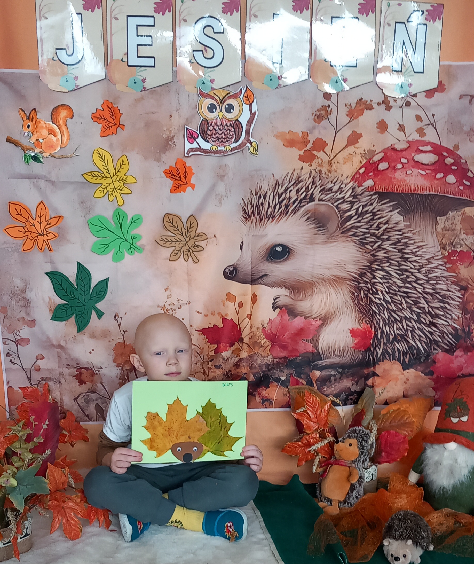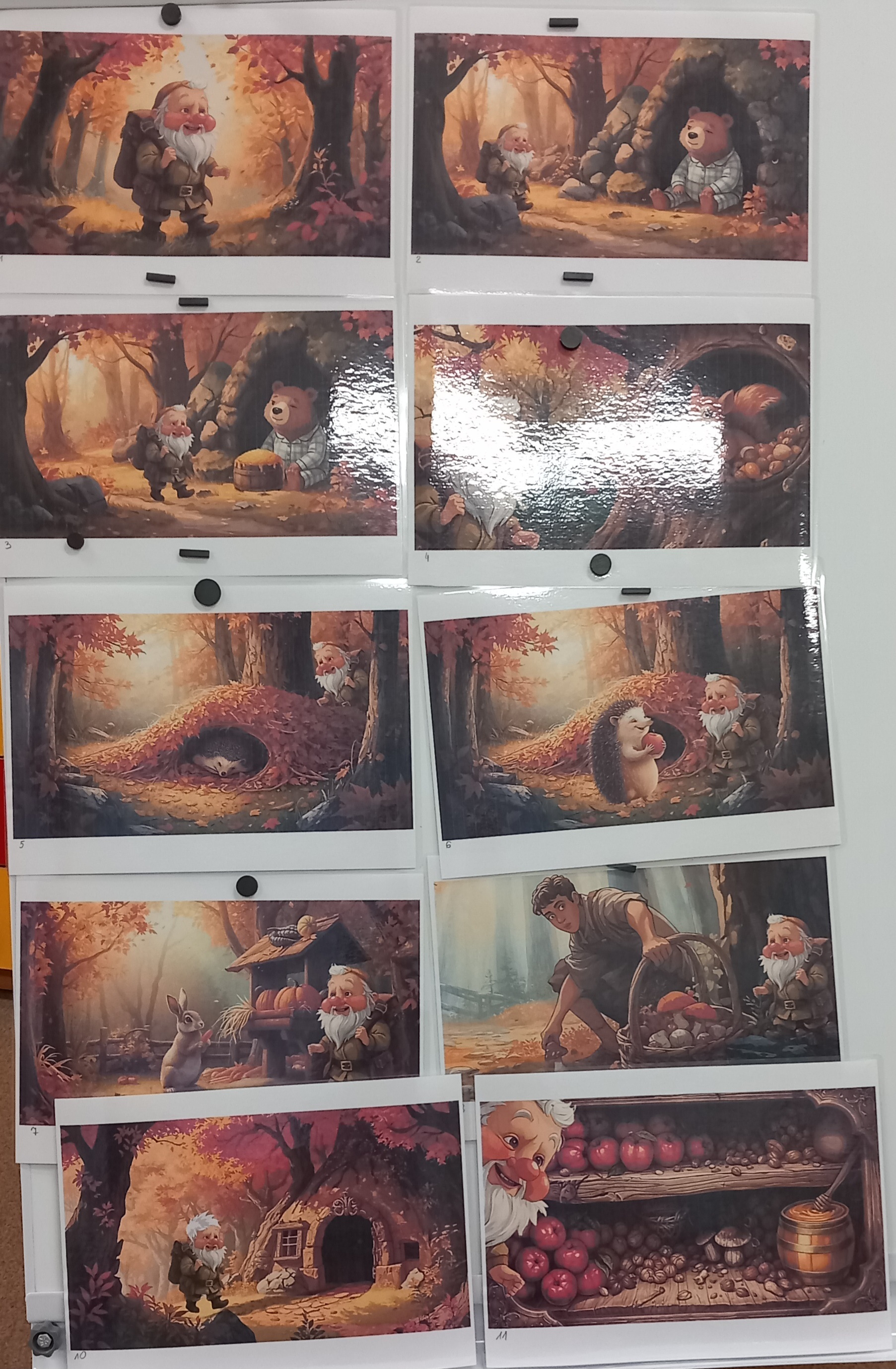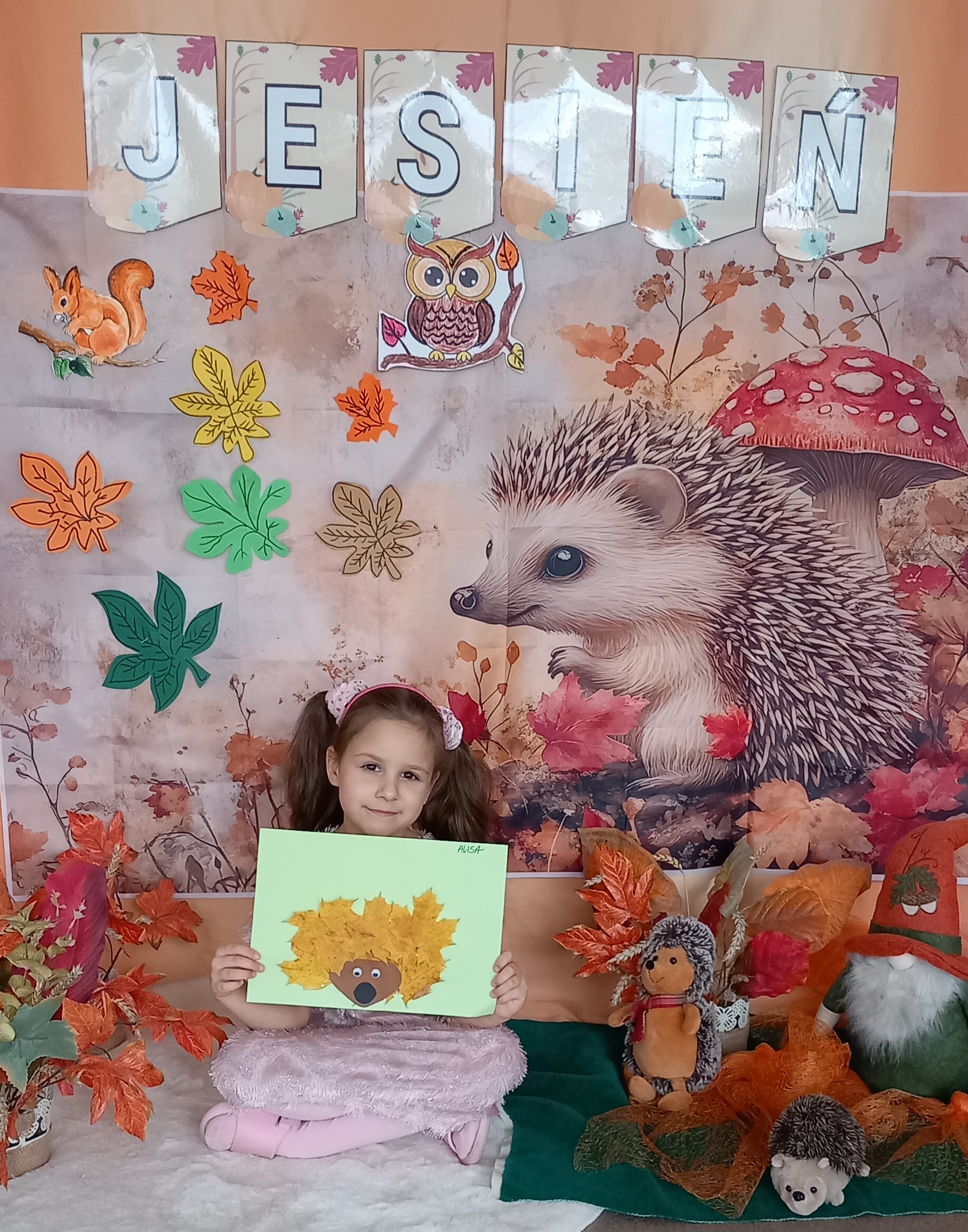 Wspólnie ułożyliśmy opowiadanie do historyjki obrazkowej ,,O tym jak krasnal się do zimy szykował ", były zabawy ruchowe, jesienna gimnastyka buzi i języka, konkursy, słodki poczęstunek oraz sesja zdjęciowa na pamiątkę.