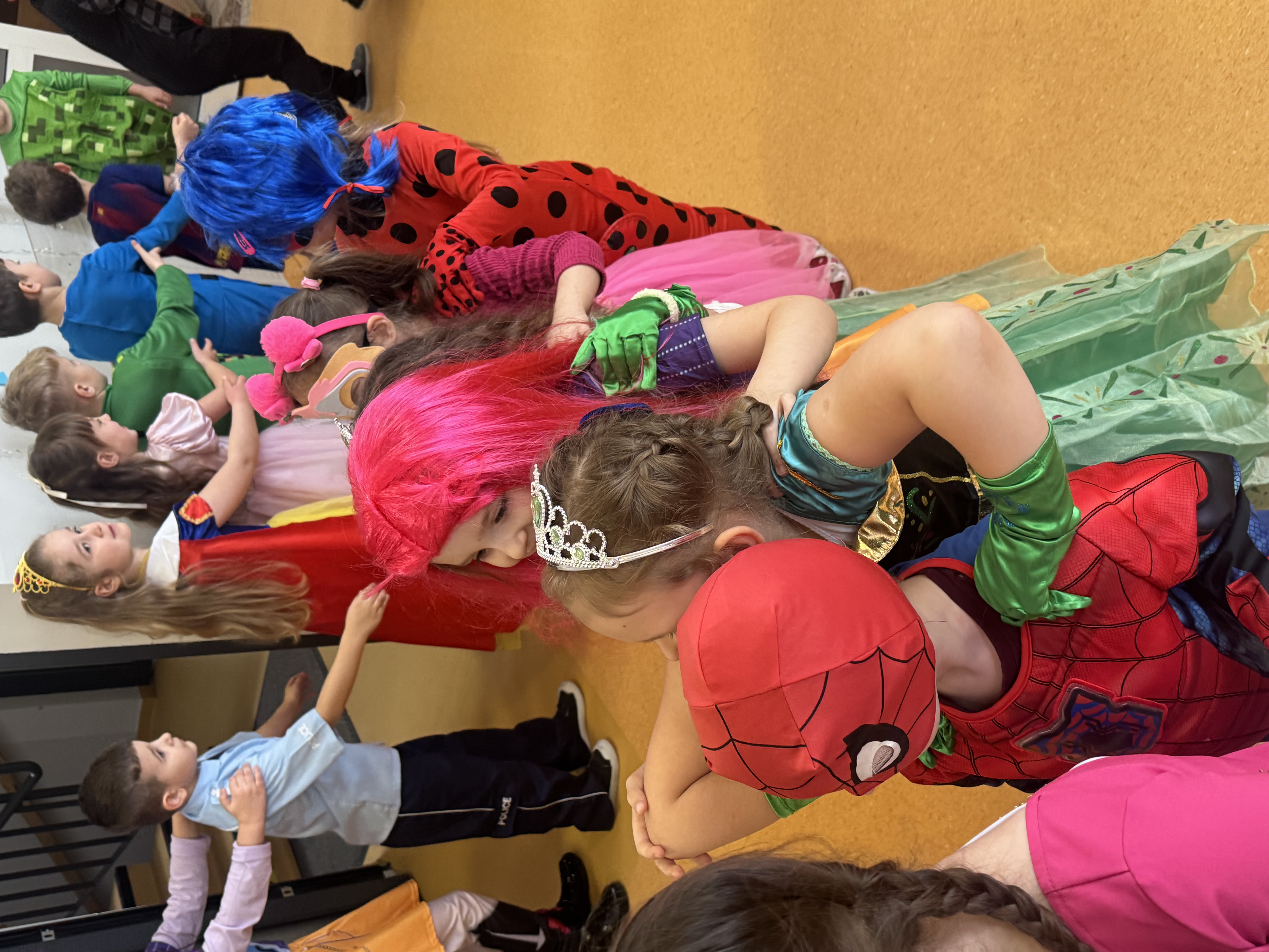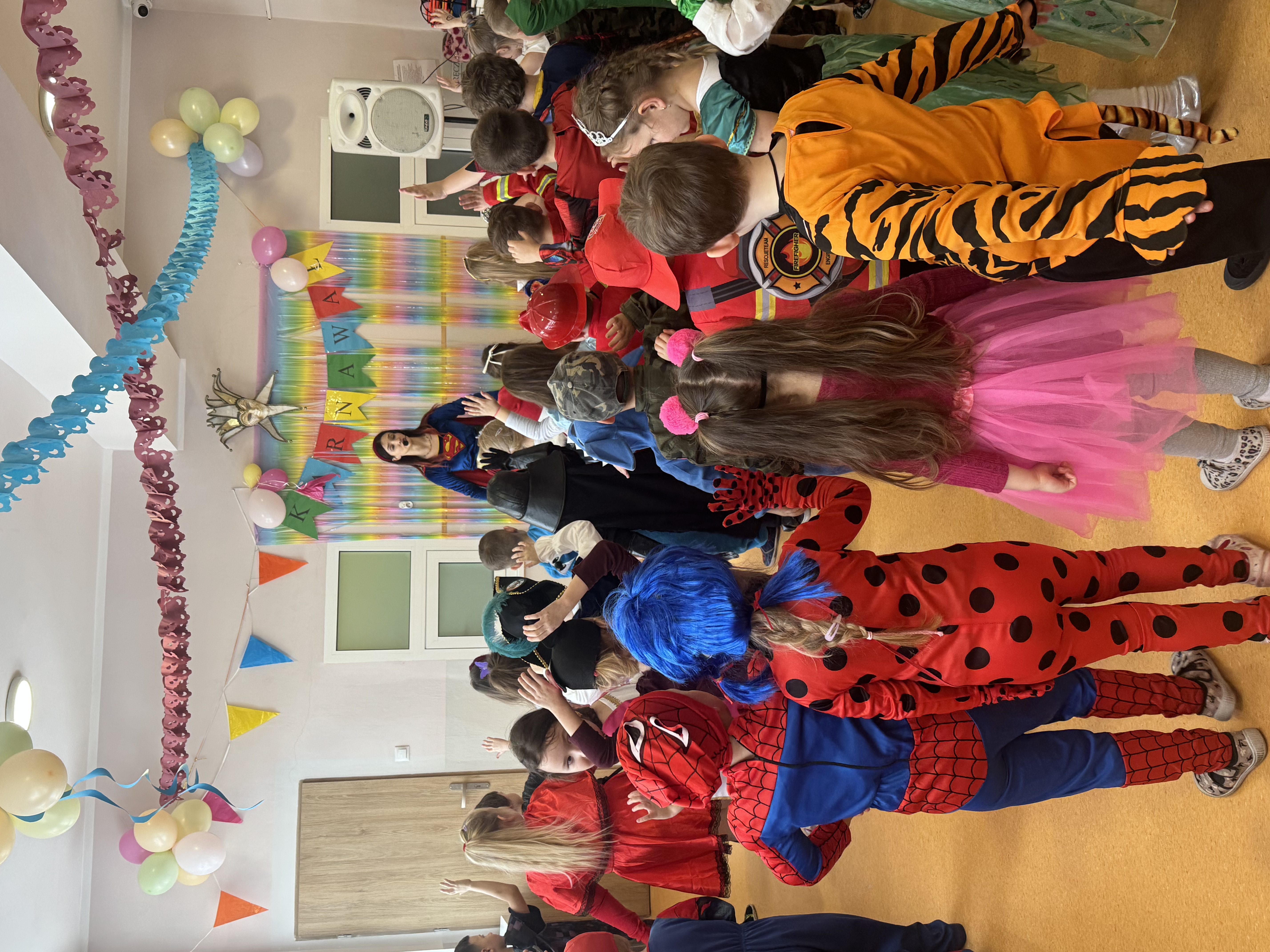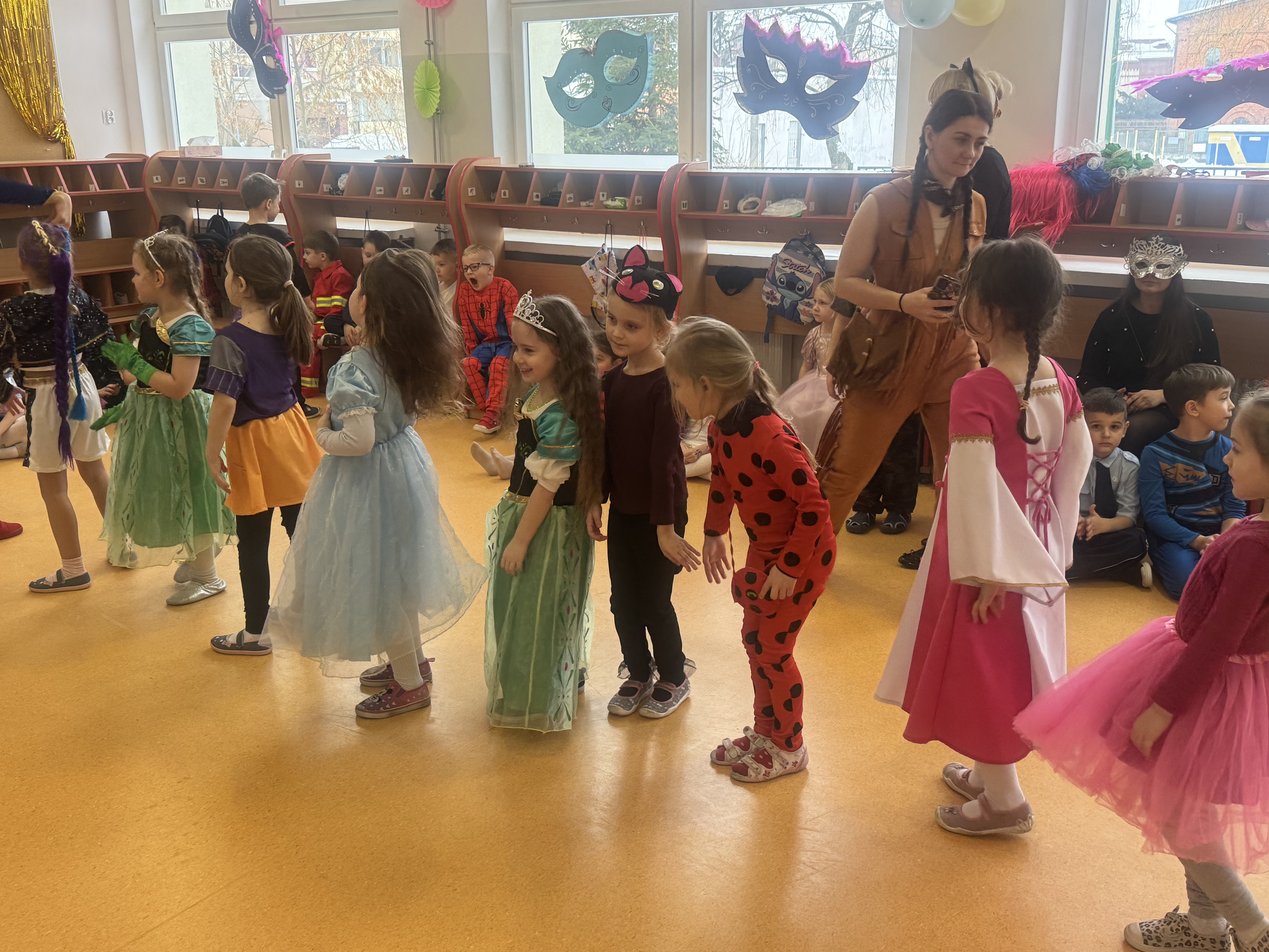 W piątek 6 lutego w naszym przedszkolu odbył się radosny bal karnawałowy. Dzieci przyszły w kolorowych, pomysłowych przebraniach i wspólnie bawiły się przy muzyce oraz tańcach. Nie zabrakło także poczęstunku, który sprawił dzieciom wiele radości. Bal dostarczył wszystkim mnóstwo uśmiechu i niezapomnianych wrażeń.