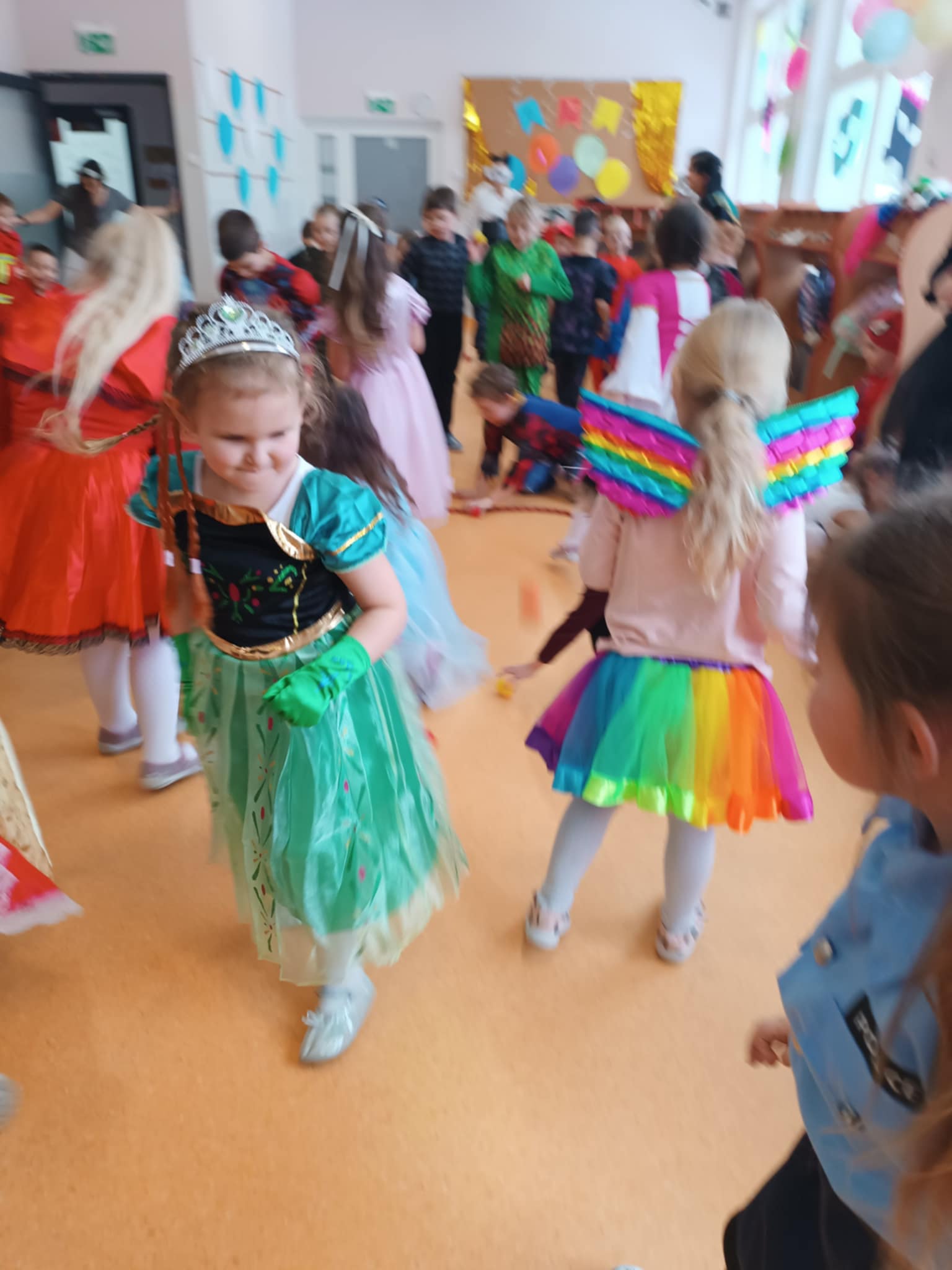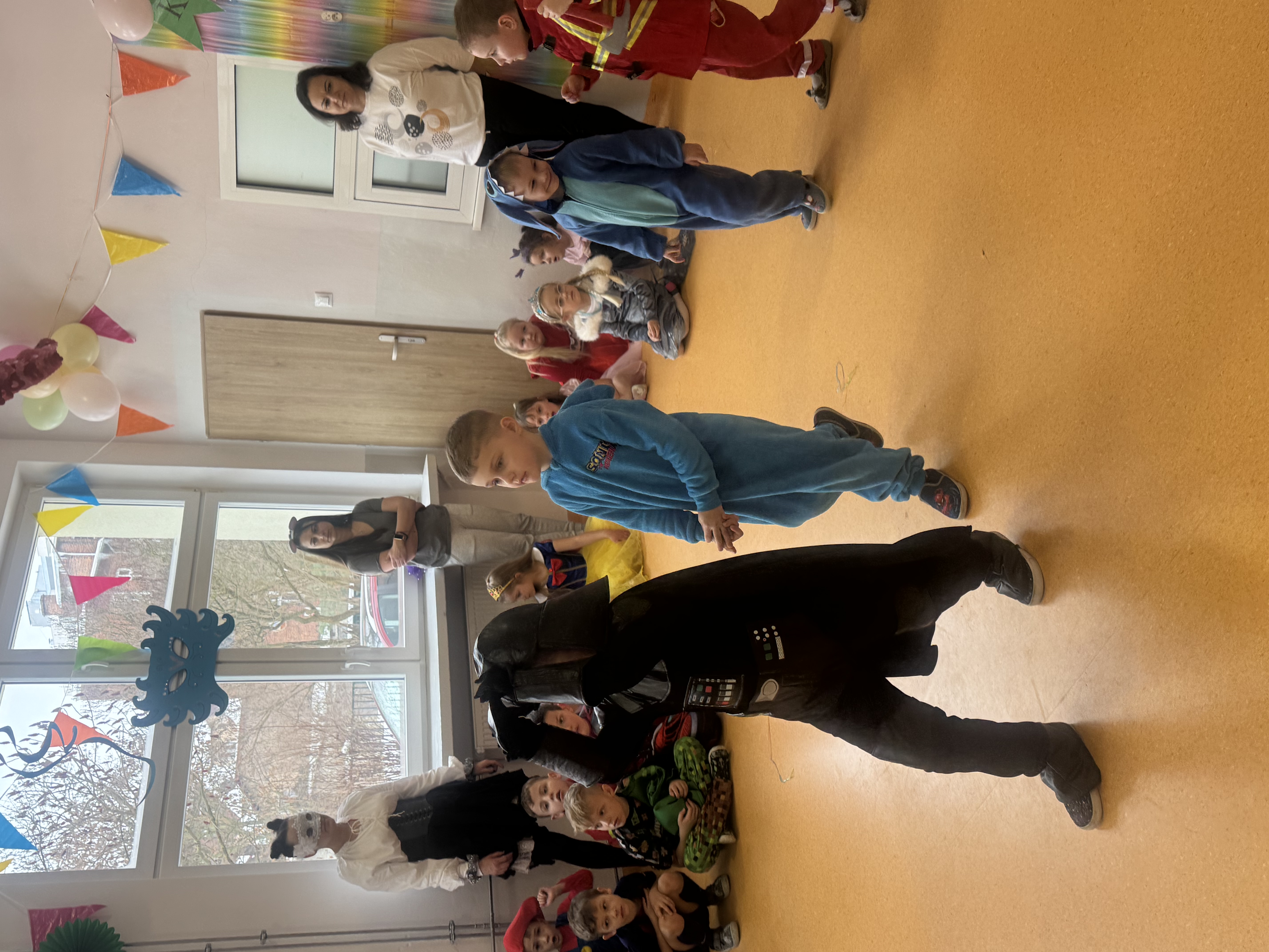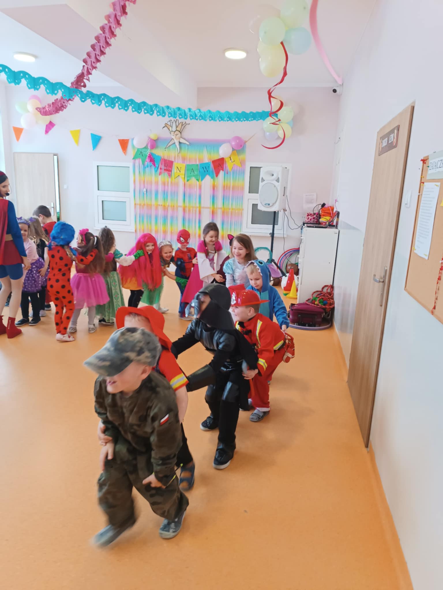 W piątek 6 lutego w naszym przedszkolu odbył się radosny bal karnawałowy. Dzieci przyszły w kolorowych, pomysłowych przebraniach i wspólnie bawiły się przy muzyce oraz tańcach. Nie zabrakło także poczęstunku, który sprawił dzieciom wiele radości. Bal dostarczył wszystkim mnóstwo uśmiechu i niezapomnianych wrażeń.