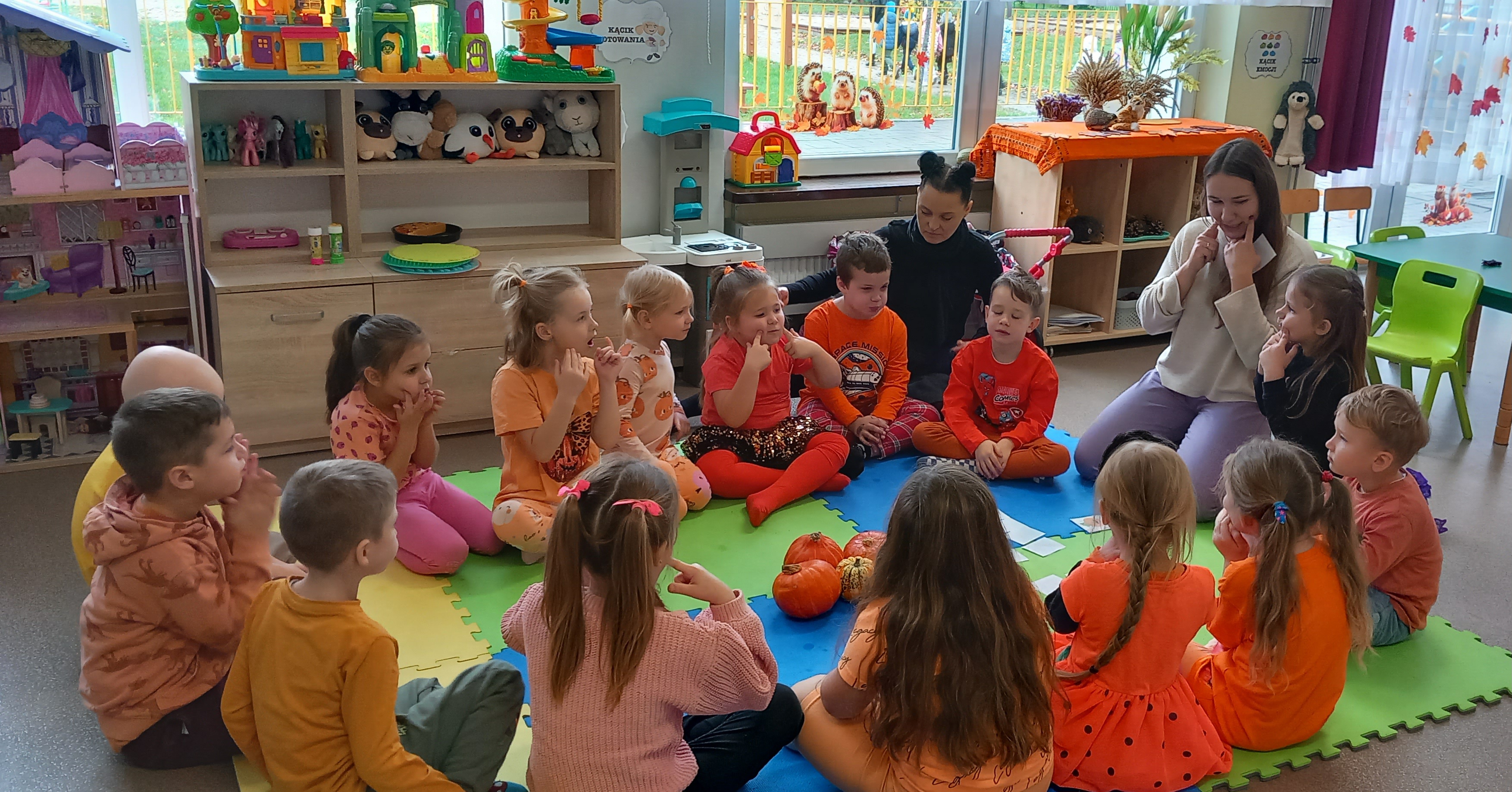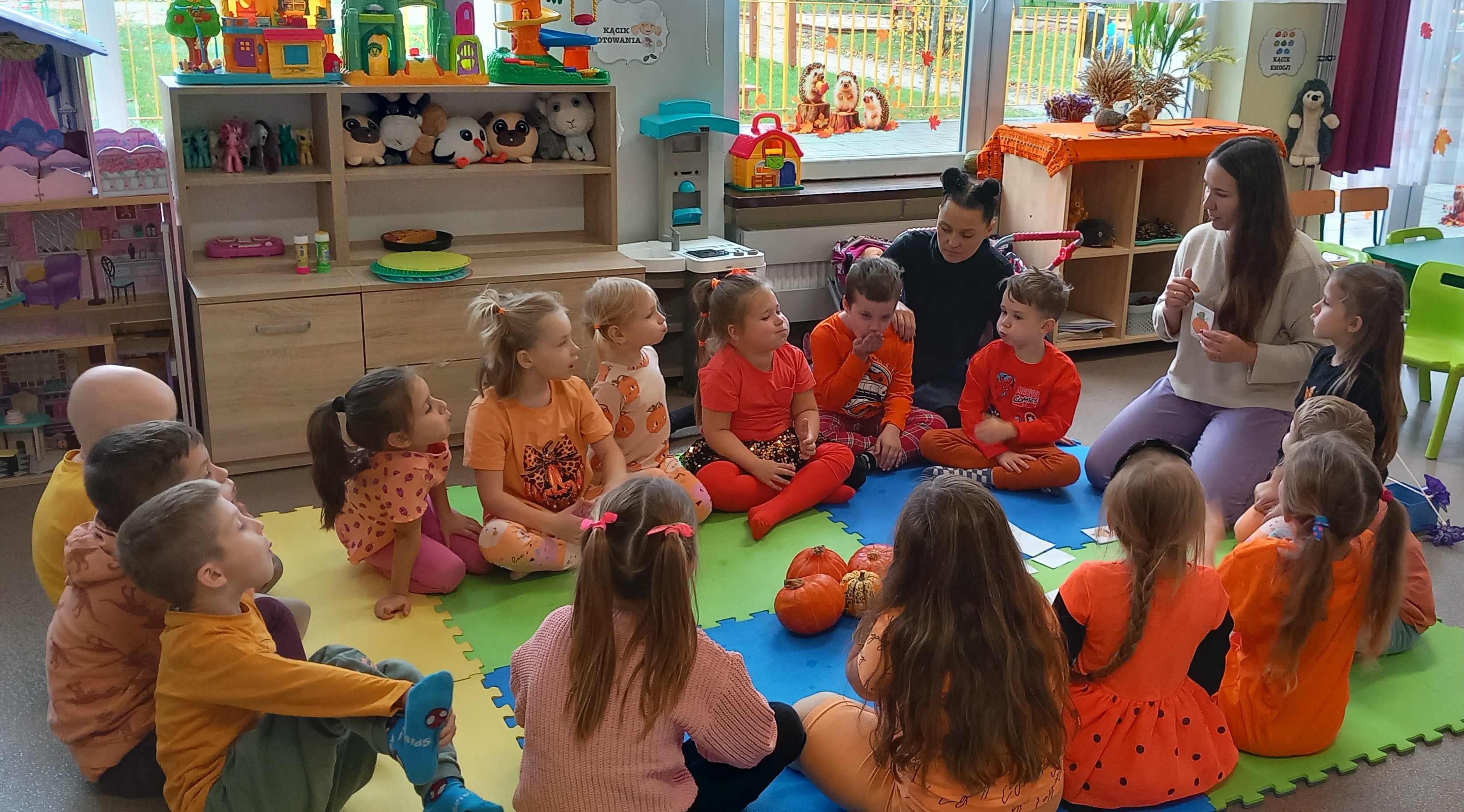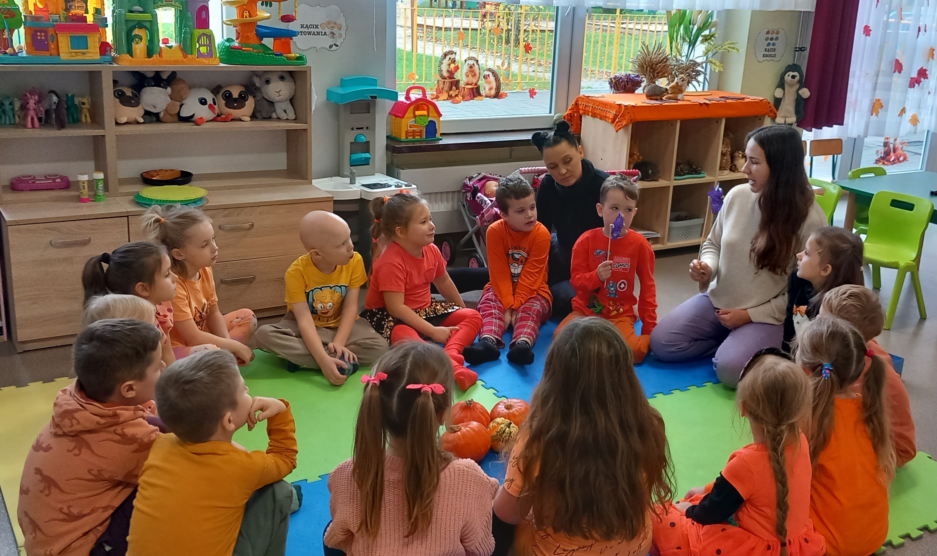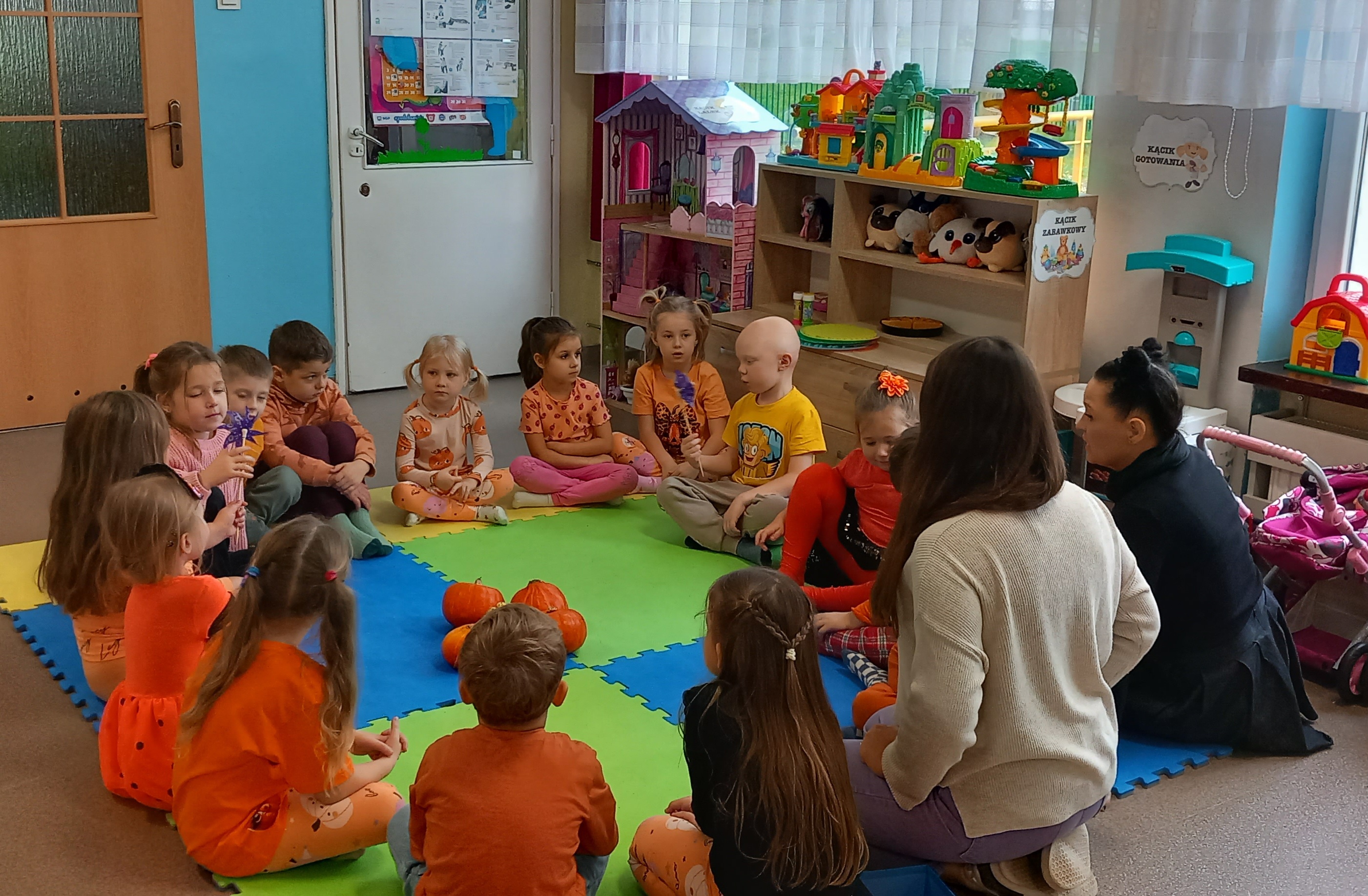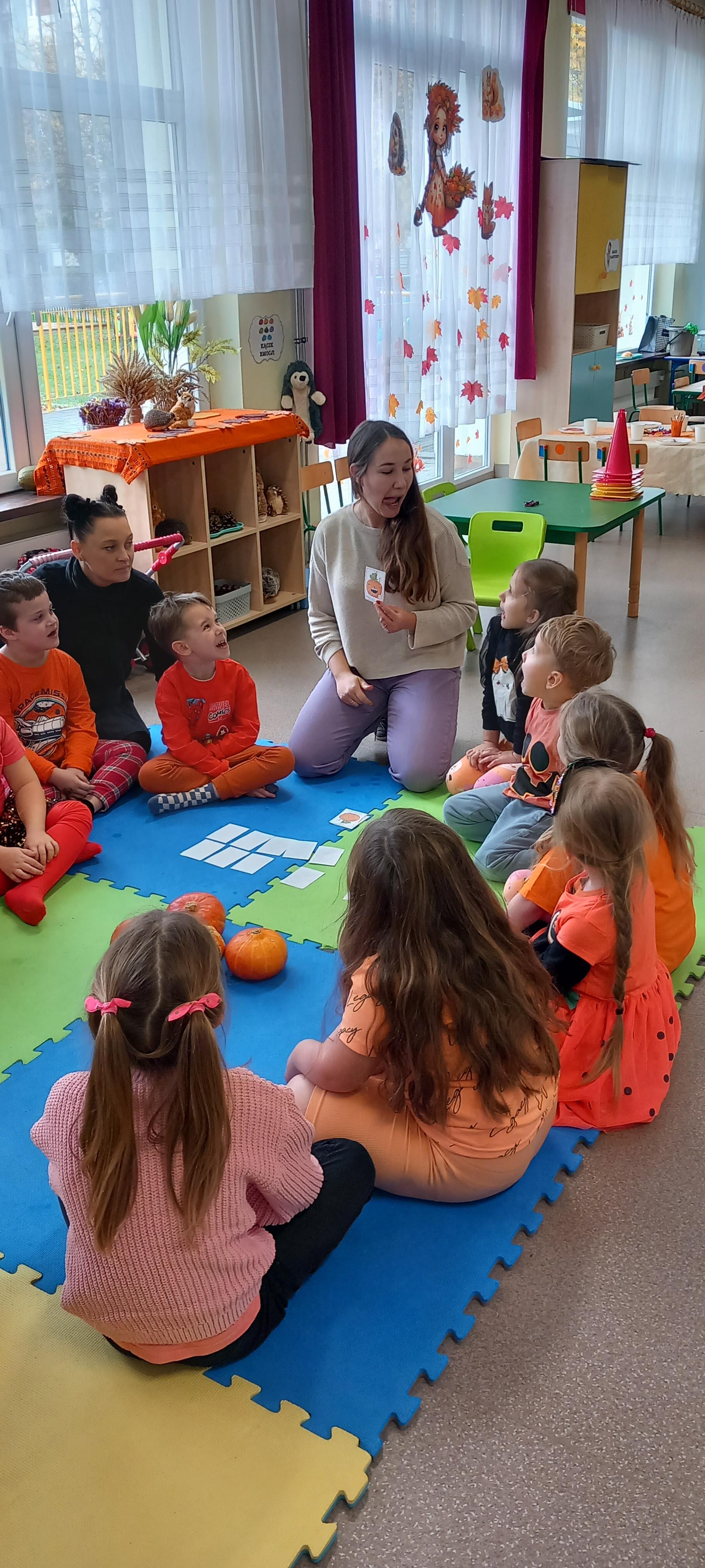 Zajęcia miały na celu rozwijanie kreatywności oraz współpracy w grupie a także poszerzenie wiedzy o przyrodzie i dyni jako symbolu jesieni.
