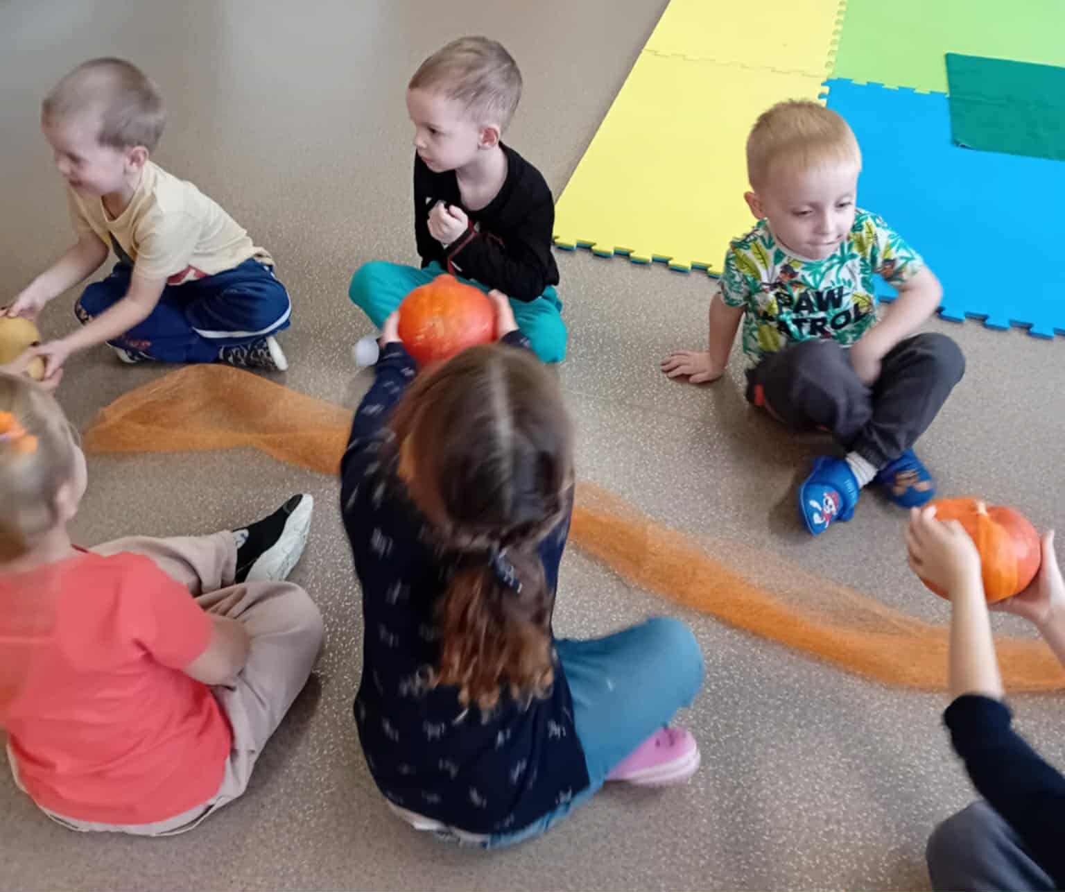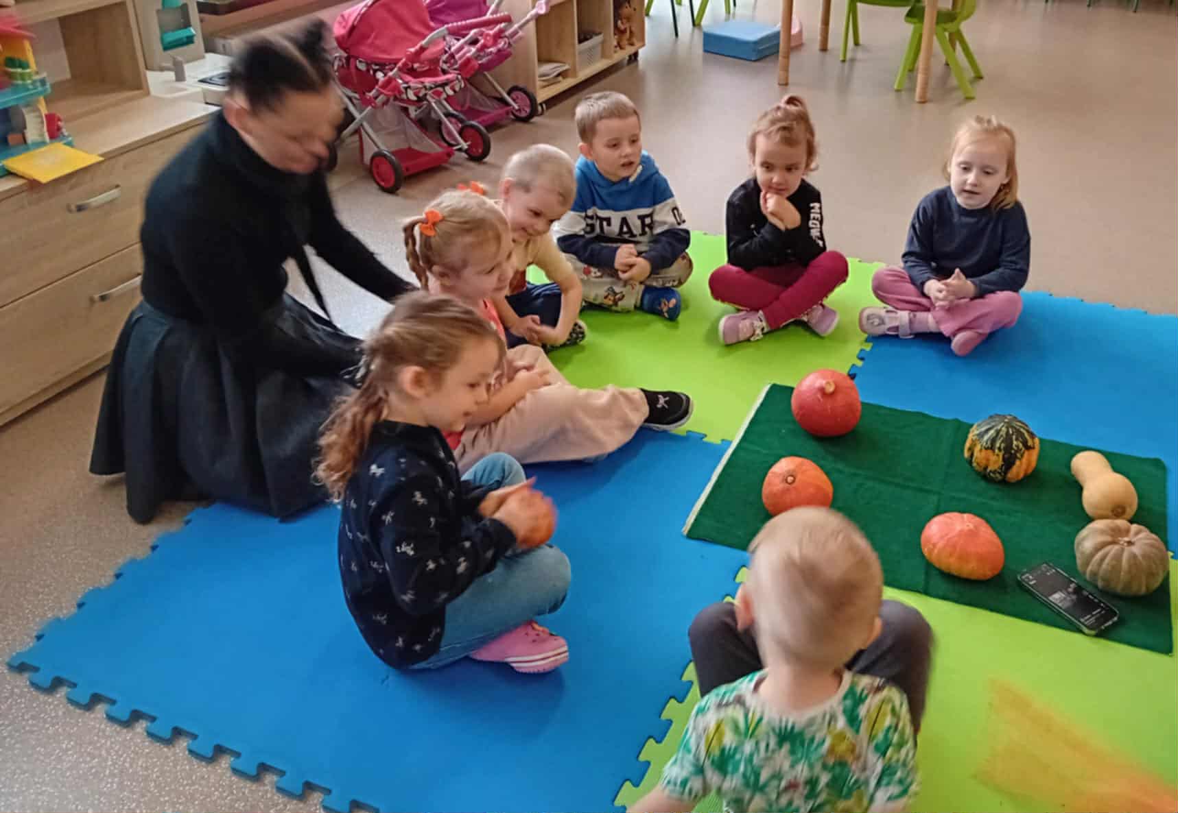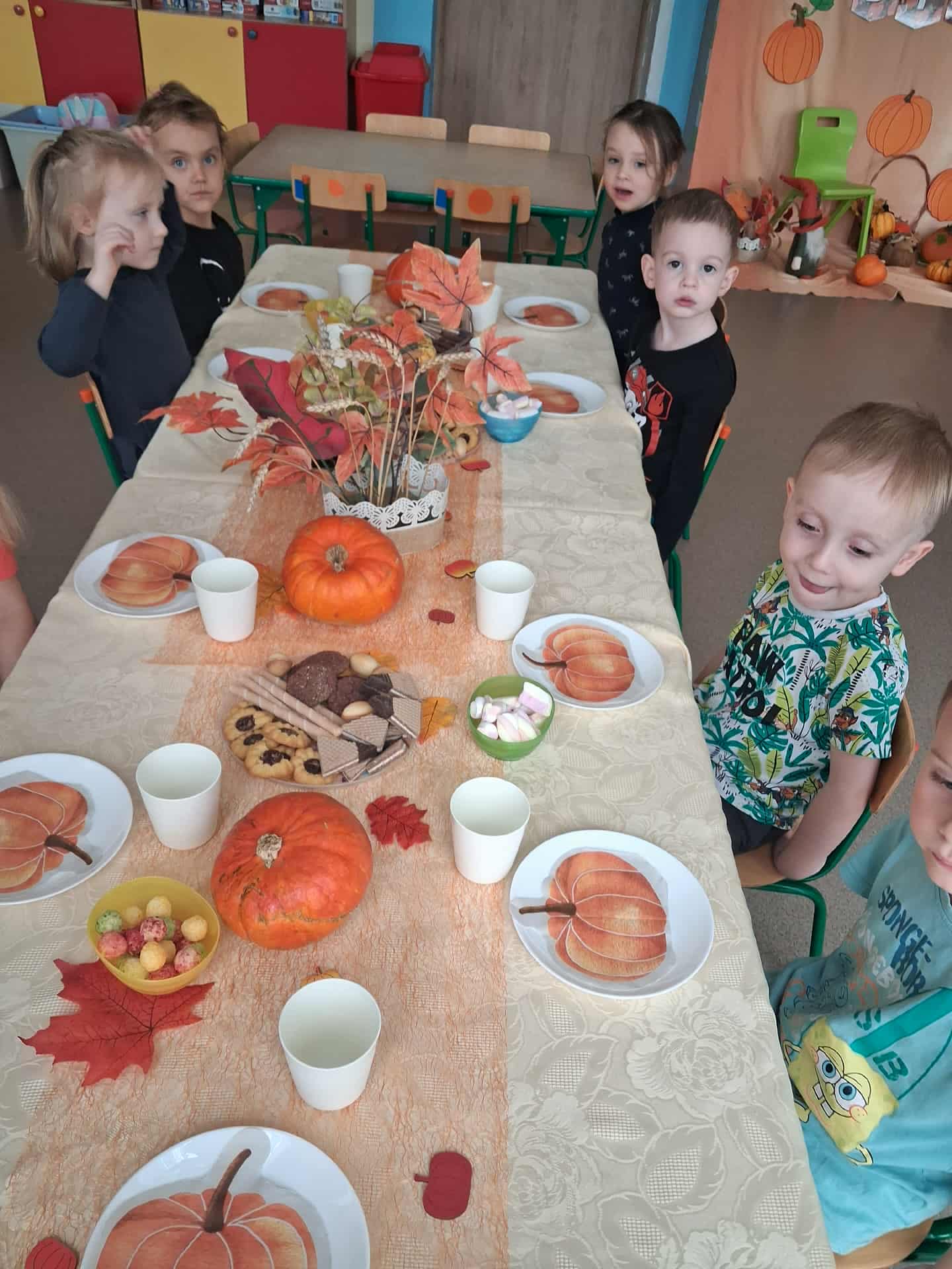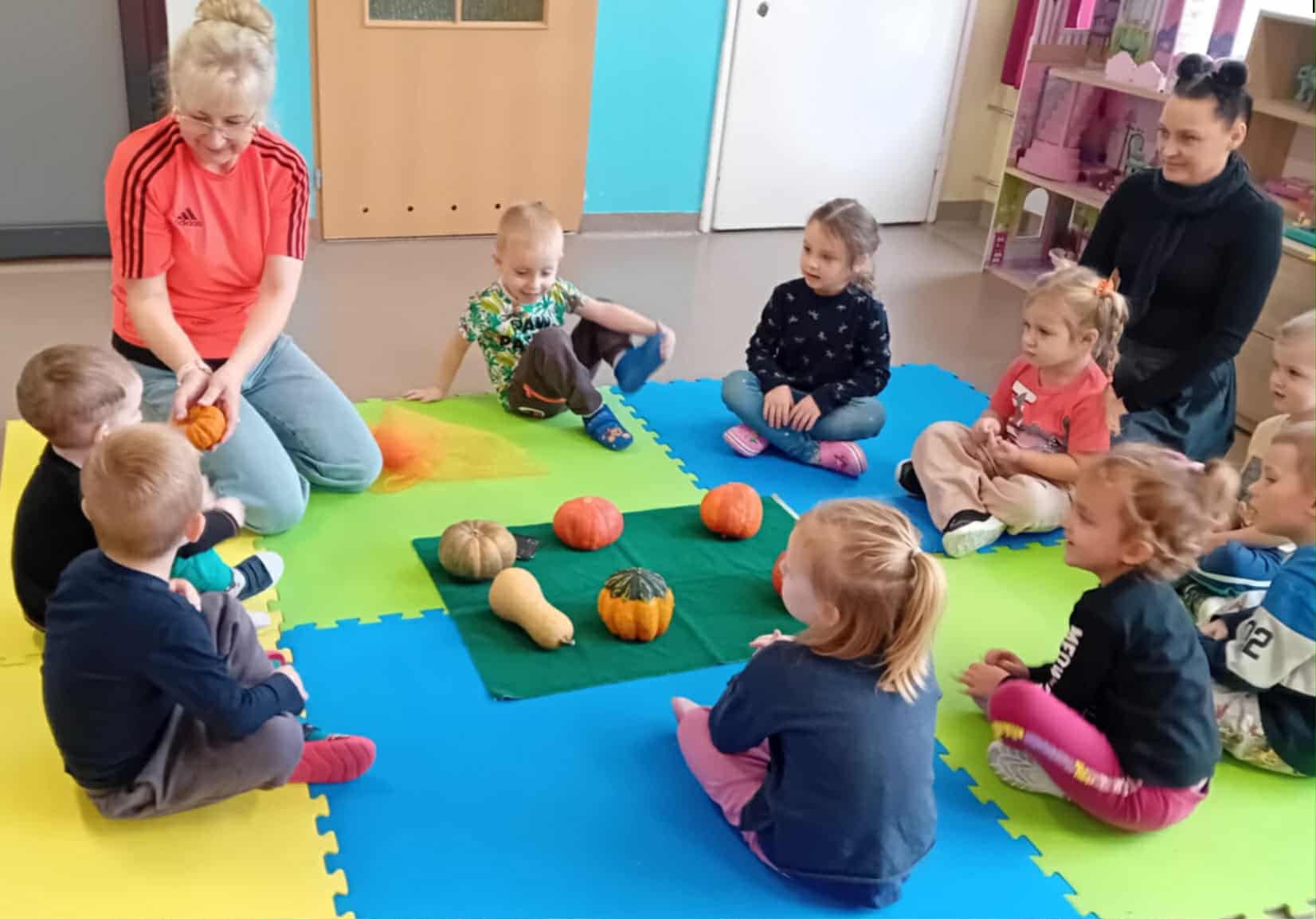 W dniu 30.10.2025 r. w grupie Zajączki bawiliśmy się z okazji Dnia dyni. Wspólnie oglądaliśmy przyniesione okazy, porównywaliśmy je pod względem wyglądu i kształtu, przeliczaliśmy je i "ważyliśmy" w rękach. Wykorzystaliśmy je do turlania, podawania sobie, a także do dekoracji stołów podczas uroczystego poczęstunku. Dynie były również inspiracją do przestrzennych prac plastycznych. To był dla przedszkolaków wesoły i ciekawy dzień.