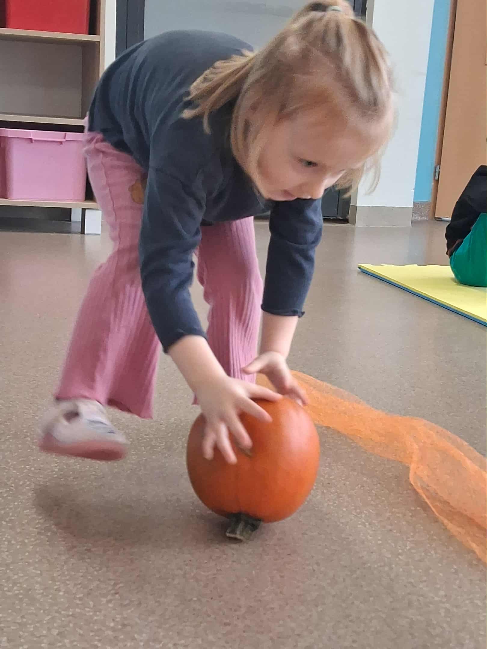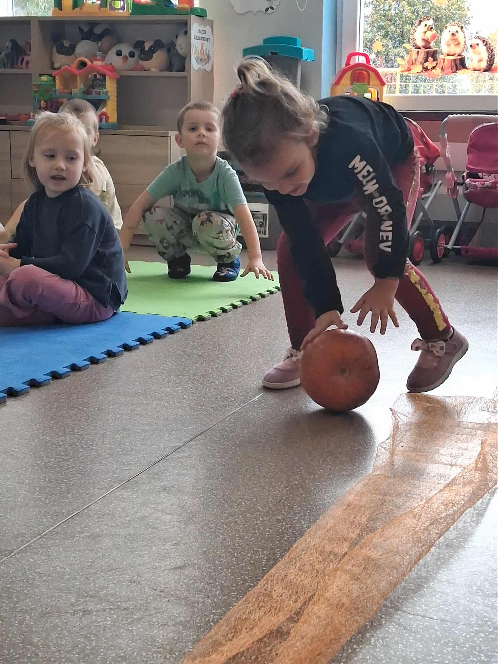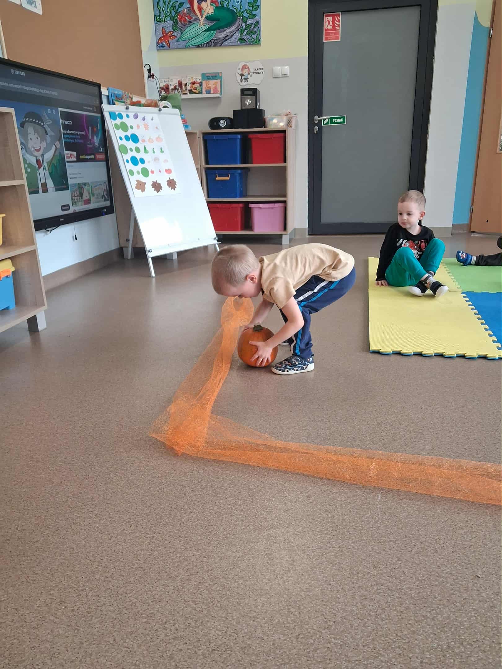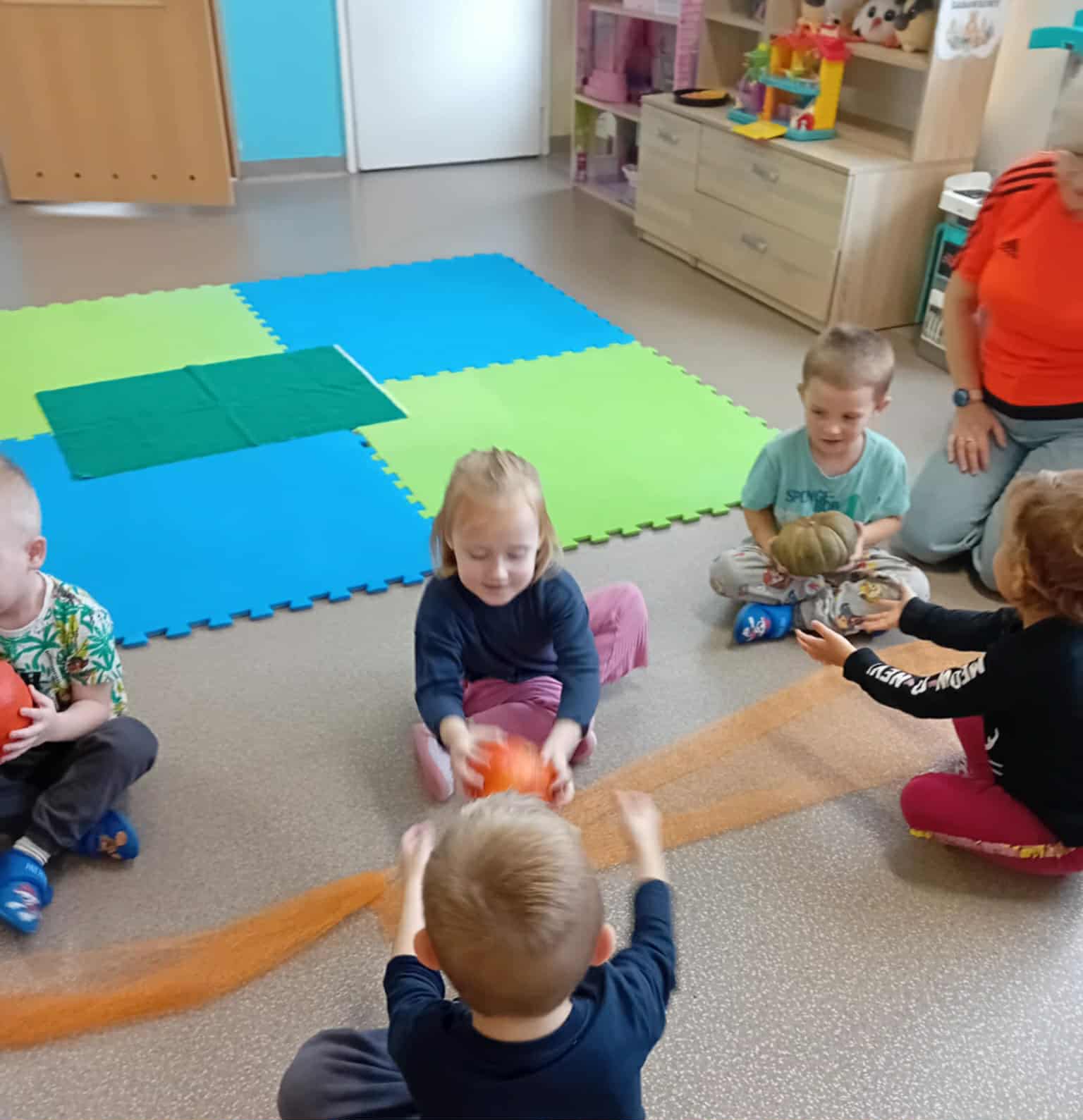 W dniu 30.10.2025 r. w grupie Zajączki bawiliśmy się z okazji Dnia dyni. Wspólnie oglądaliśmy przyniesione okazy, porównywaliśmy je pod względem wyglądu i kształtu, przeliczaliśmy je i "ważyliśmy" w rękach. Wykorzystaliśmy je do turlania, podawania sobie, a także do dekoracji stołów podczas uroczystego poczęstunku. Dynie były również inspiracją do przestrzennych prac plastycznych. To był dla przedszkolaków wesoły i ciekawy dzień.