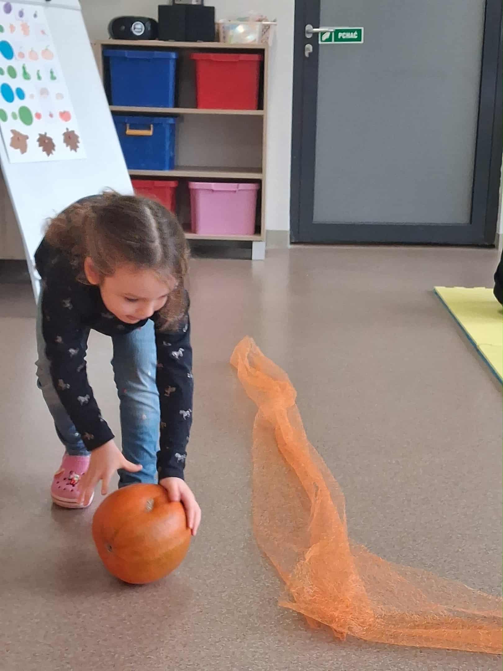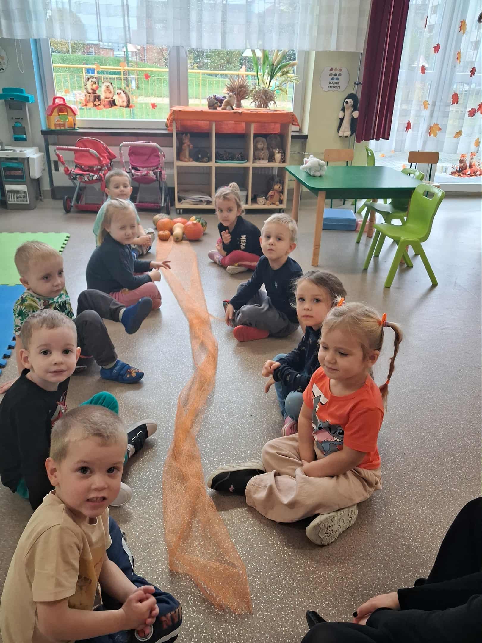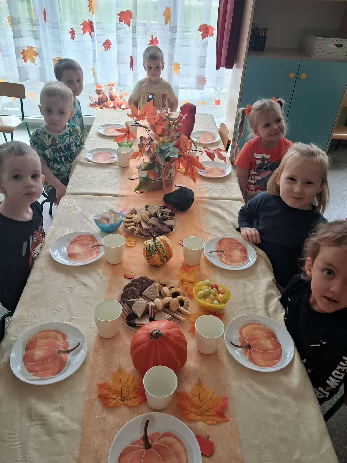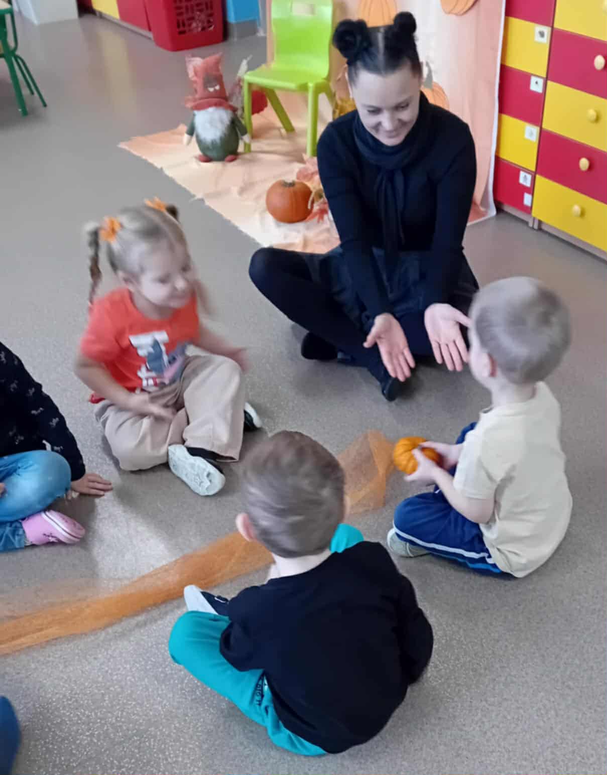 W dniu 30.10.2025 r. w grupie Zajączki bawiliśmy się z okazji Dnia dyni. Wspólnie oglądaliśmy przyniesione okazy, porównywaliśmy je pod względem wyglądu i kształtu, przeliczaliśmy je i "ważyliśmy" w rękach. Wykorzystaliśmy je do turlania, podawania sobie, a także do dekoracji stołów podczas uroczystego poczęstunku. Dynie były również inspiracją do przestrzennych prac plastycznych. To był dla przedszkolaków wesoły i ciekawy dzień.