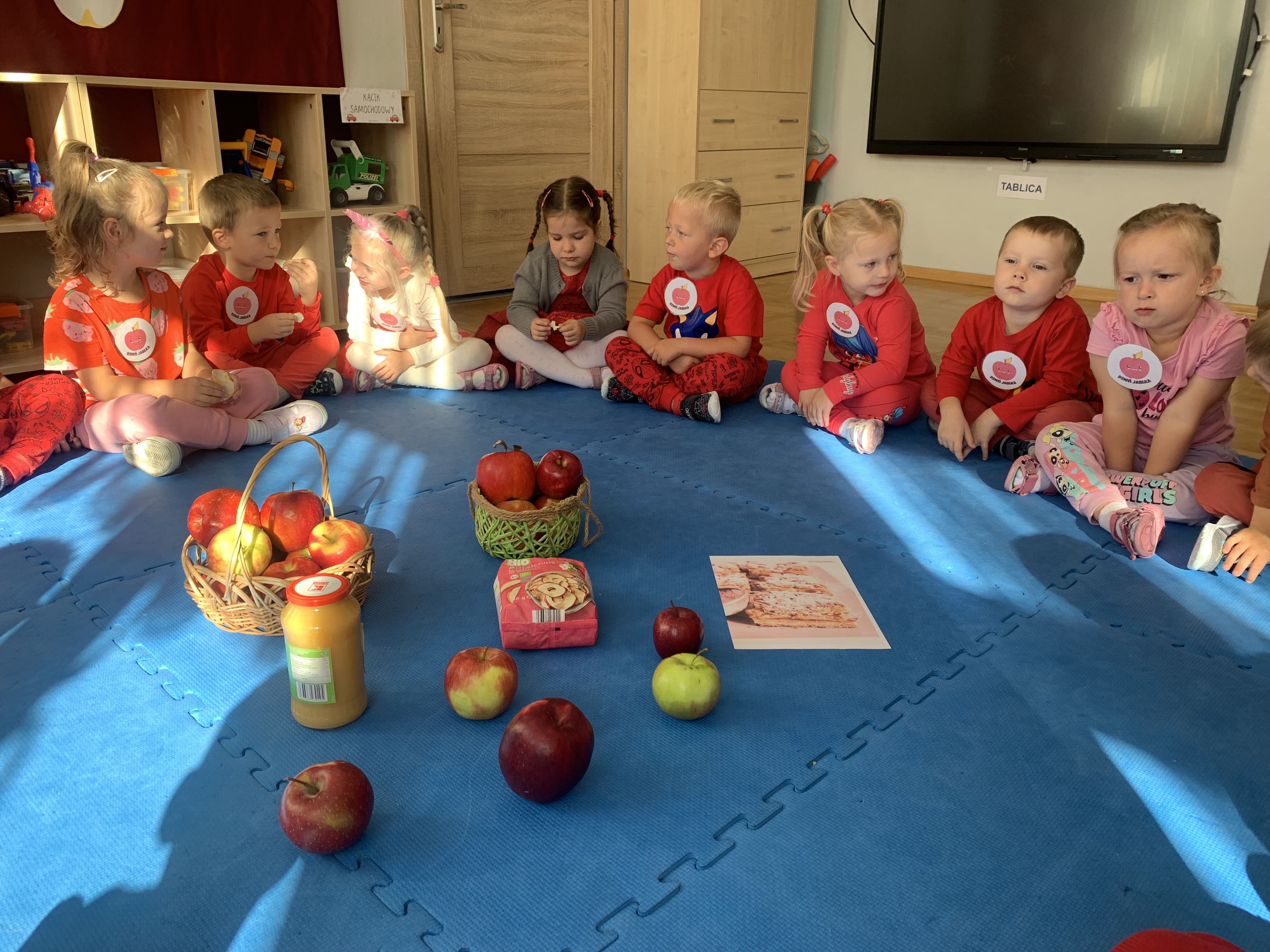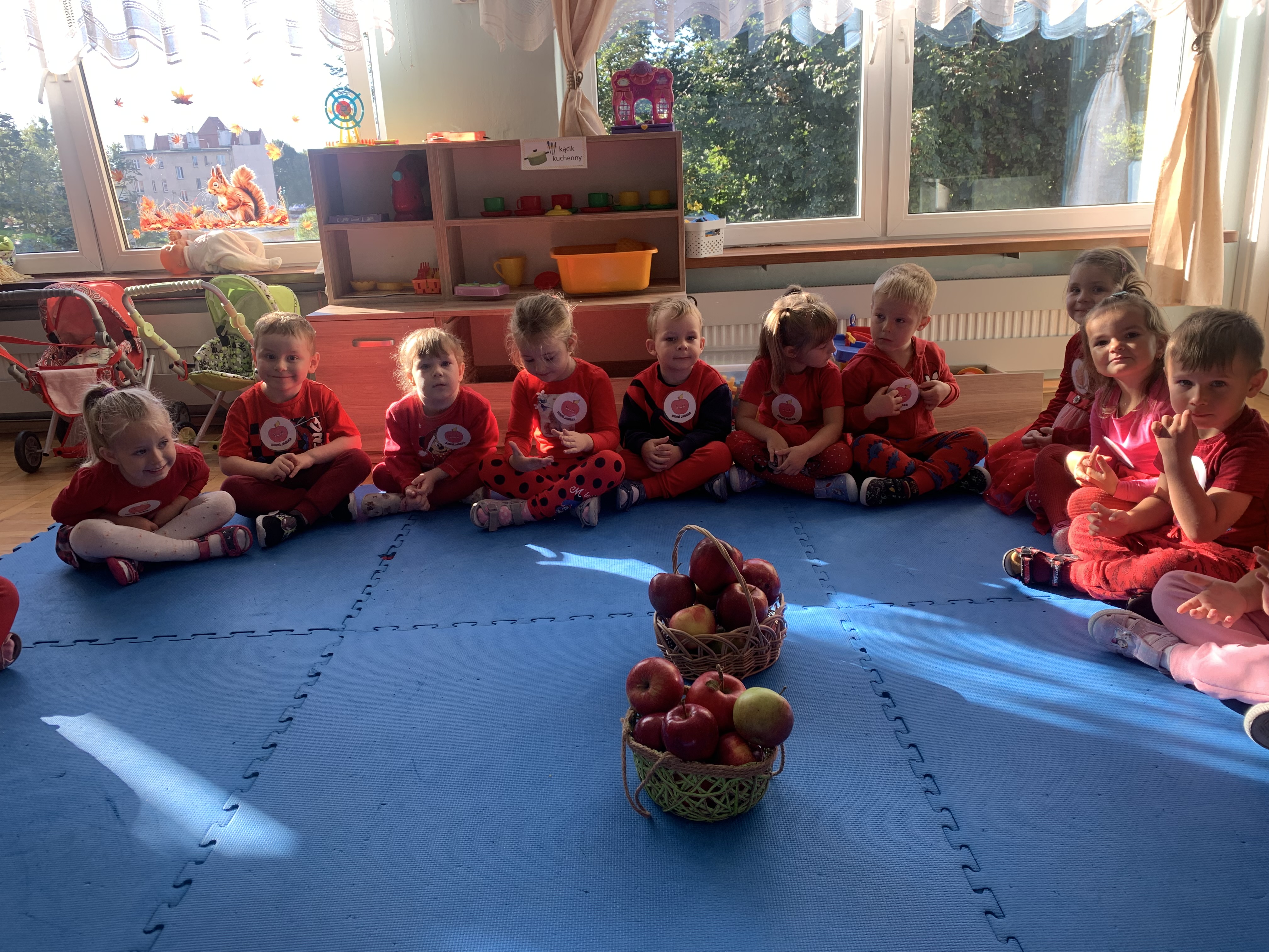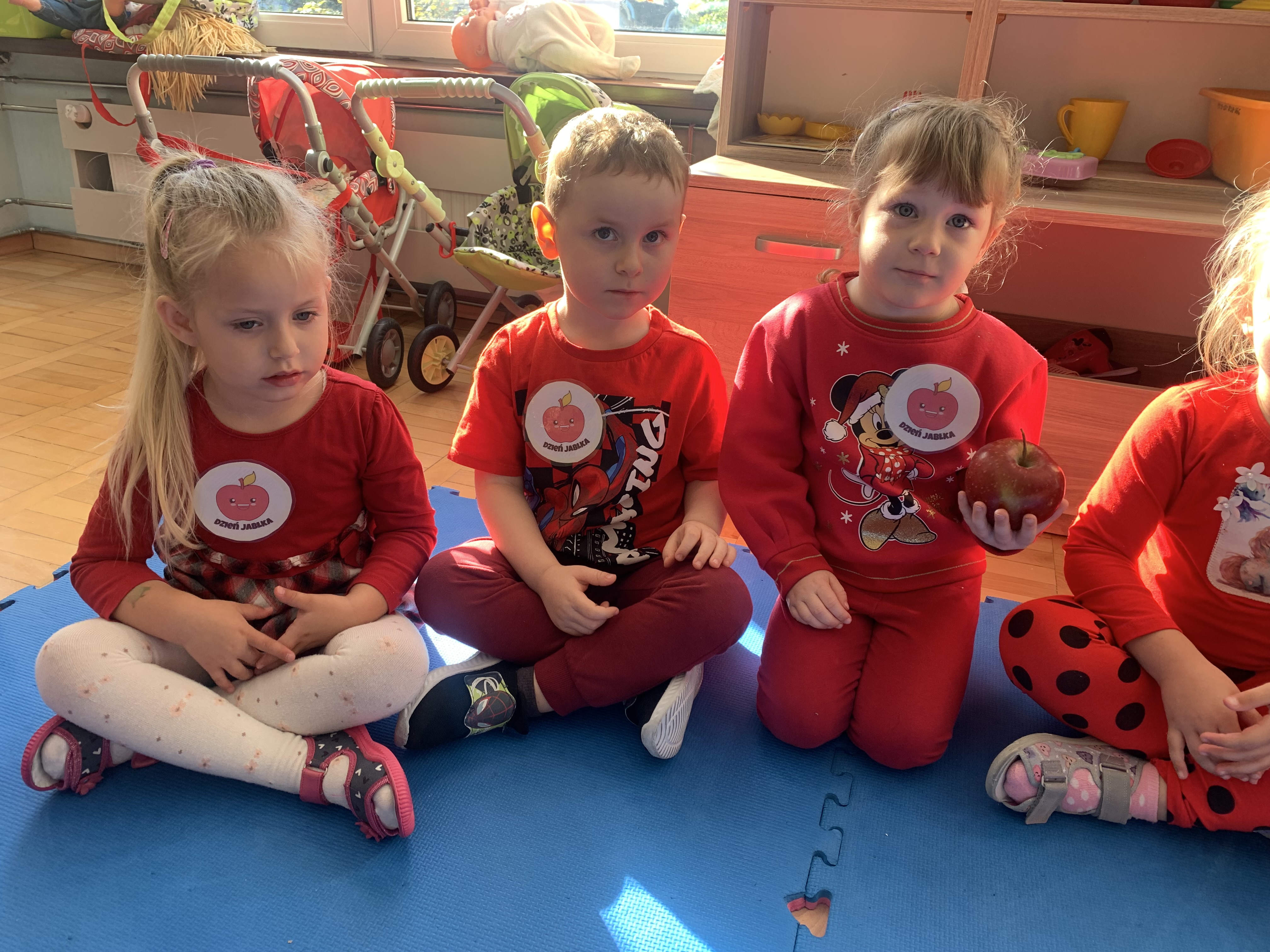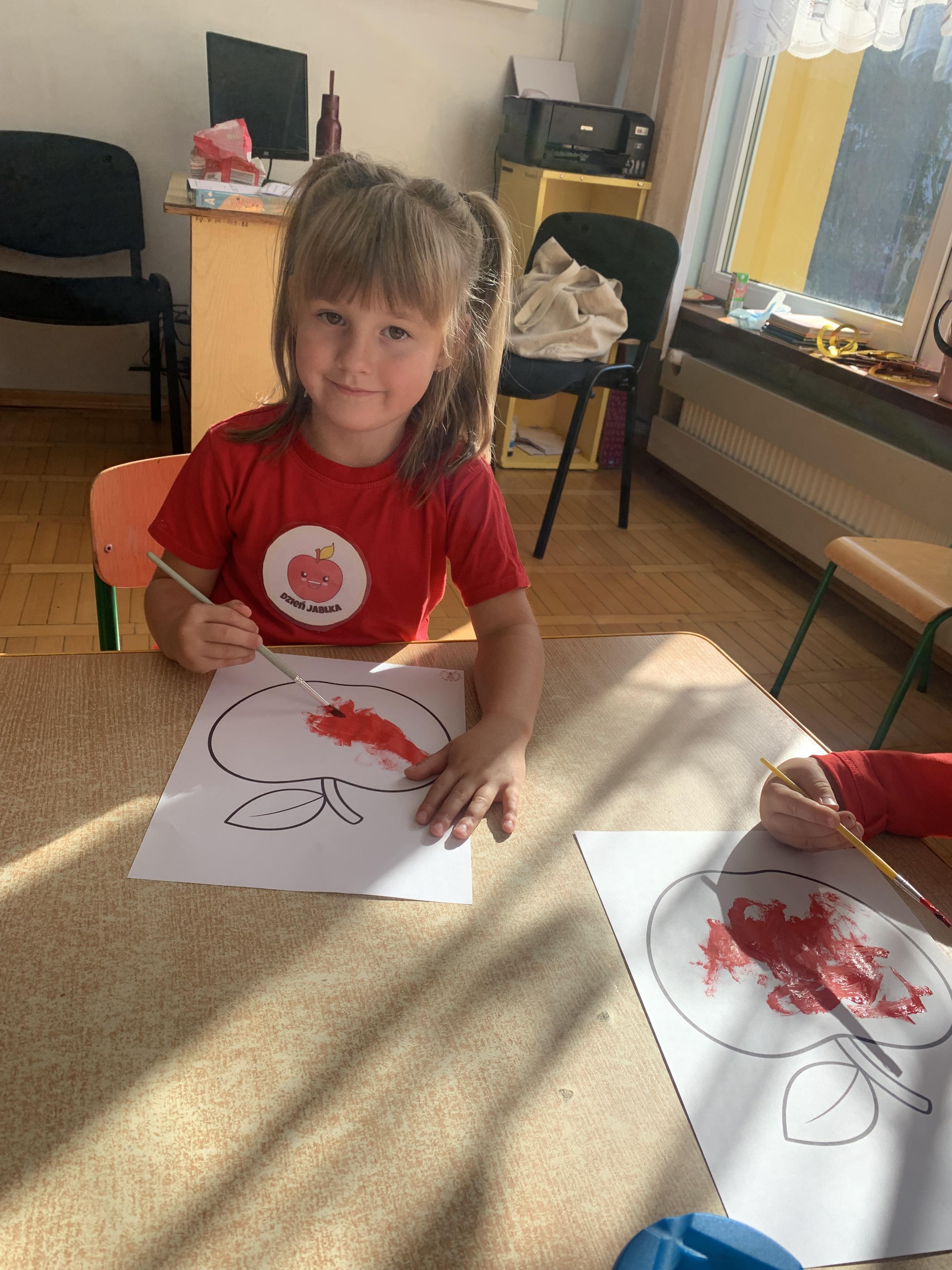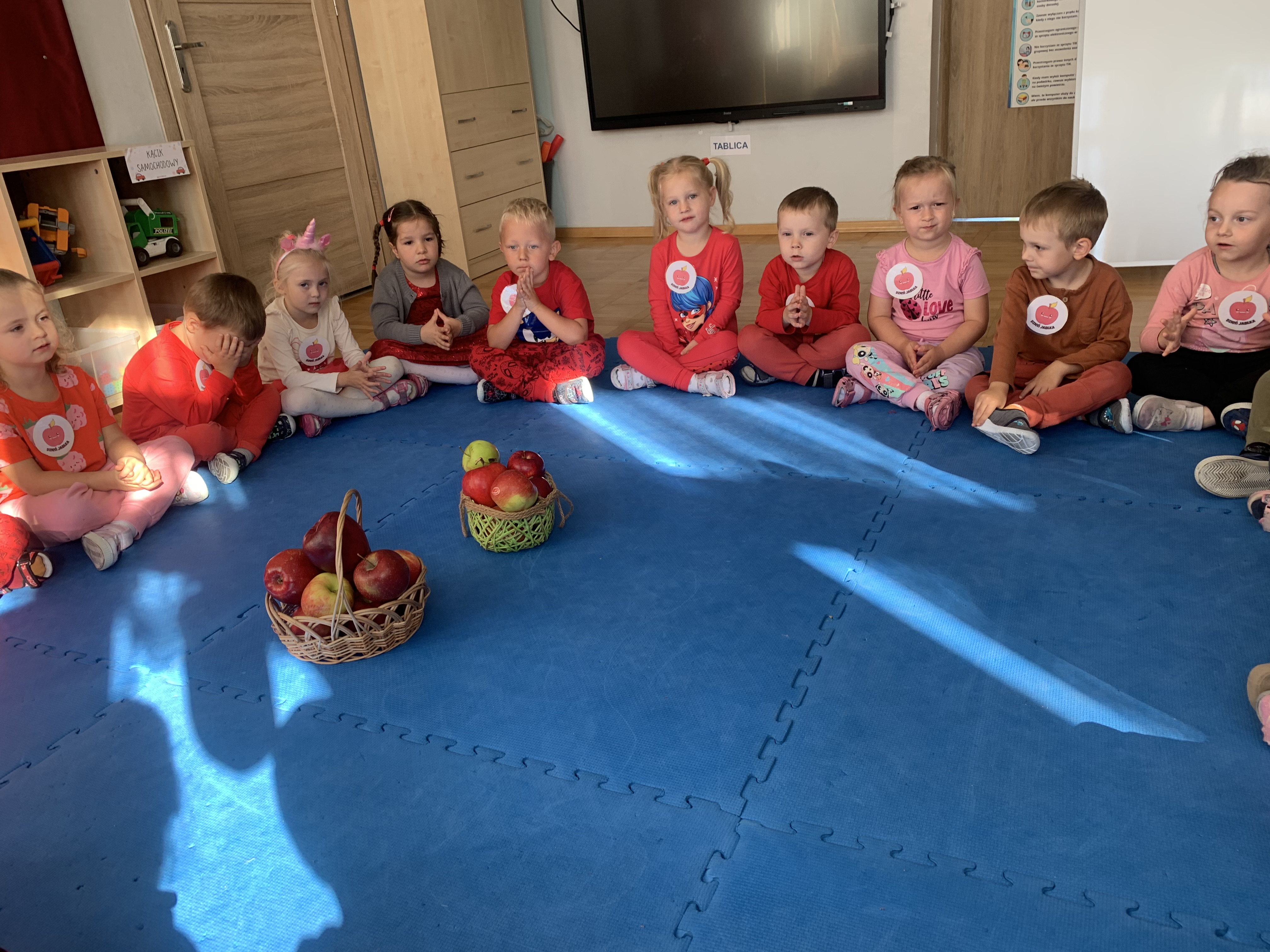 26 września w naszej grupie świętowaliśmy Dzień Jabłka. Podczas zajęć dzieci poznały budowę jabłka, dowiedziały się jakie przetwory można z niego przygotować oraz degustowały różne odmiany jabłek. Spróbowały także suszonych owoców,odkrywając ich wyjątkowy smak. Nie zabrakło również zabaw matematycznych - przeliczaliśmy jabłka oraz układaliśmy owocowe rytmy. Na zakończenie dzieci malowały farbami sylwetę jabłka, rozwijając swoją kreatywność i sprawność manualną. Był to dzień pełen wiedzy, zabawy i smaków!