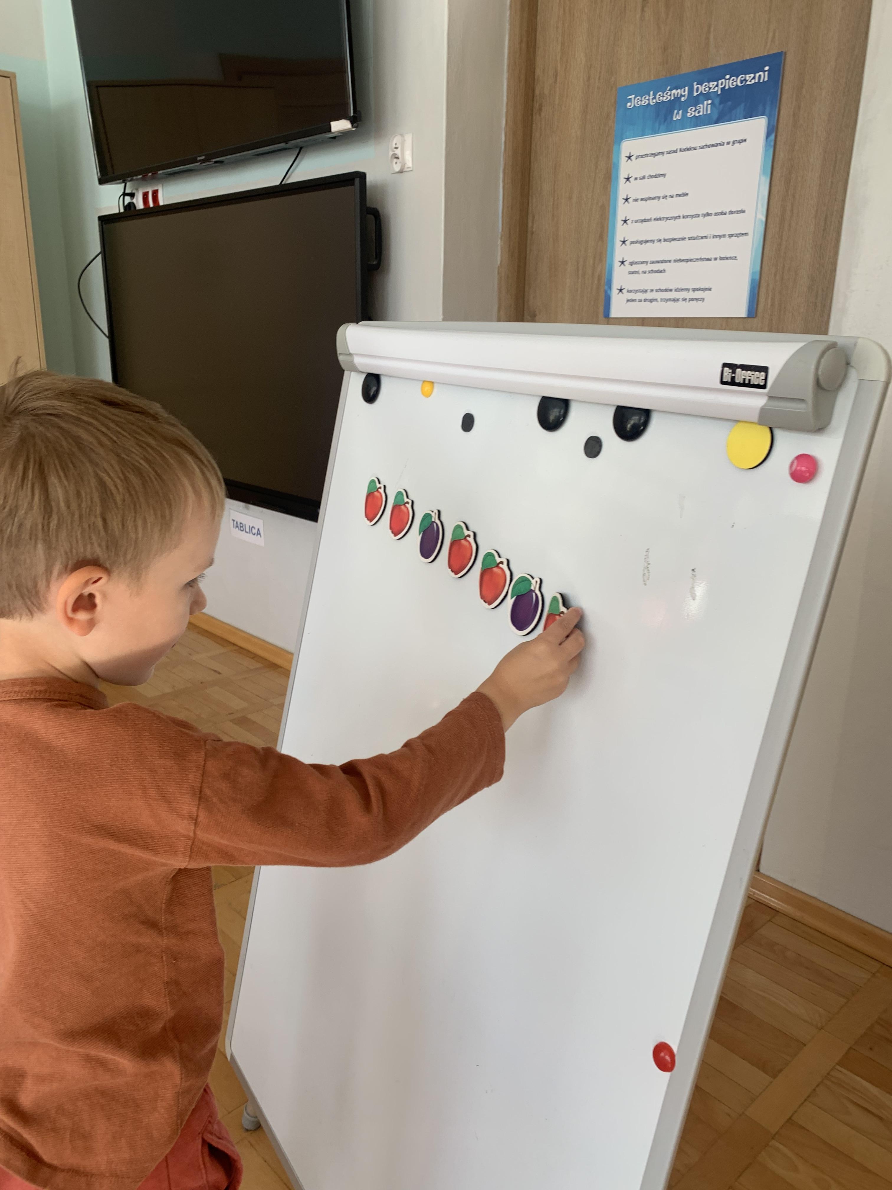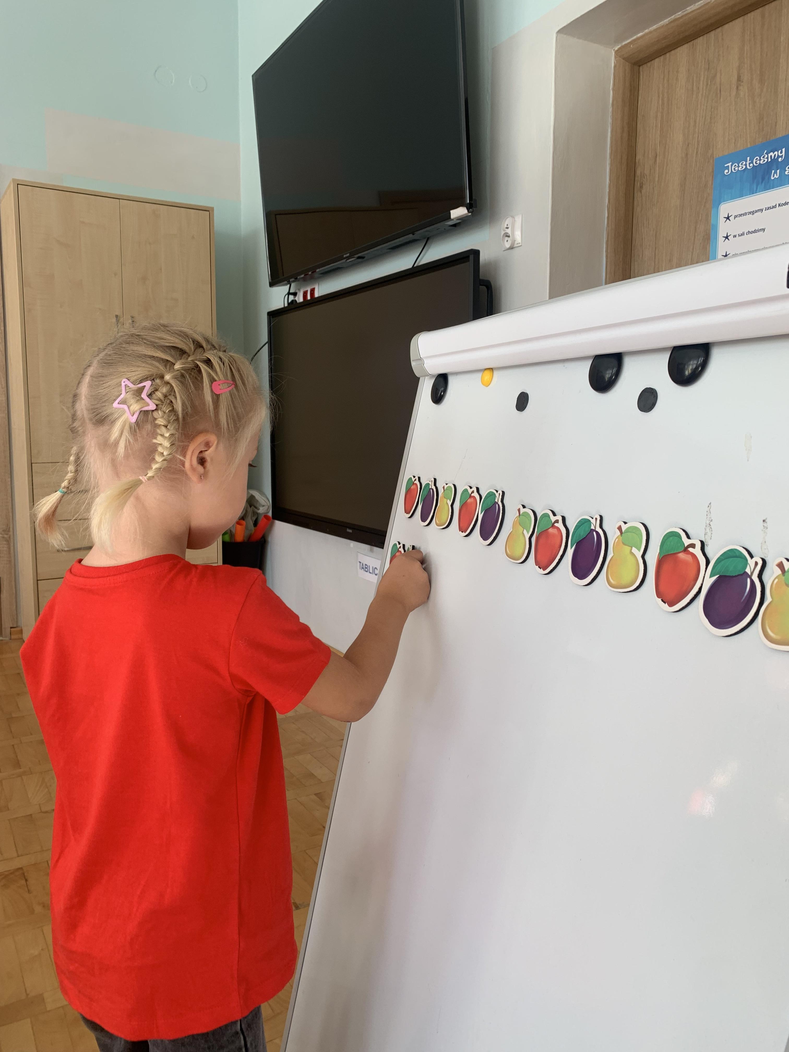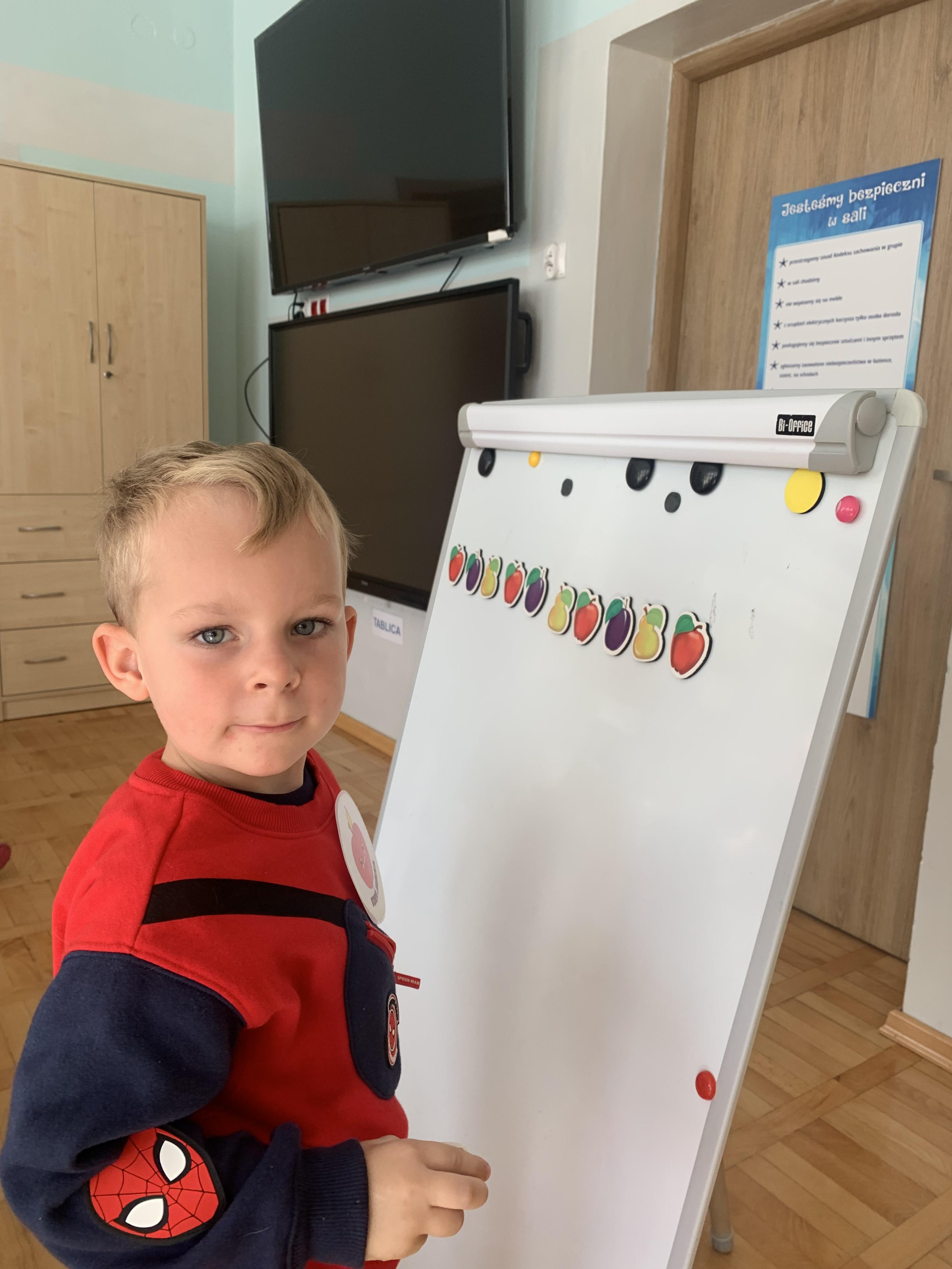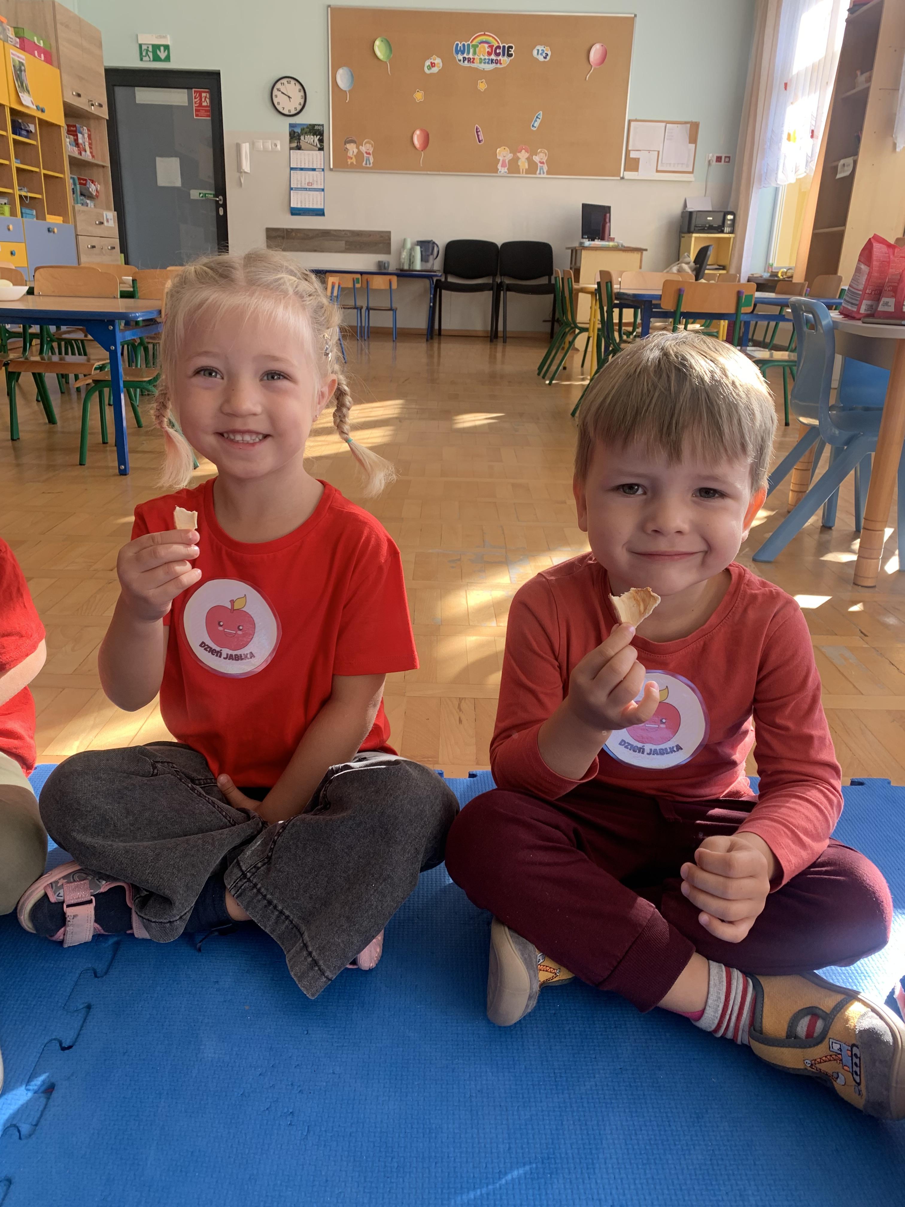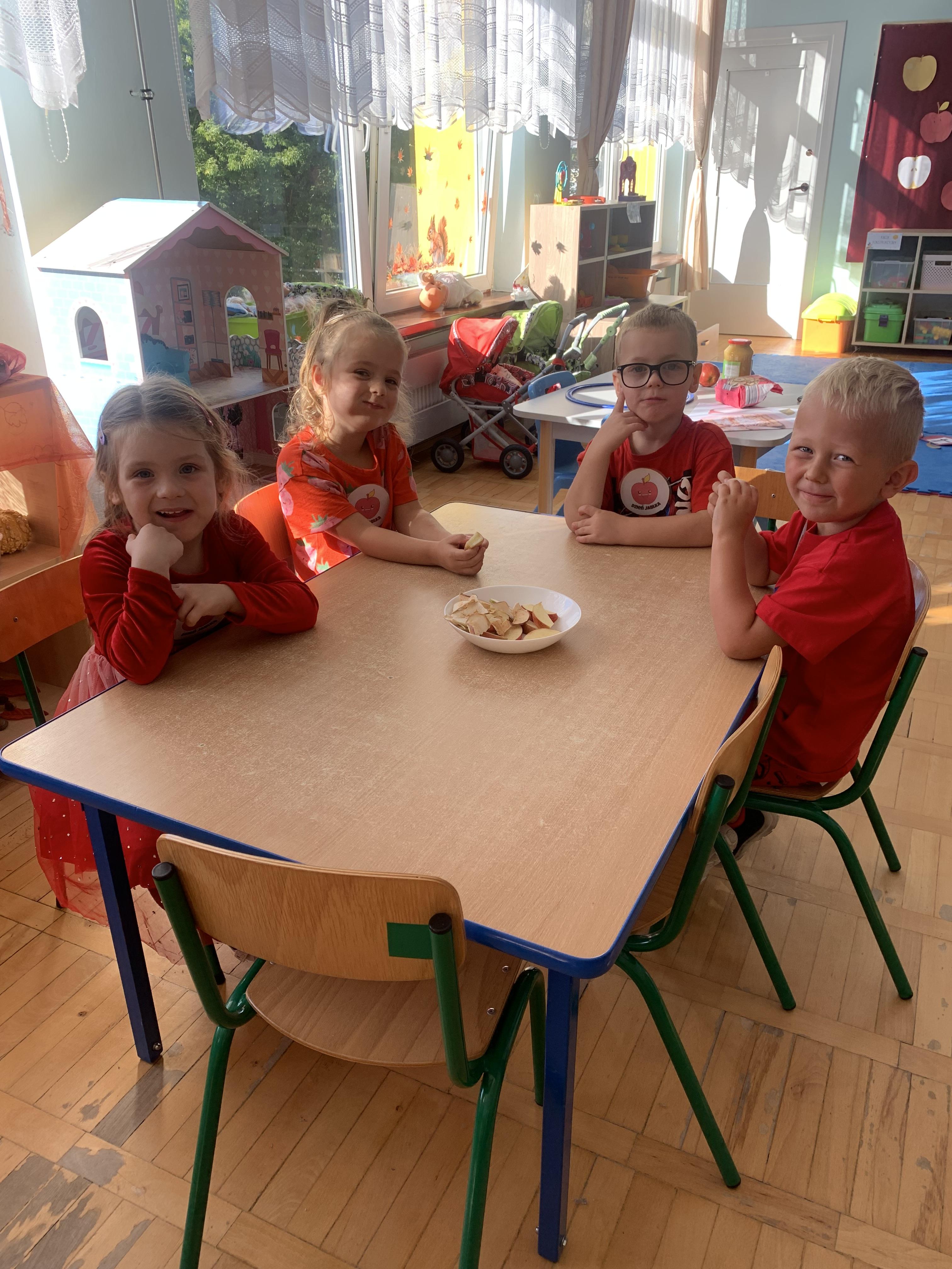 26 września w naszej grupie świętowaliśmy Dzień Jabłka. Podczas zajęć dzieci poznały budowę jabłka, dowiedziały się jakie przetwory można z niego przygotować oraz degustowały różne odmiany jabłek. Spróbowały także suszonych owoców,odkrywając ich wyjątkowy smak. Nie zabrakło również zabaw matematycznych - przeliczaliśmy jabłka oraz układaliśmy owocowe rytmy. Na zakończenie dzieci malowały farbami sylwetę jabłka, rozwijając swoją kreatywność i sprawność manualną. Był to dzień pełen wiedzy, zabawy i smaków!