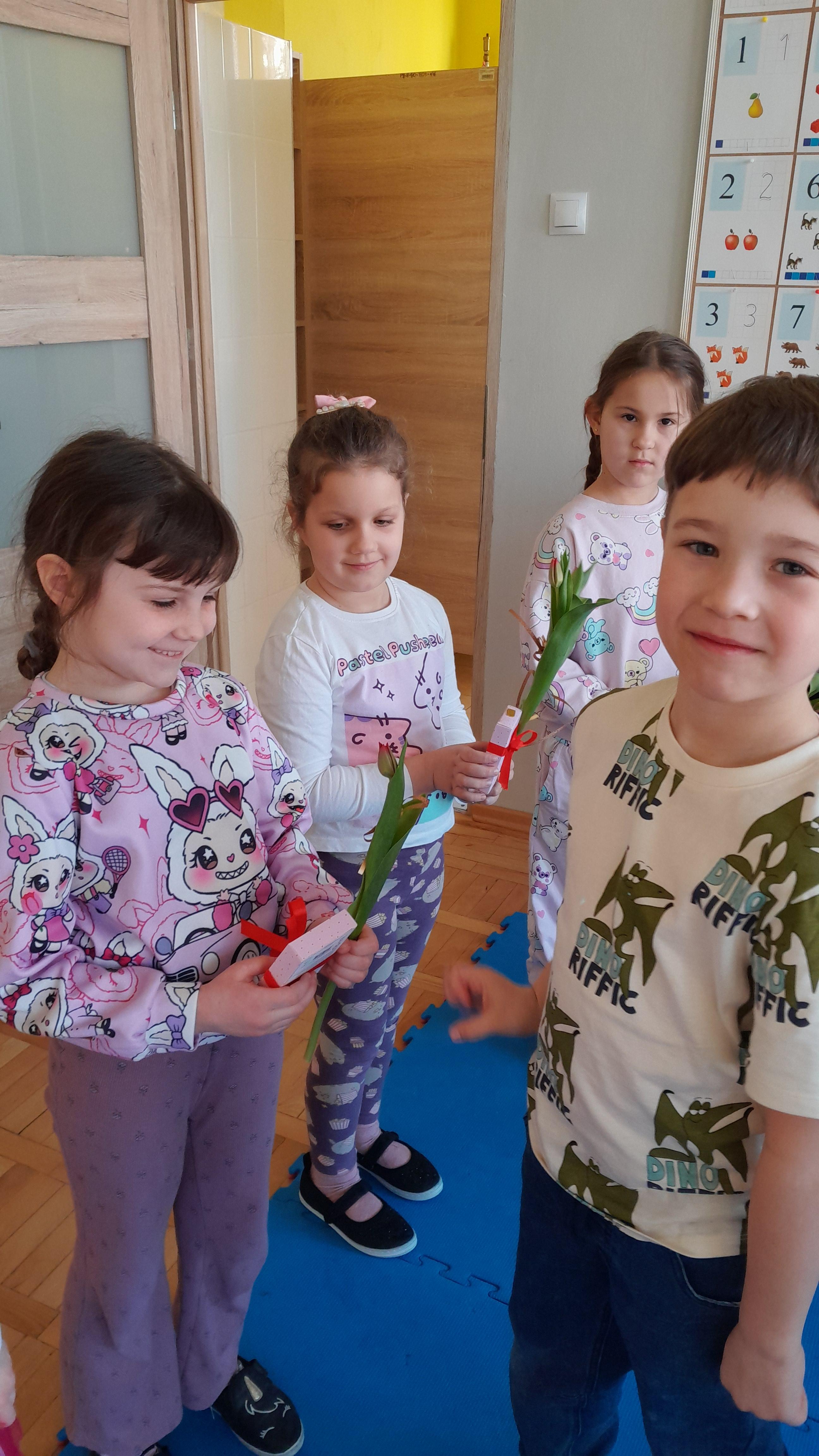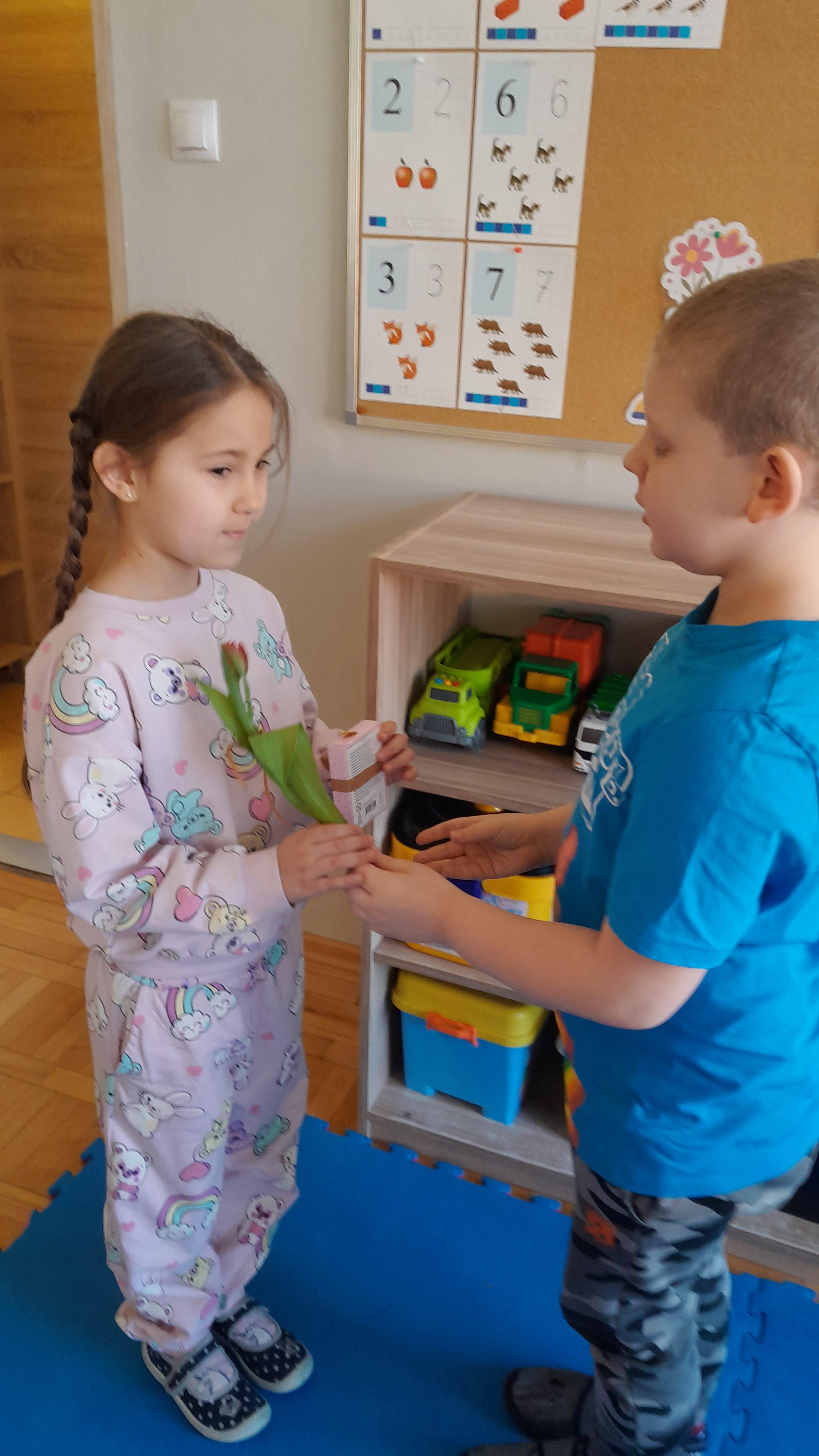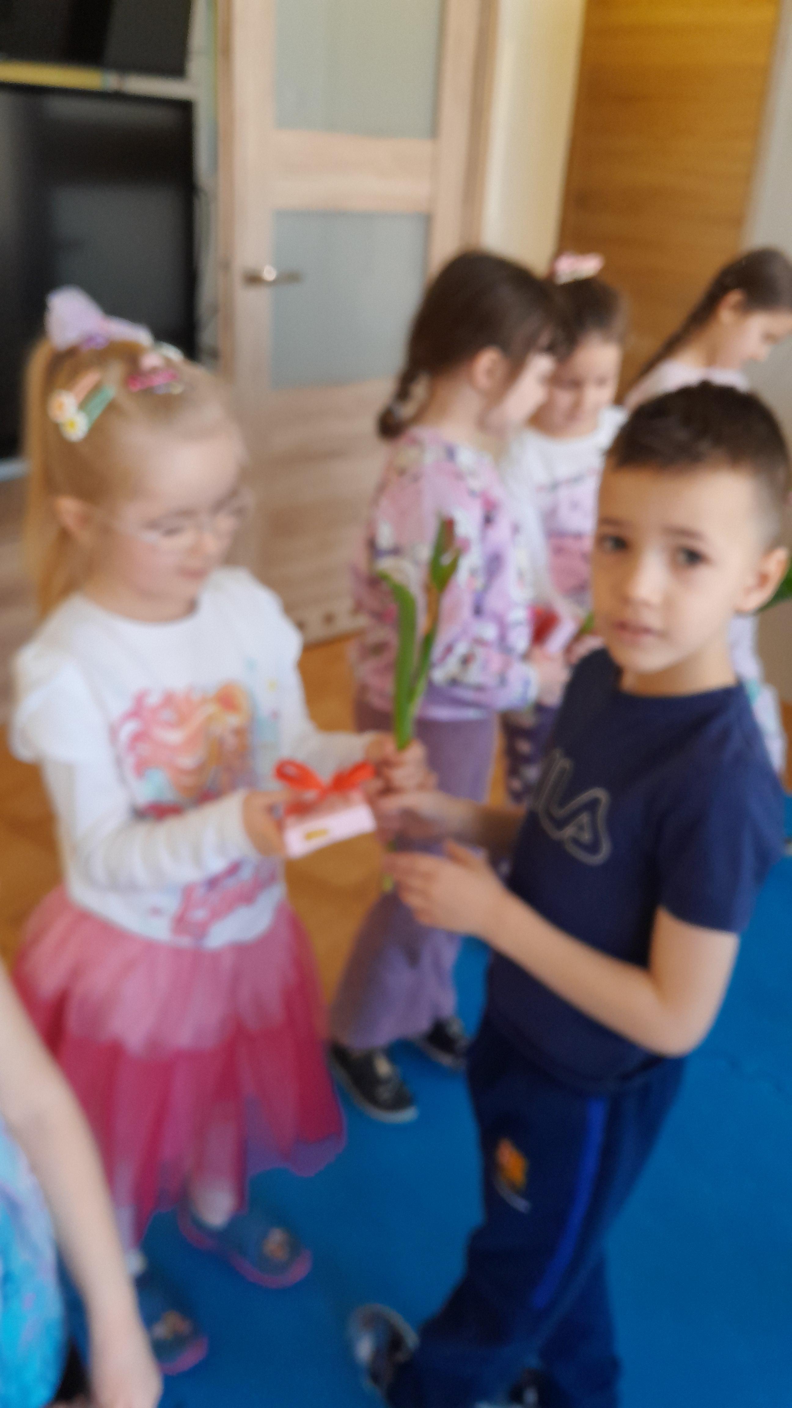 W piątek 06.03 nasze dziewczynki odbarowane zostały przez chłopców upominkami. Chłopcy mieli okazję złożyć dziewczynkom życzenia.