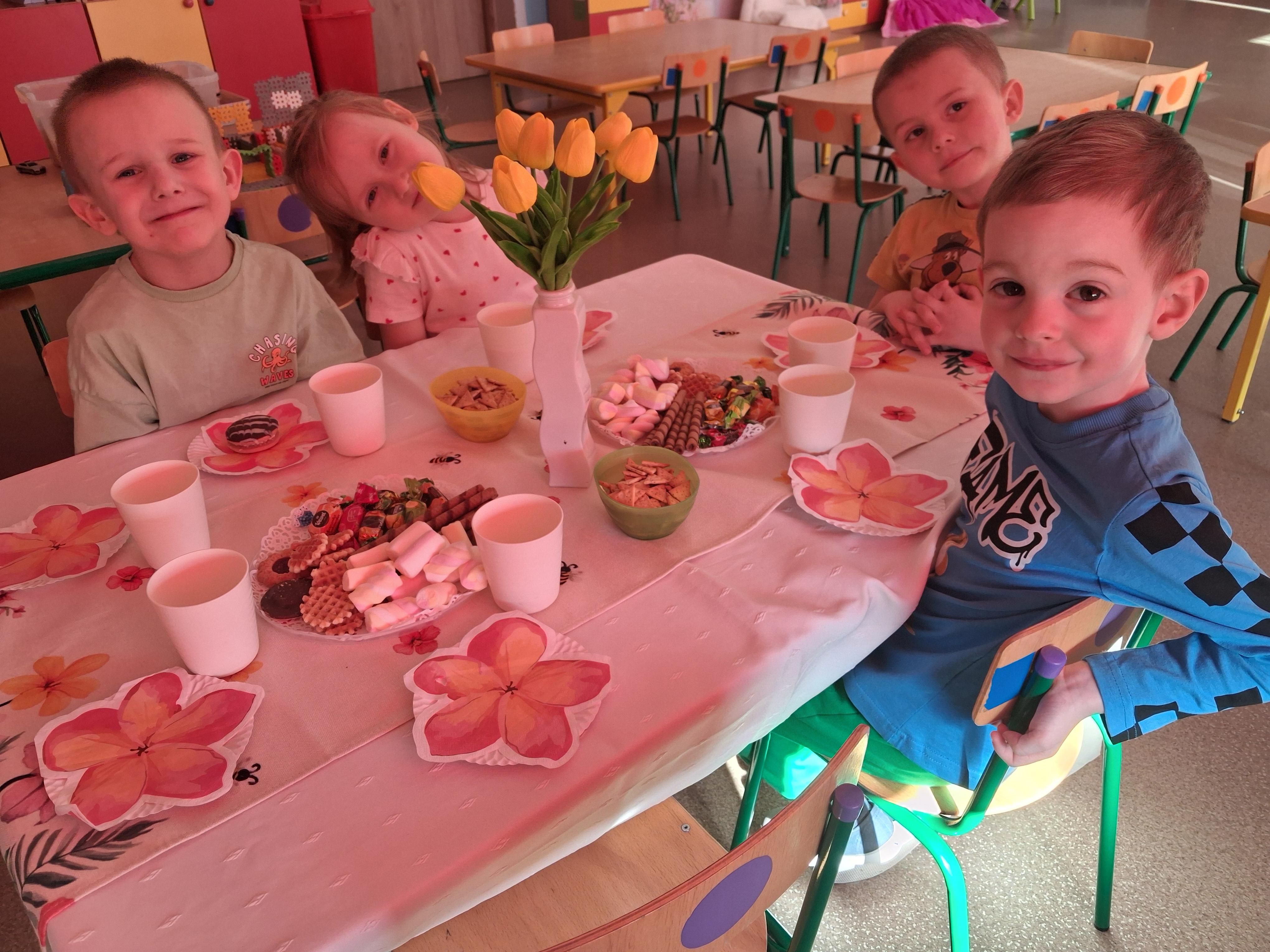 Miłe chwile zostały uwiecznione na zdjęciach. Dziewczynki otrzymały upominki ufundowane przez Radę Rodziców, a chłopcy dostali batoniki.