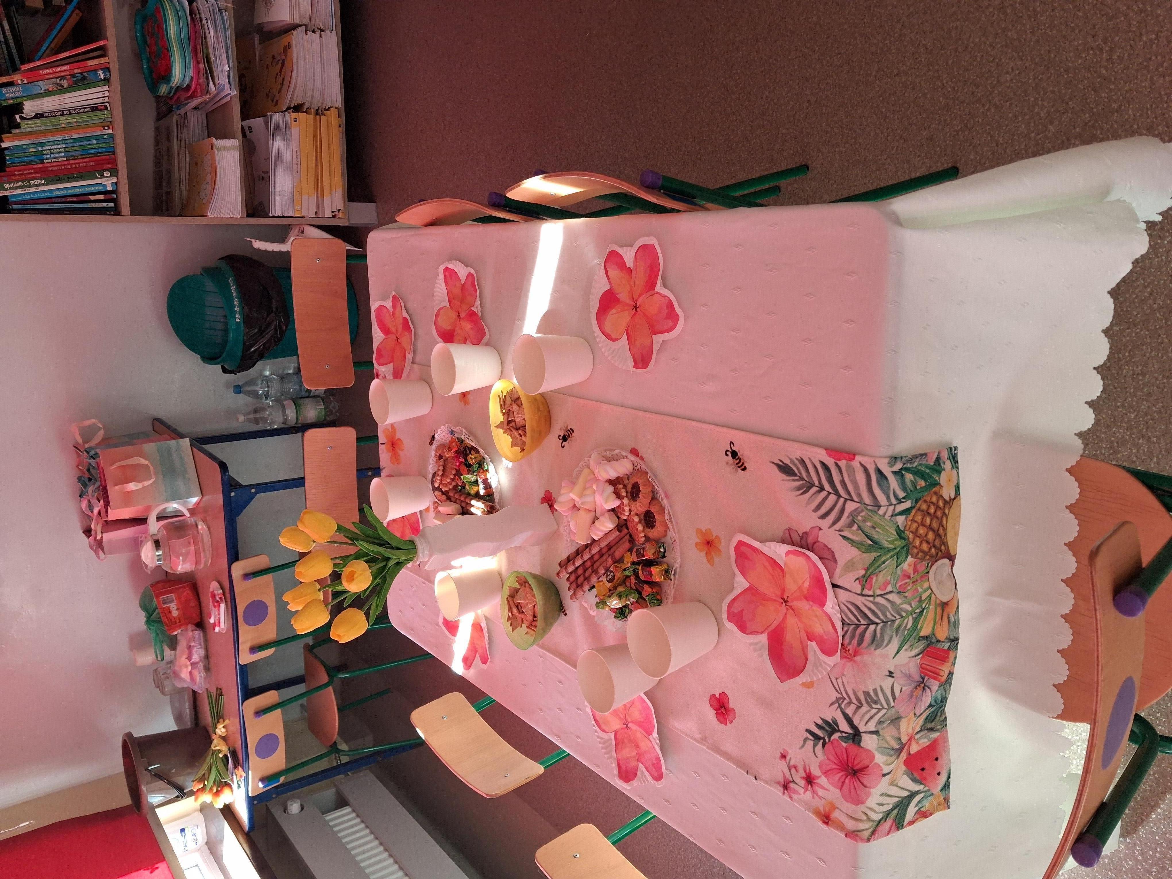 Dzień Kobiet w grupie Zajaczki z powodu małej frekwencji dzieci odbywał się na "raty" już od piątku....