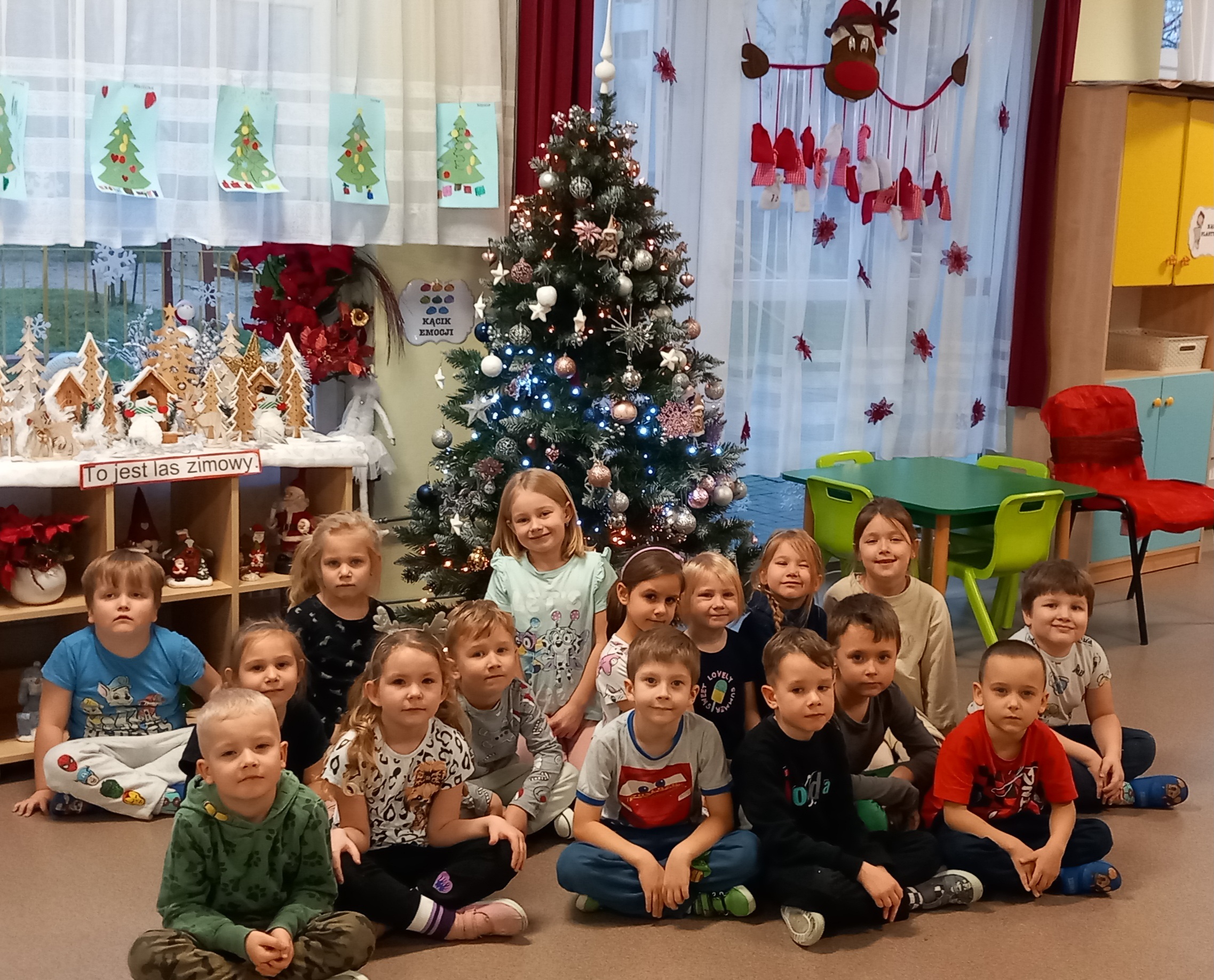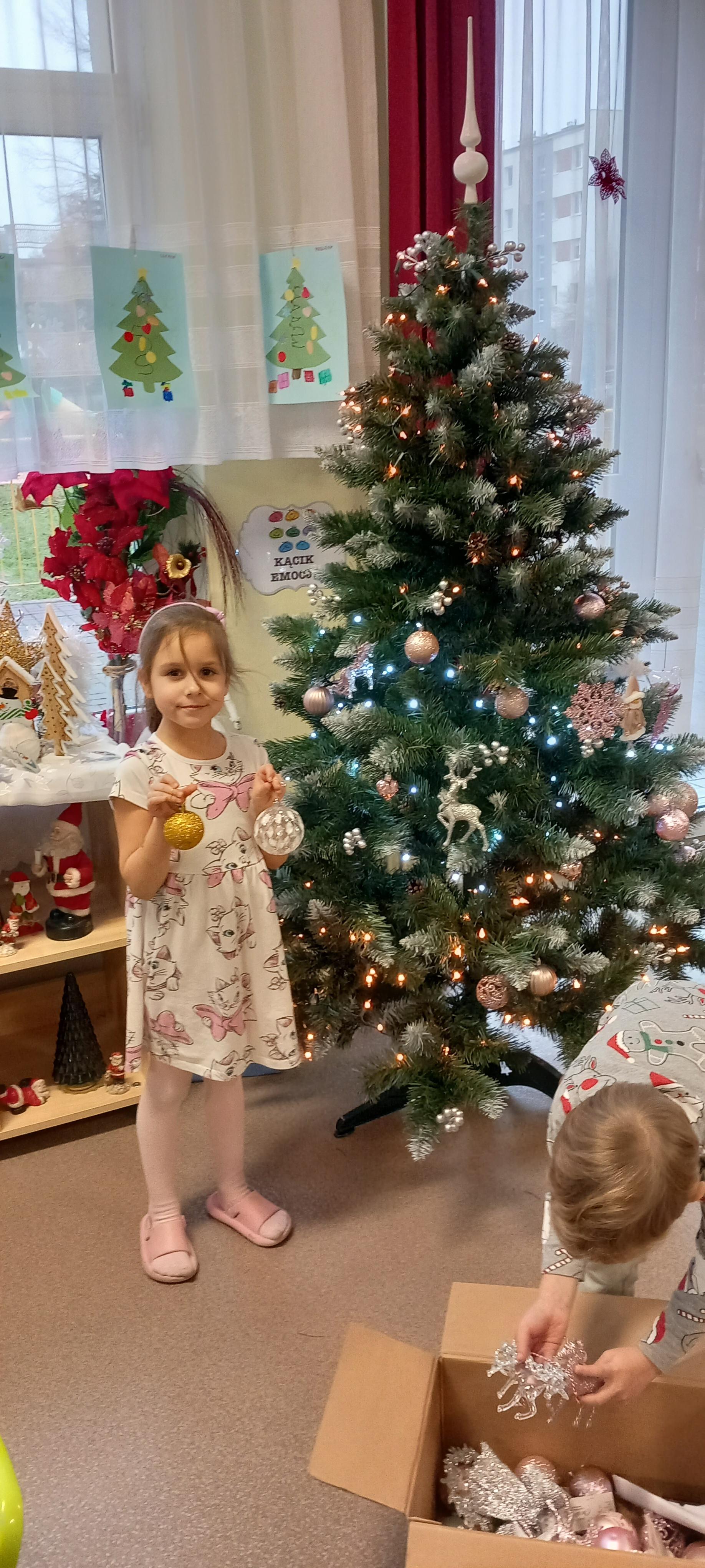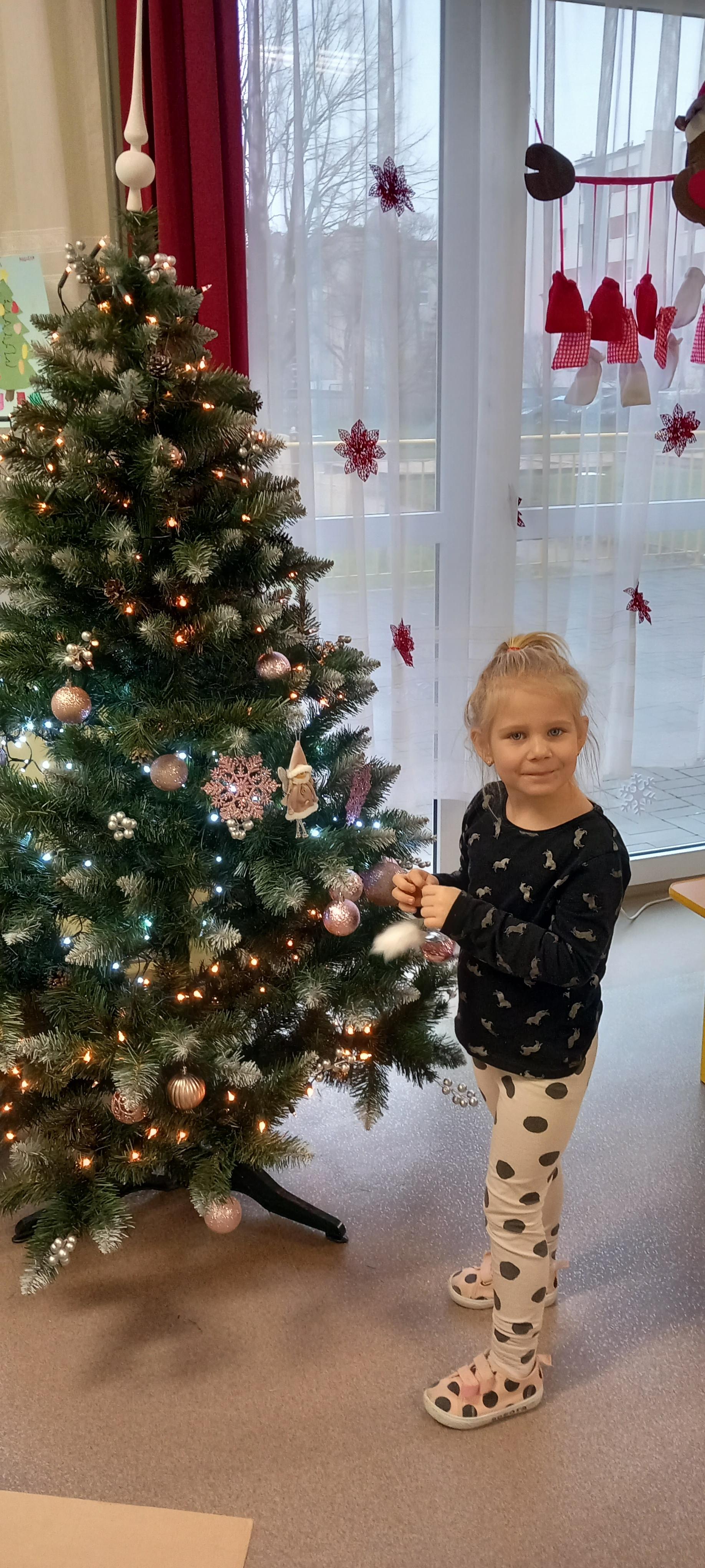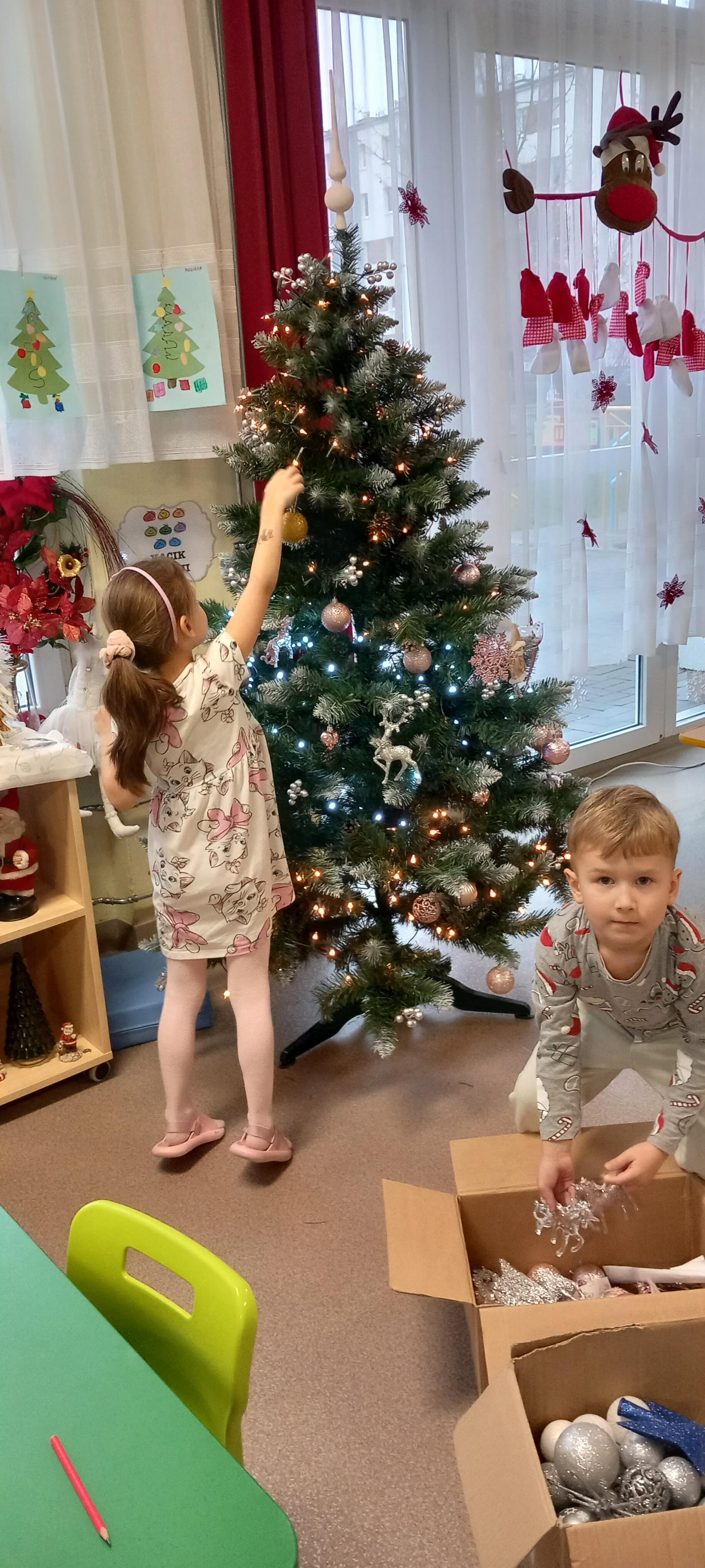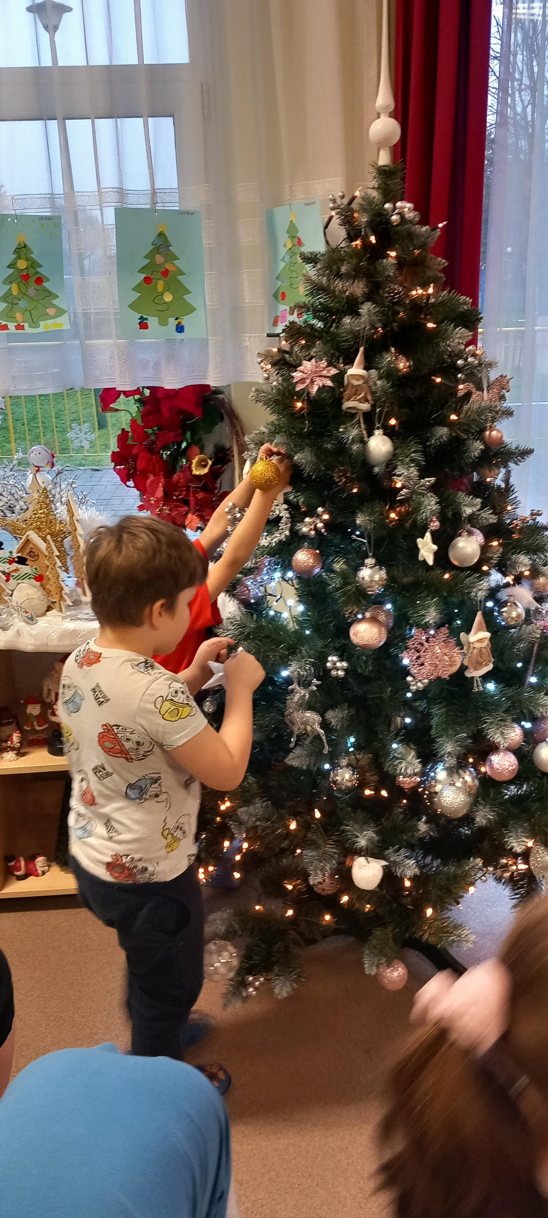 Piękna i kolorowa choinka już gotowa w grupie Jeżyki i Zajączki :)