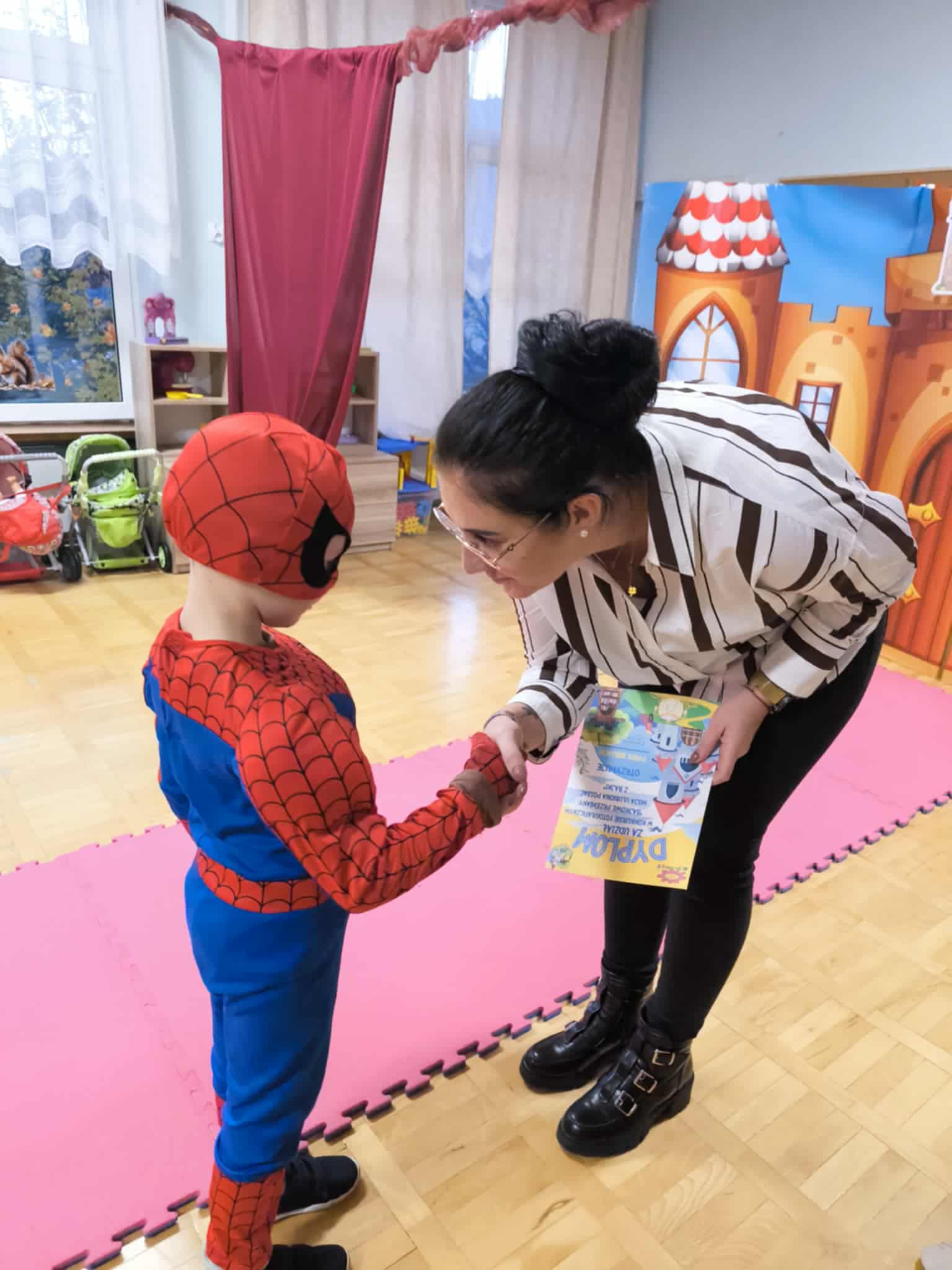 Z okazji Dnia Postaci z Bajek, 5 listopada 2025r. w naszym Przedszkolu został zorganizowany konkurs fotograficzny pod hasłem „Bajkowe przemiany z Rodzicami"”. Celem konkursu było rozwijanie kreatywności, wyobraźni oraz popularyzacja fotografii jako formy artystycznego wyrazu .Dzieci z różnych grup wraz z Rodzicami przygotowali wyjątkowe zdjęcia, w których wcielili się w swoich ulubionych bohaterów bajek . Do organizatorów napłynęło 13 prac, wśród których znalazły się zarówno klasyczne postacie z bajek Disneya, jak i bohaterowie współczesnych animacji. Jury miało bardzo trudne zadanie, ponieważ wszystkie zdjęcia zachwycały pomysłowością, dbałością o szczegóły i radością płynącą ze wspólnej zabawy. Po burzliwych obradach komisja konkursowa przyznała wszystkim dzieciom pierwsze miejsce. Wszystkim uczestnikom serdecznie gratulujemy i dziękujemy za udział w konkursie. Prace można obejrzeć na wystawie w przedszkolnym holu oraz na stronie internetowej przedszkola. Już teraz zapraszamy do udziału w kolejnych konkursach – niech magia bajek trwa przez cały rok!