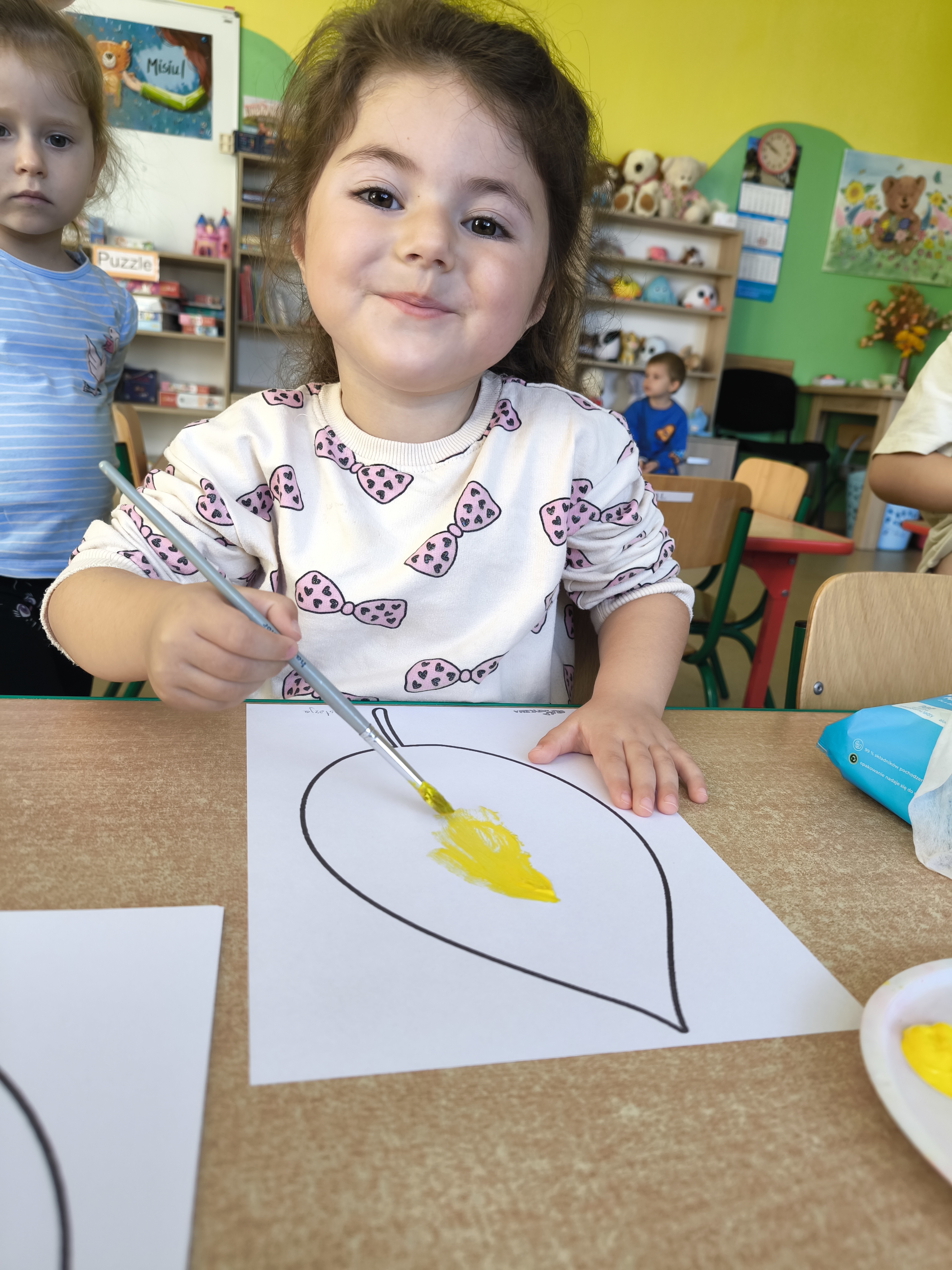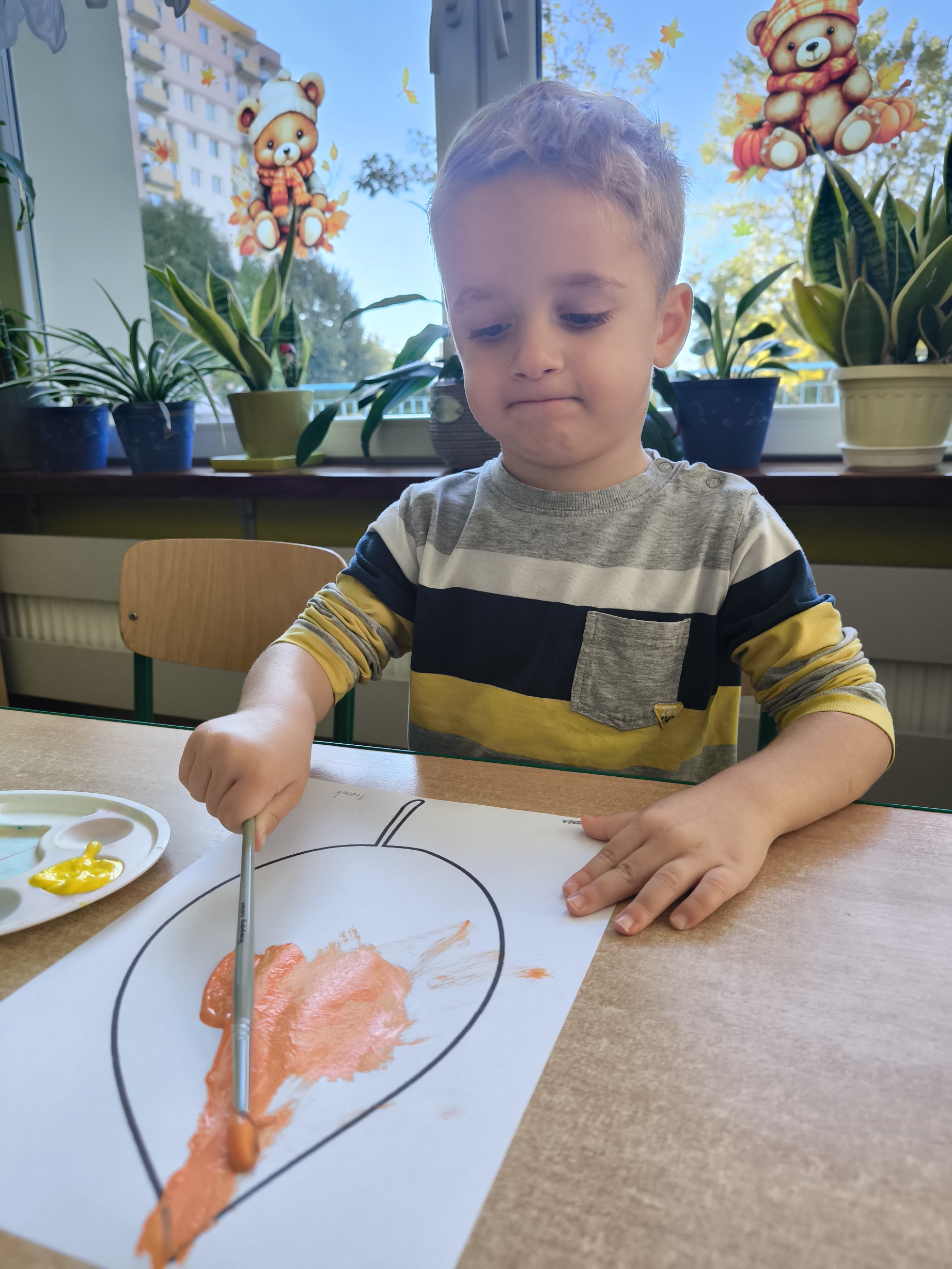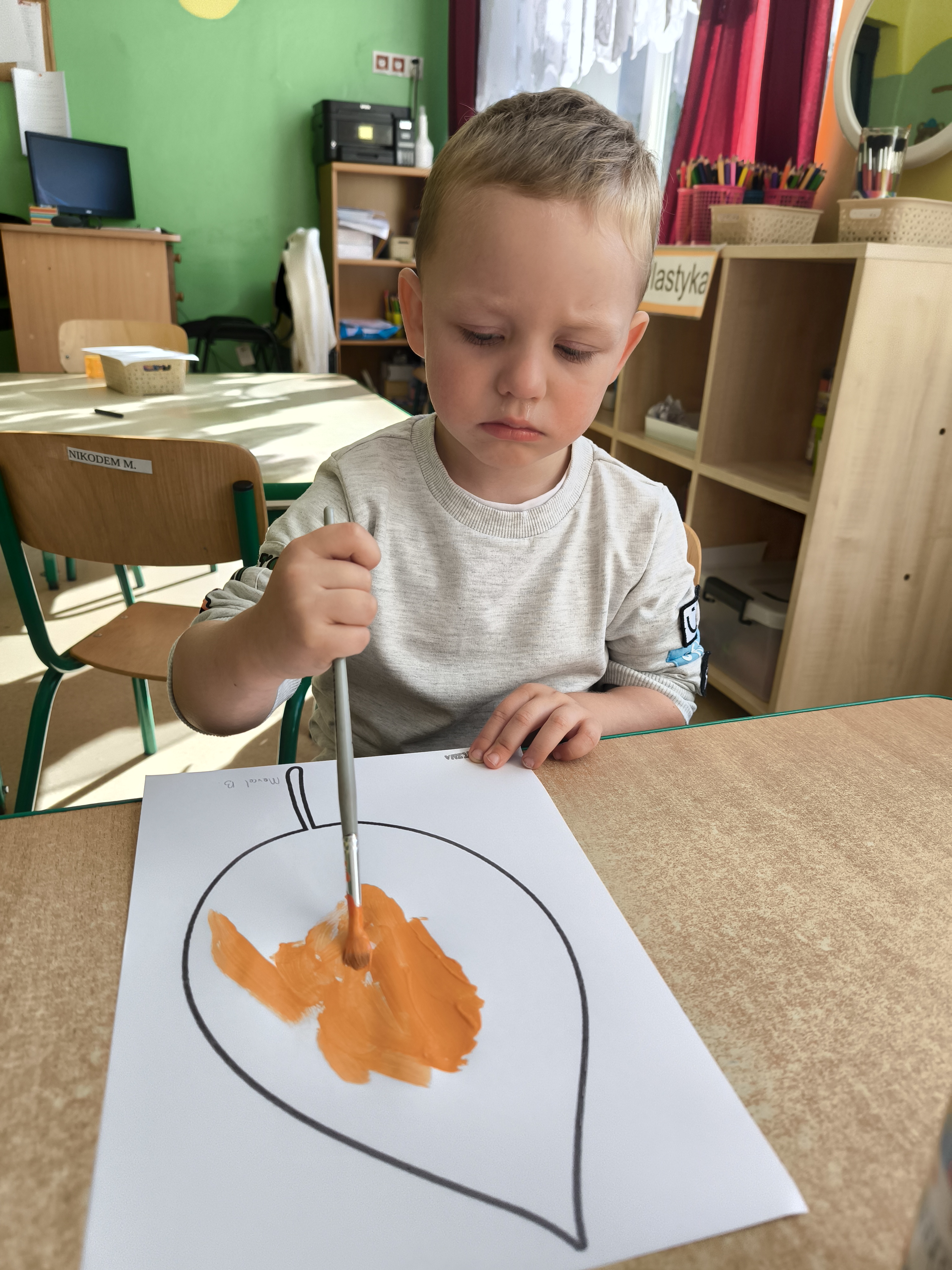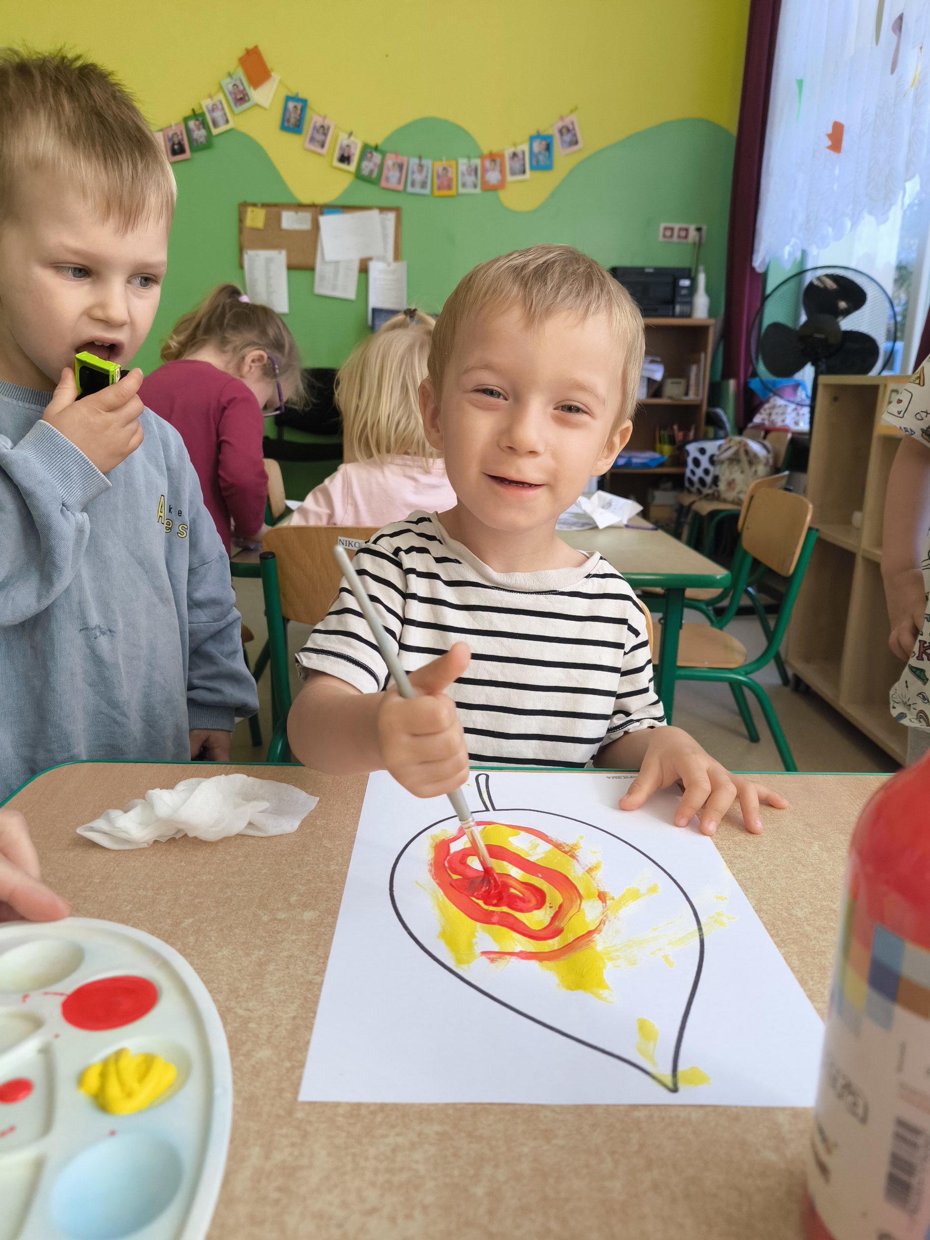Praca plastyczna - malowanie farbami jesiennych liści.