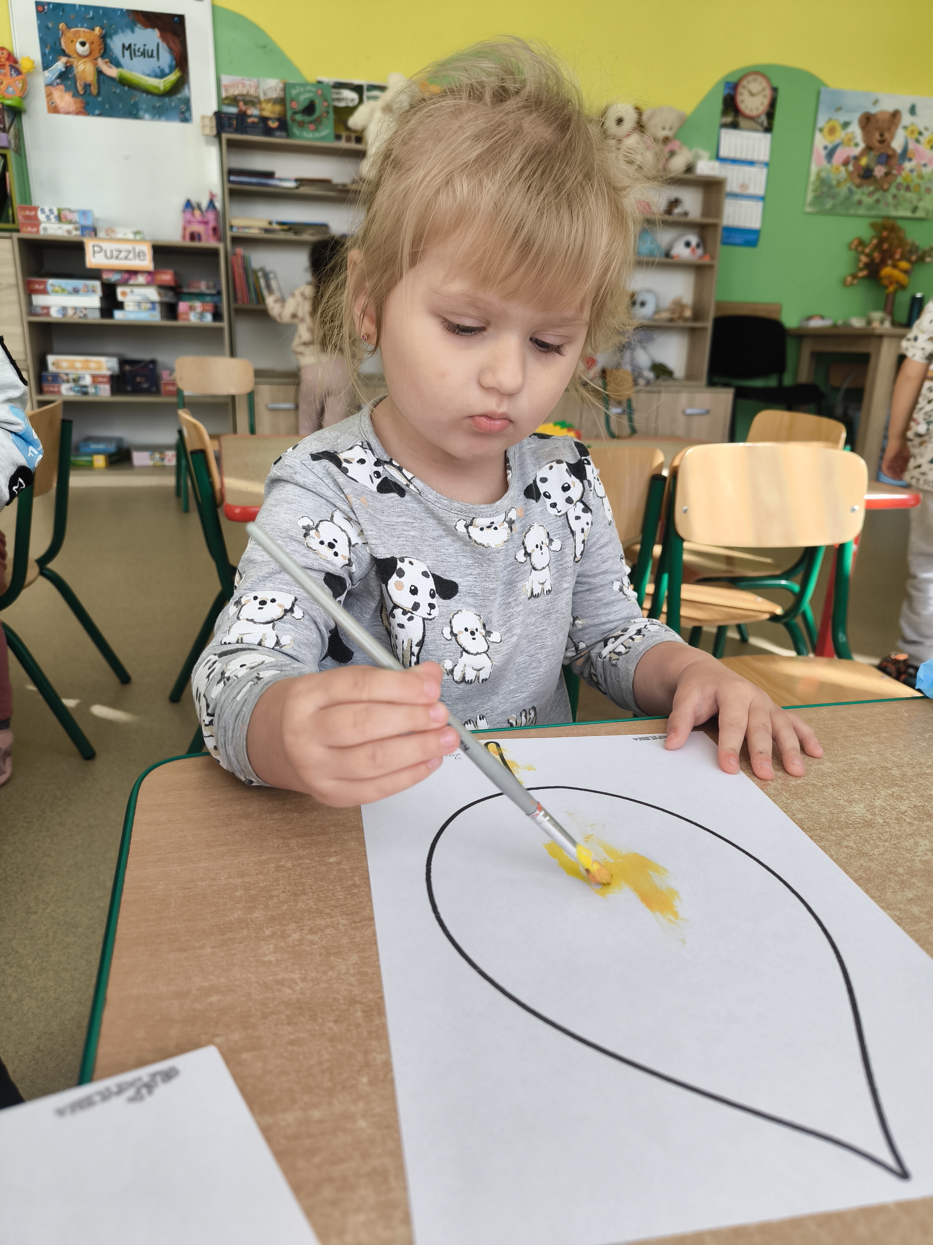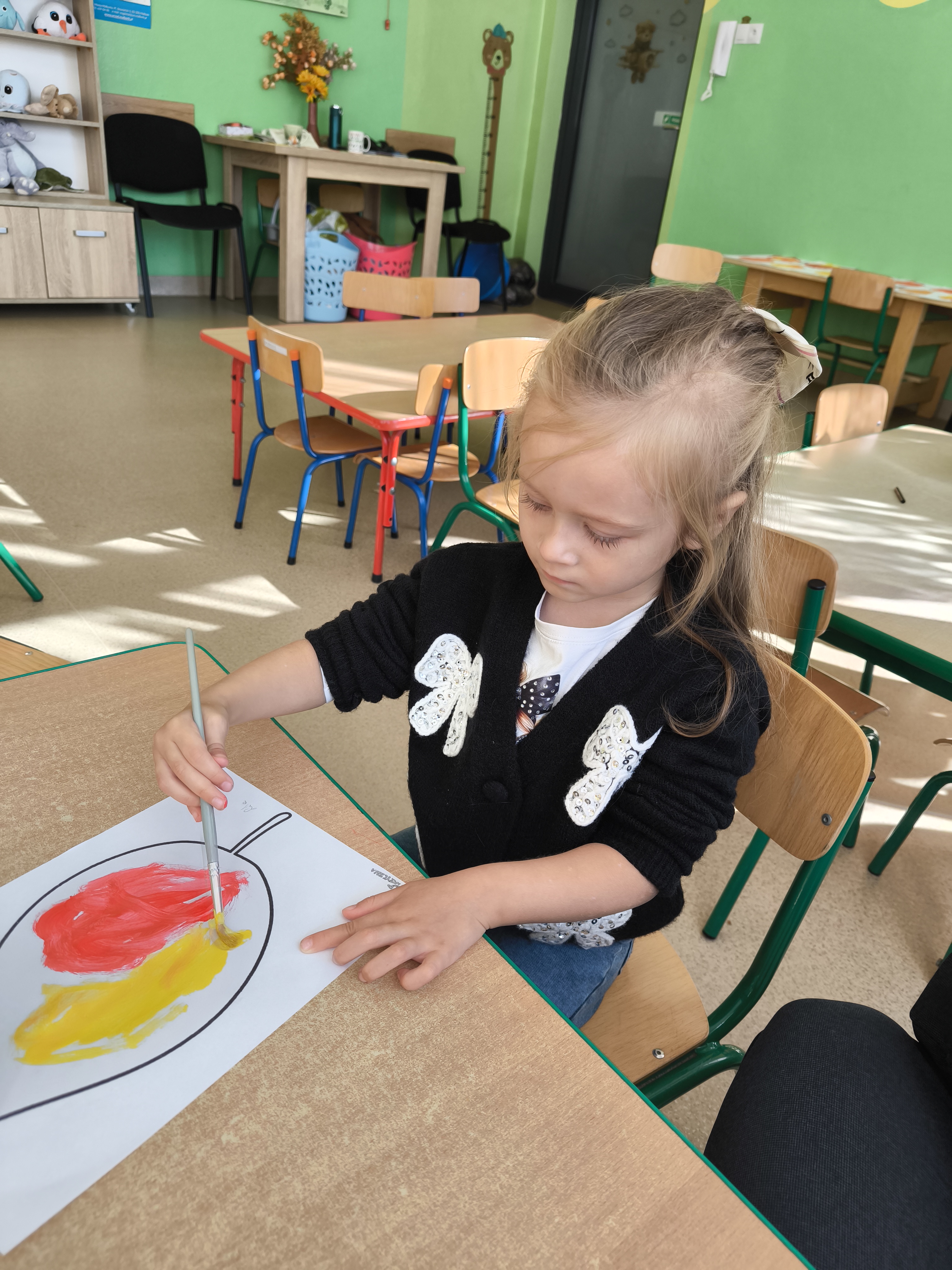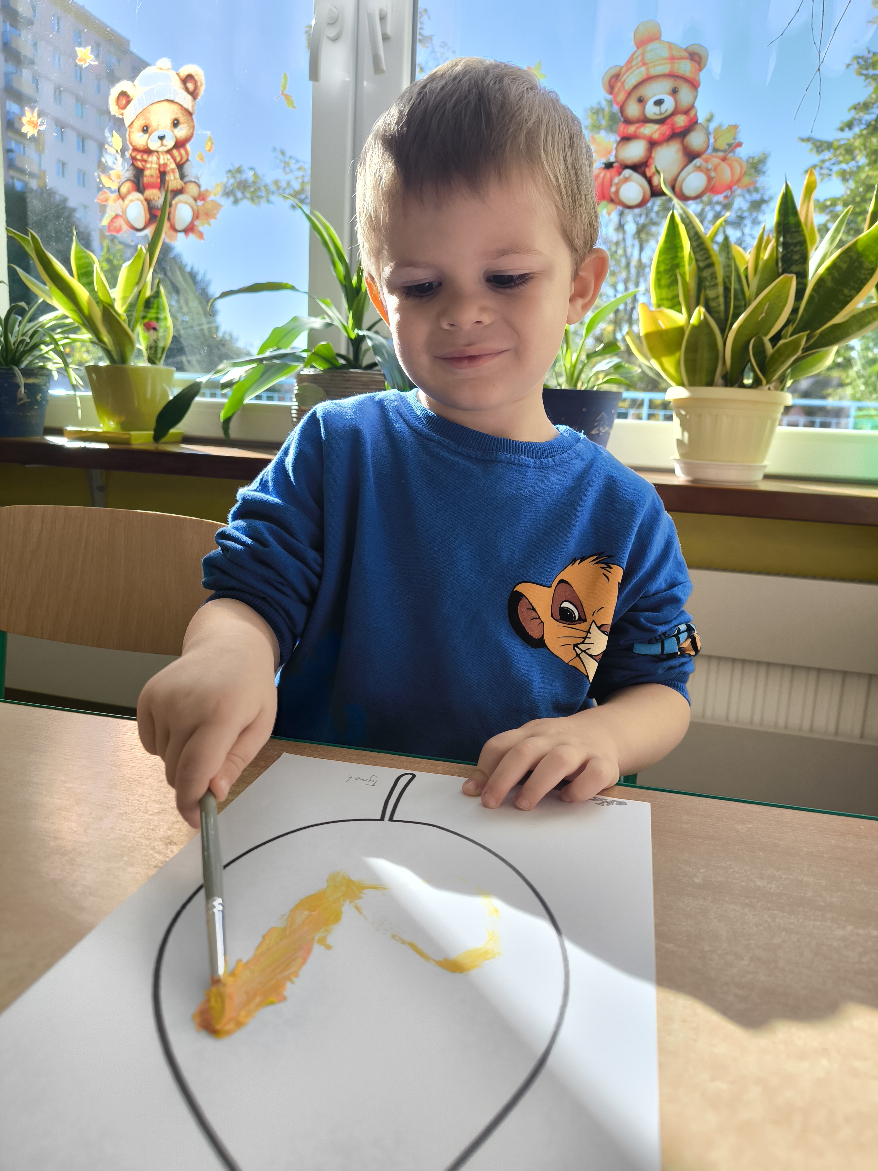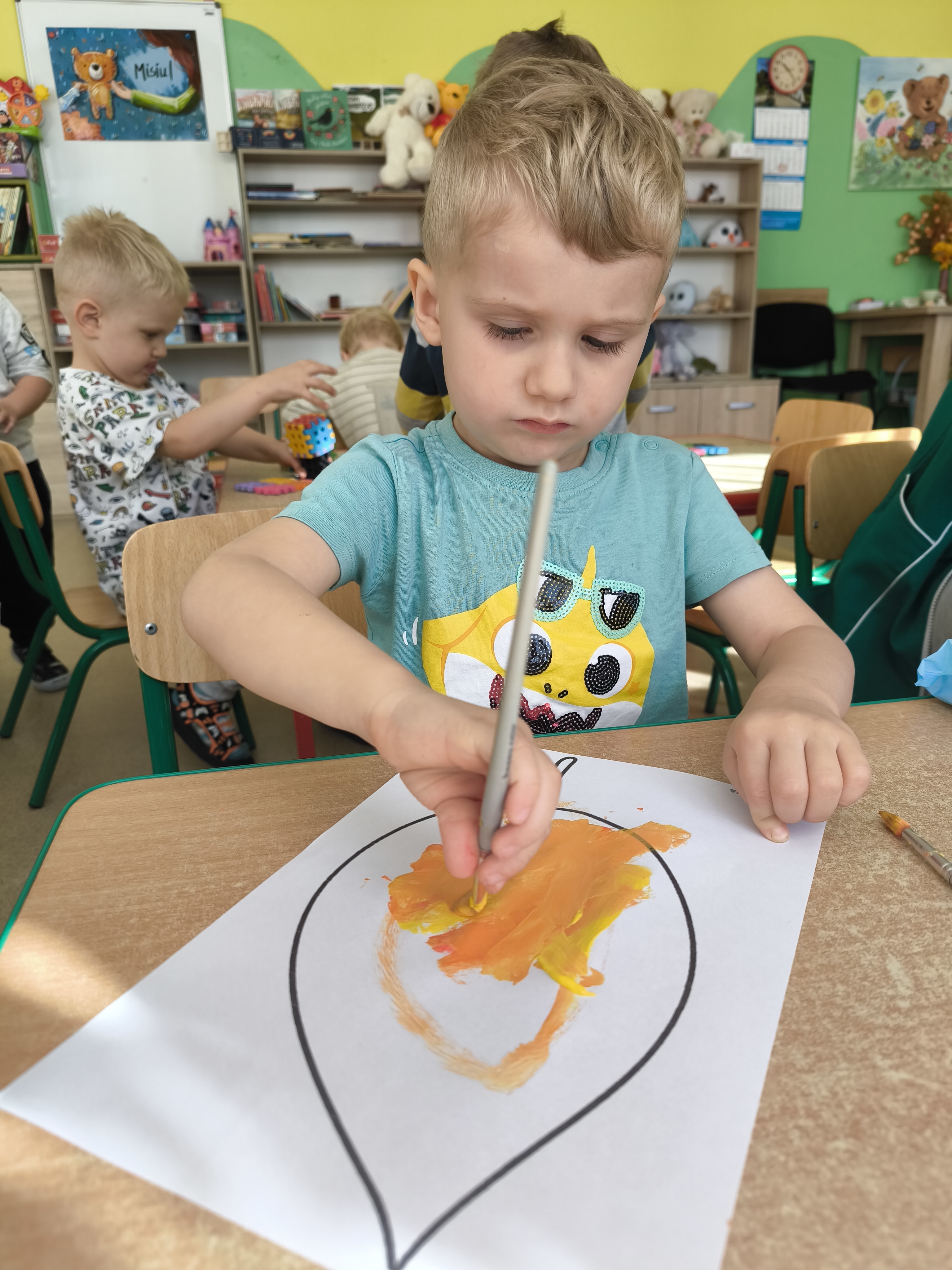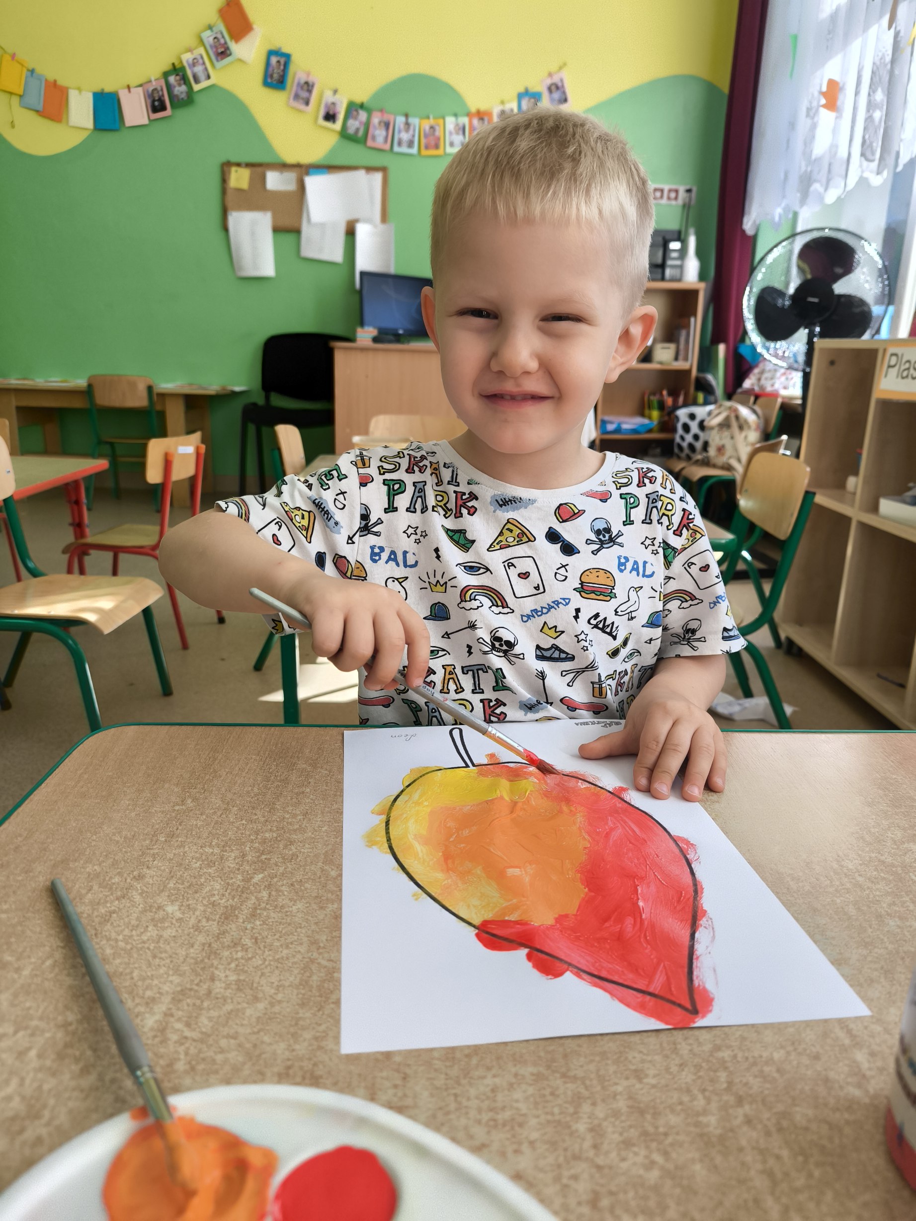 Praca plastyczna - malowanie farbami jesiennych liści.