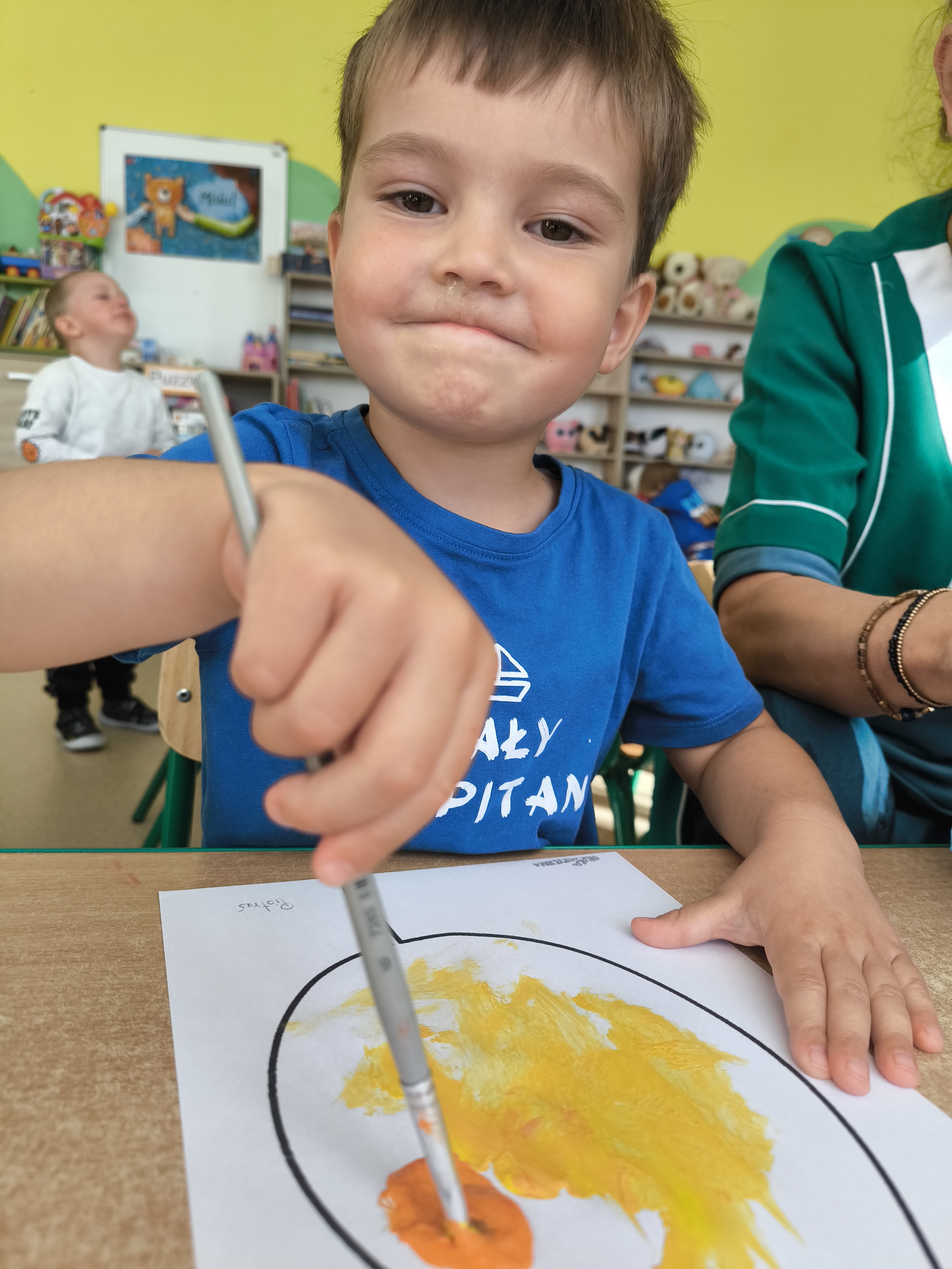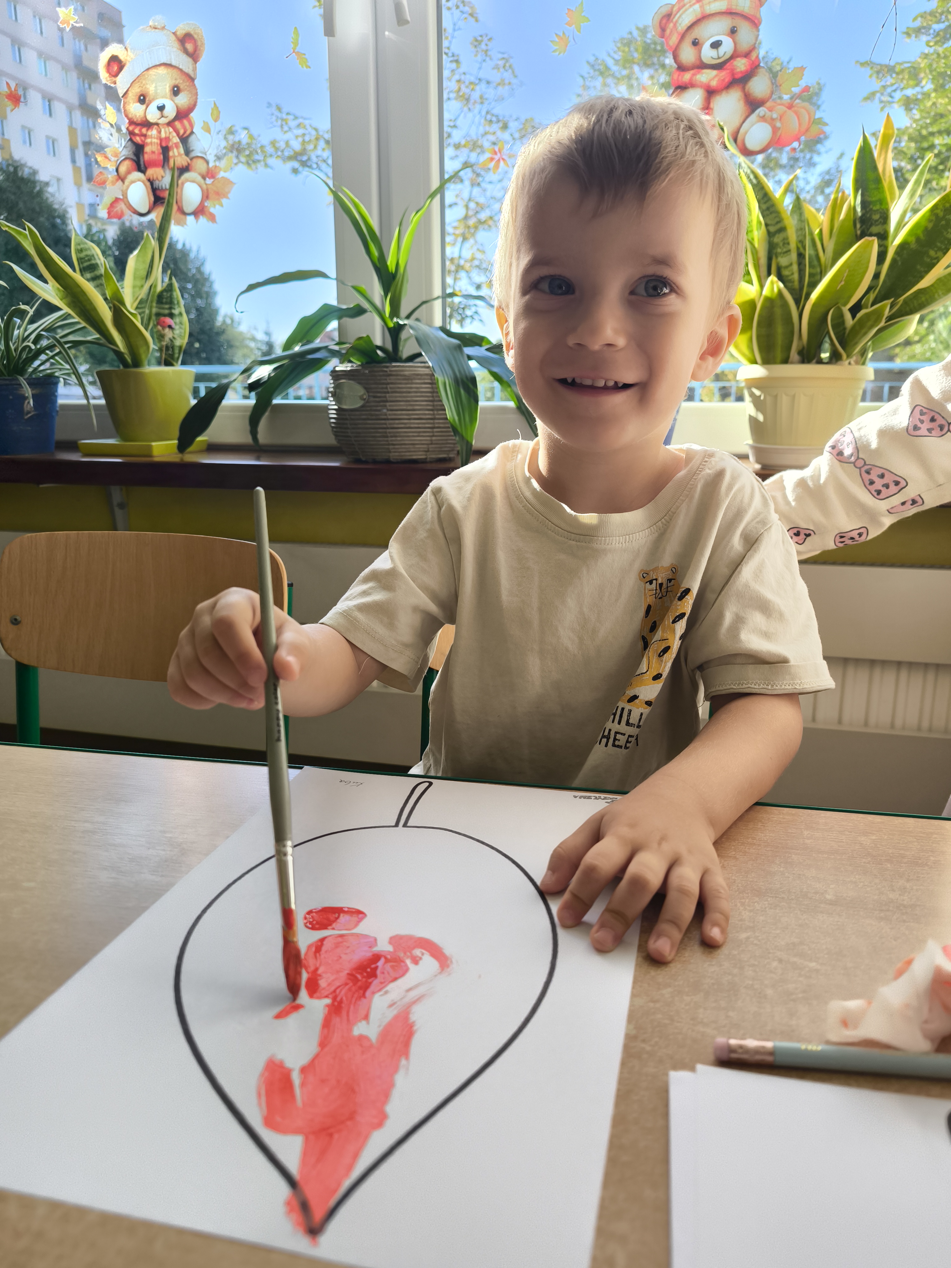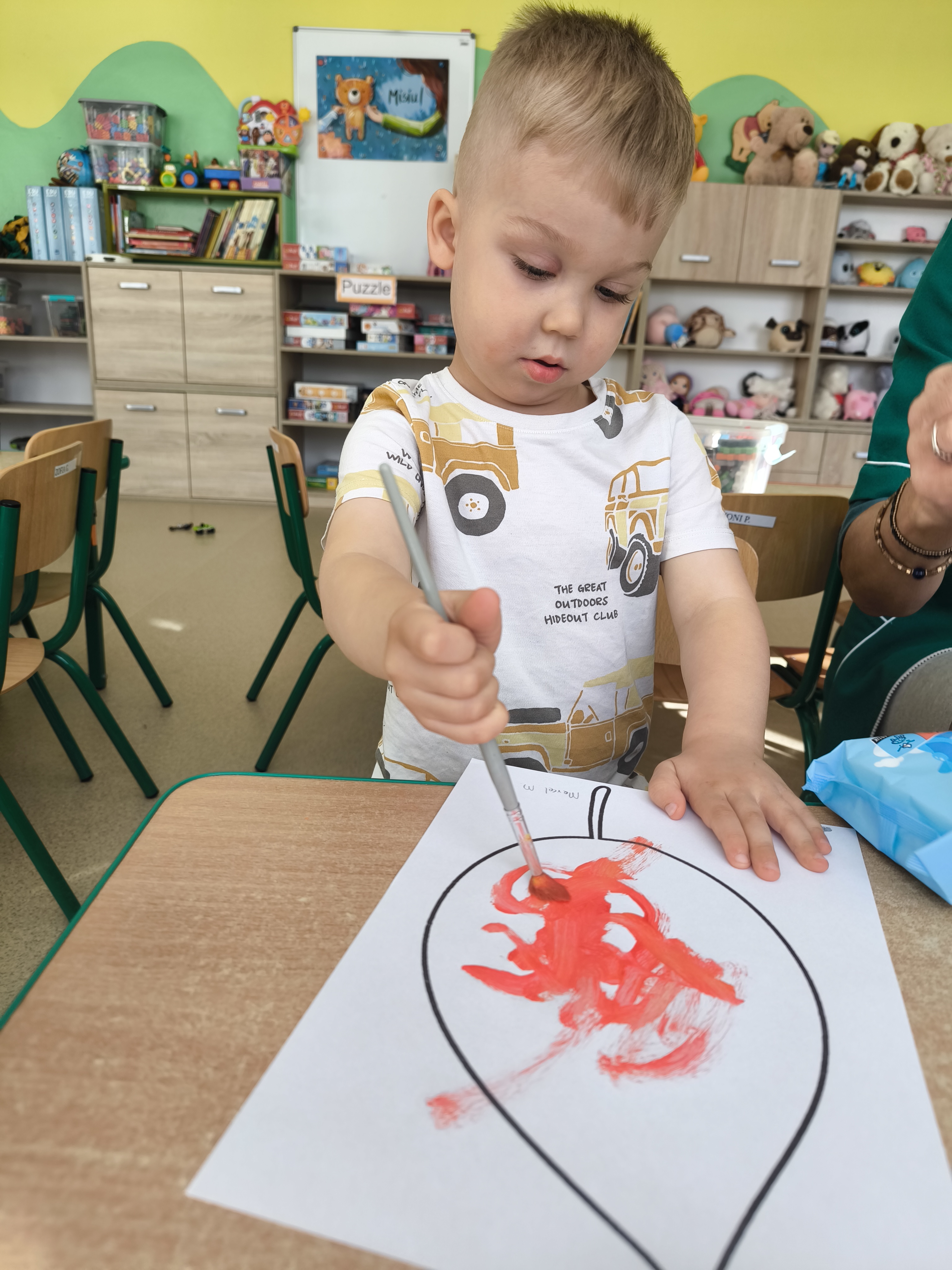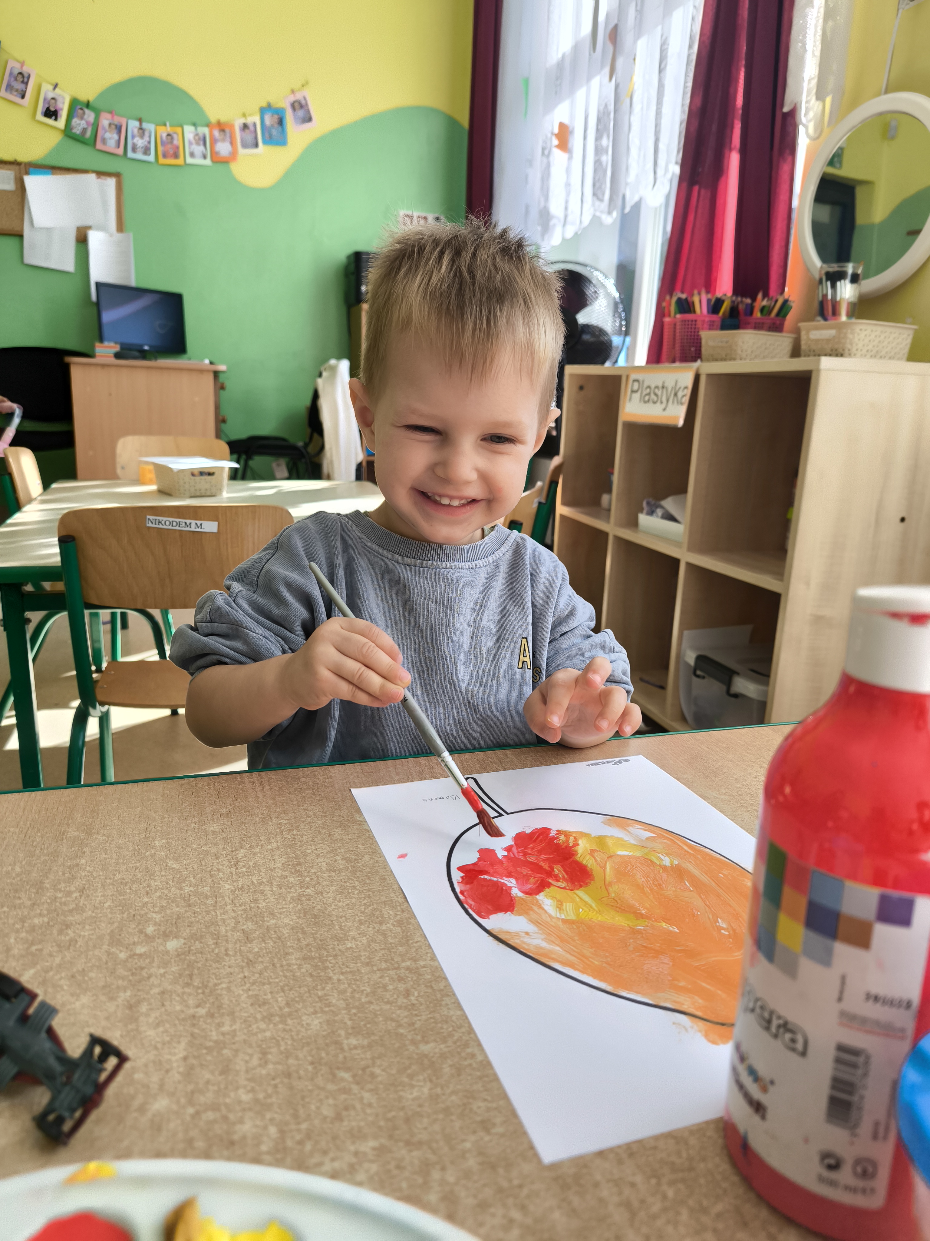 Praca plastyczna - malowanie farbami jesiennych liści.