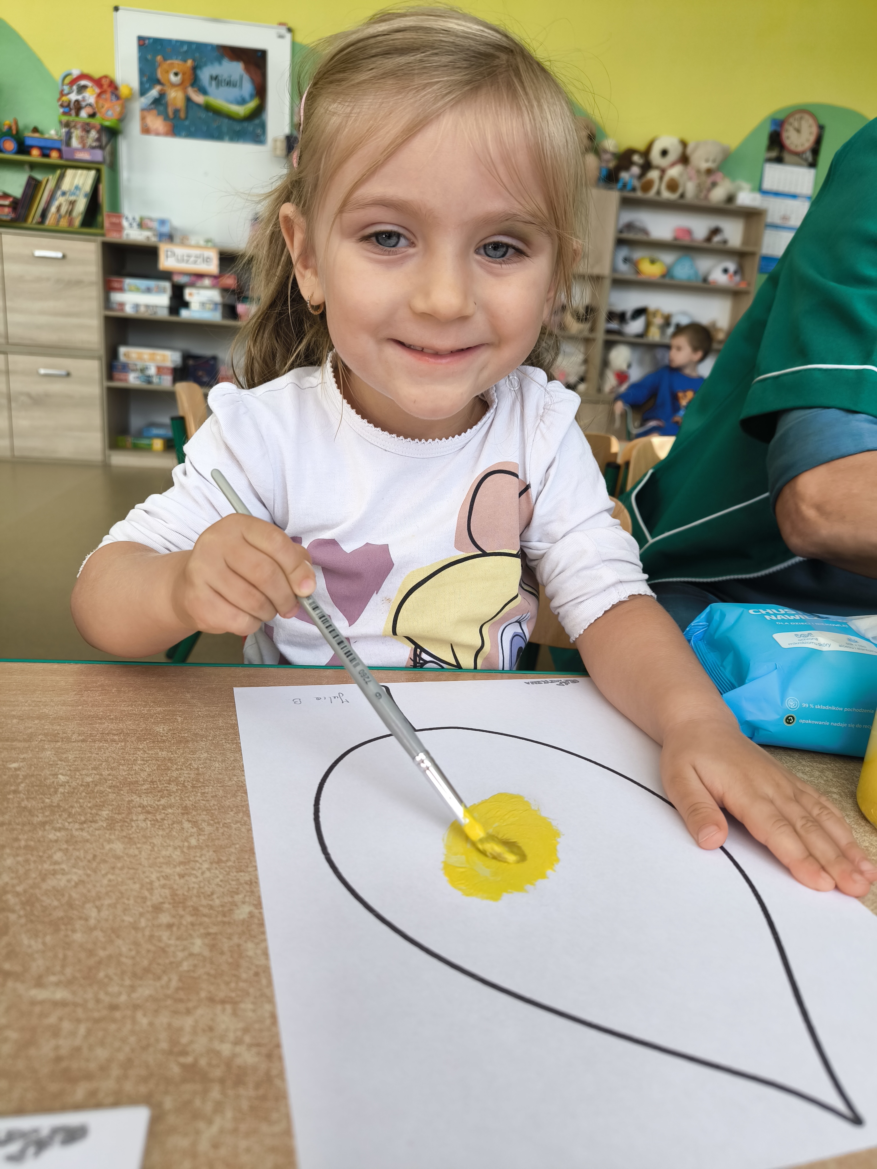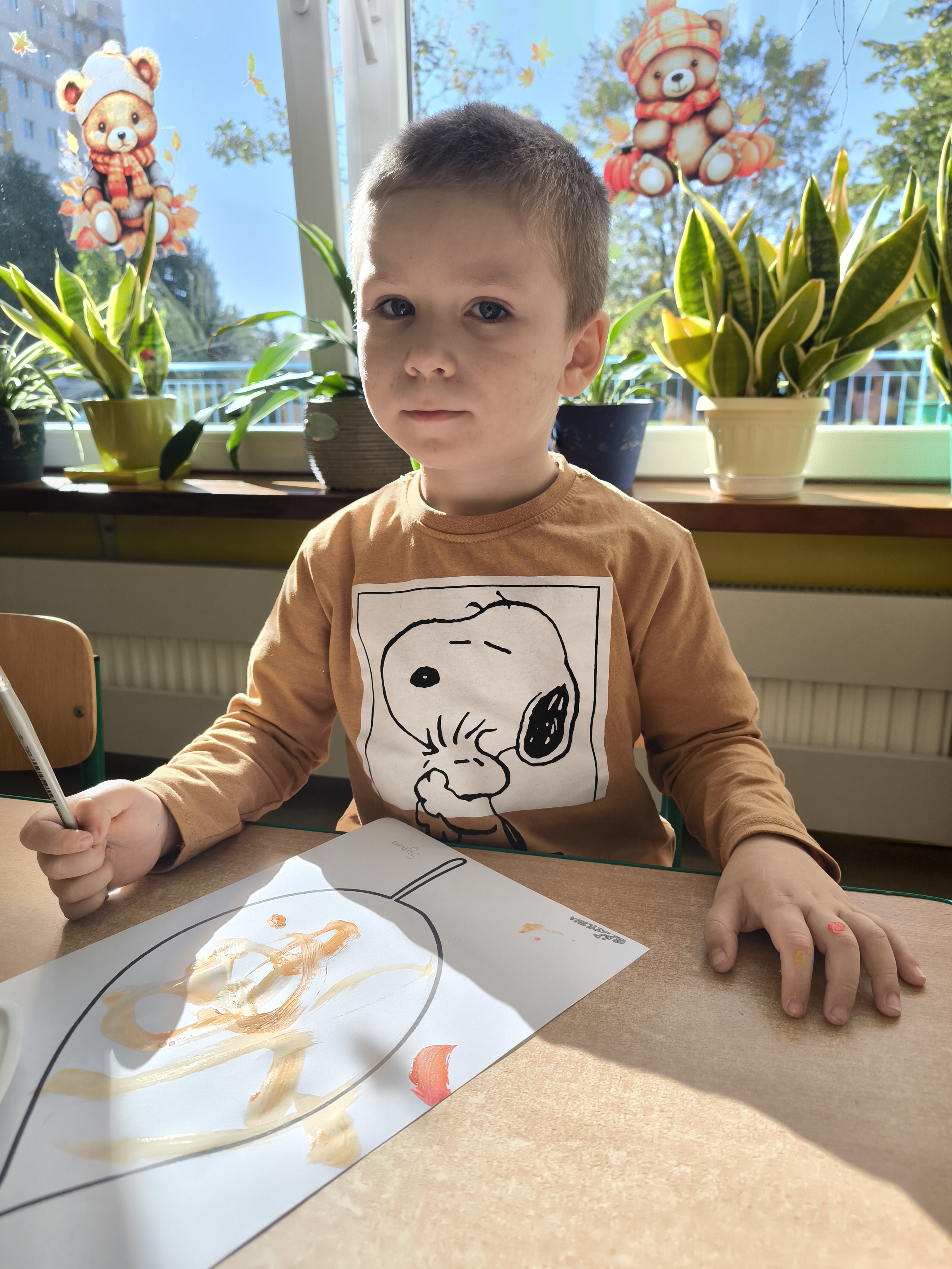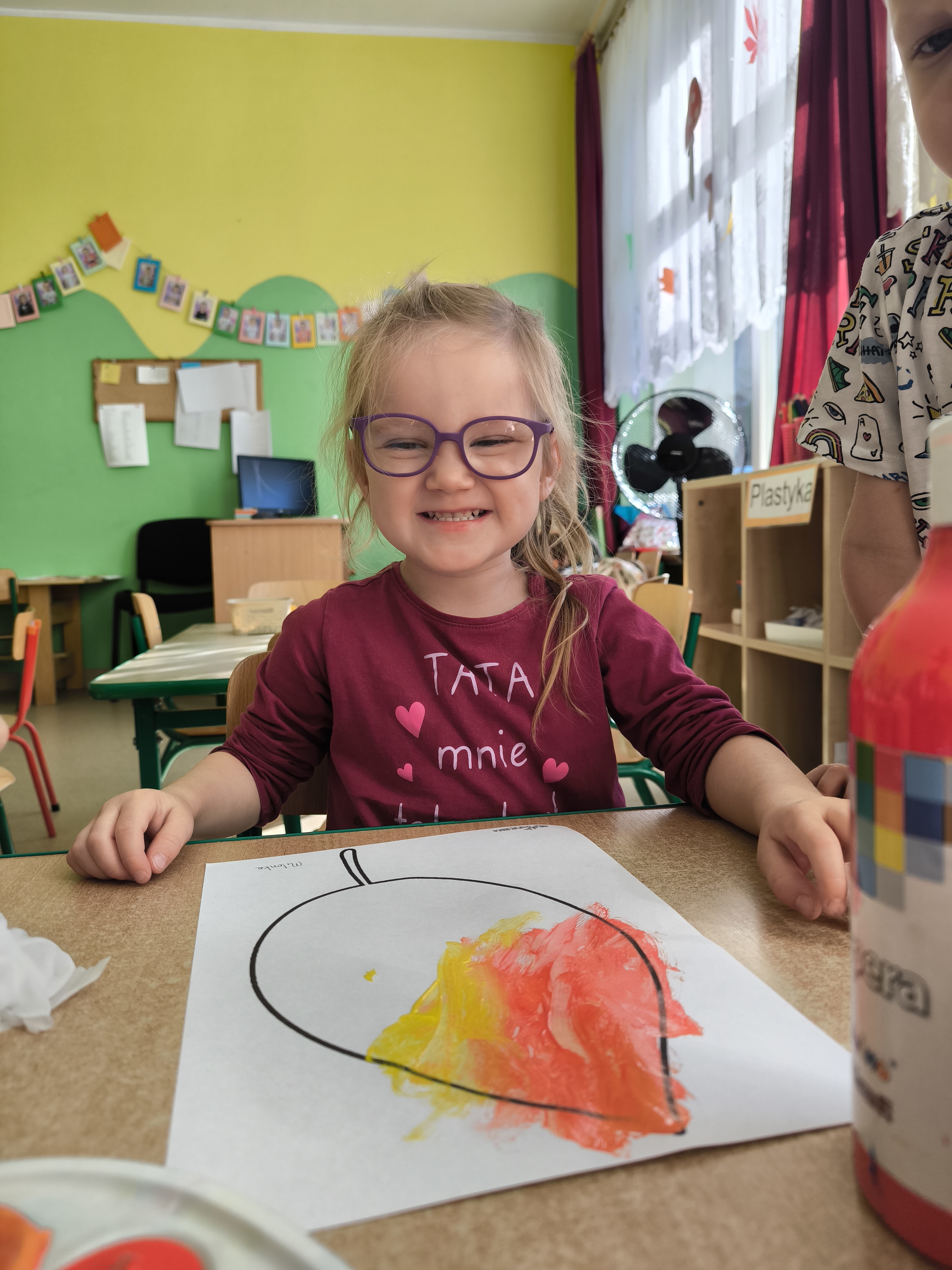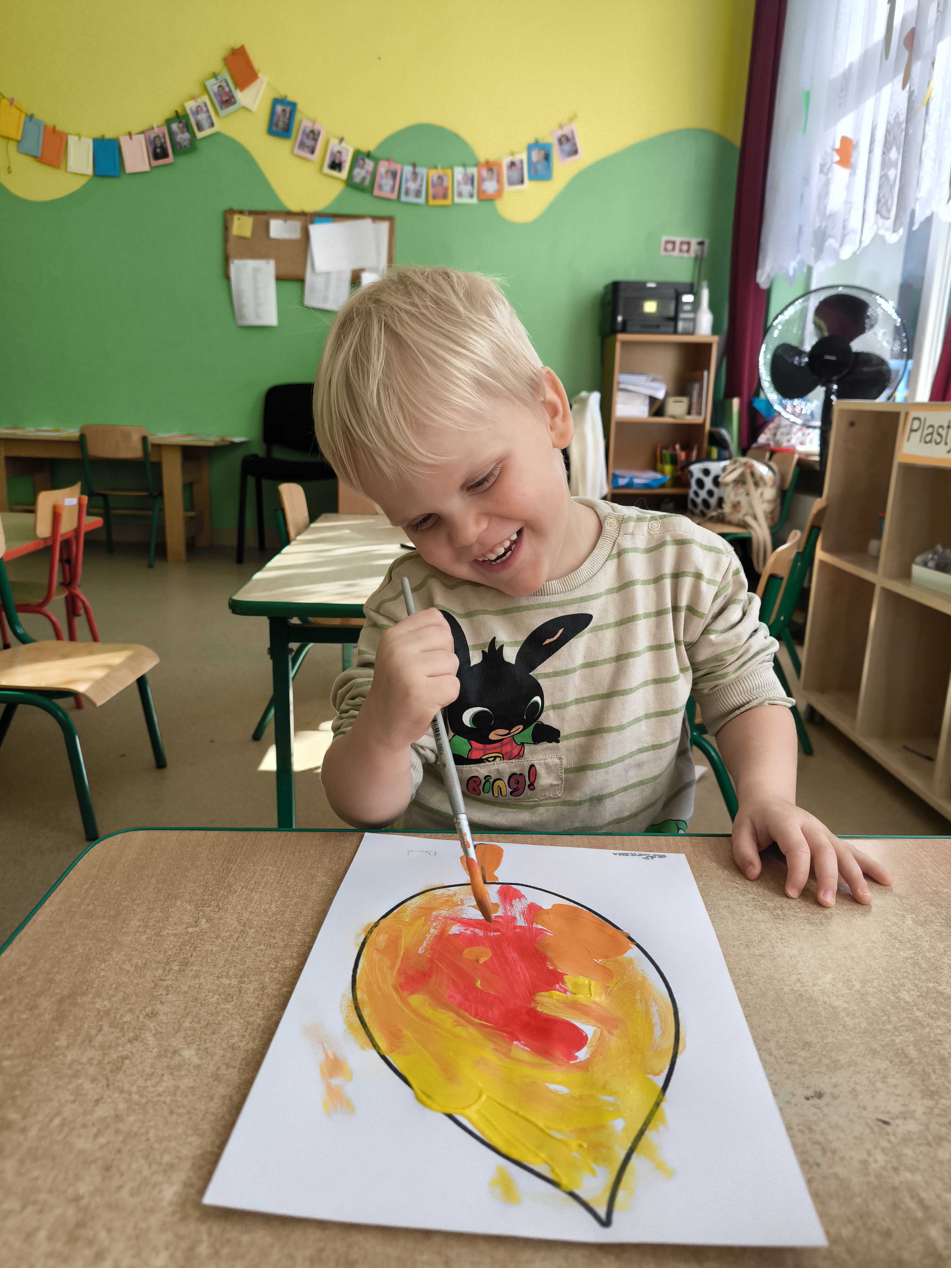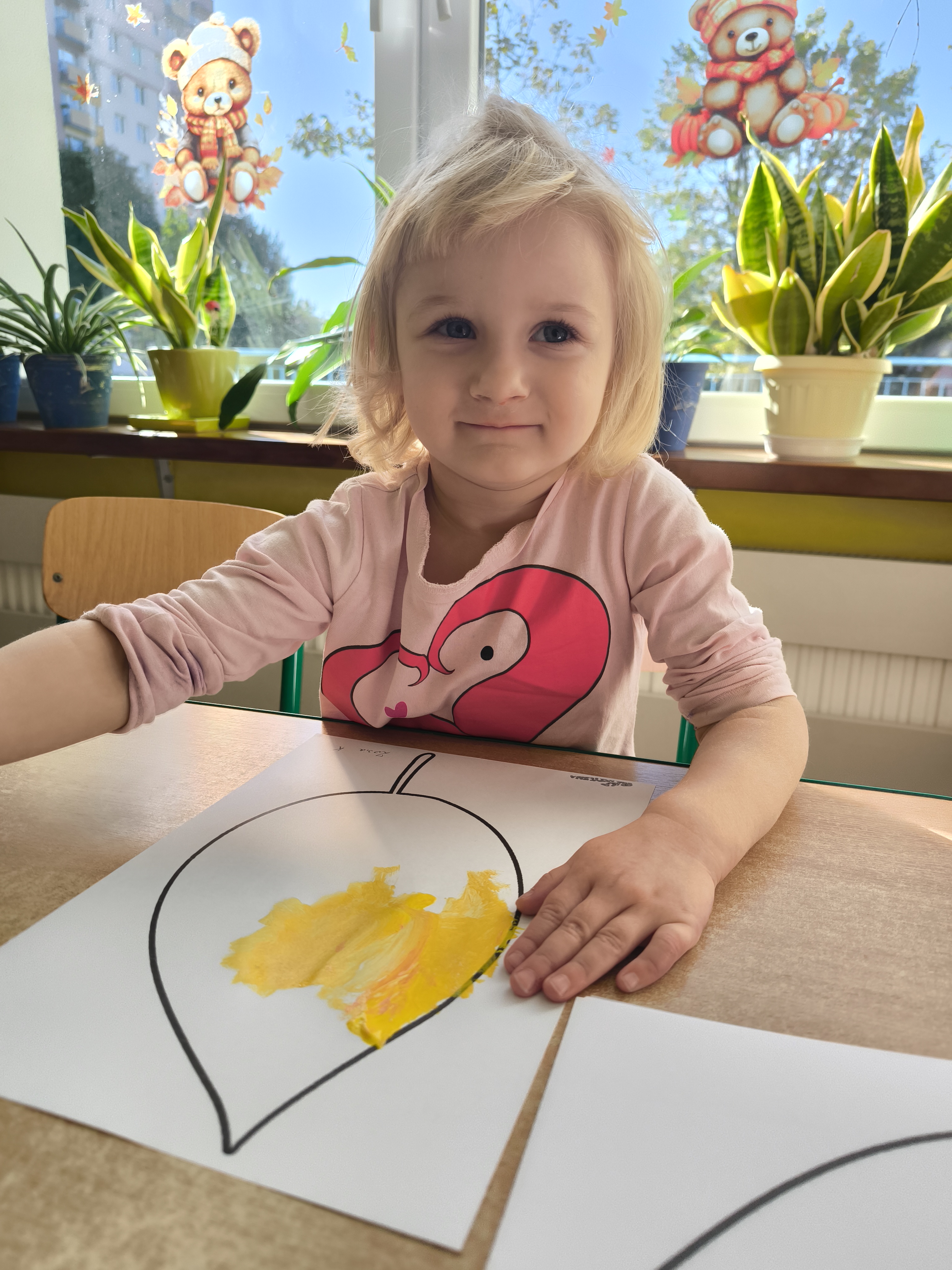Praca plastyczna - malowanie farbami jesiennych liści.