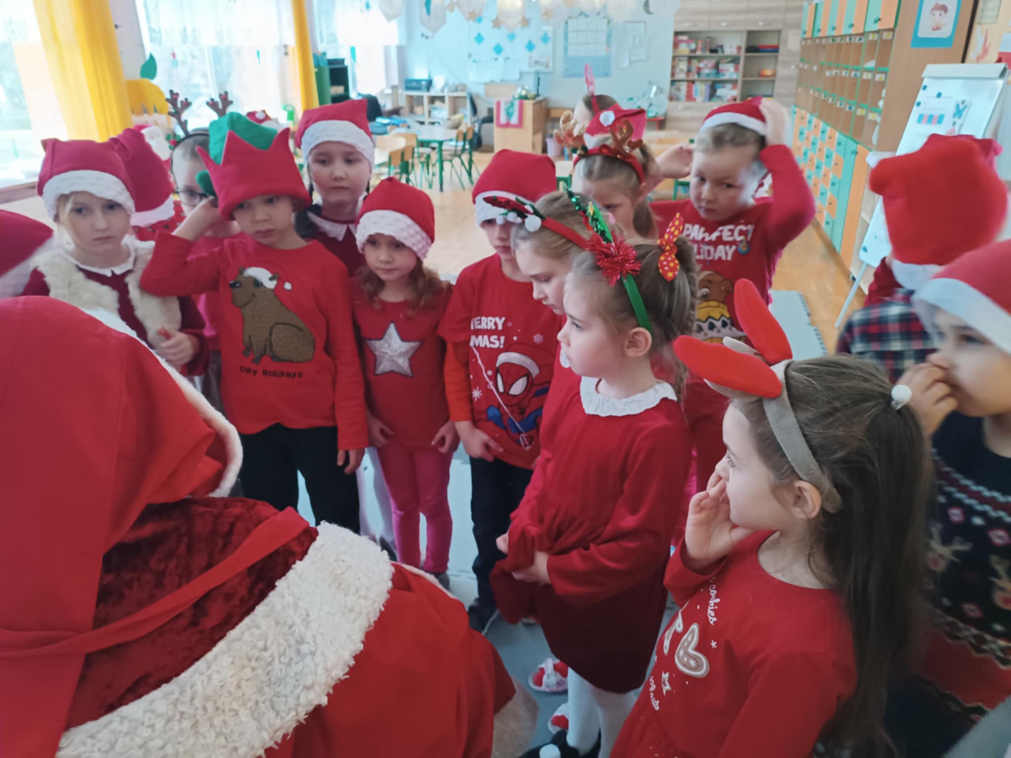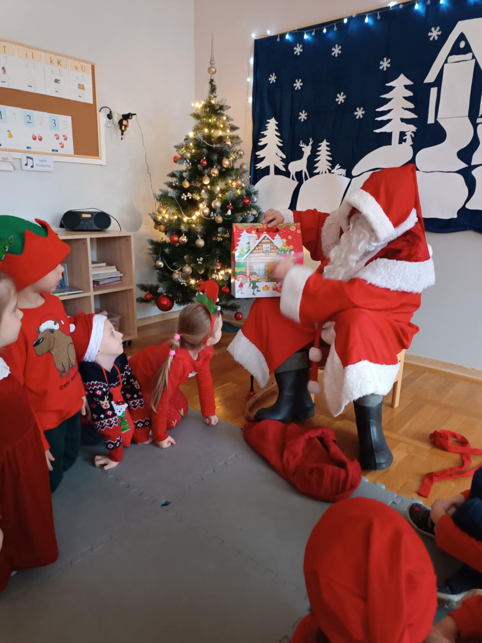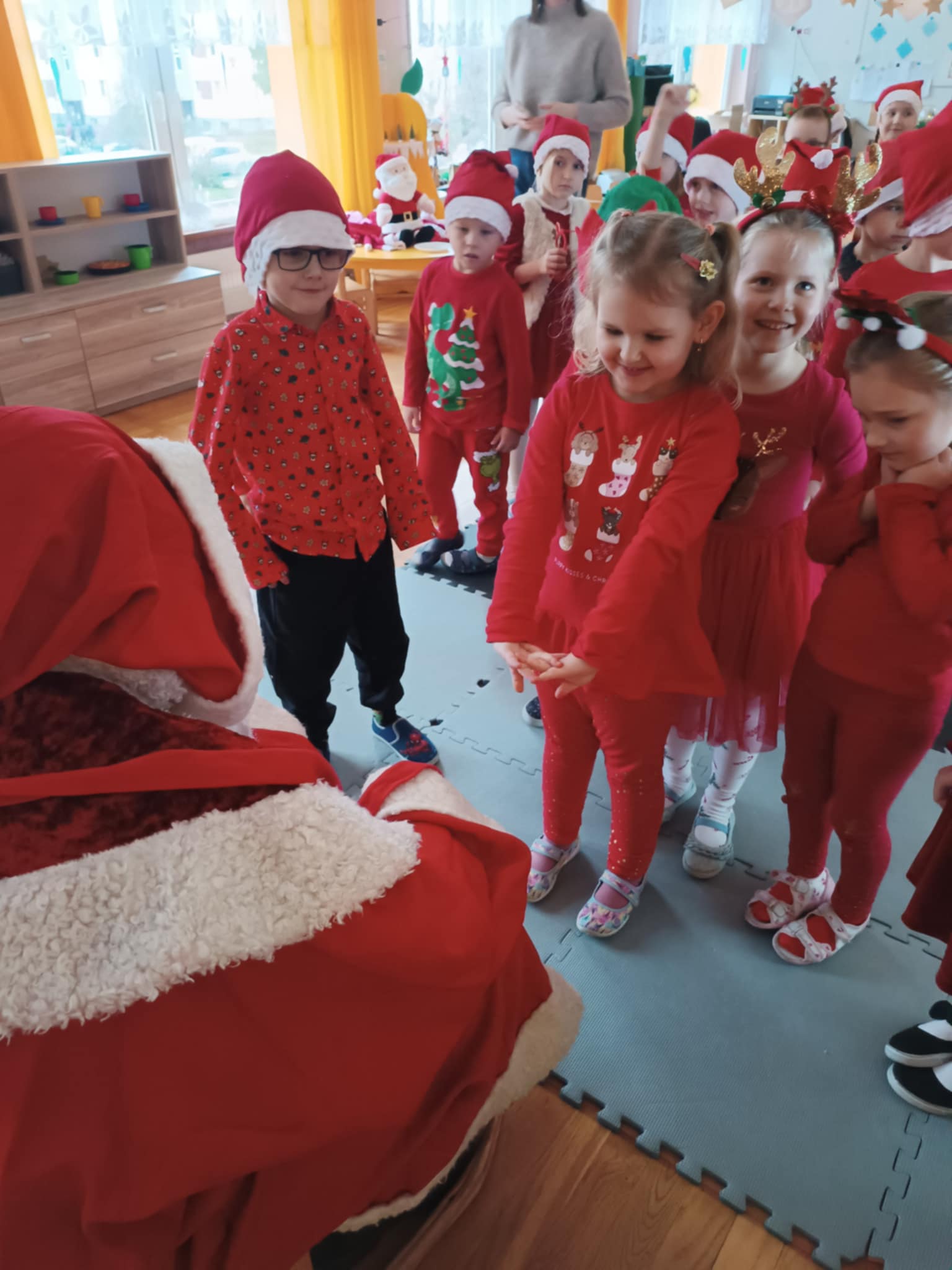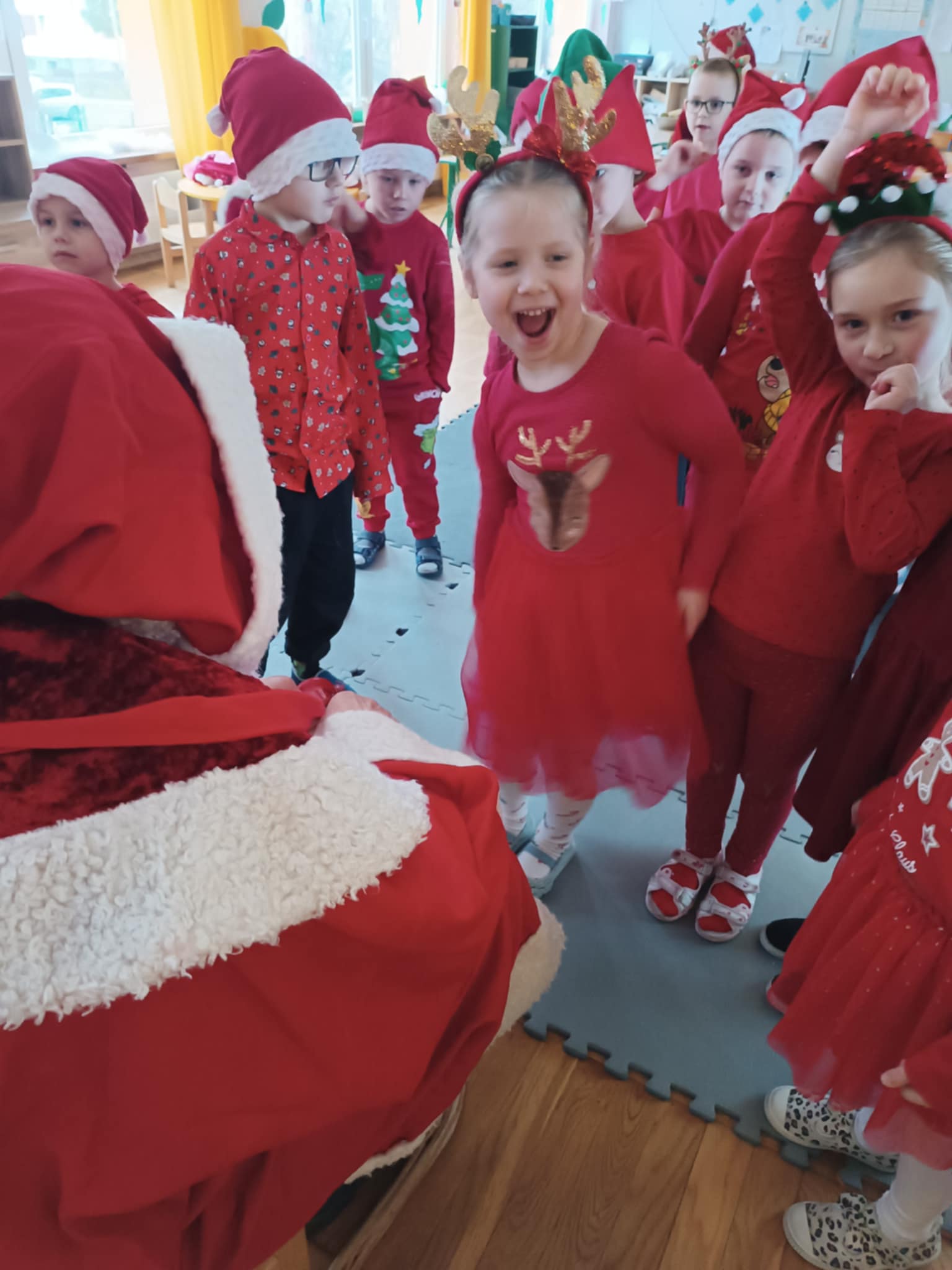 Po powrocie do przedszkola na dzieci czekała jeszcze wspaniała niespodzianka – odwiedził nas Święty Mikołaj, który wręczył wszystkim prezenty. Radości i uśmiechów nie było końca!