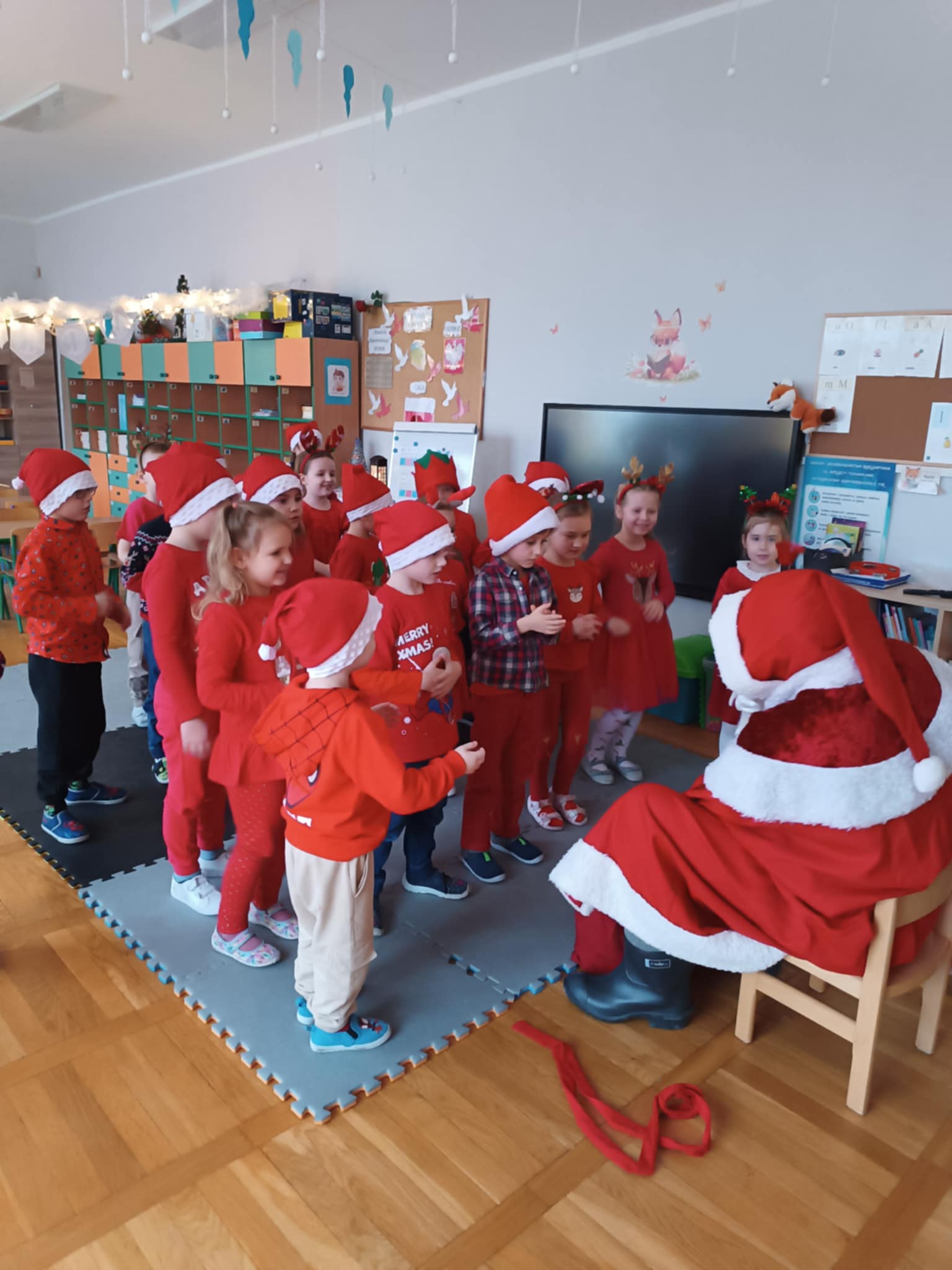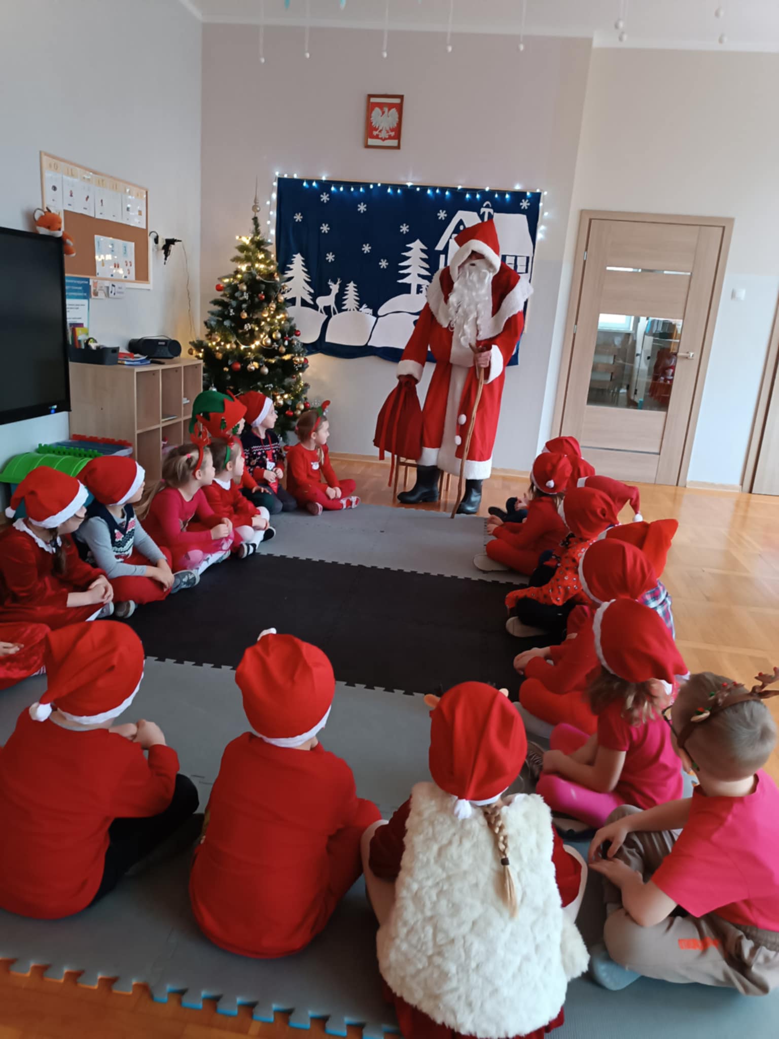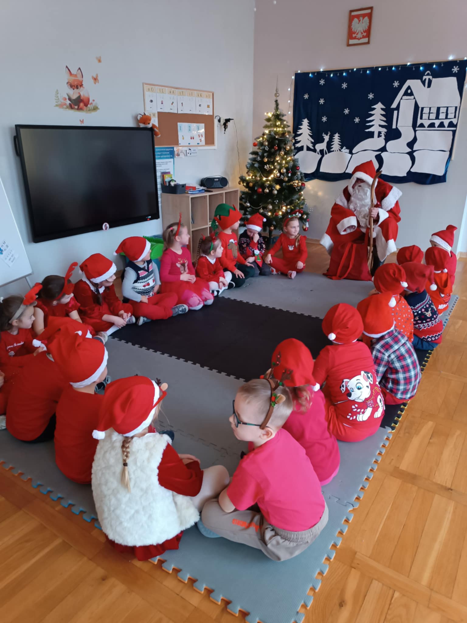 Po powrocie do przedszkola na dzieci czekała jeszcze wspaniała niespodzianka – odwiedził nas Święty Mikołaj, który wręczył wszystkim prezenty. Radości i uśmiechów nie było końca!