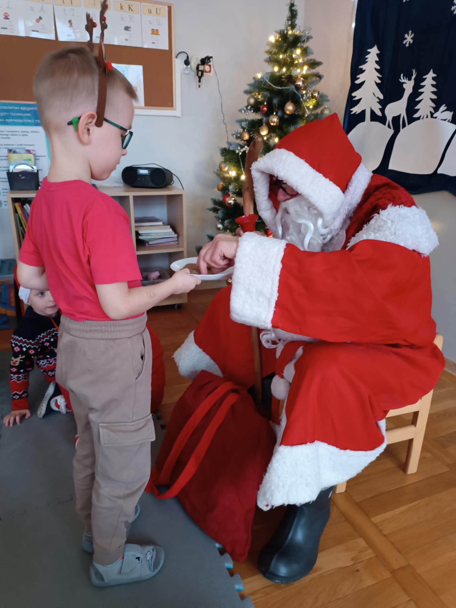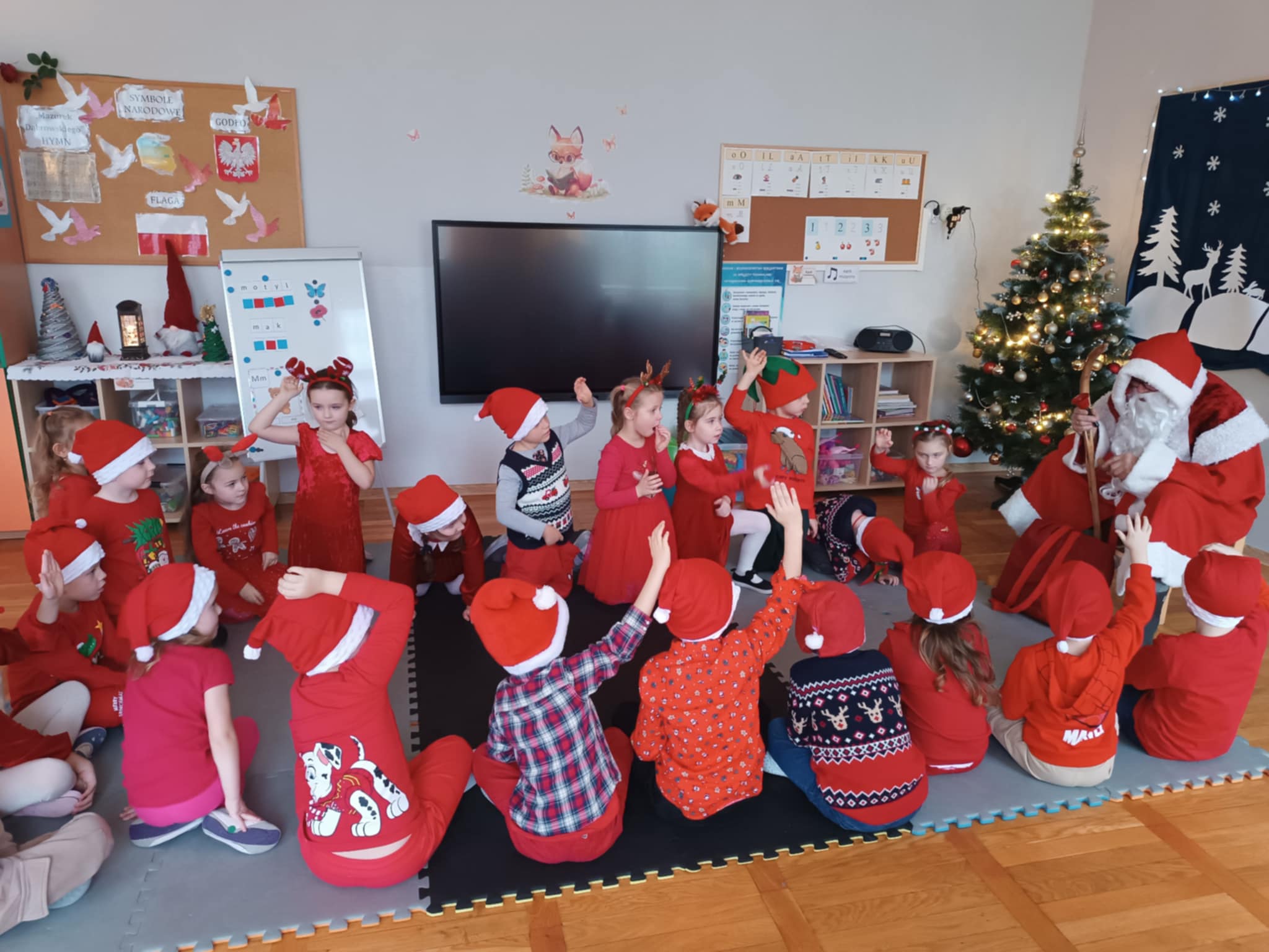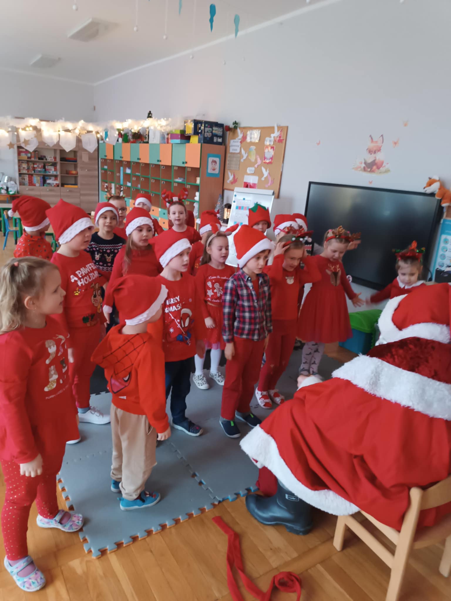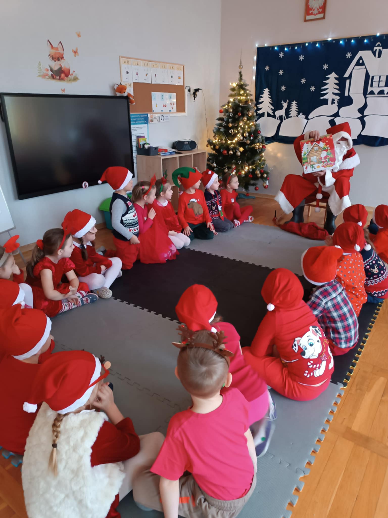 Po powrocie do przedszkola na dzieci czekała jeszcze wspaniała niespodzianka – odwiedził nas Święty Mikołaj, który wręczył wszystkim prezenty. Radości i uśmiechów nie było końca!