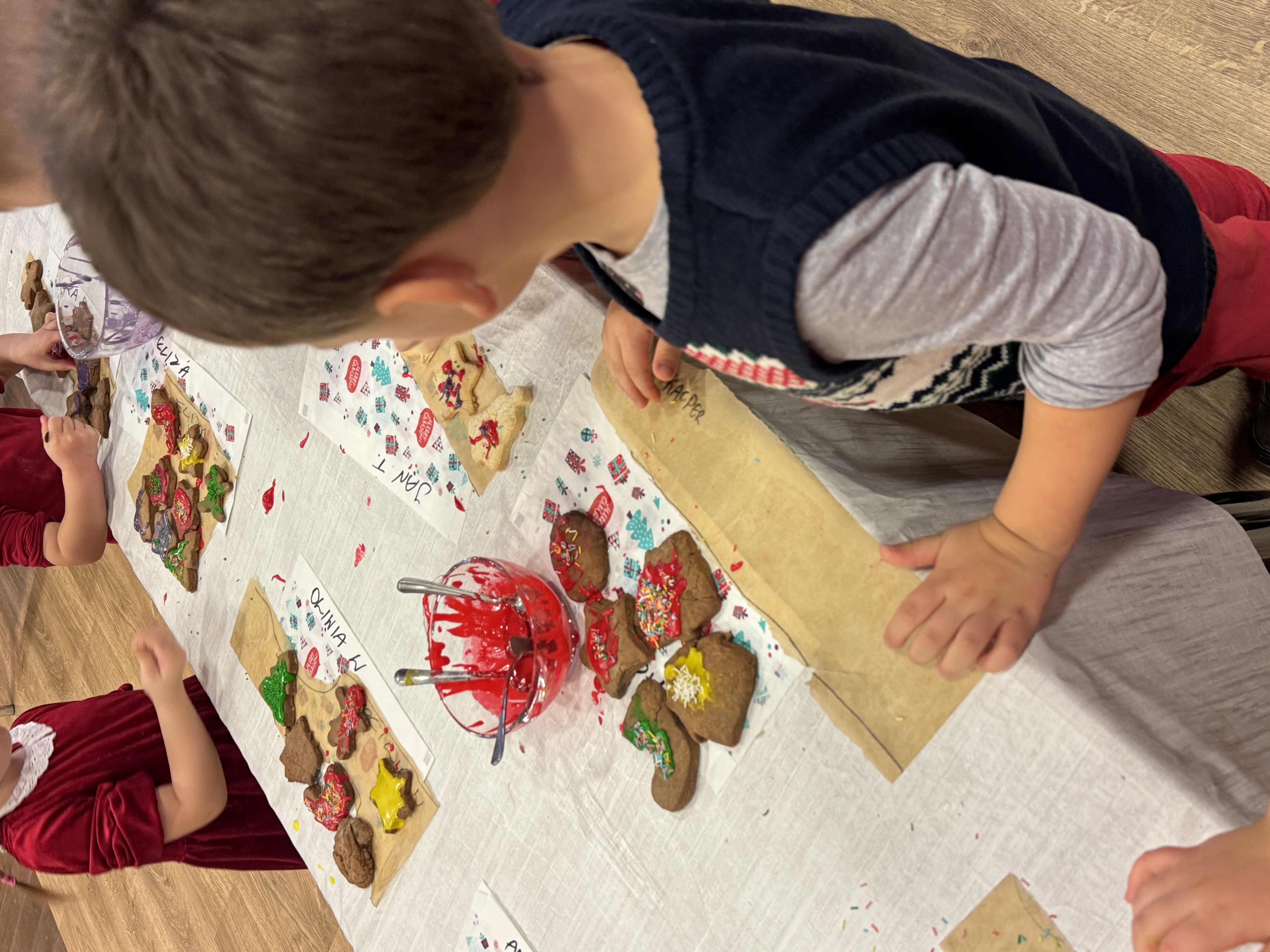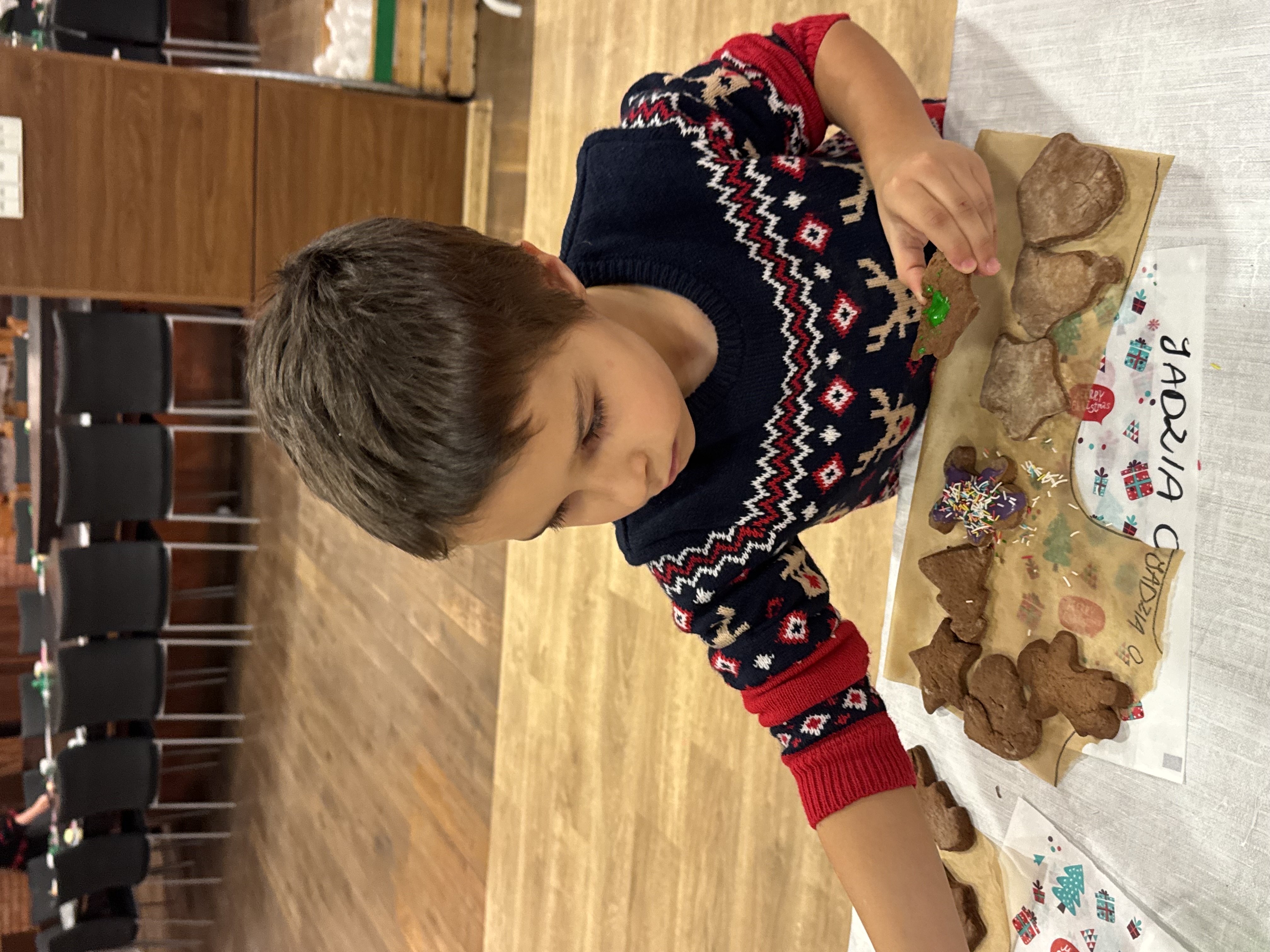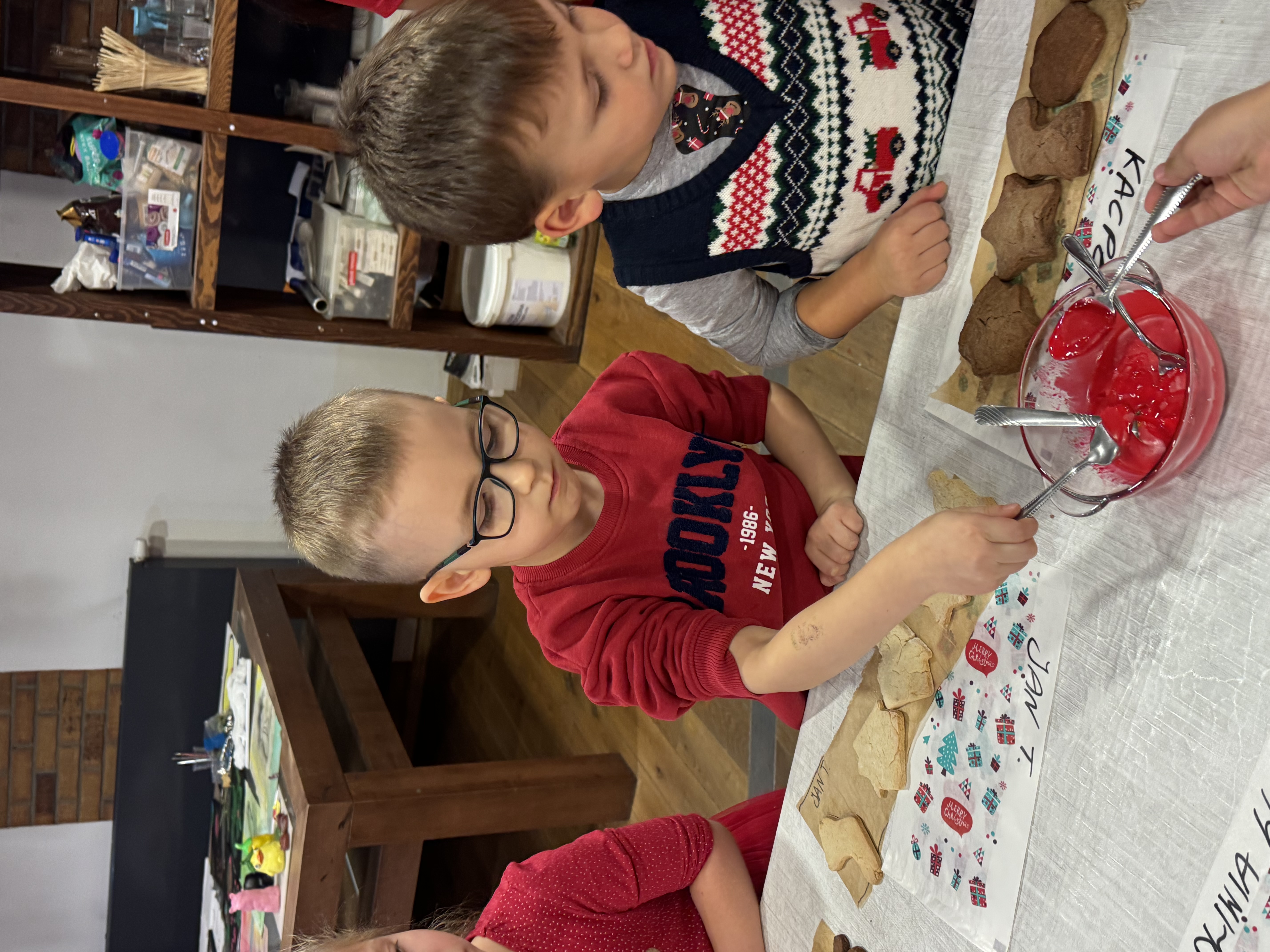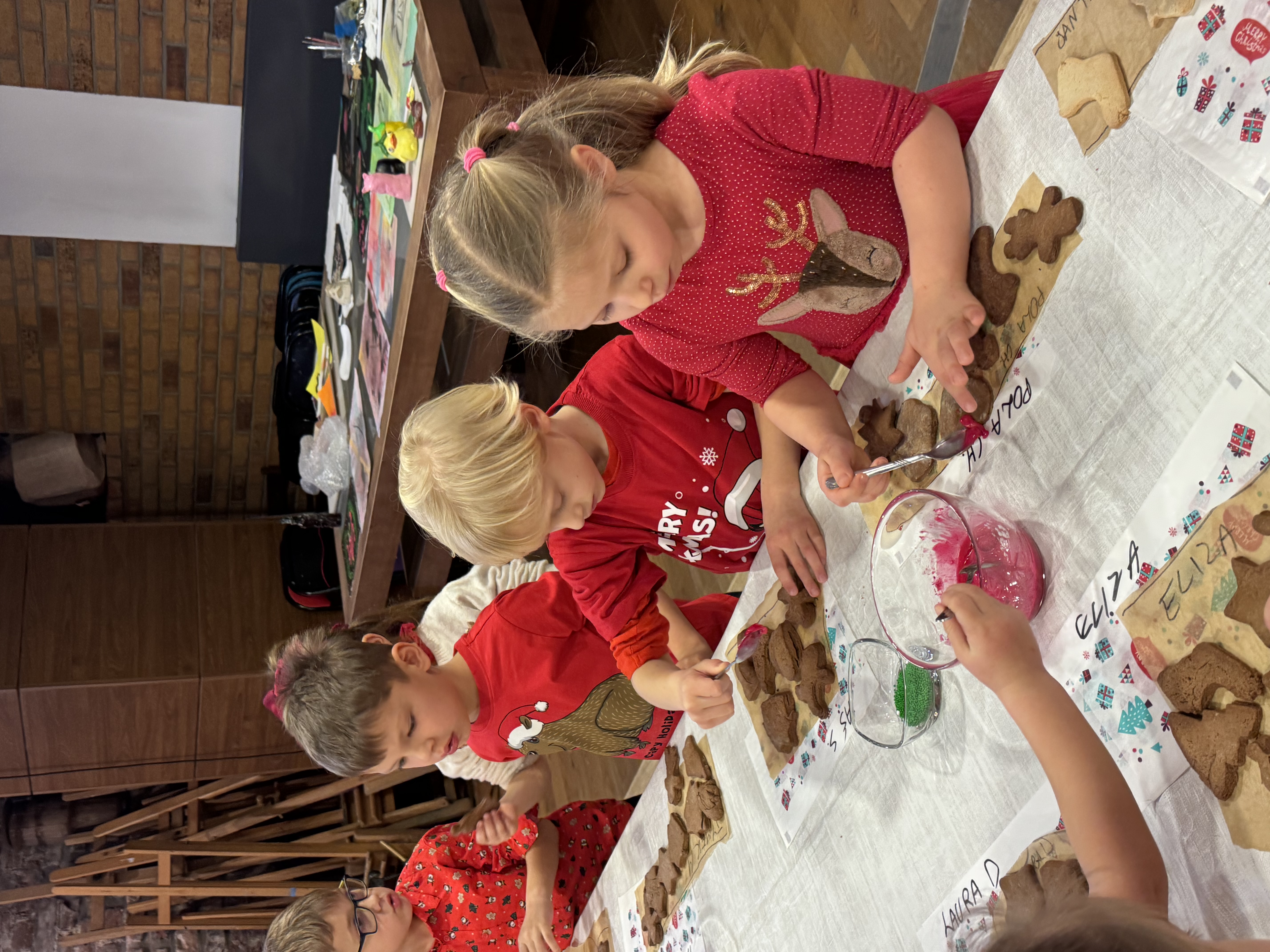 W piątek grupa „Liski” wybrała się na wyjątkową wycieczkę do Szkoły Łacińskiej, gdzie czekały na nas pełne magii warsztaty świąteczne. Dzieci z ogromnym zaangażowaniem piekły i dekorowały pierniki, tworząc piękne i pachnące świąteczne wypieki. Nie zabrakło też kreatywnej zabawy – ozdabialiśmy bombki, a następnie braliśmy udział w zimowej konkurencji, podczas której każdy mógł sprawdzić swoją celność, rzucając śnieżkami do bałwana. Emocji było co niemiara!