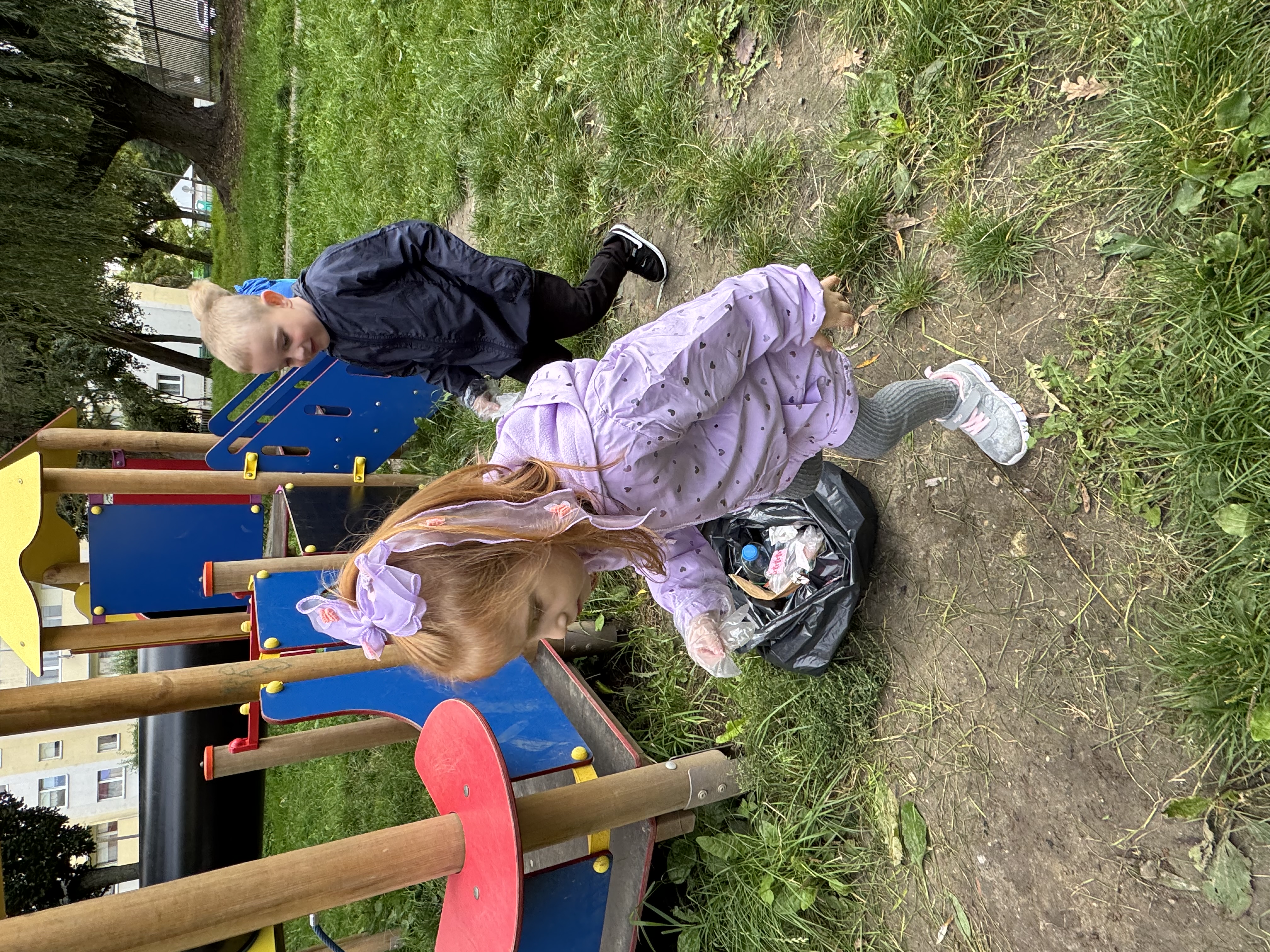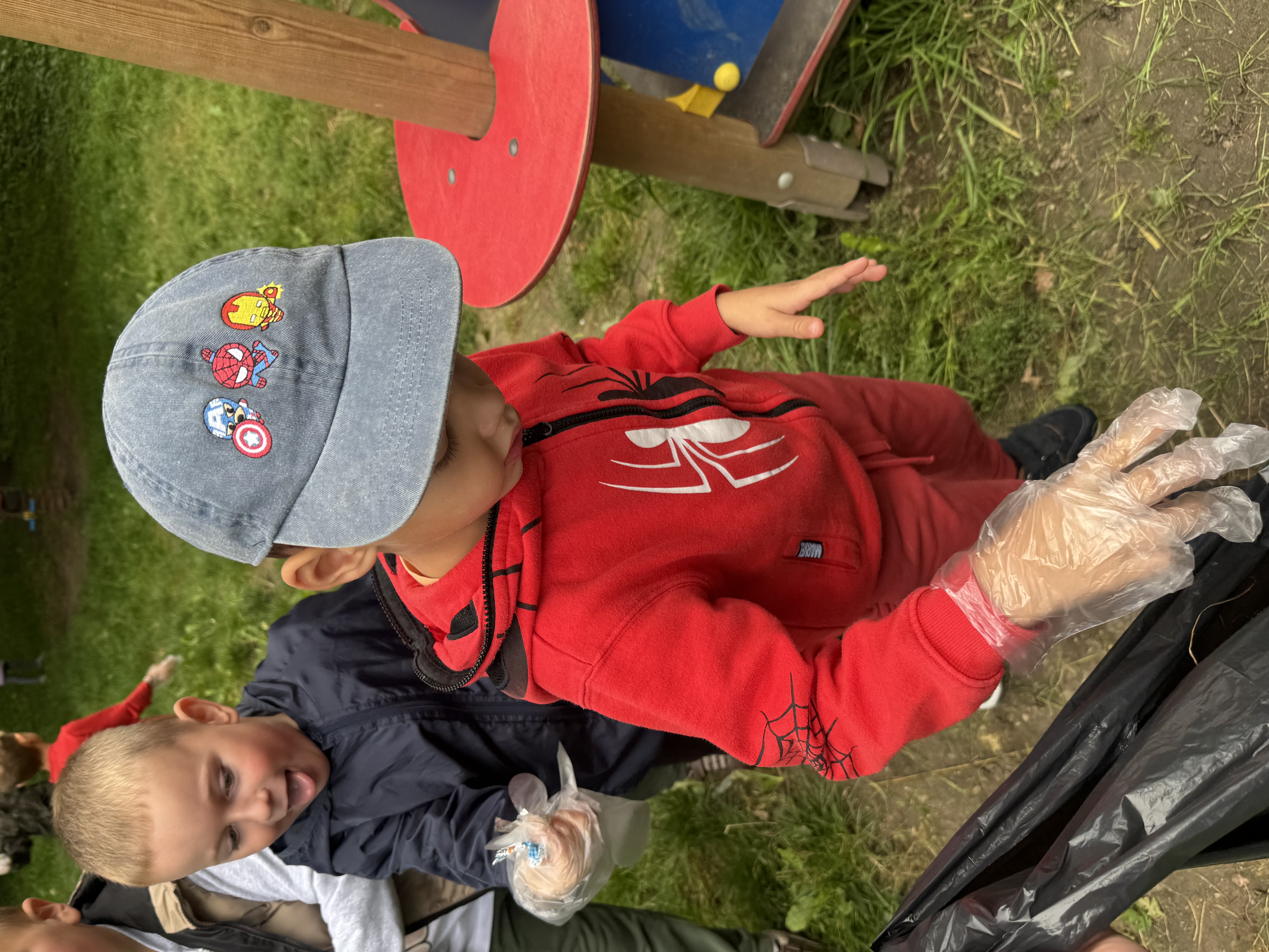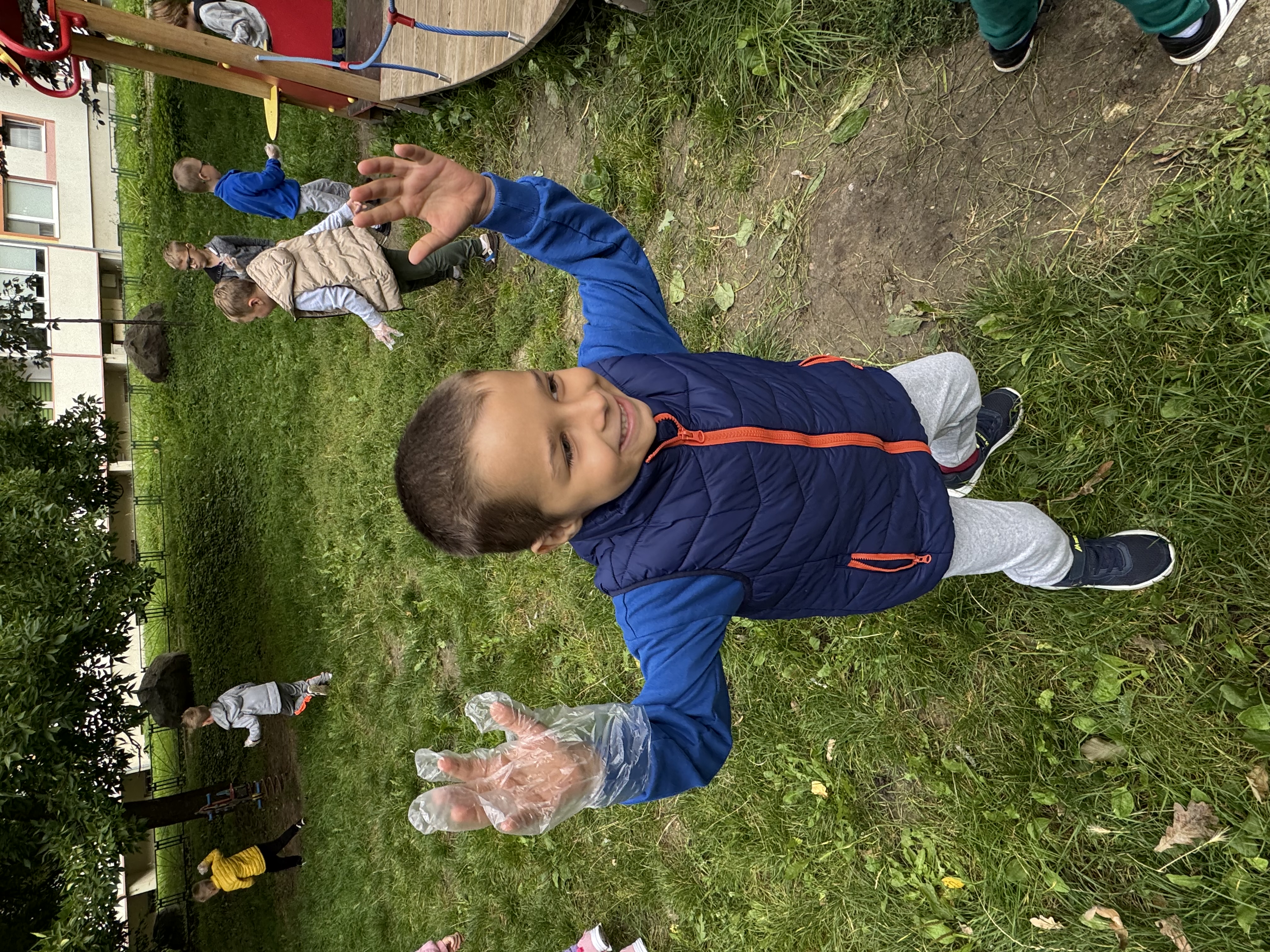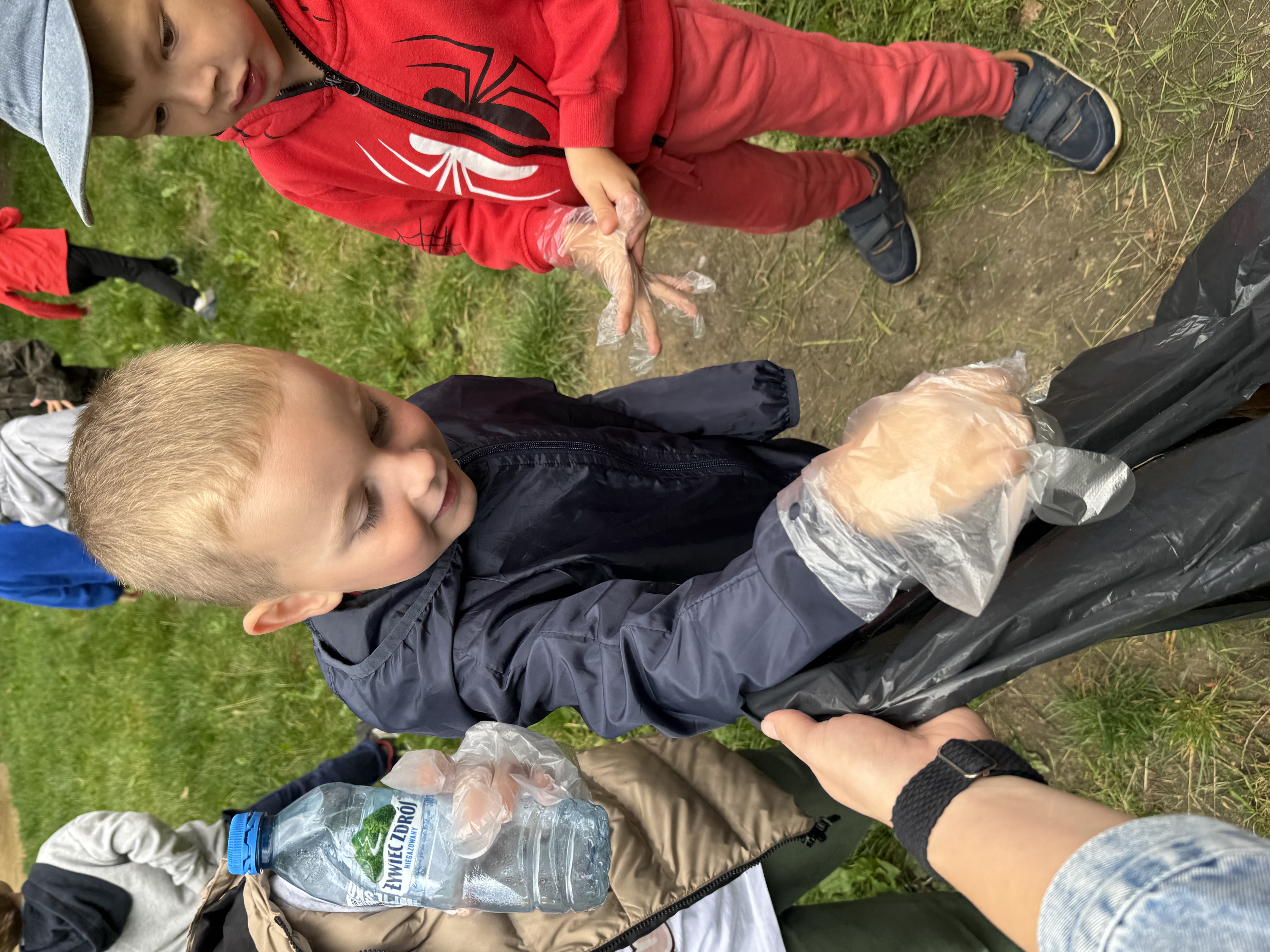 Na zaproszenie Burmistrza Malborka nasi 5-latkowie sprzątali okolice przedszkola, ucząc się dbałości o środowisko i odpowiedzialności za planetę.