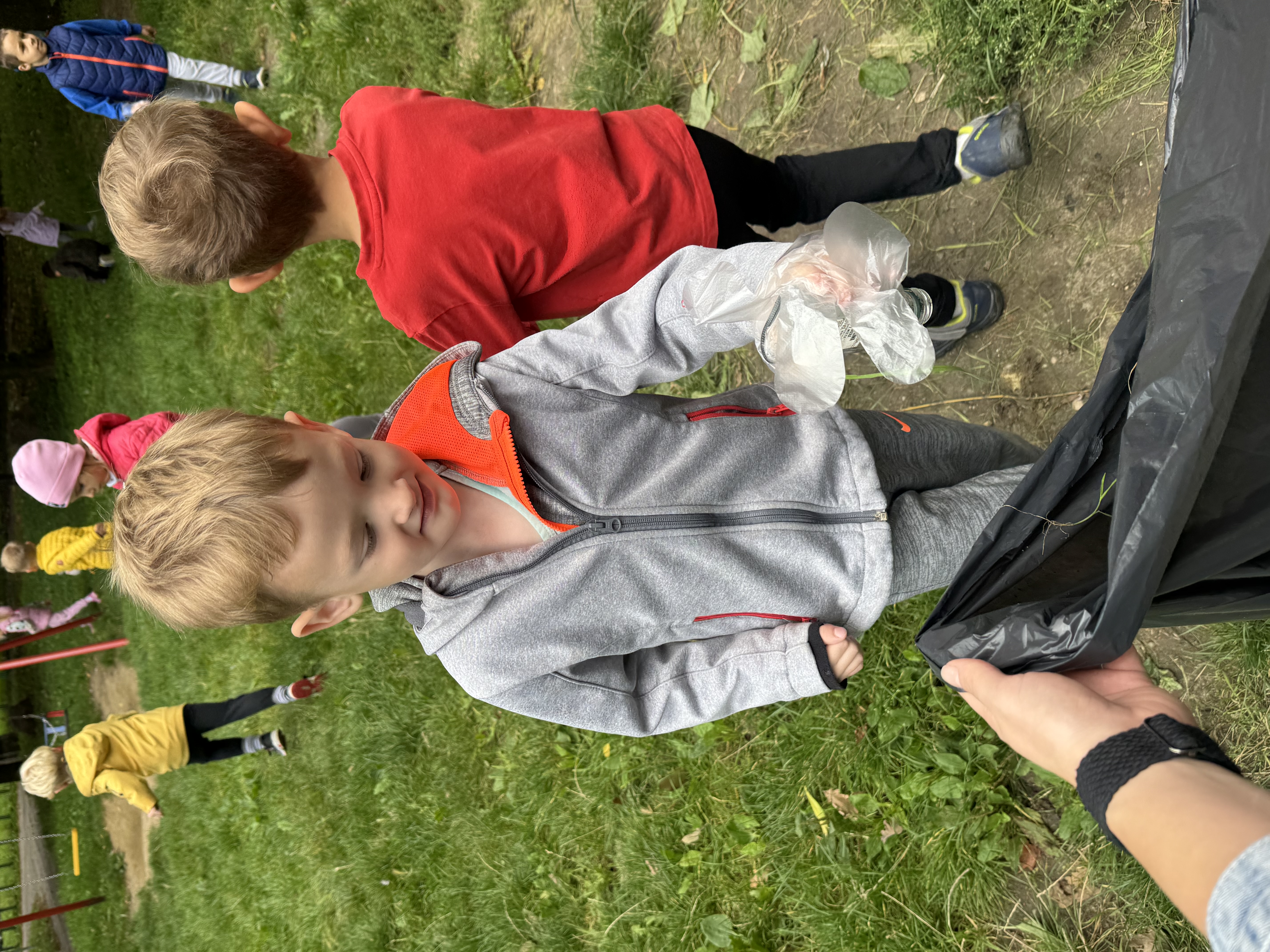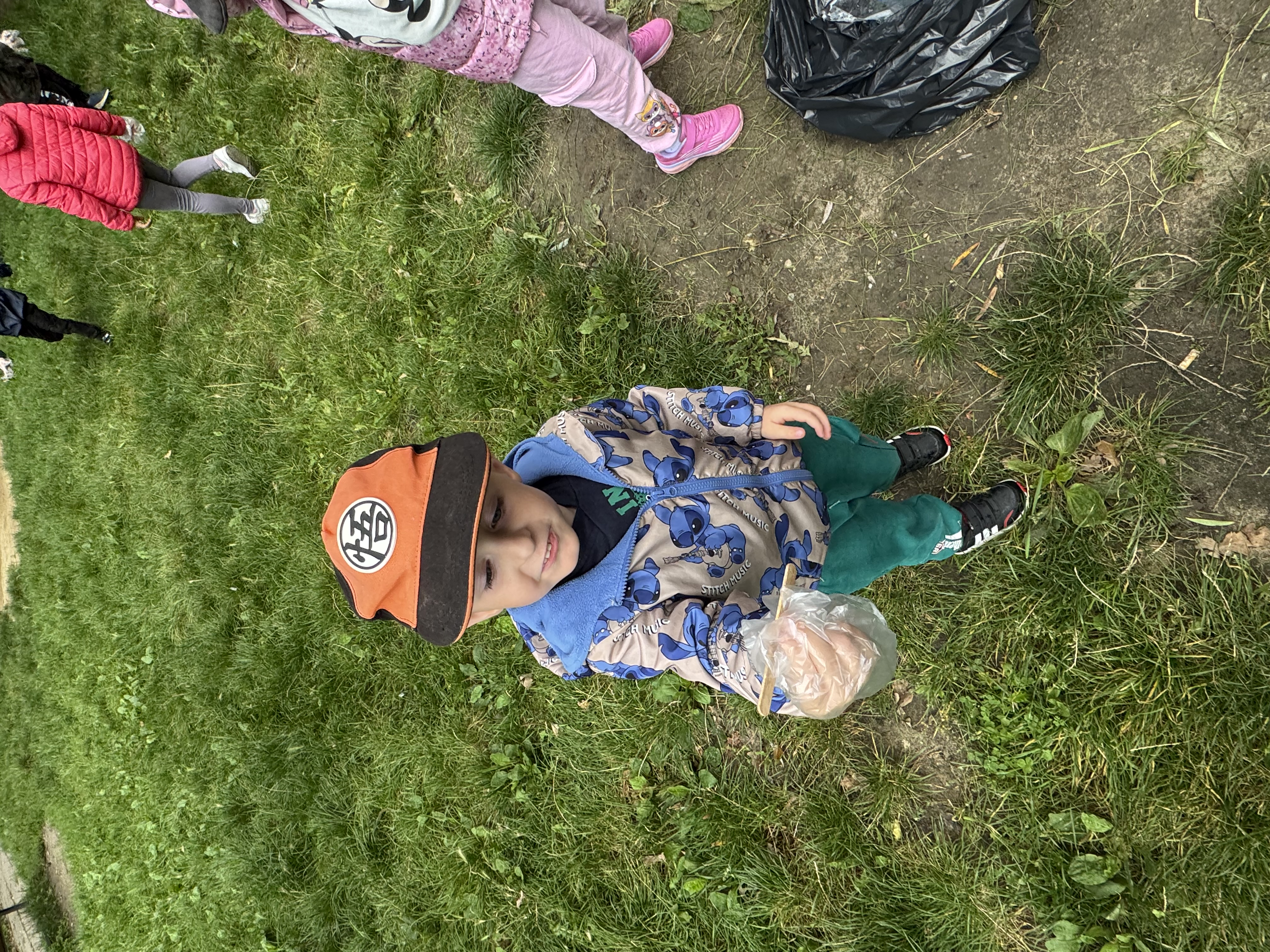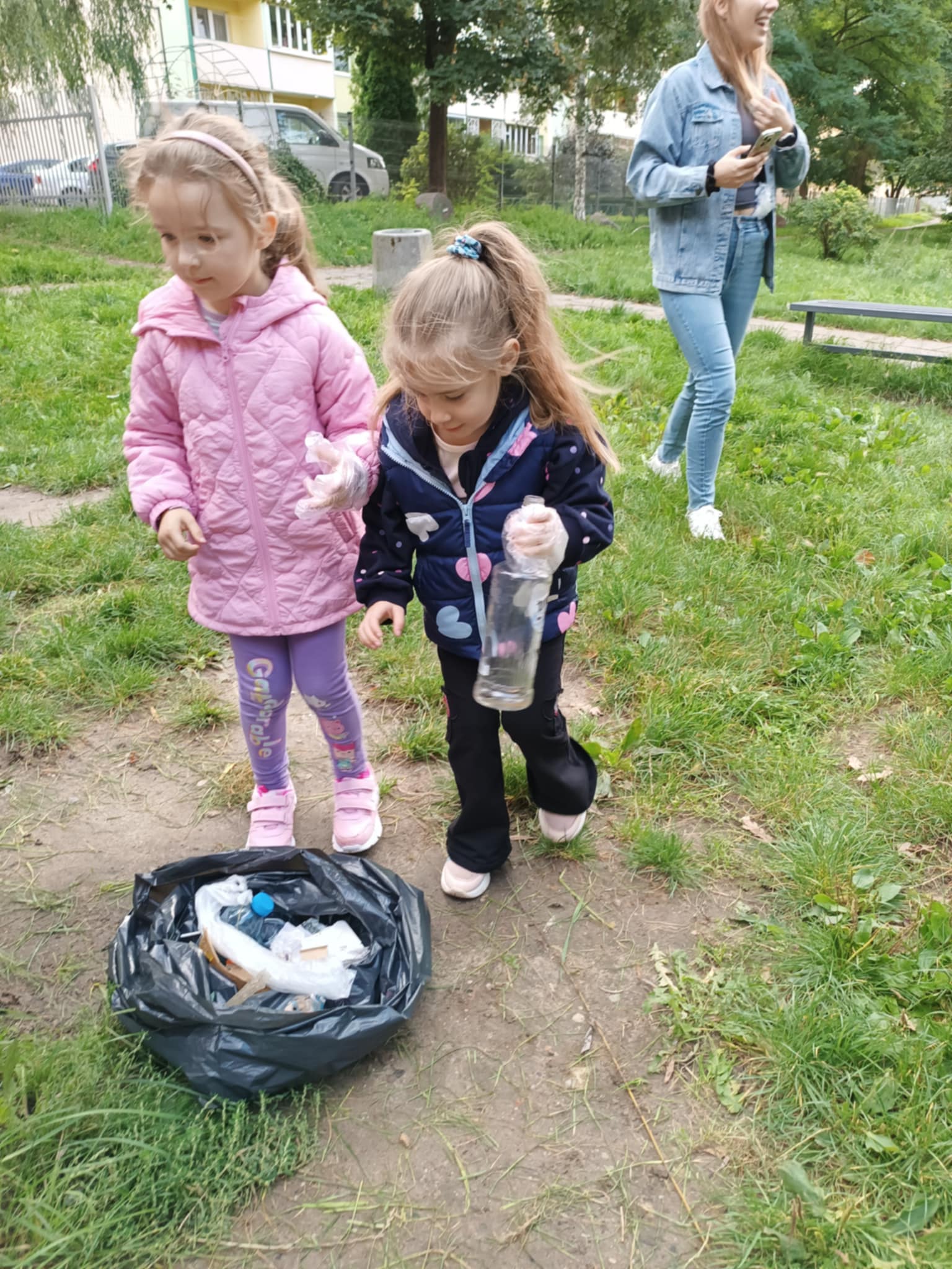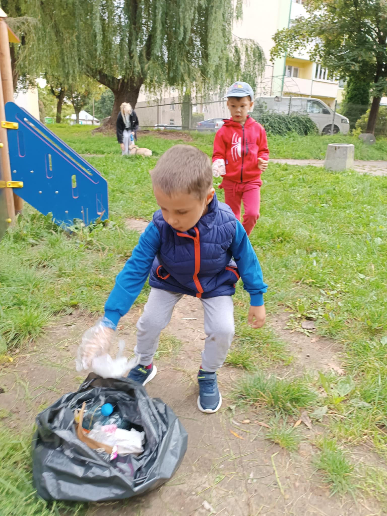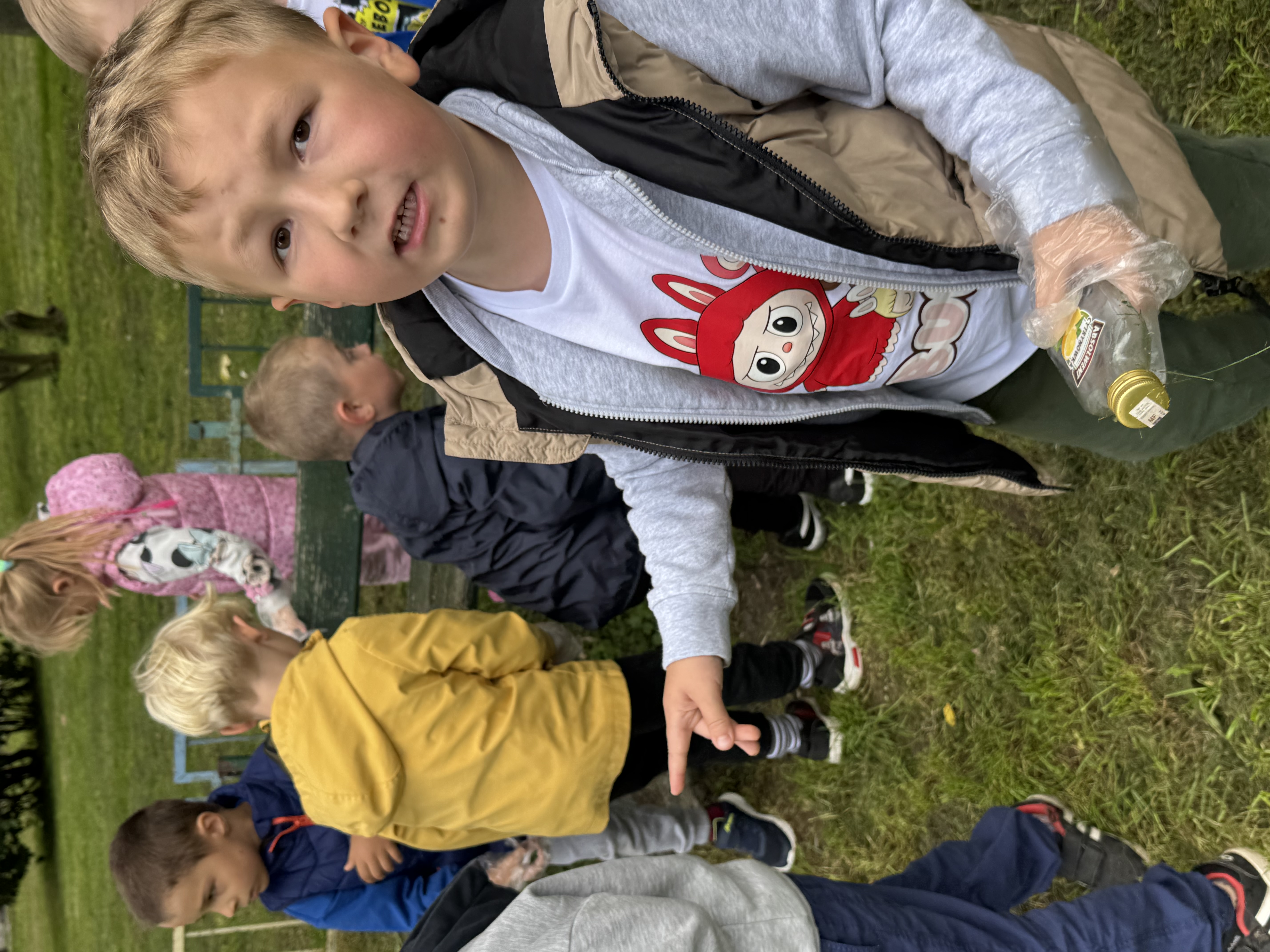Na zaproszenie Burmistrza Malborka nasi 5-latkowie sprzątali okolice przedszkola, ucząc się dbałości o środowisko i odpowiedzialności za planetę.