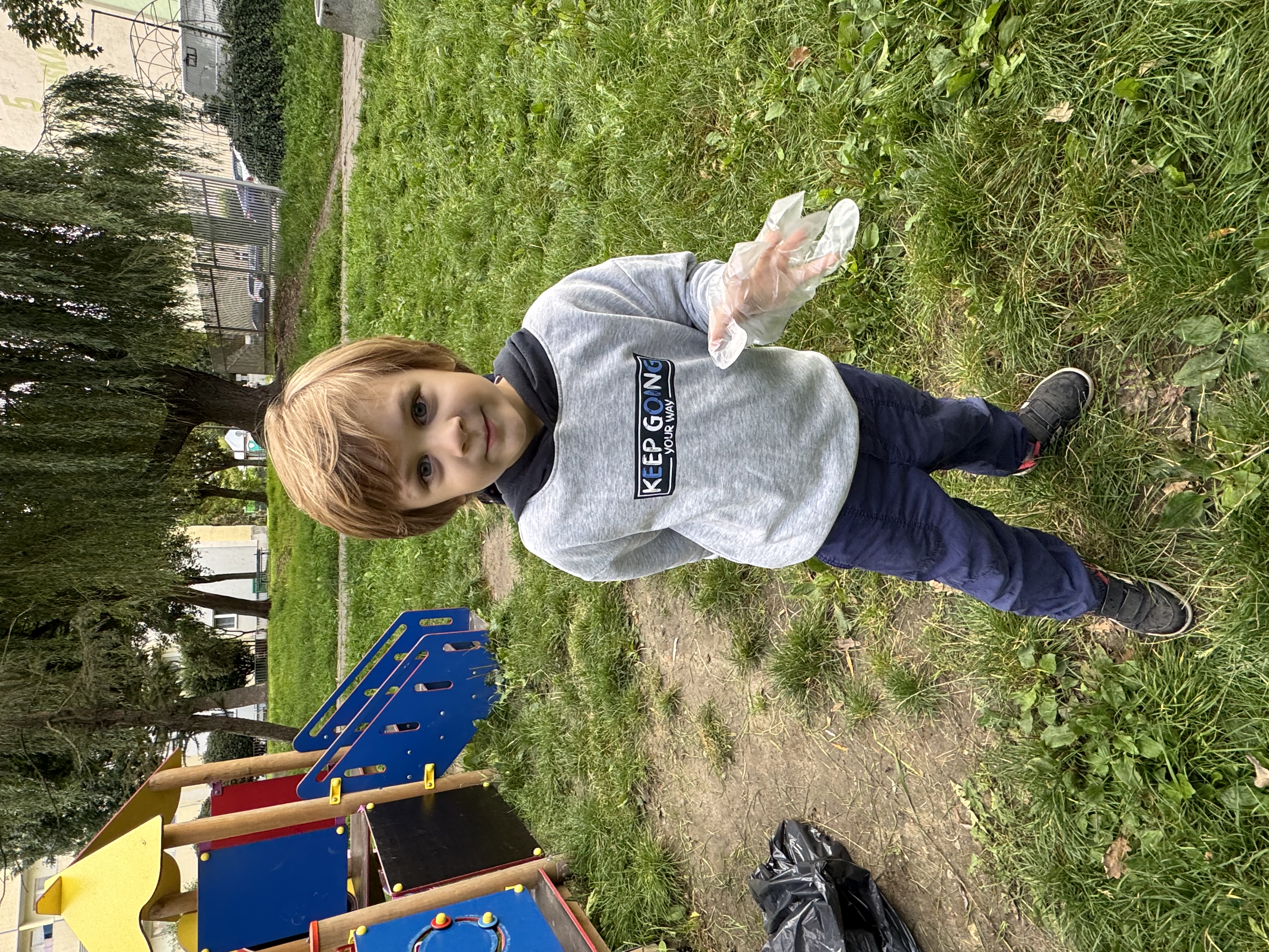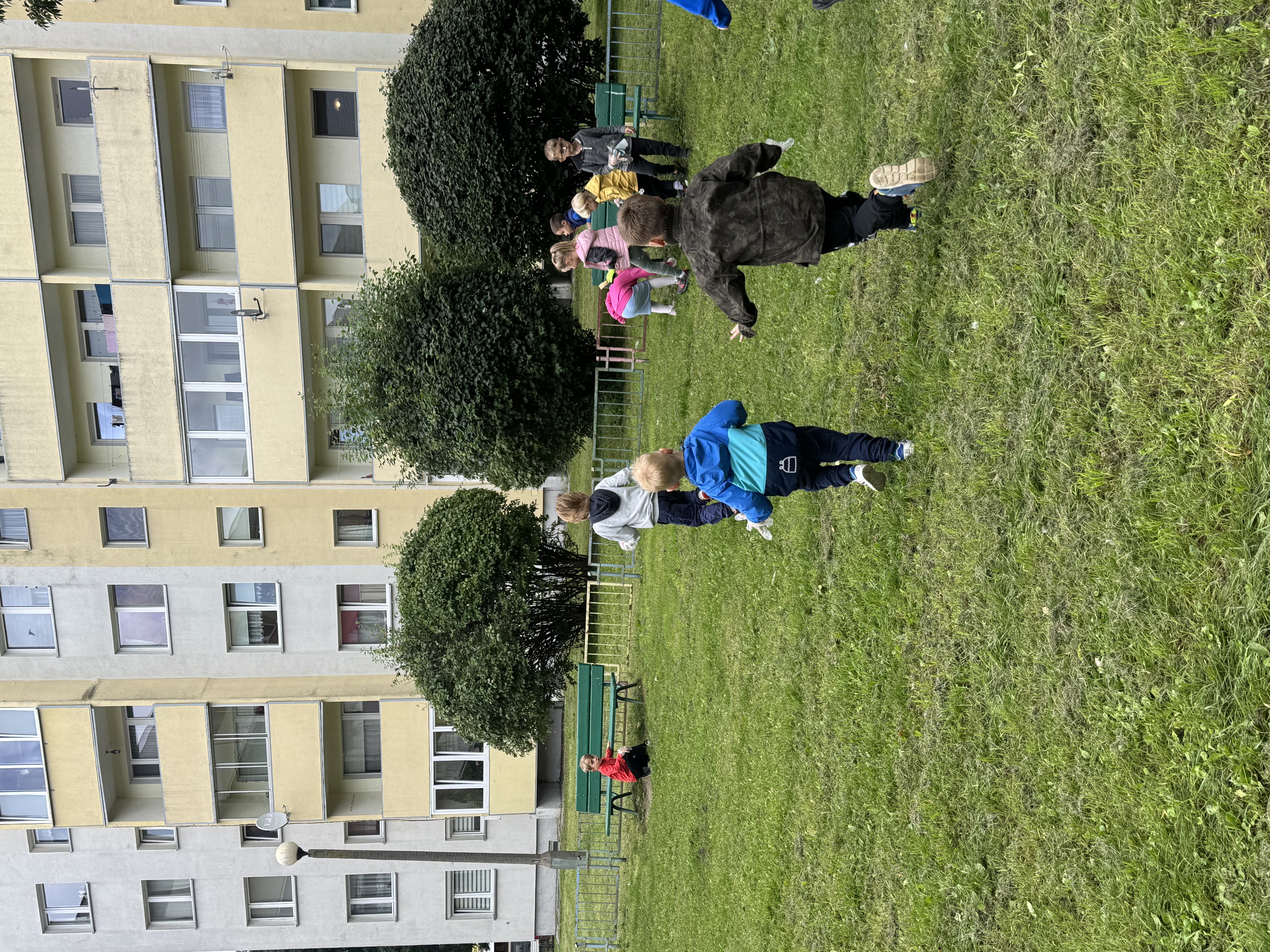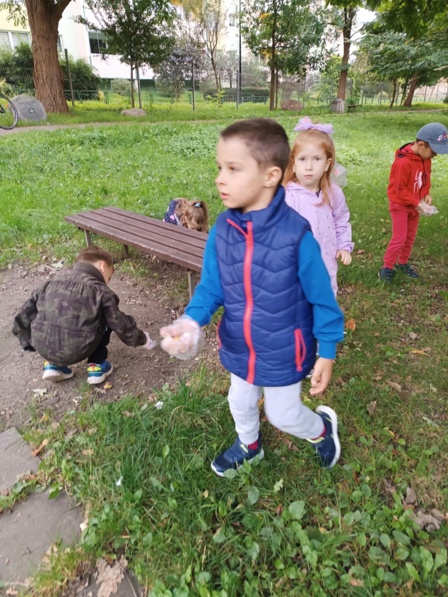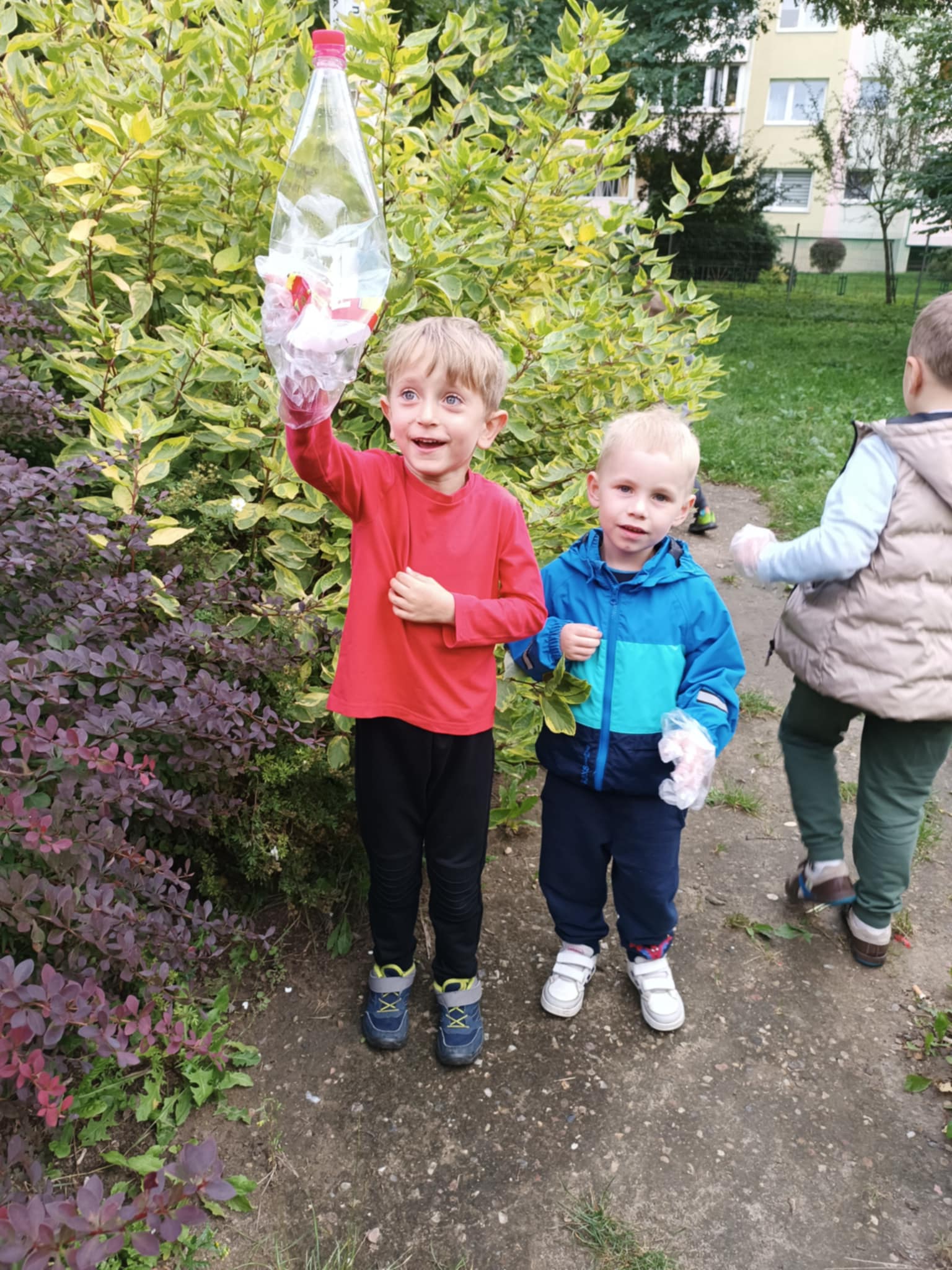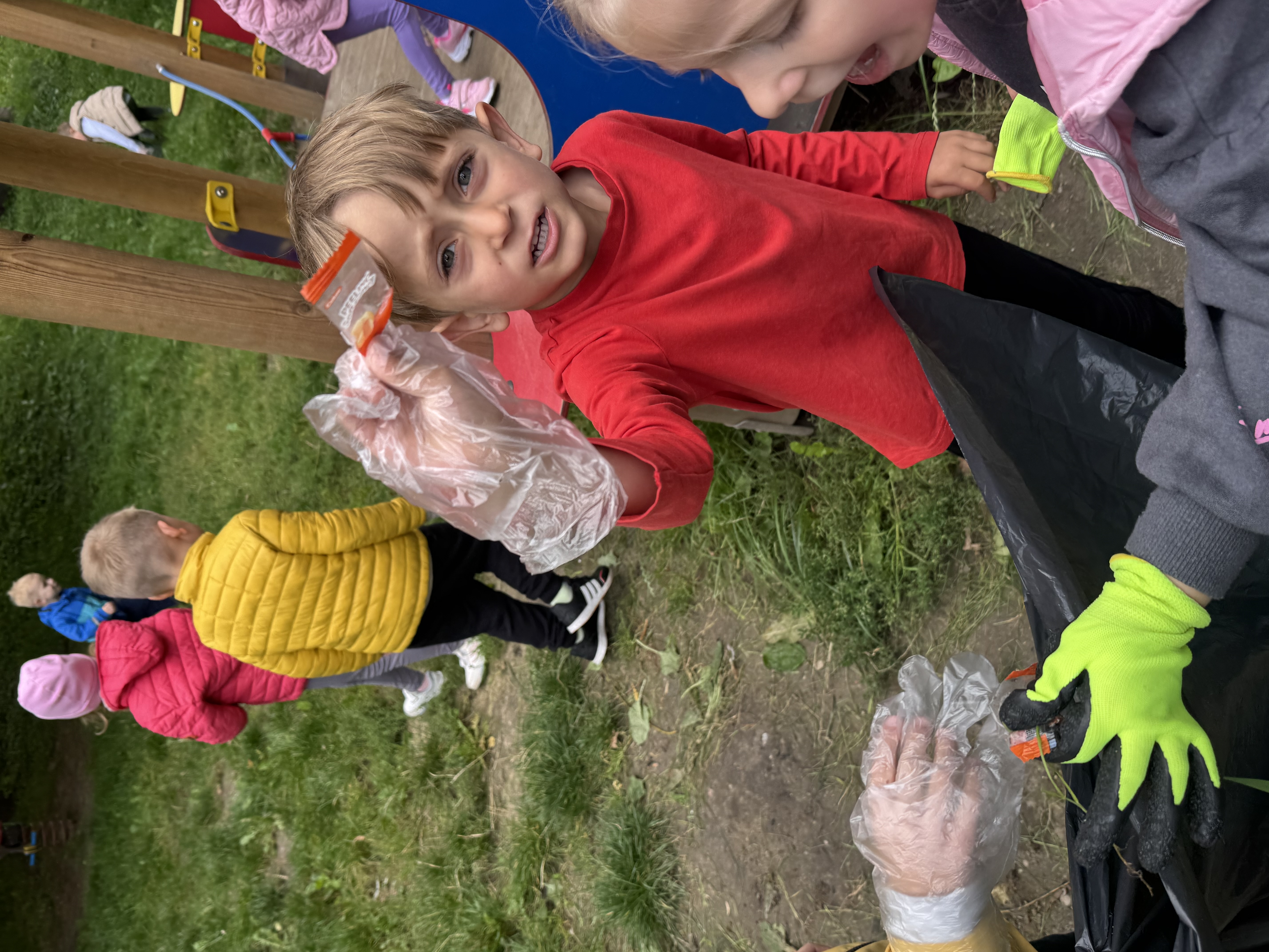 Na zaproszenie Burmistrza Malborka nasi 5-latkowie sprzątali okolice przedszkola, ucząc się dbałości o środowisko i odpowiedzialności za planetę.