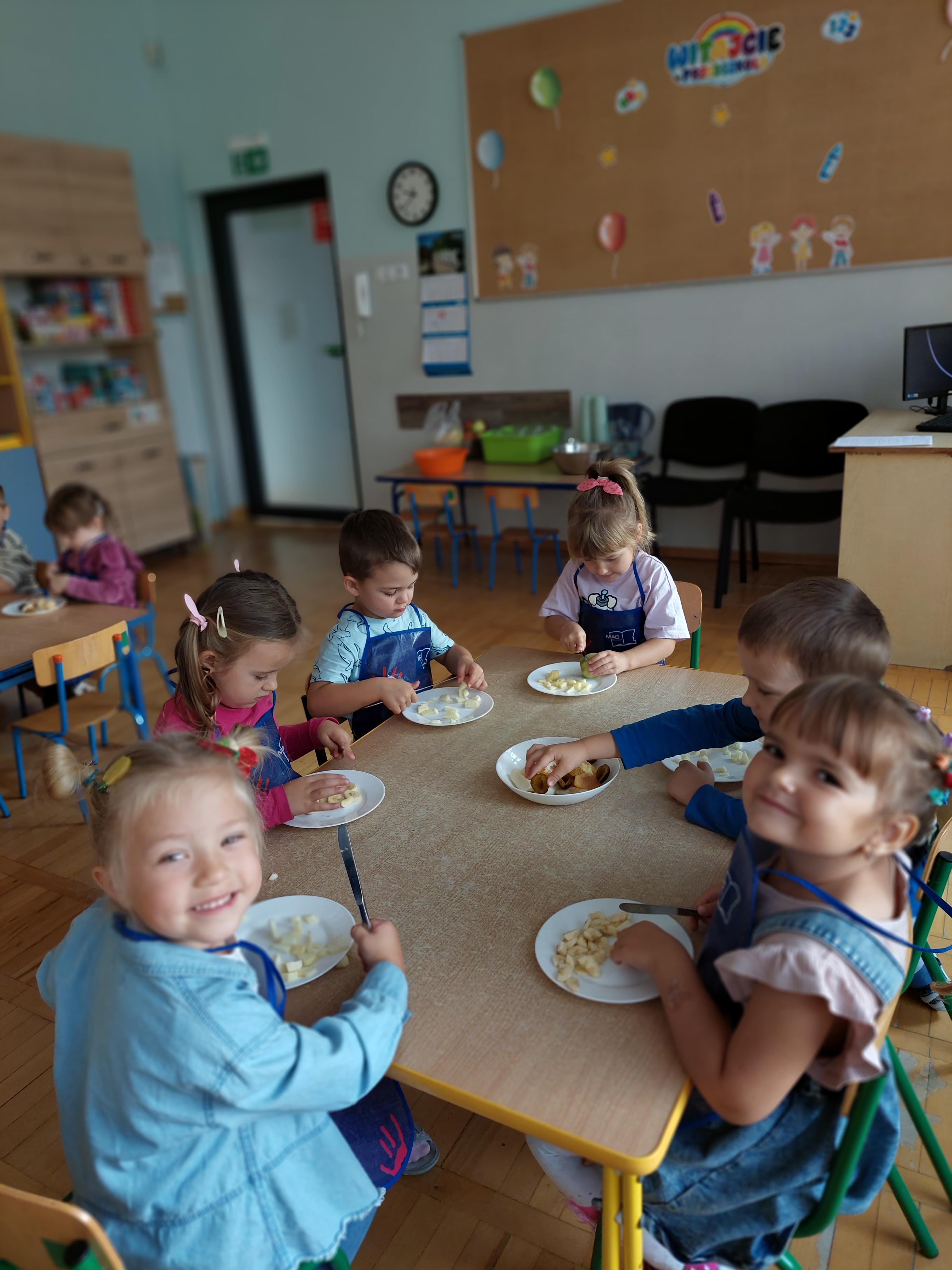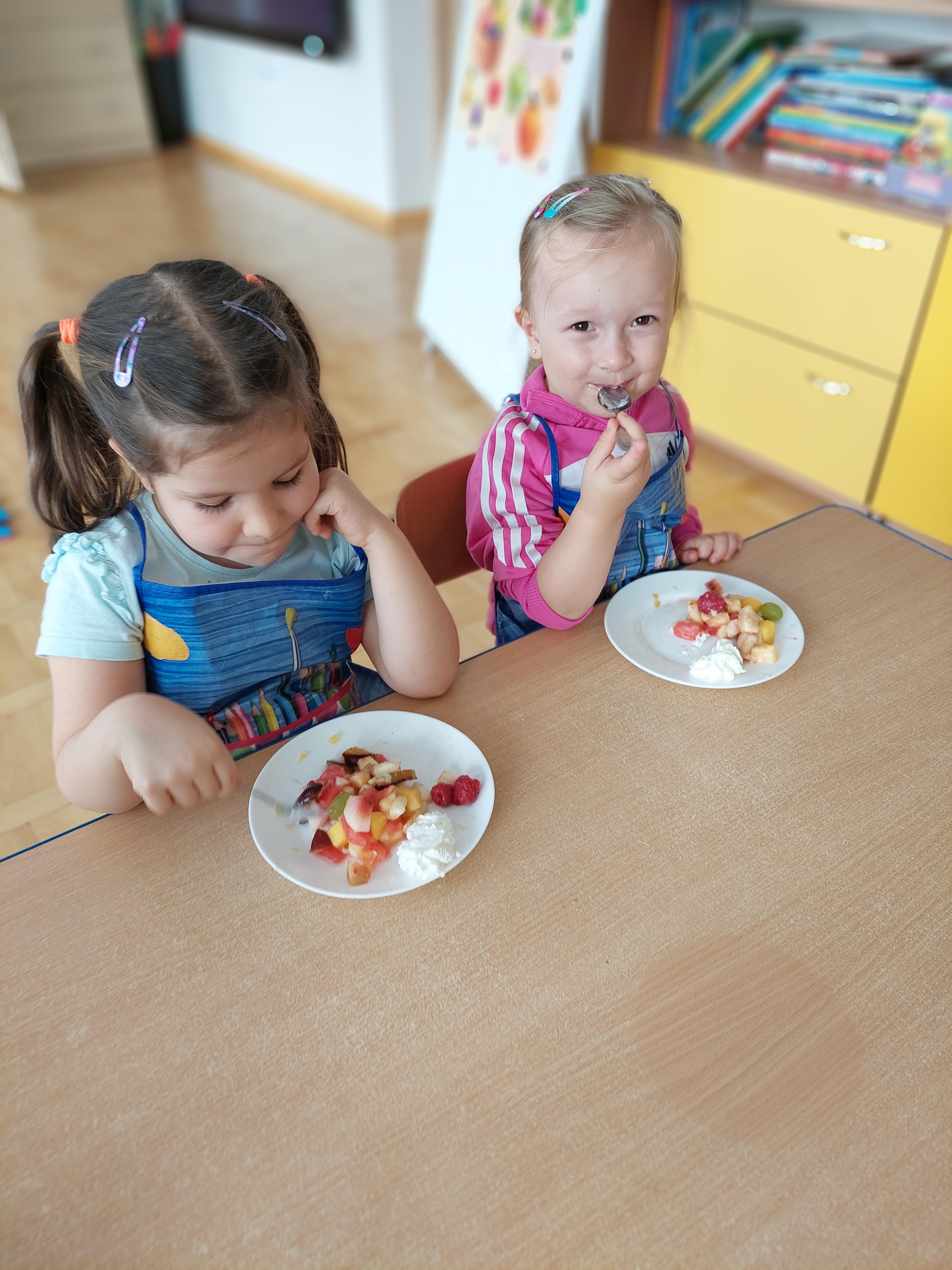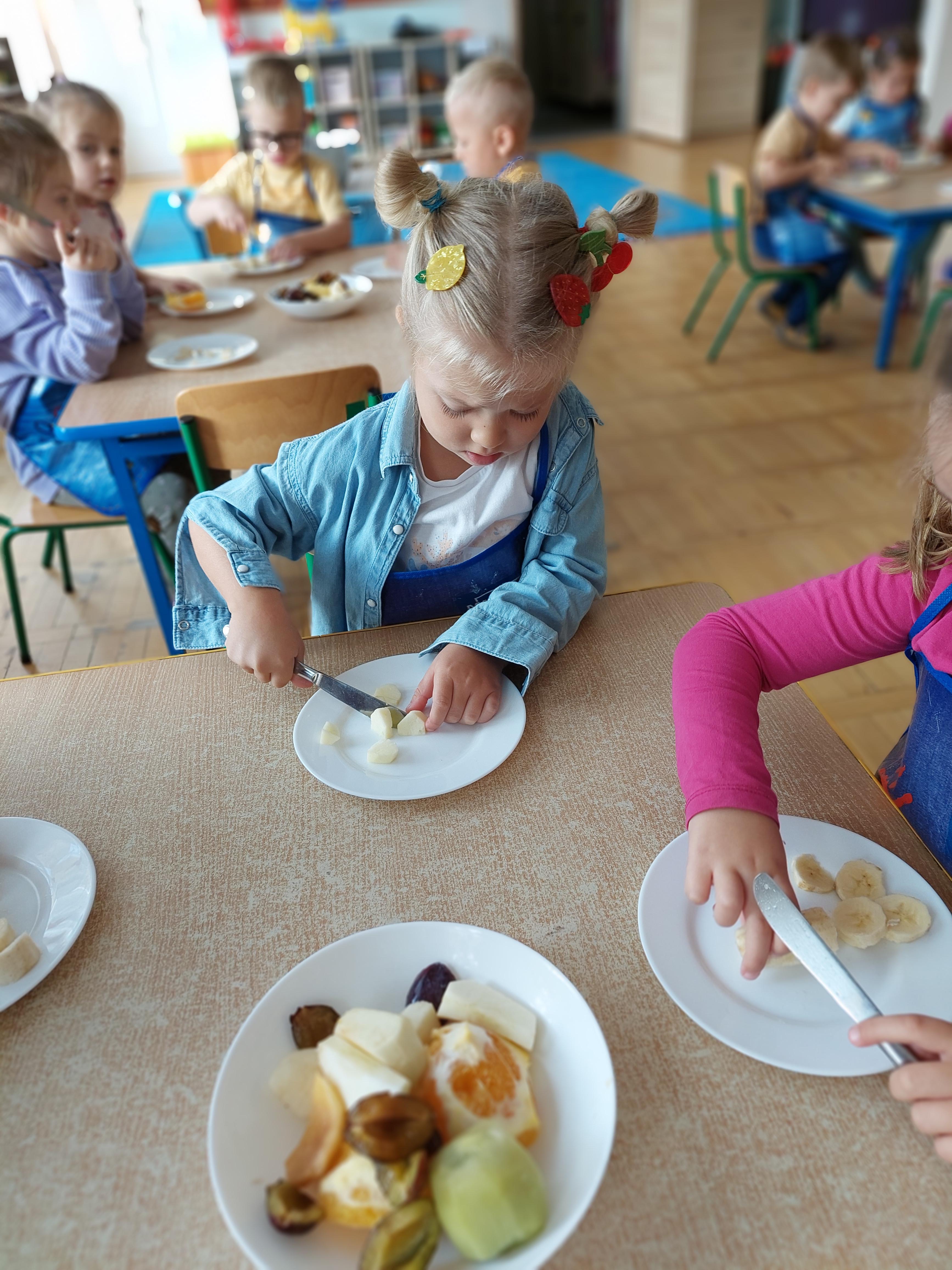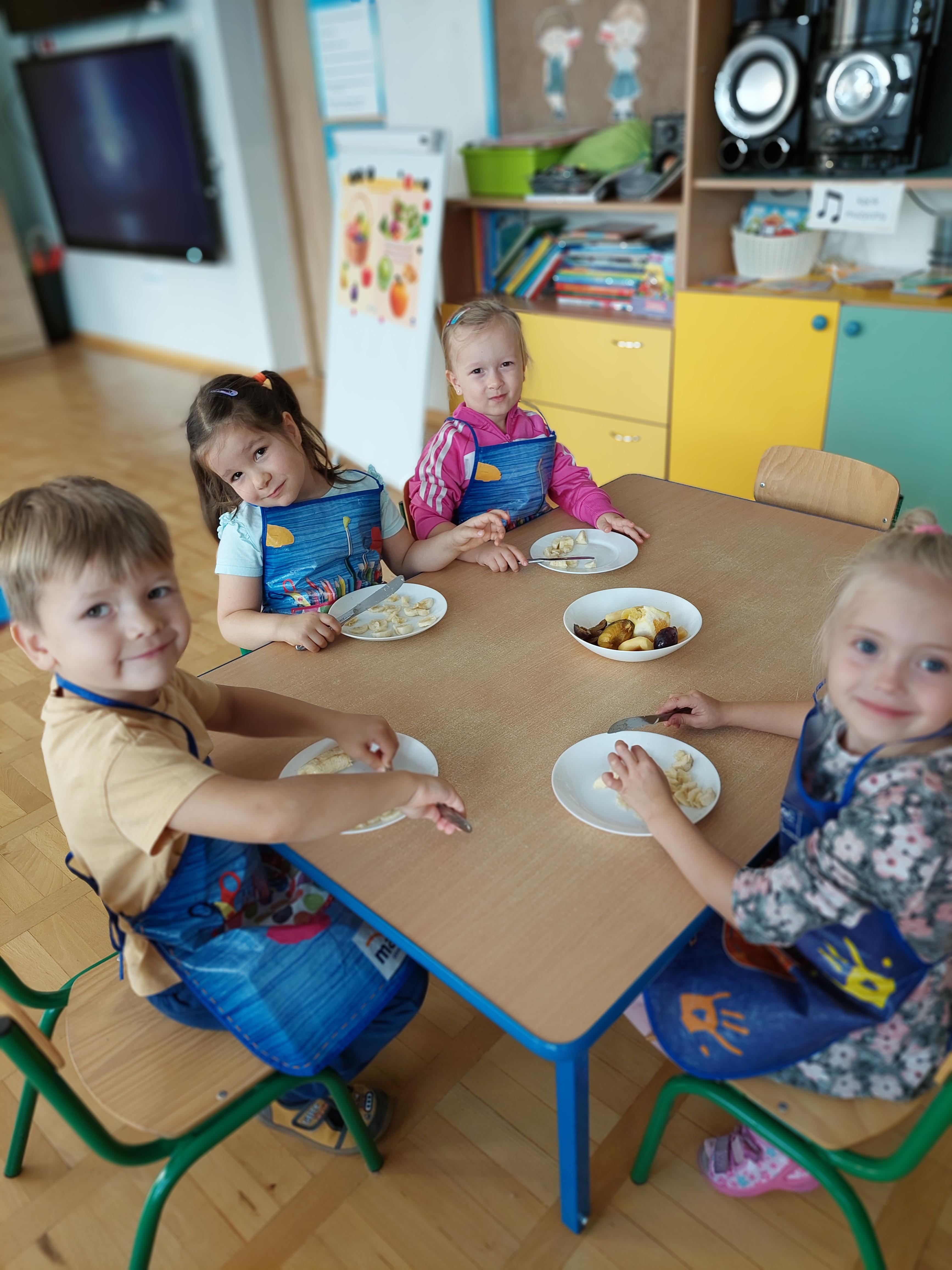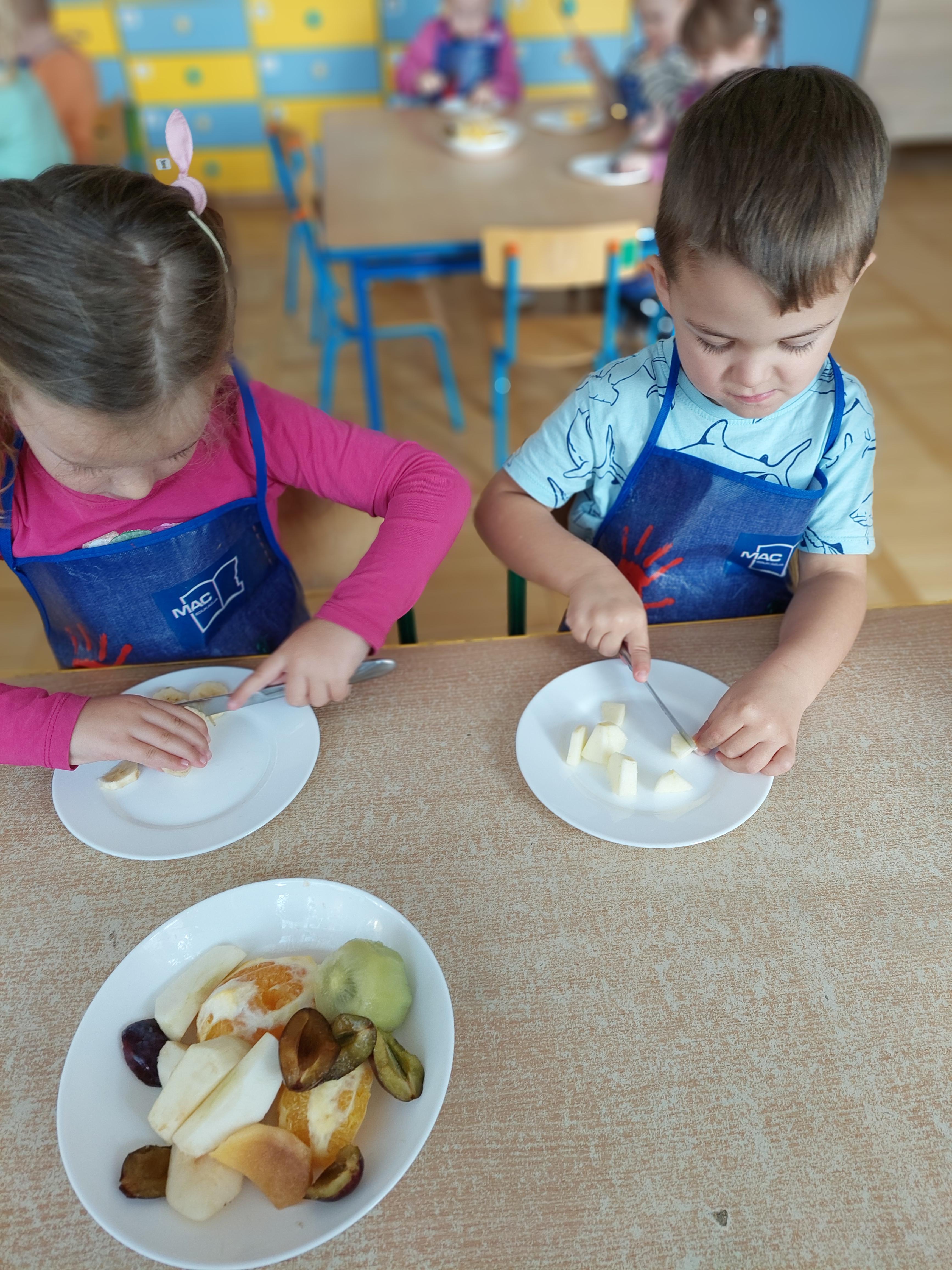 W dniu dzisiejszym dzieci z naszej grupy wspólnie przygotowały pyszną sałatkę owocową. Najpierw umyły ręce i zapoznały się z różnymi owocami, poznając ich kolory, kształty i zapachy. Następnie z pomocą nauczyciela kroiły owoce na małe kawałki i wrzucały je do dużej miski. Na koniec wszystko dokładnie mieszały i spróbowały własnoręcznie przygotowanej sałatki. Zajęcia były świetną okazją do nauki współpracy, rozwijania samodzielności oraz zdrowych nawyków żywieniowych.