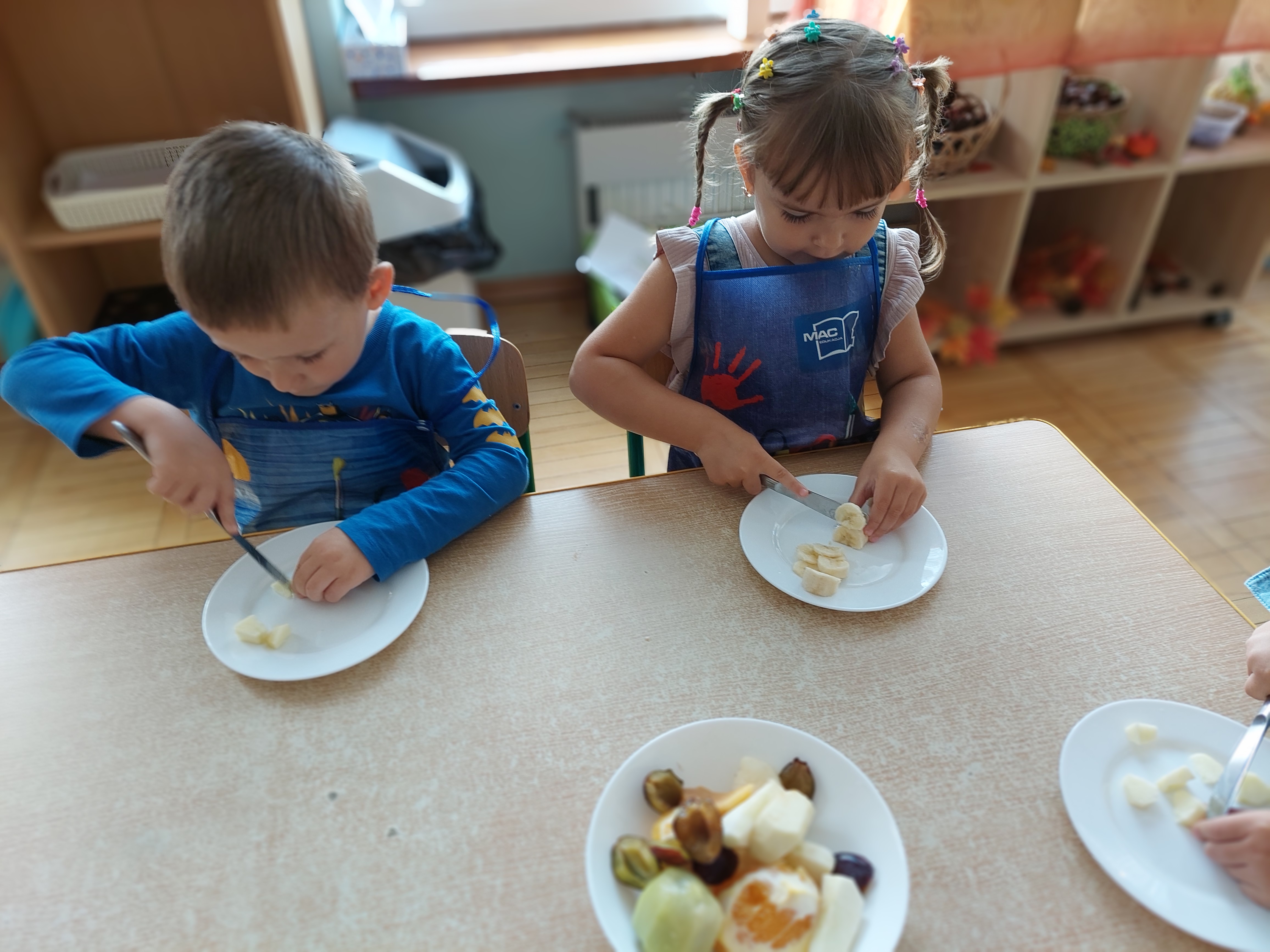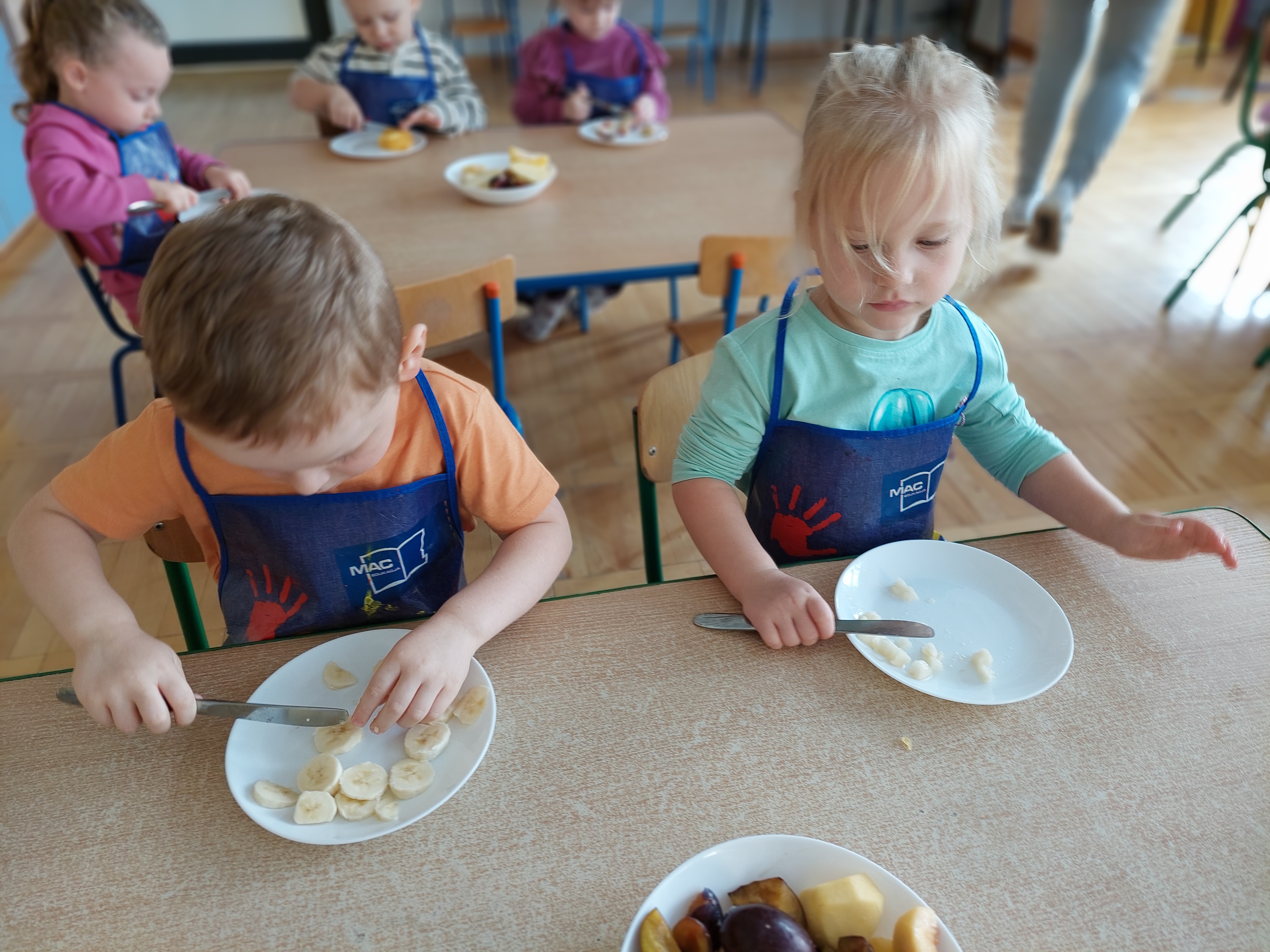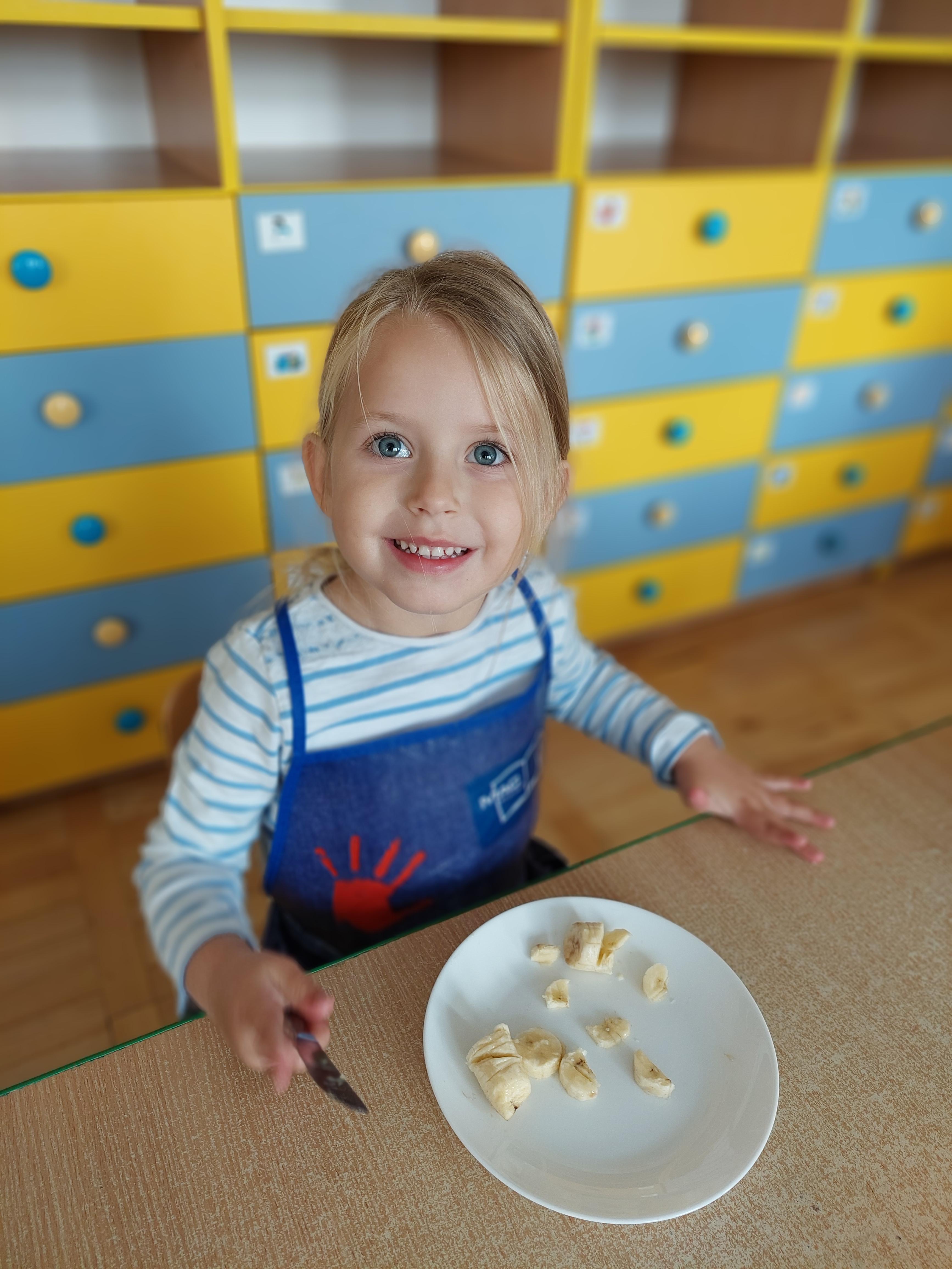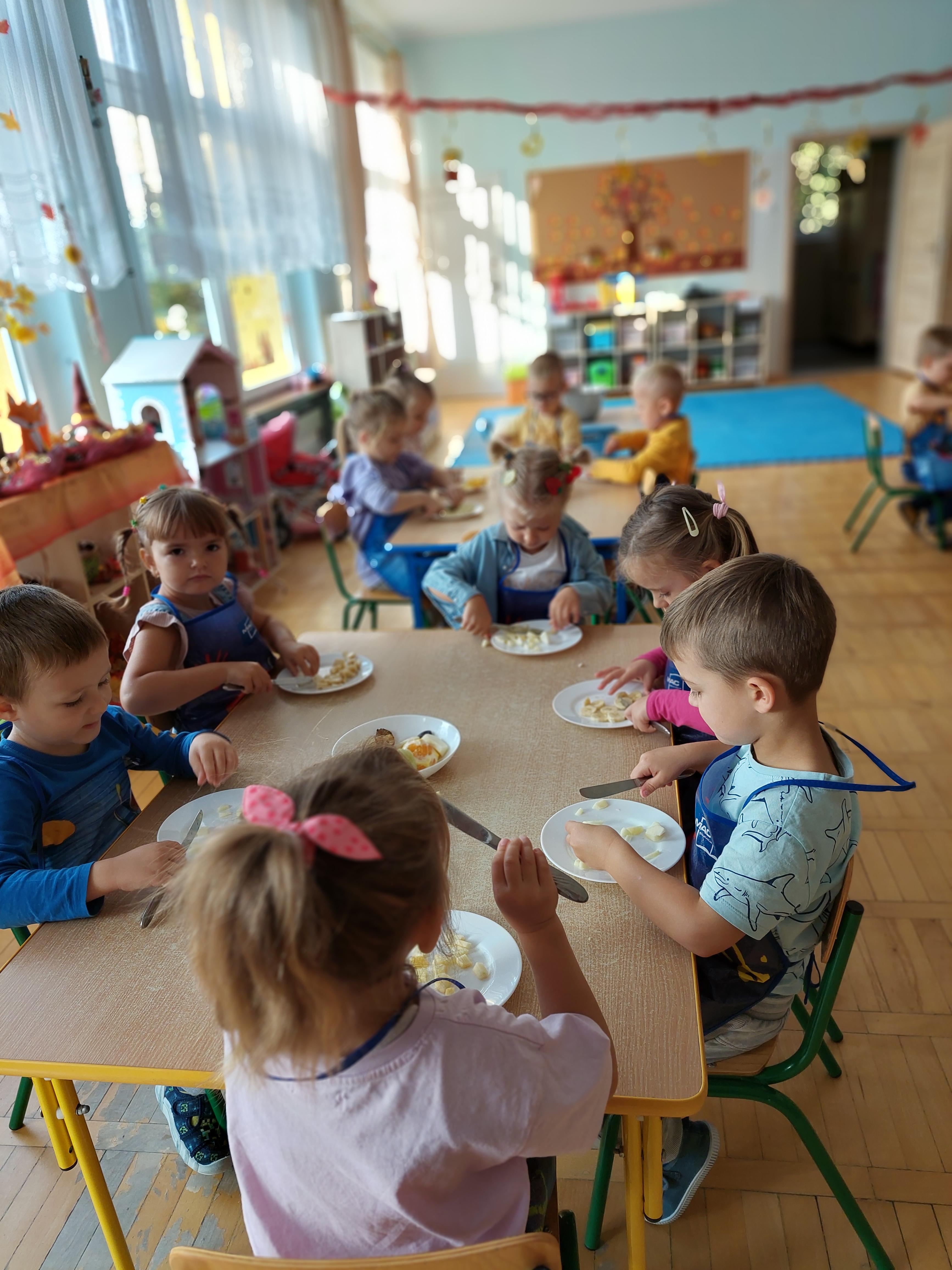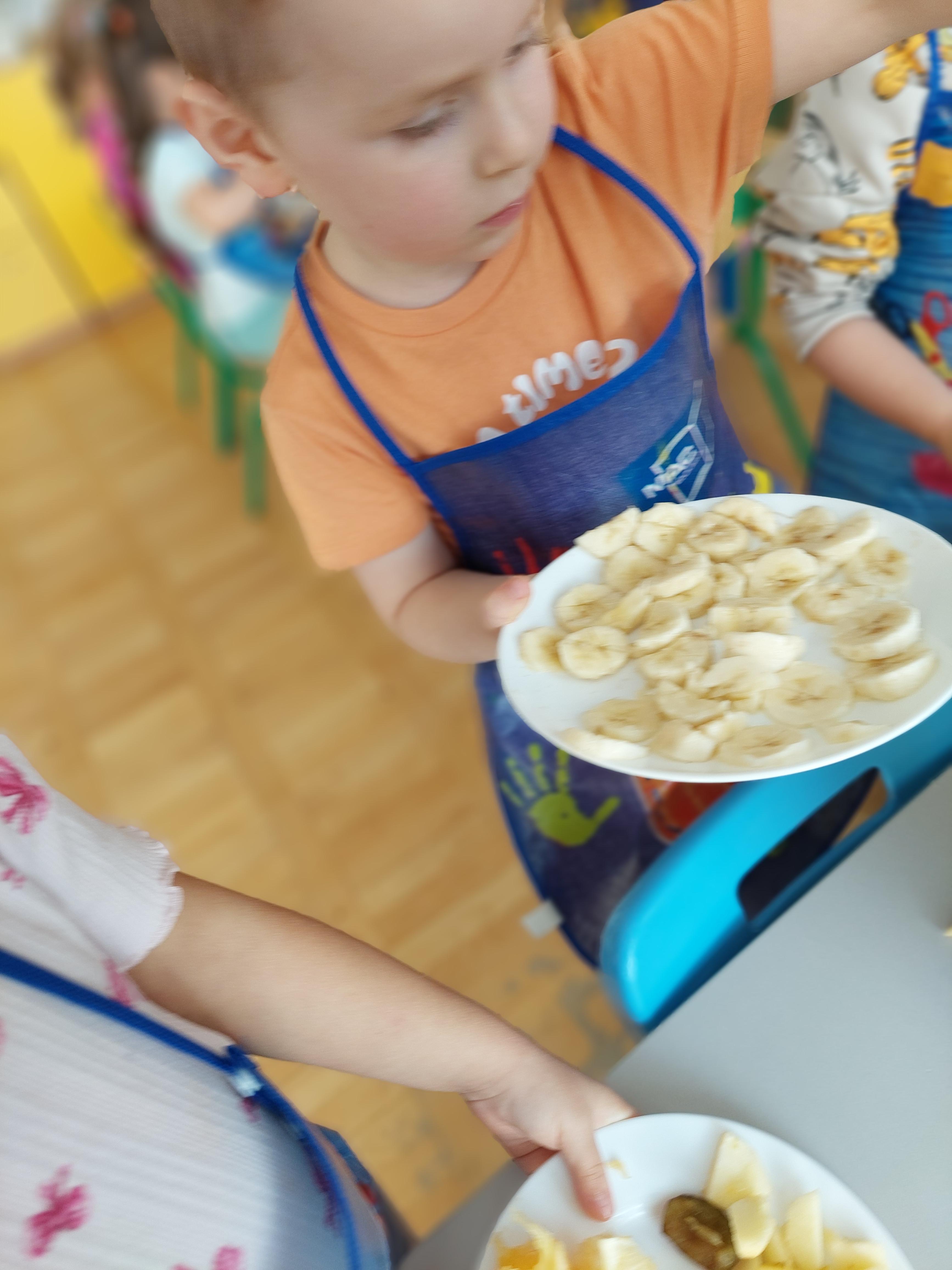 W dniu dzisiejszym dzieci z naszej grupy wspólnie przygotowały pyszną sałatkę owocową. Najpierw umyły ręce i zapoznały się z różnymi owocami, poznając ich kolory, kształty i zapachy. Następnie z pomocą nauczyciela kroiły owoce na małe kawałki i wrzucały je do dużej miski. Na koniec wszystko dokładnie mieszały i spróbowały własnoręcznie przygotowanej sałatki. Zajęcia były świetną okazją do nauki współpracy, rozwijania samodzielności oraz zdrowych nawyków żywieniowych.