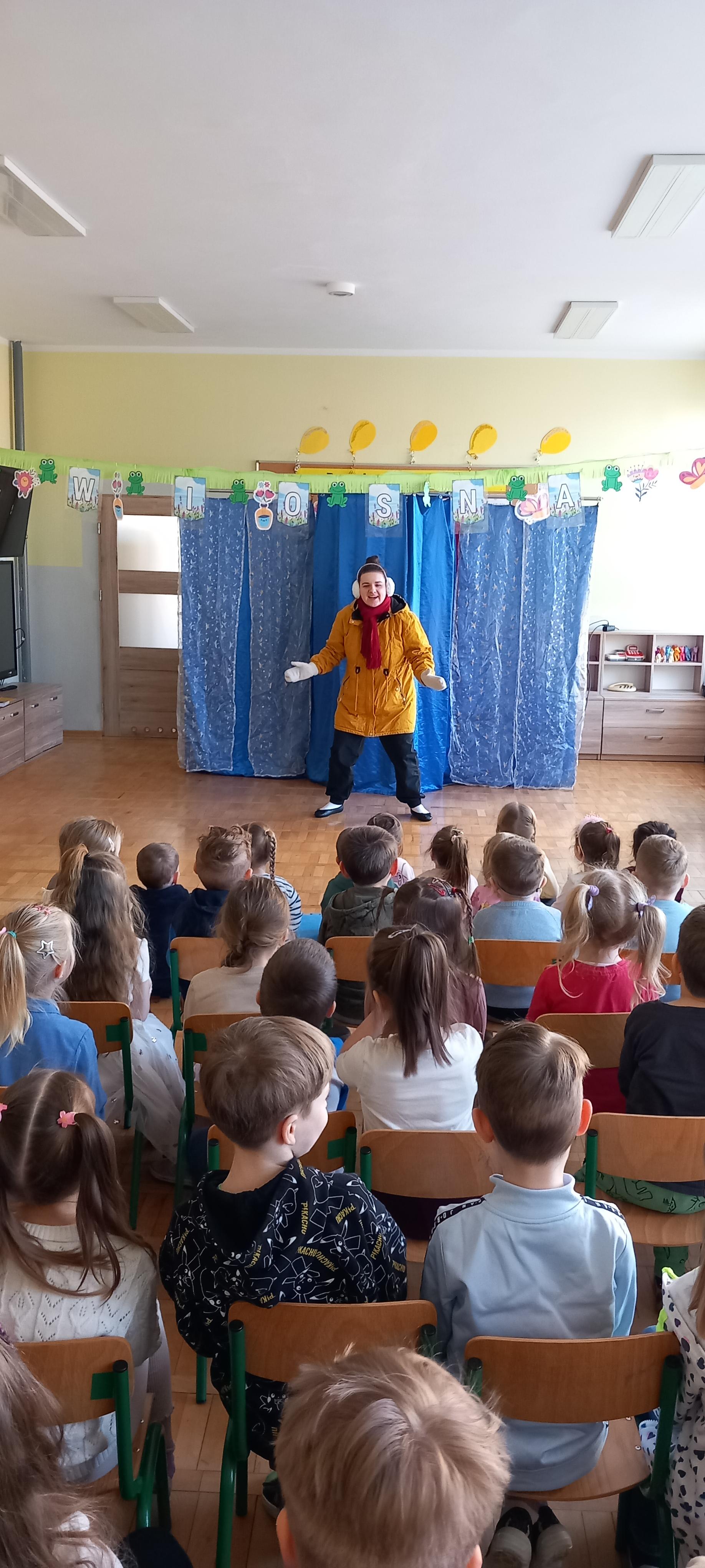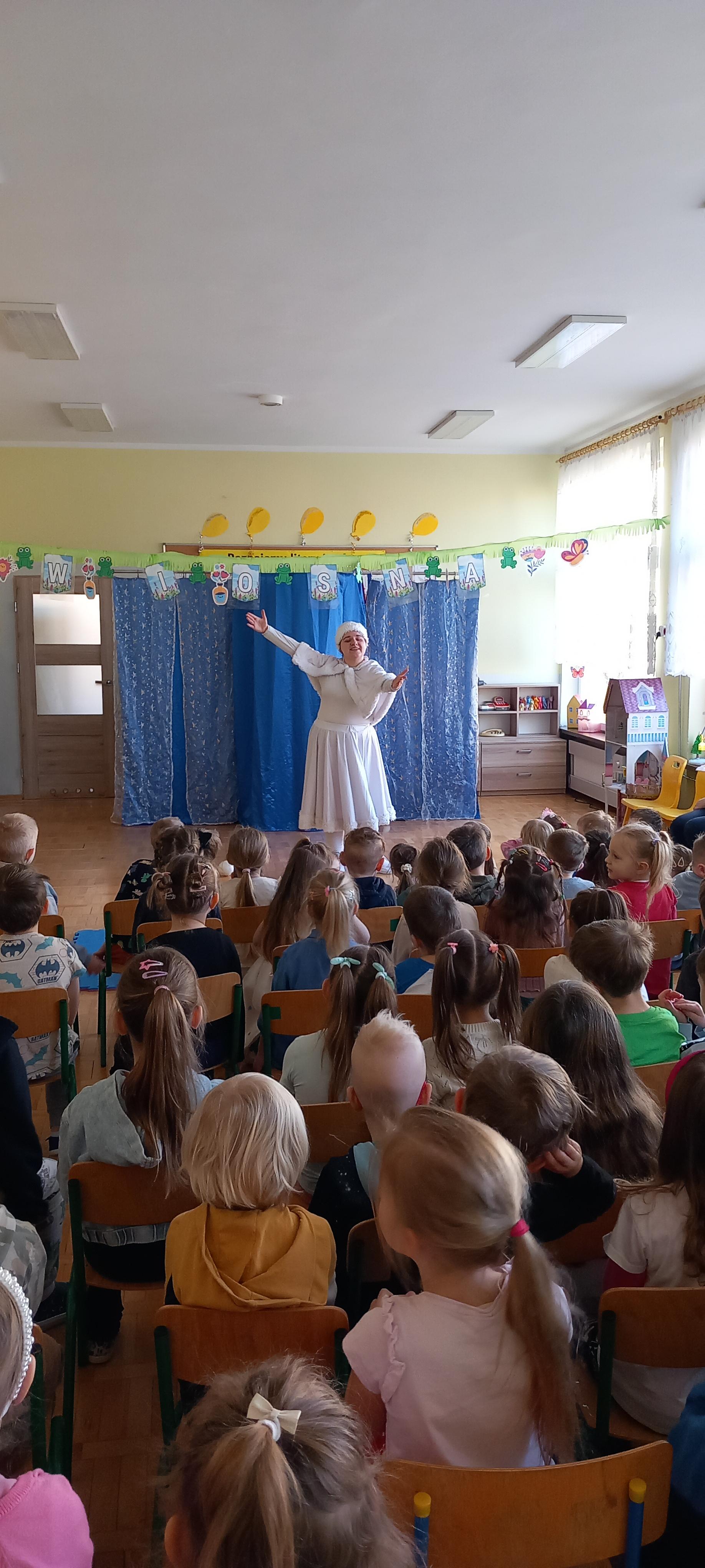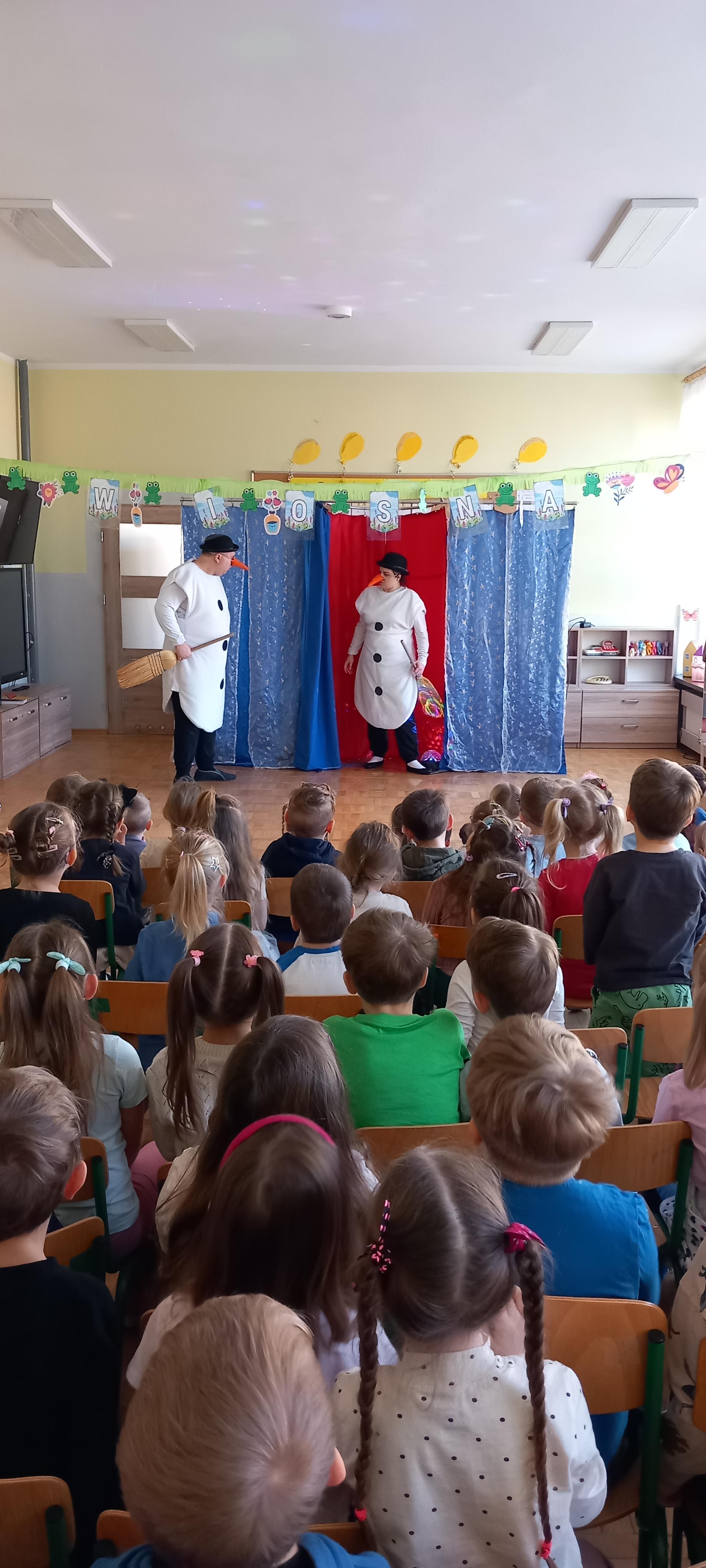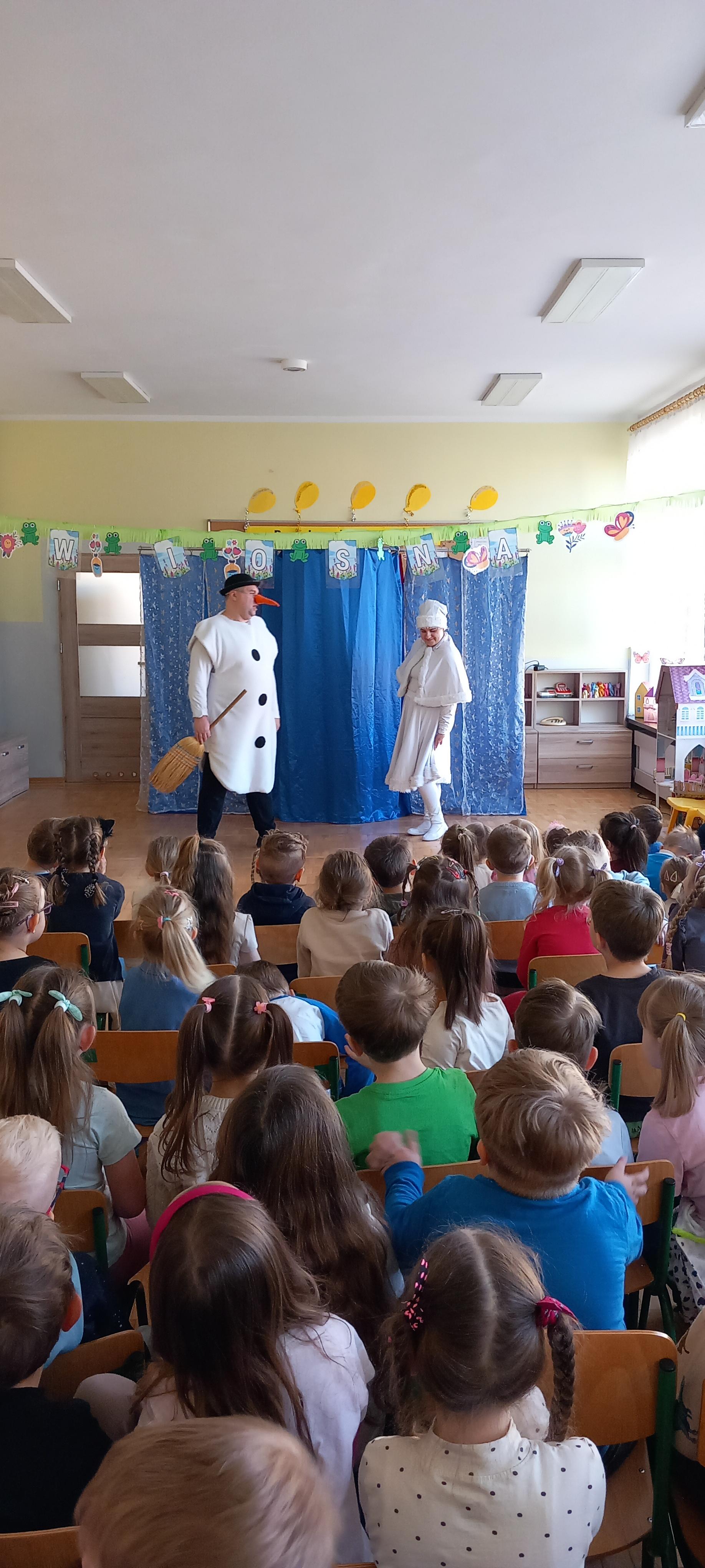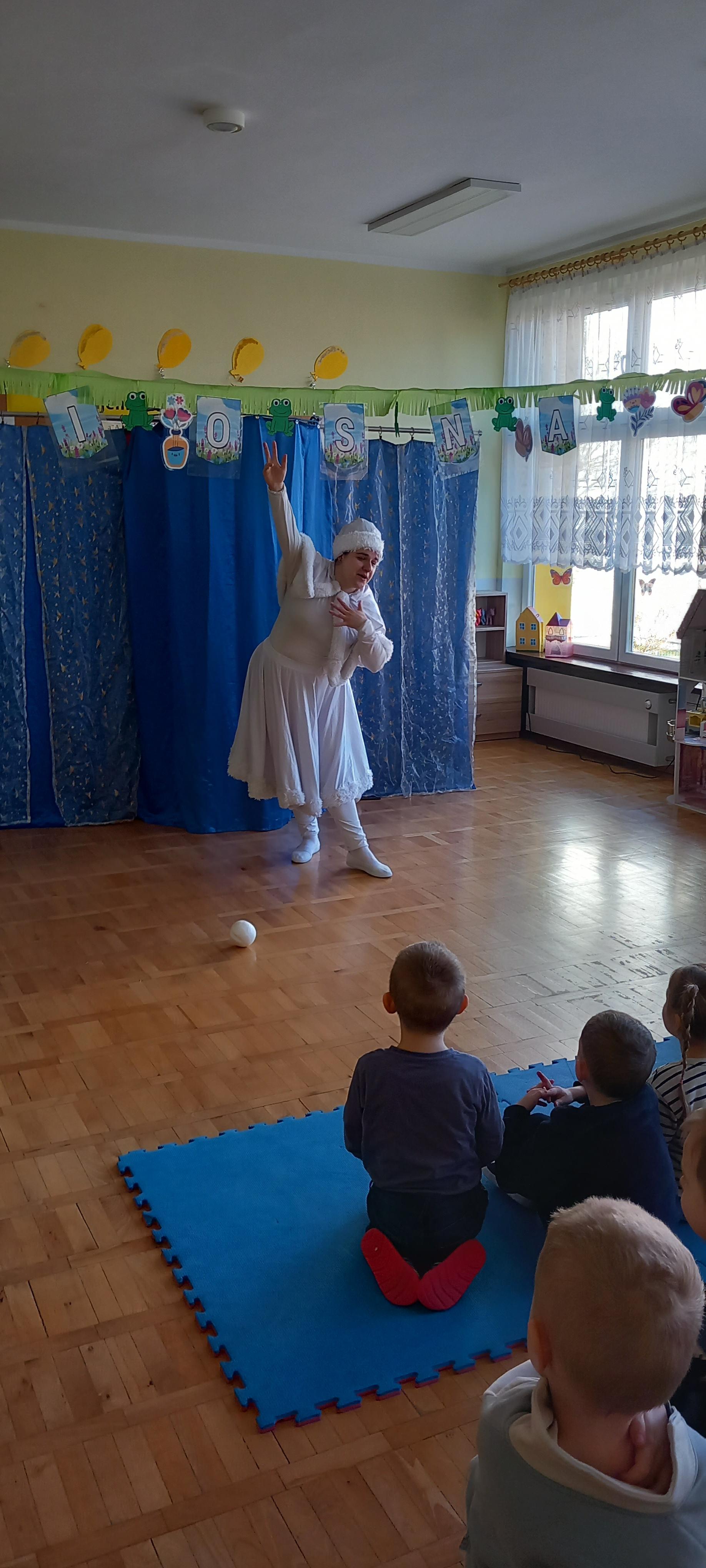 Dzieci aktywnie uczestniczyły w przygodach Bałwanka, śpiewały, tańczyły, pomagały mu podejmować decyzje i odkrywały zimowe sekrety.