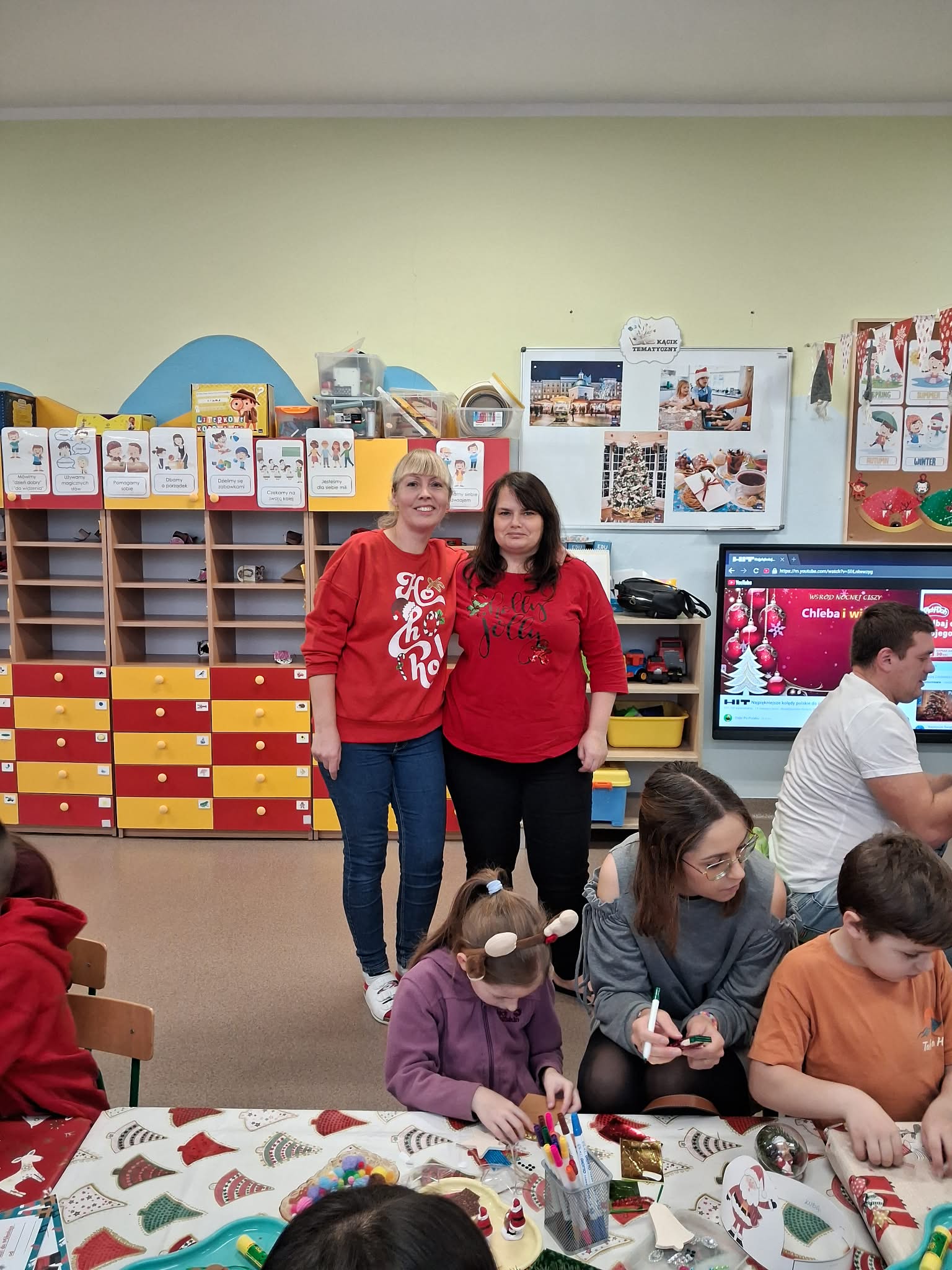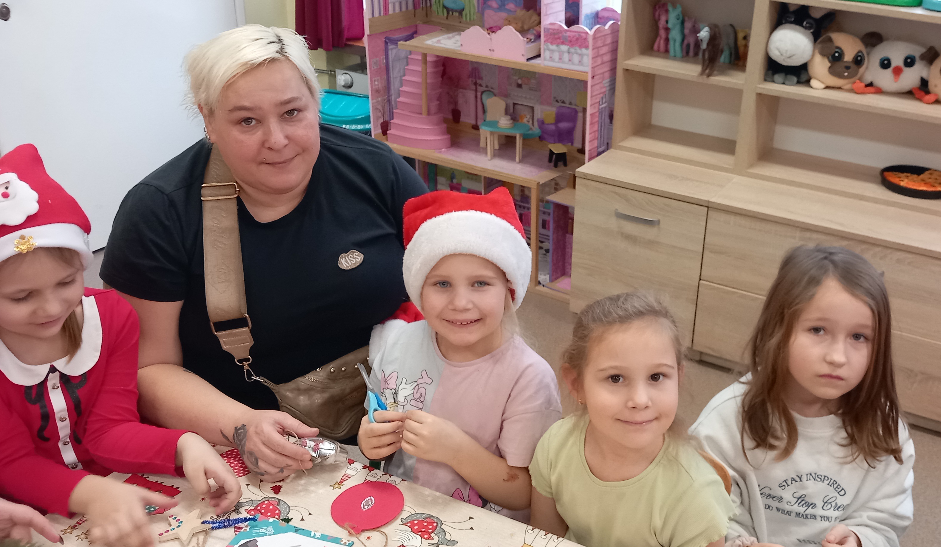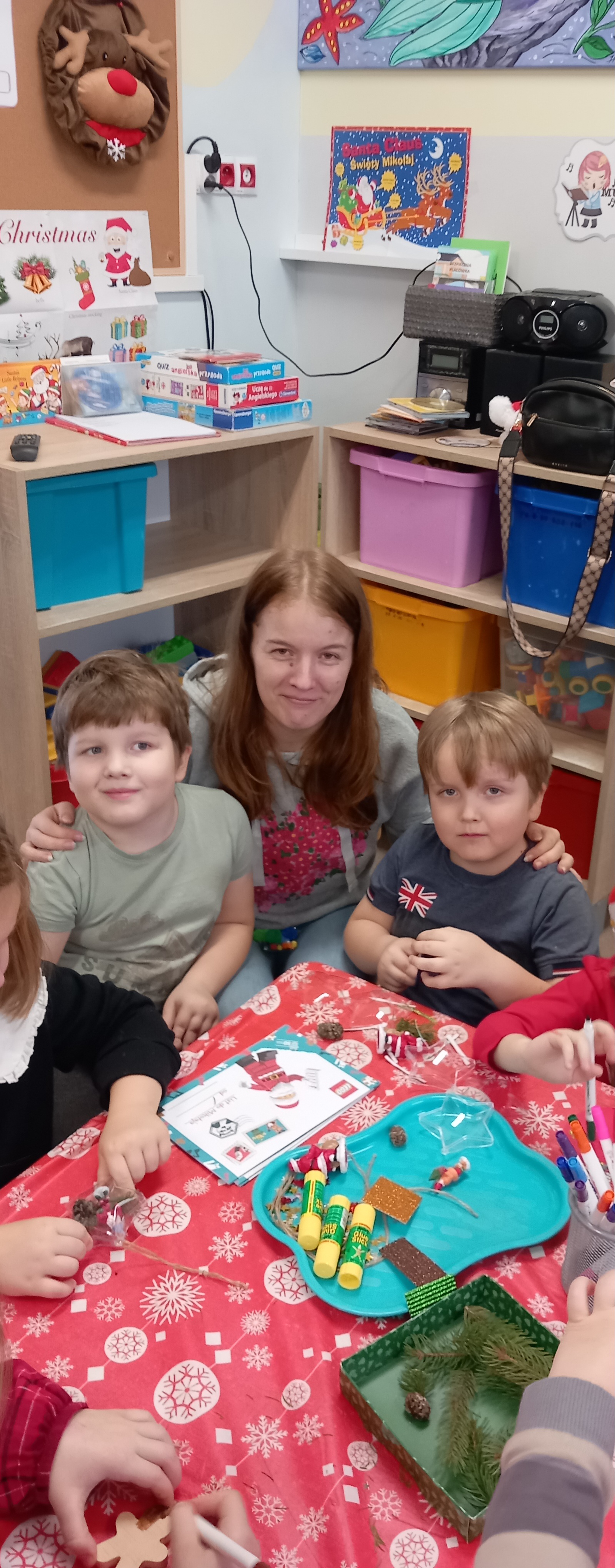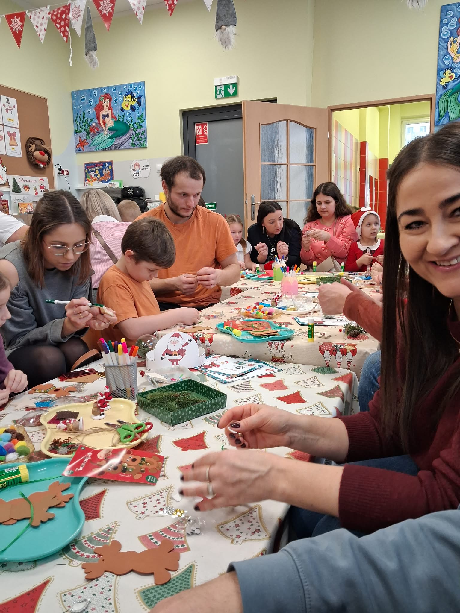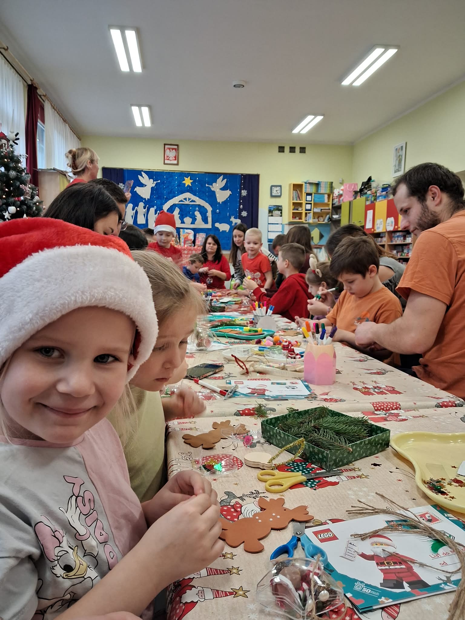 Następnie wszyscy w ciepłej i świątecznej atmosferze zasiedli do stołu aby przygotować ozdoby i dekoracje bożonarodzeniowe.