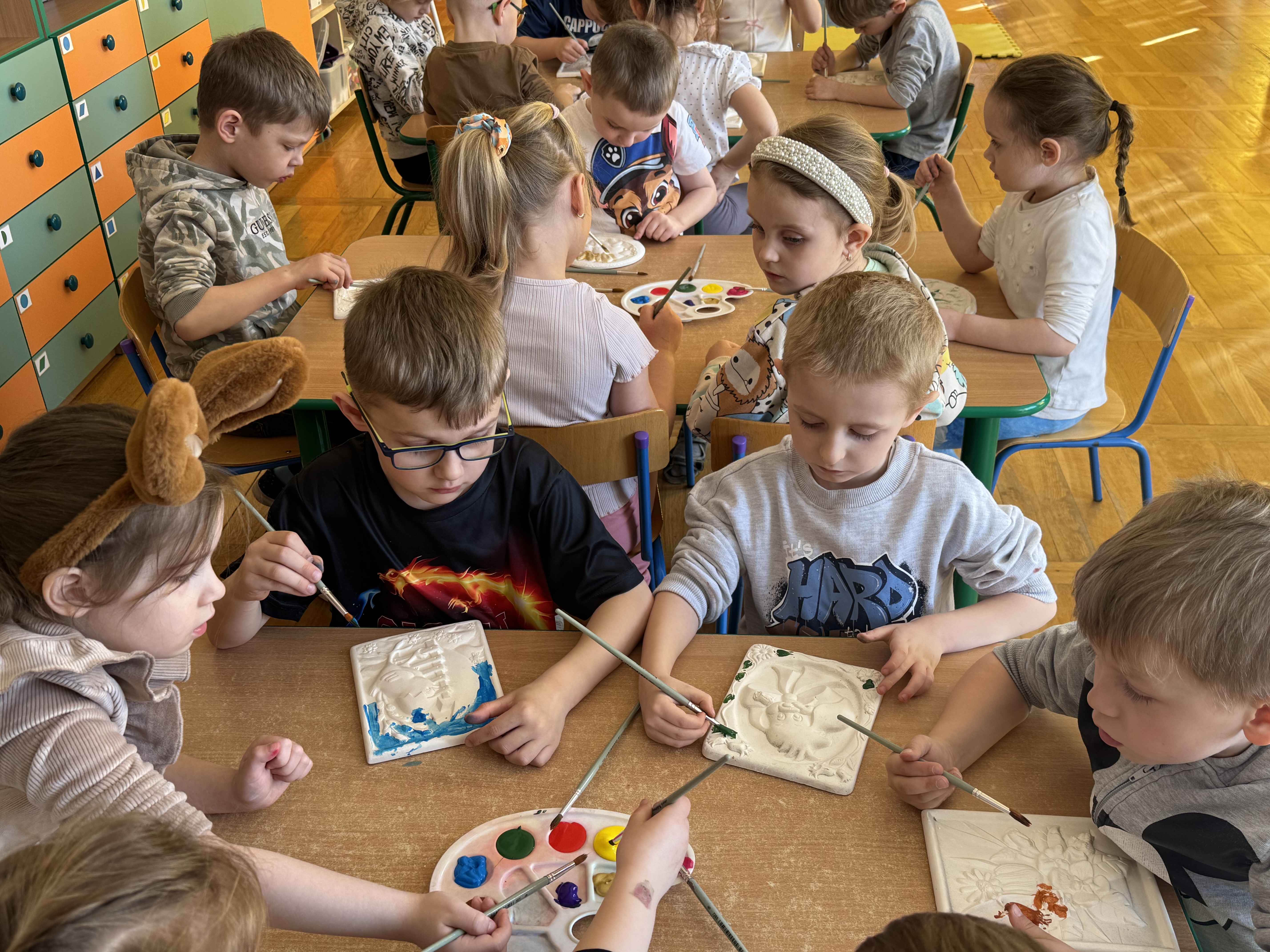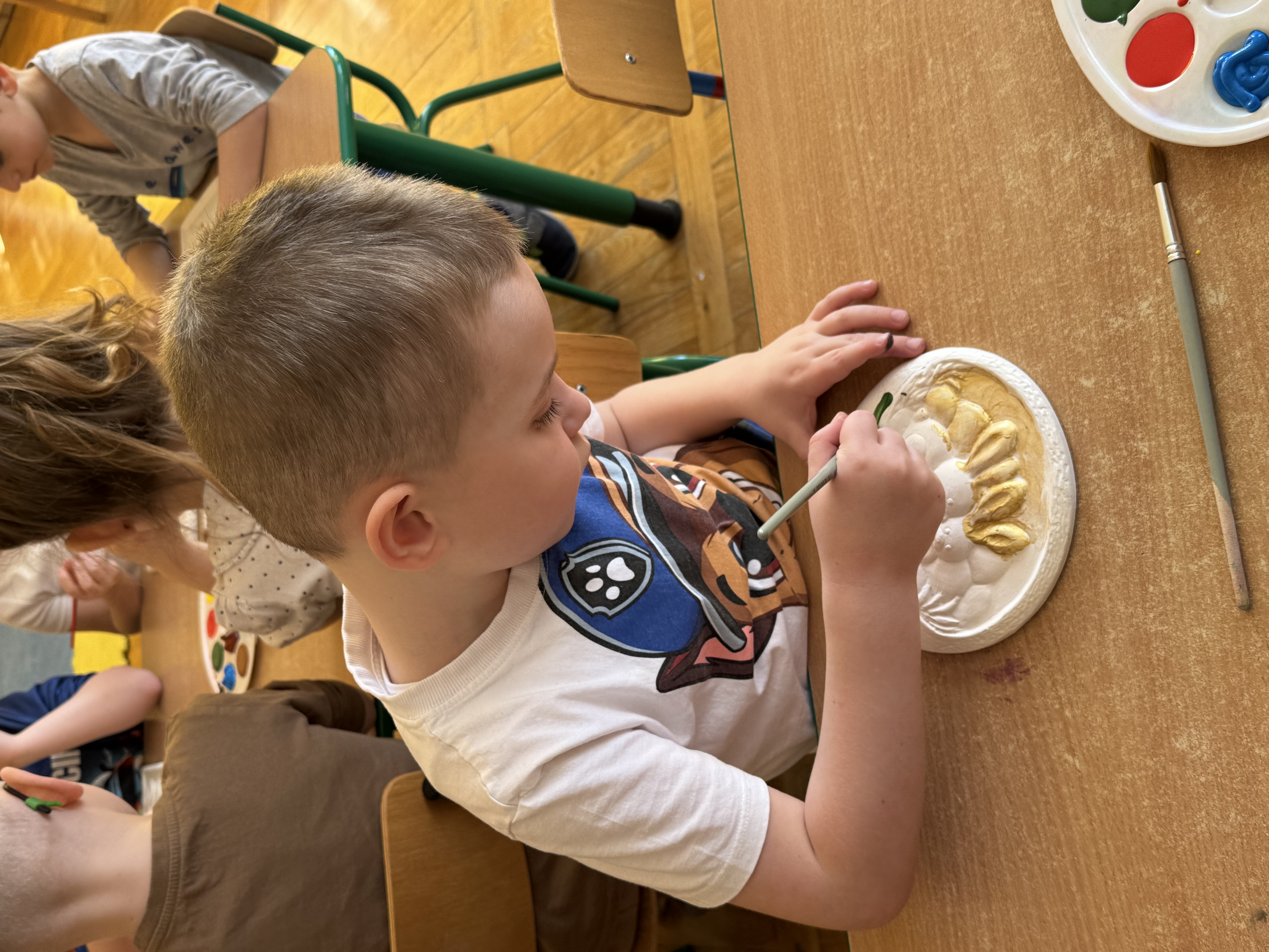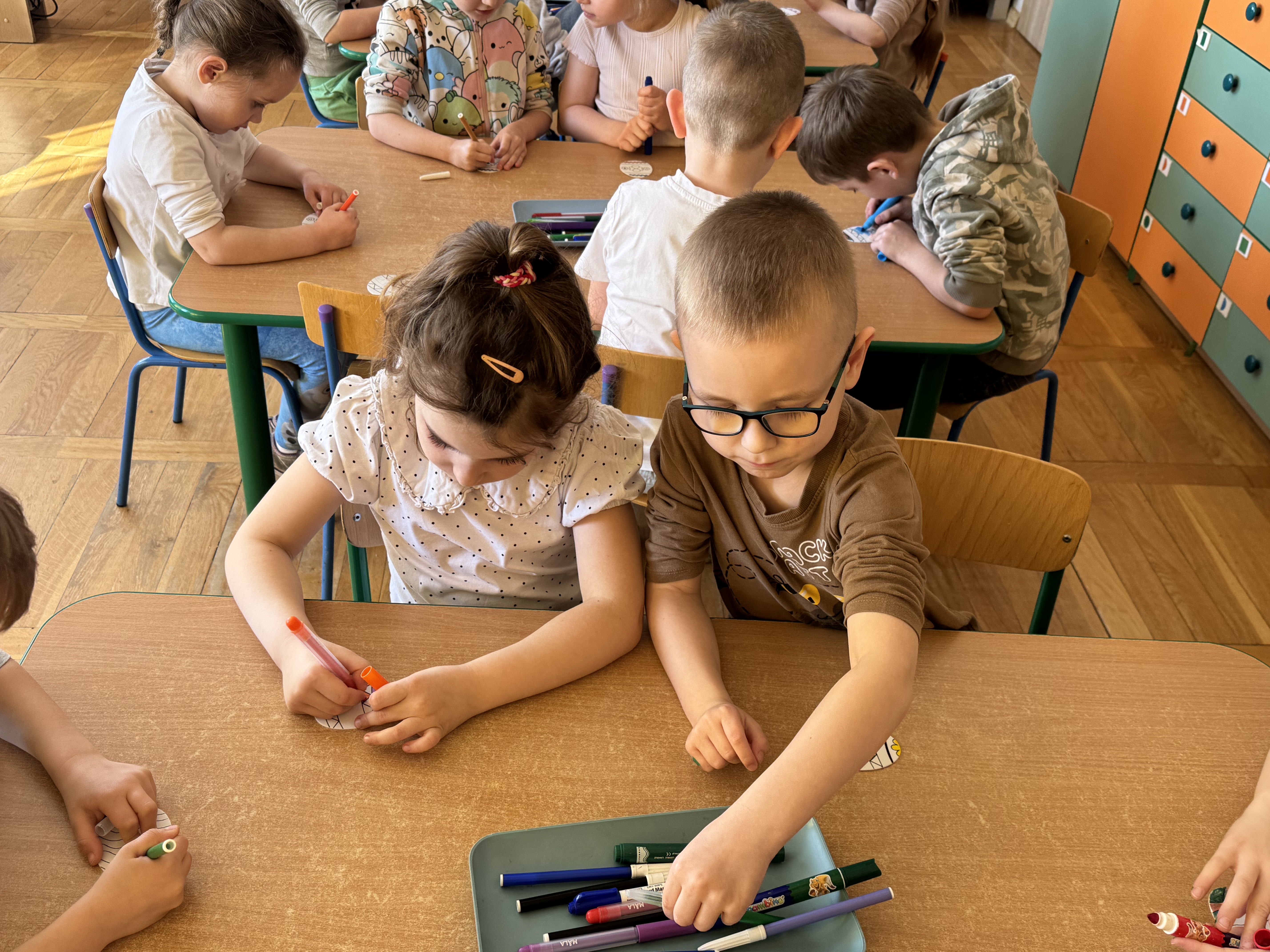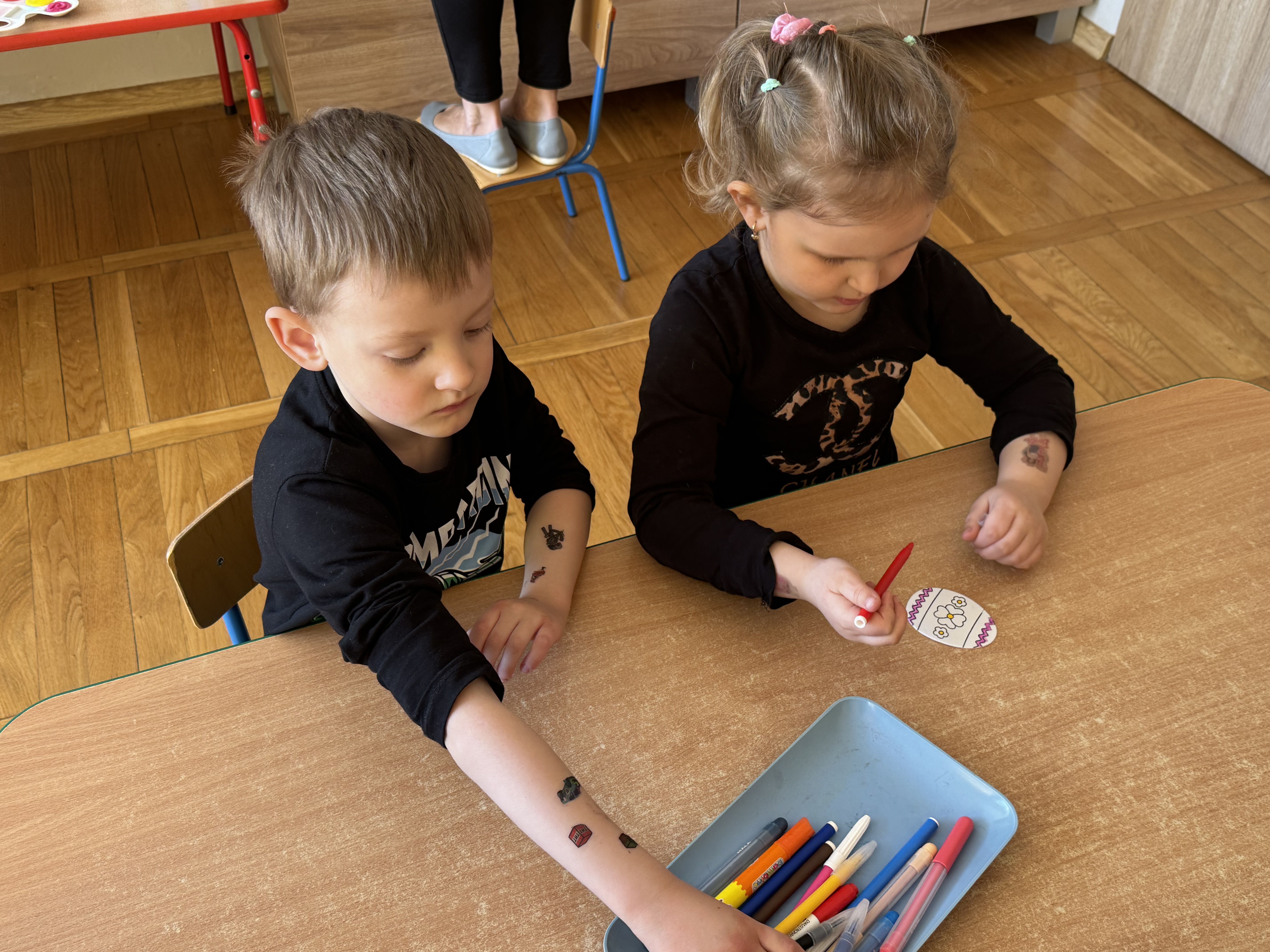 Dziś w przedszkolu odbyły się warsztaty wielkanocne. Dzieci ozdabiały jajka oraz przygotowywały świąteczne obrazki. Zajęcia były okazją do pracy twórczej i wprowadzenia w wielkanocny klimat.
