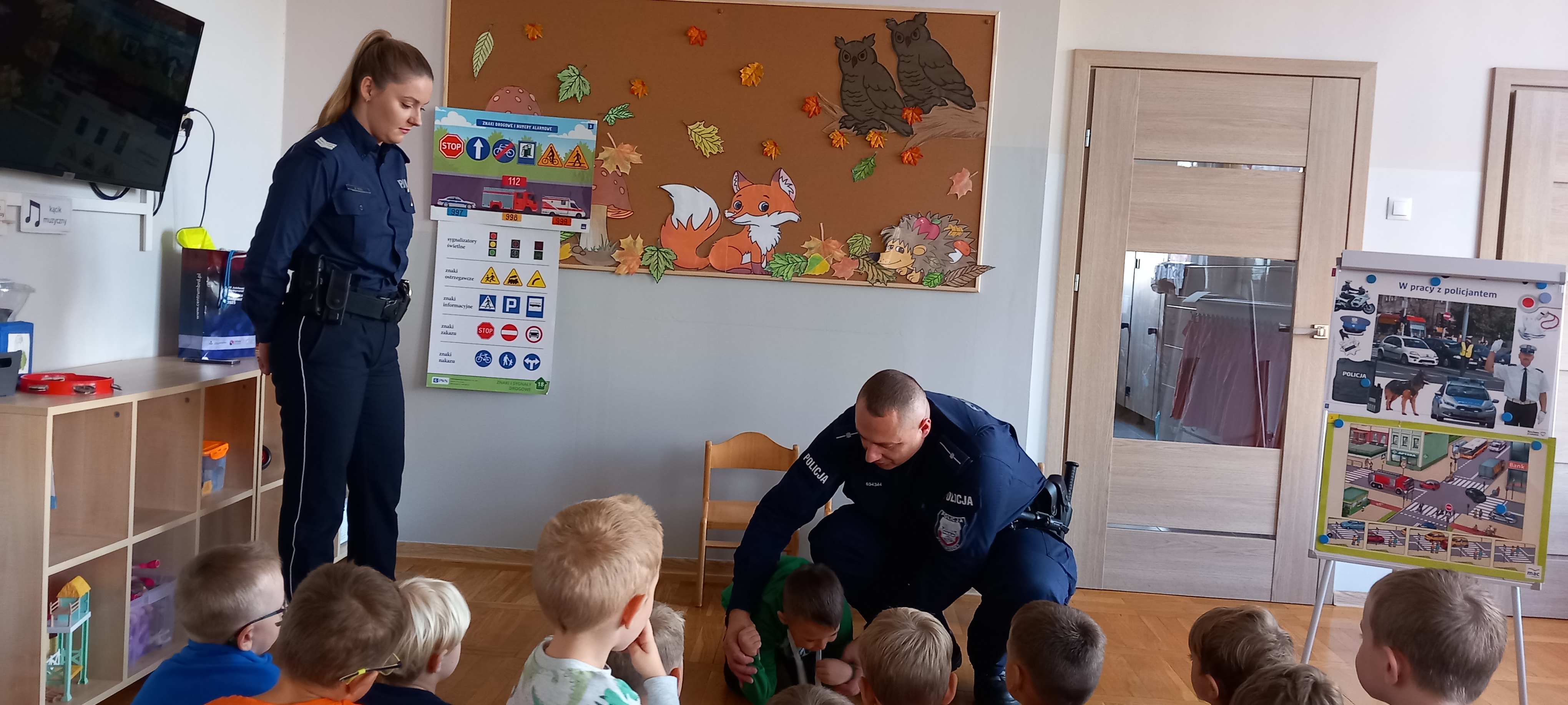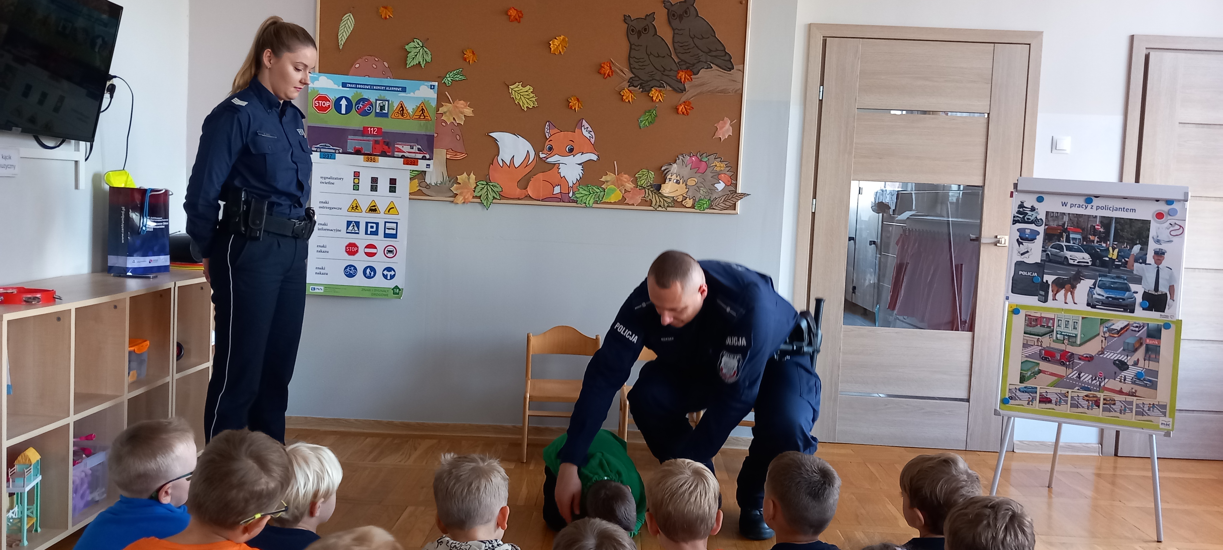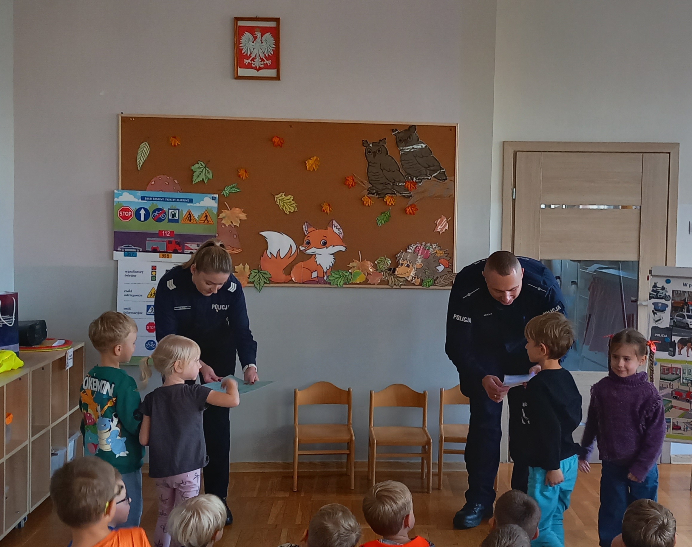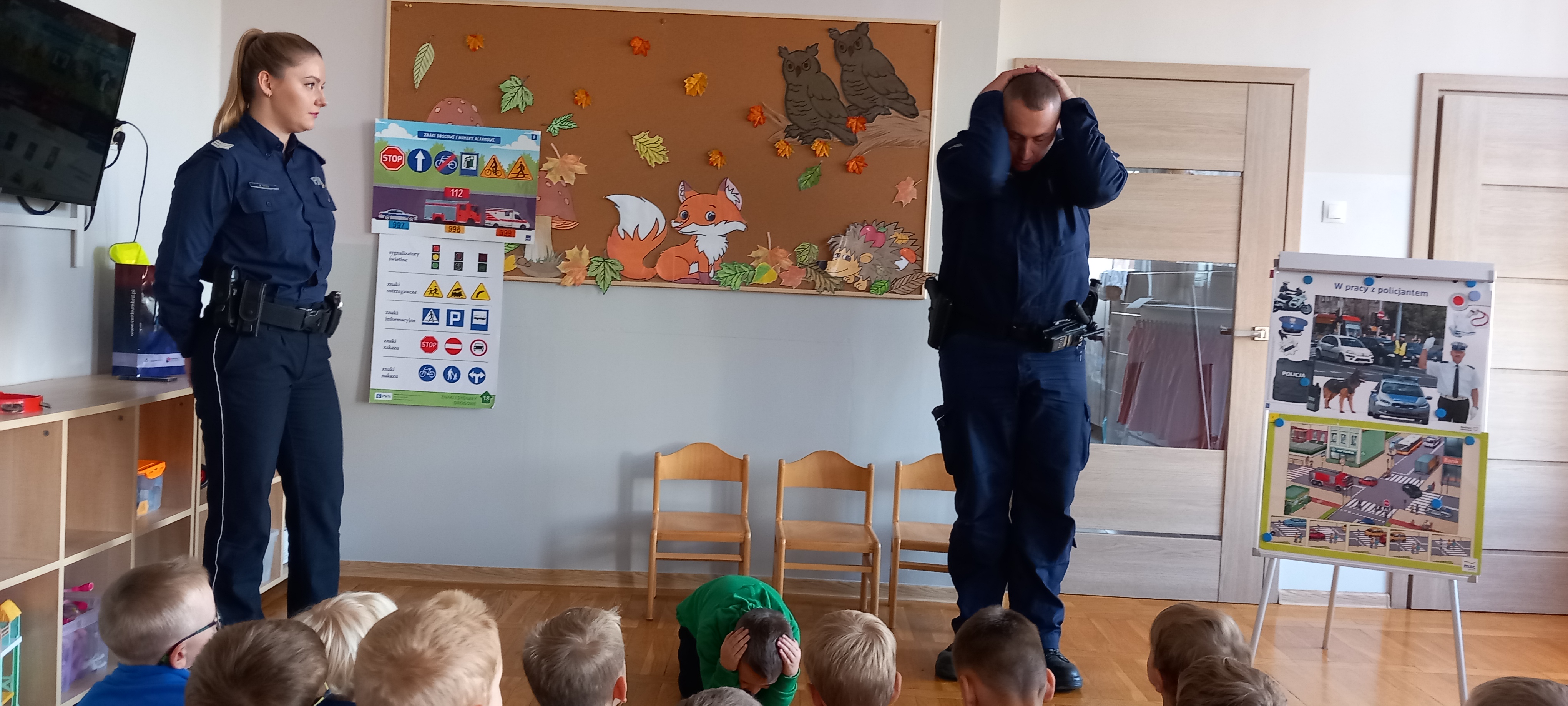 Było to spotkanie edukacyjne, podczas którego funkcjonariusze przypomnieli dzieciom zasady bezpieczeństwa w ruchu drogowym, jak zachować się w razie ataku groźnego psa a także przypomnieli numer alarmowy 112.
