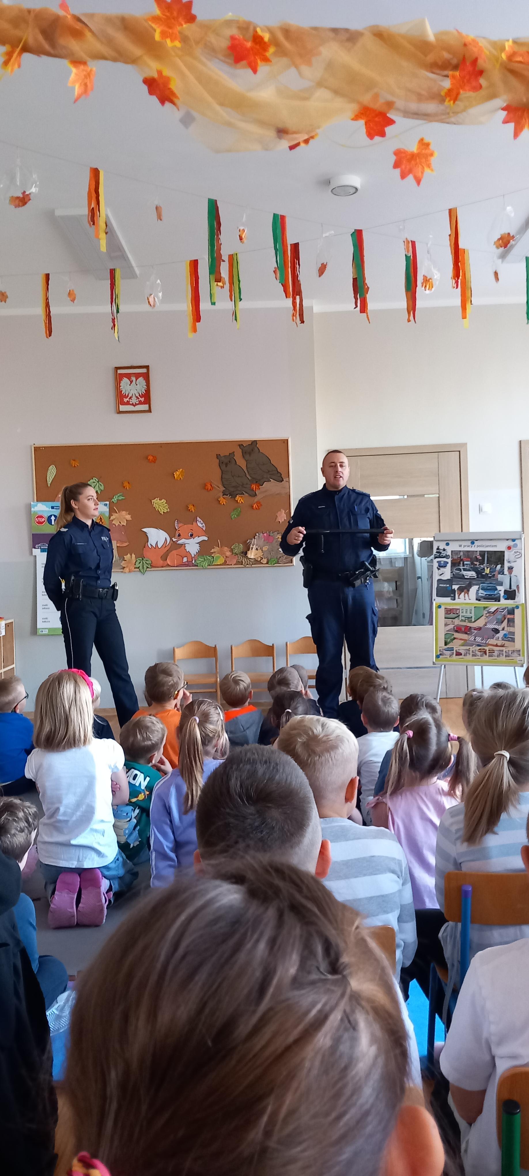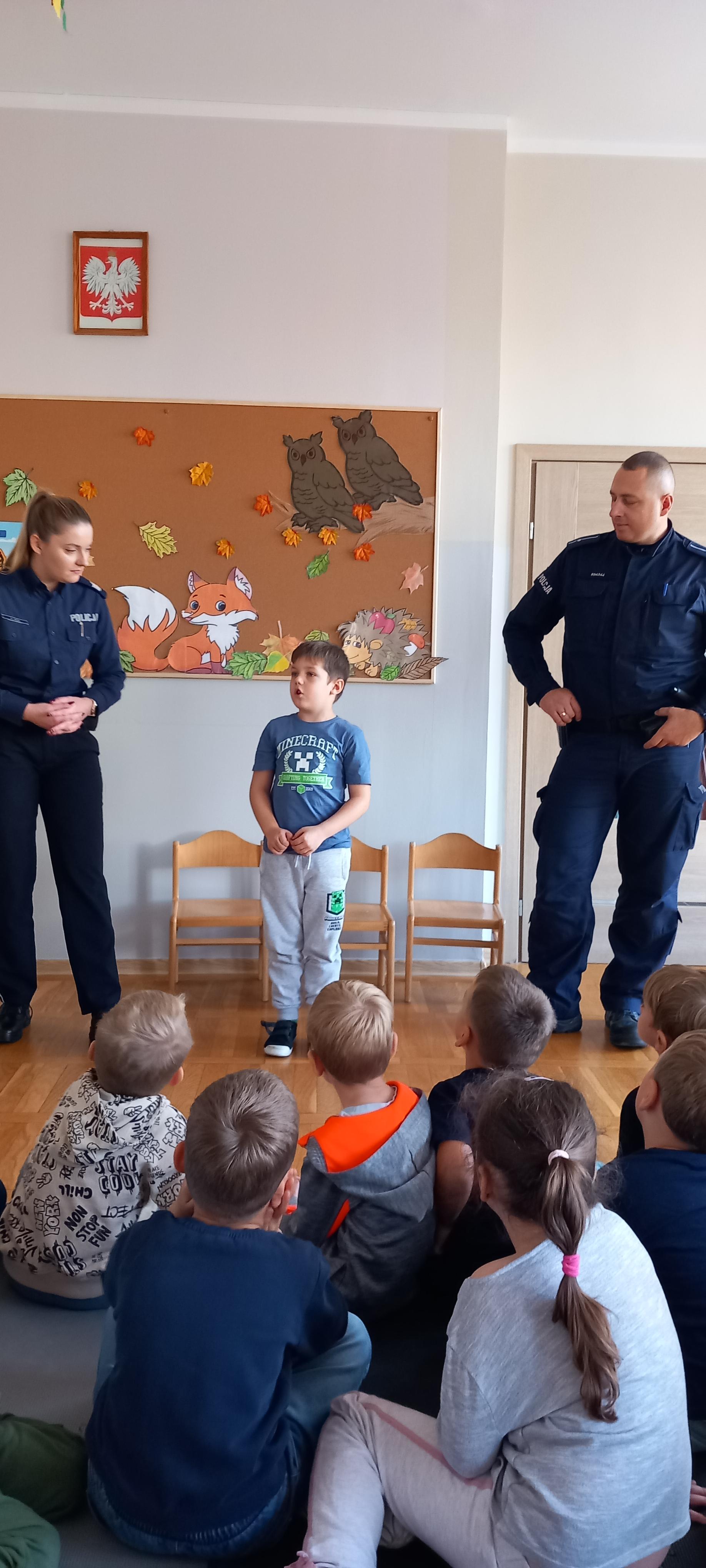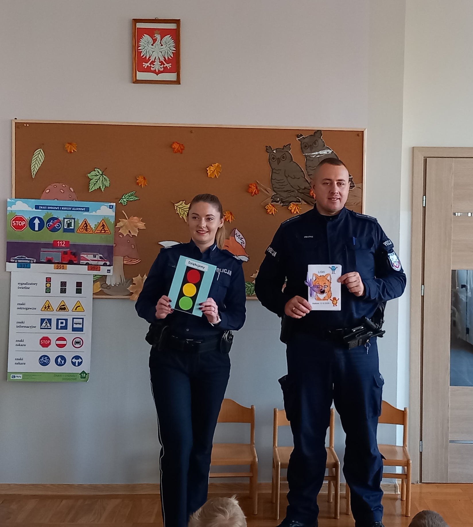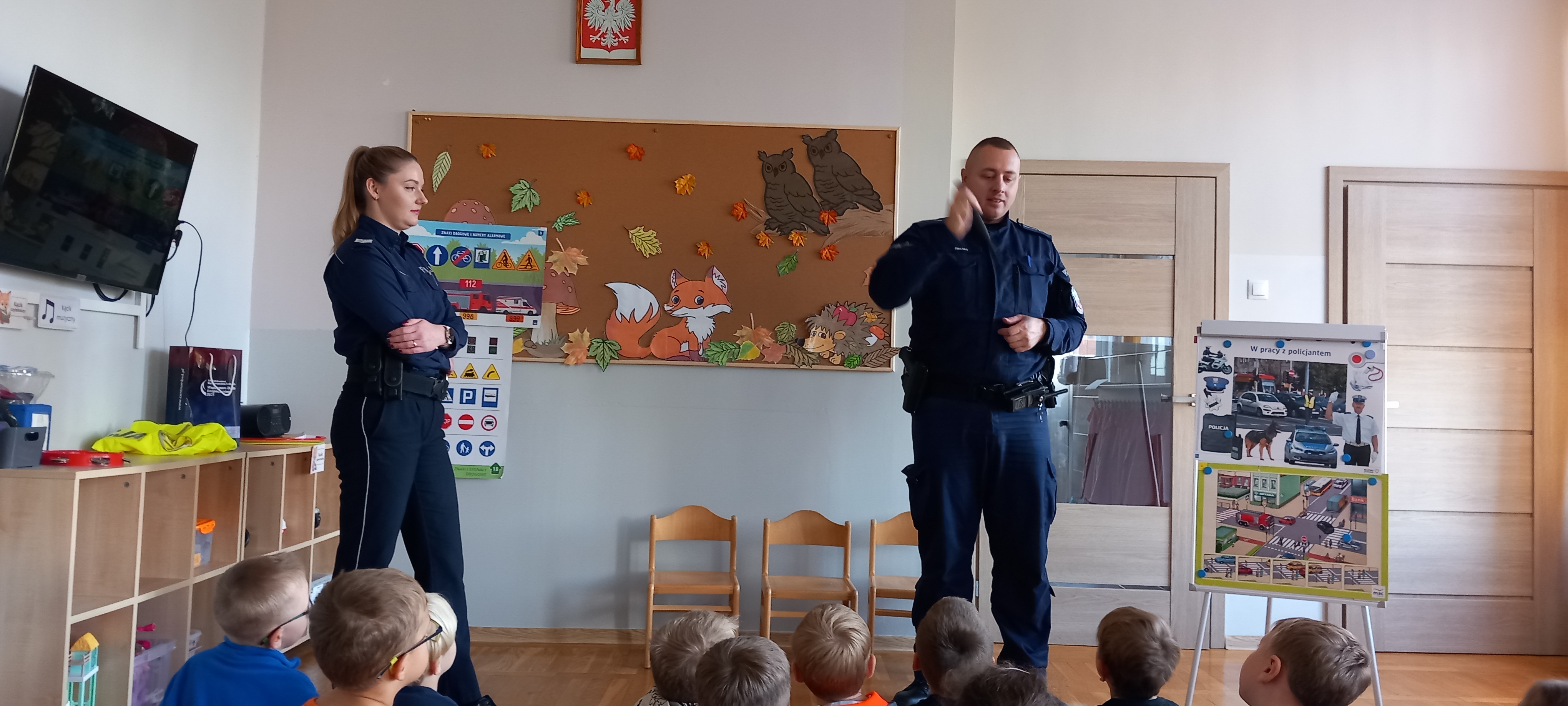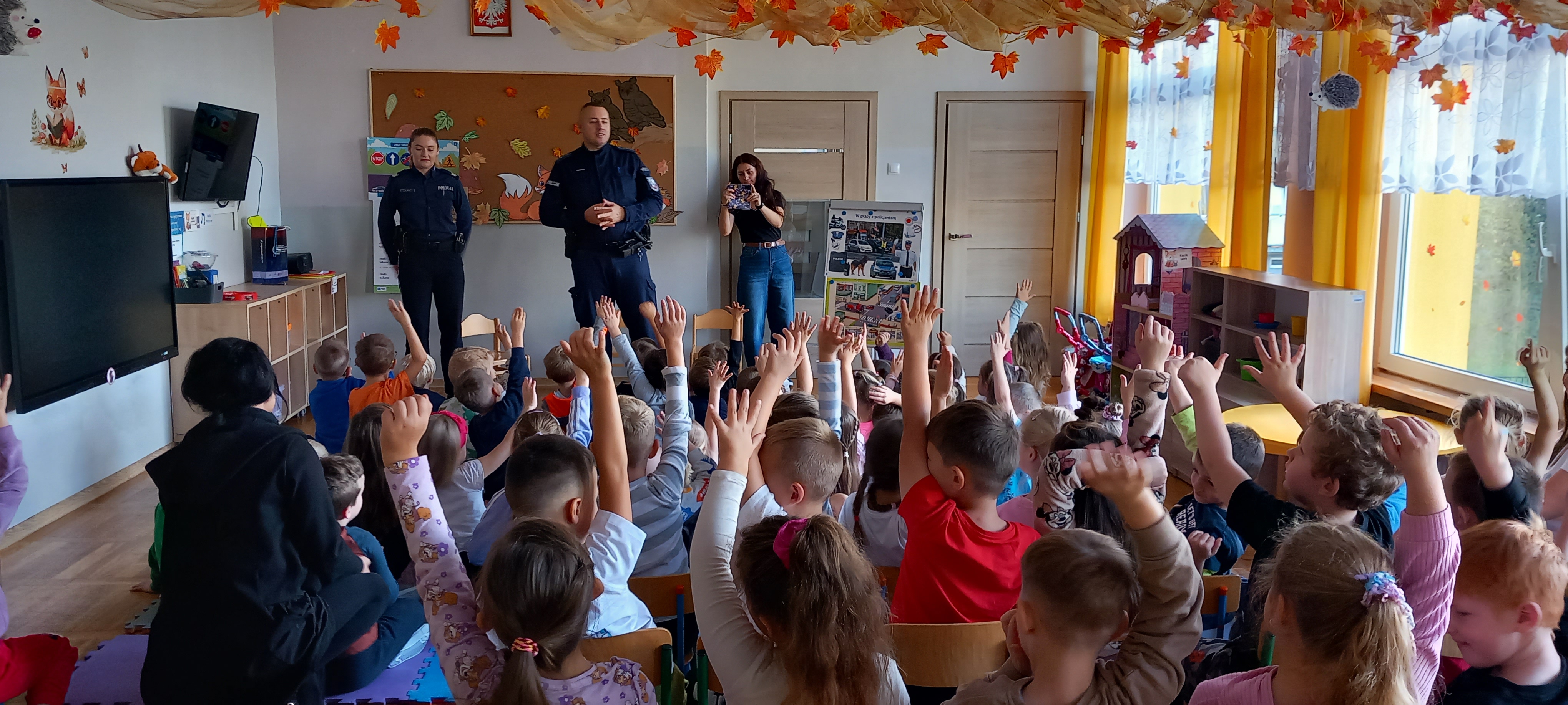 Było to spotkanie edukacyjne, podczas którego funkcjonariusze przypomnieli dzieciom zasady bezpieczeństwa w ruchu drogowym, jak zachować się w razie ataku groźnego psa a także przypomnieli numer alarmowy 112.