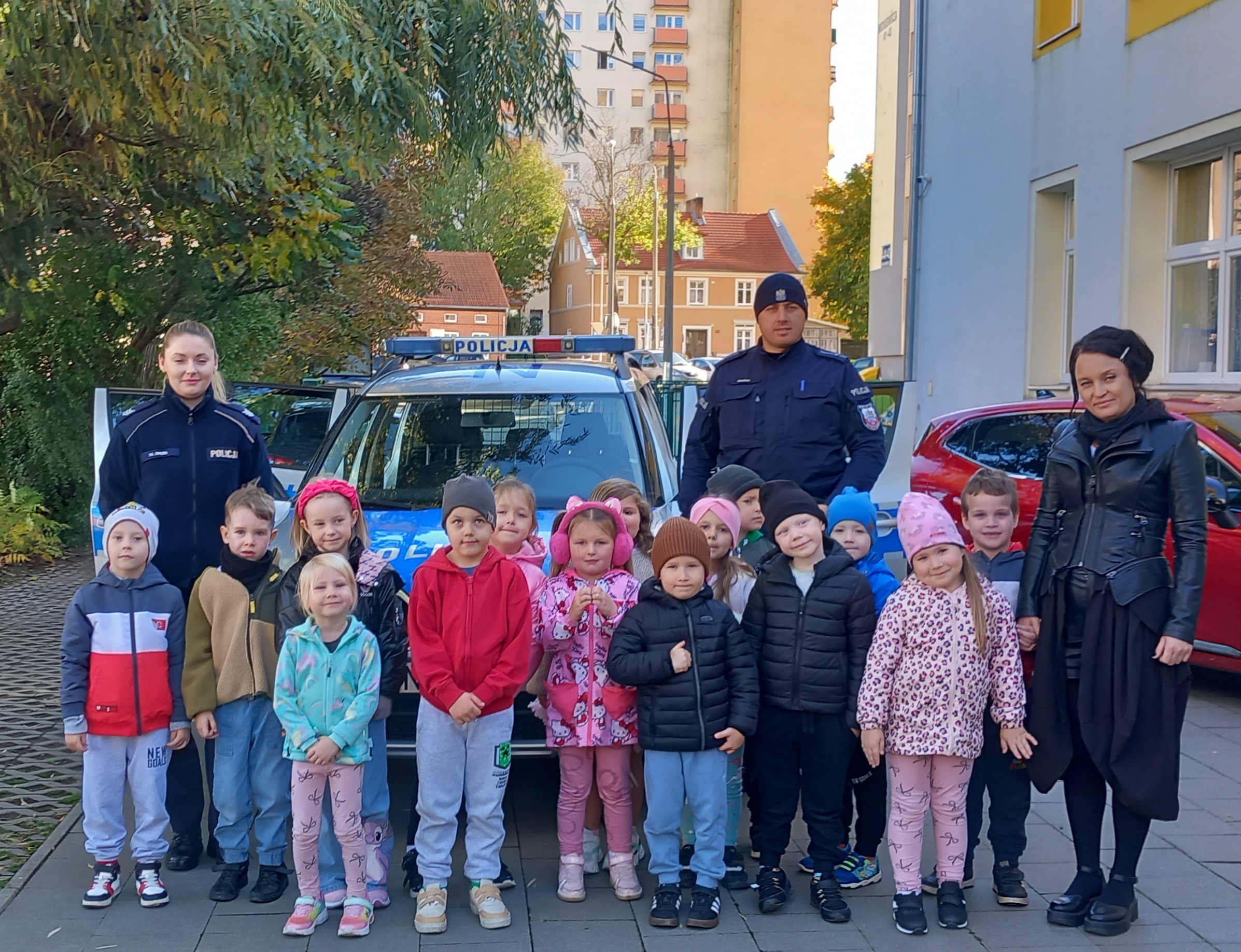 Nasze przedszkolaki miały okazję również zobaczyć radiowóz oraz usłyszeć syrenę.