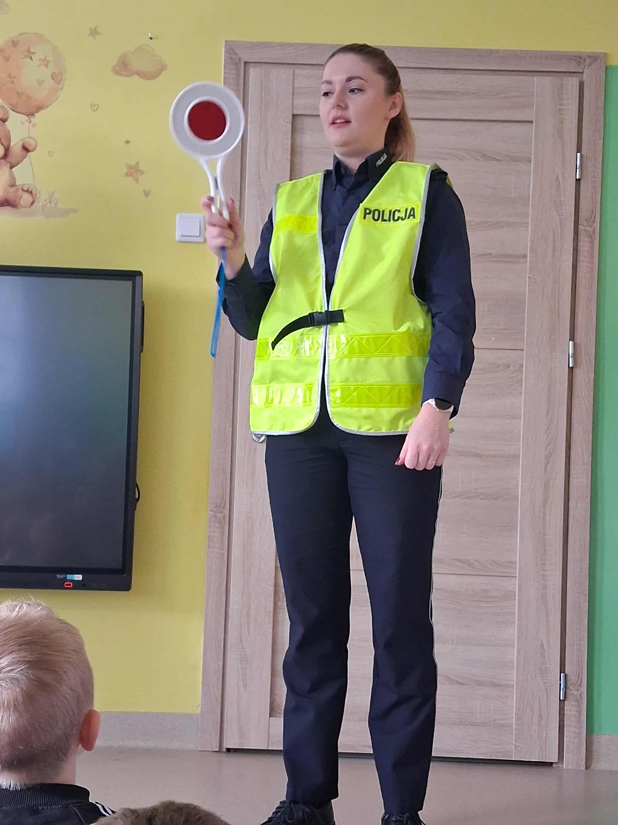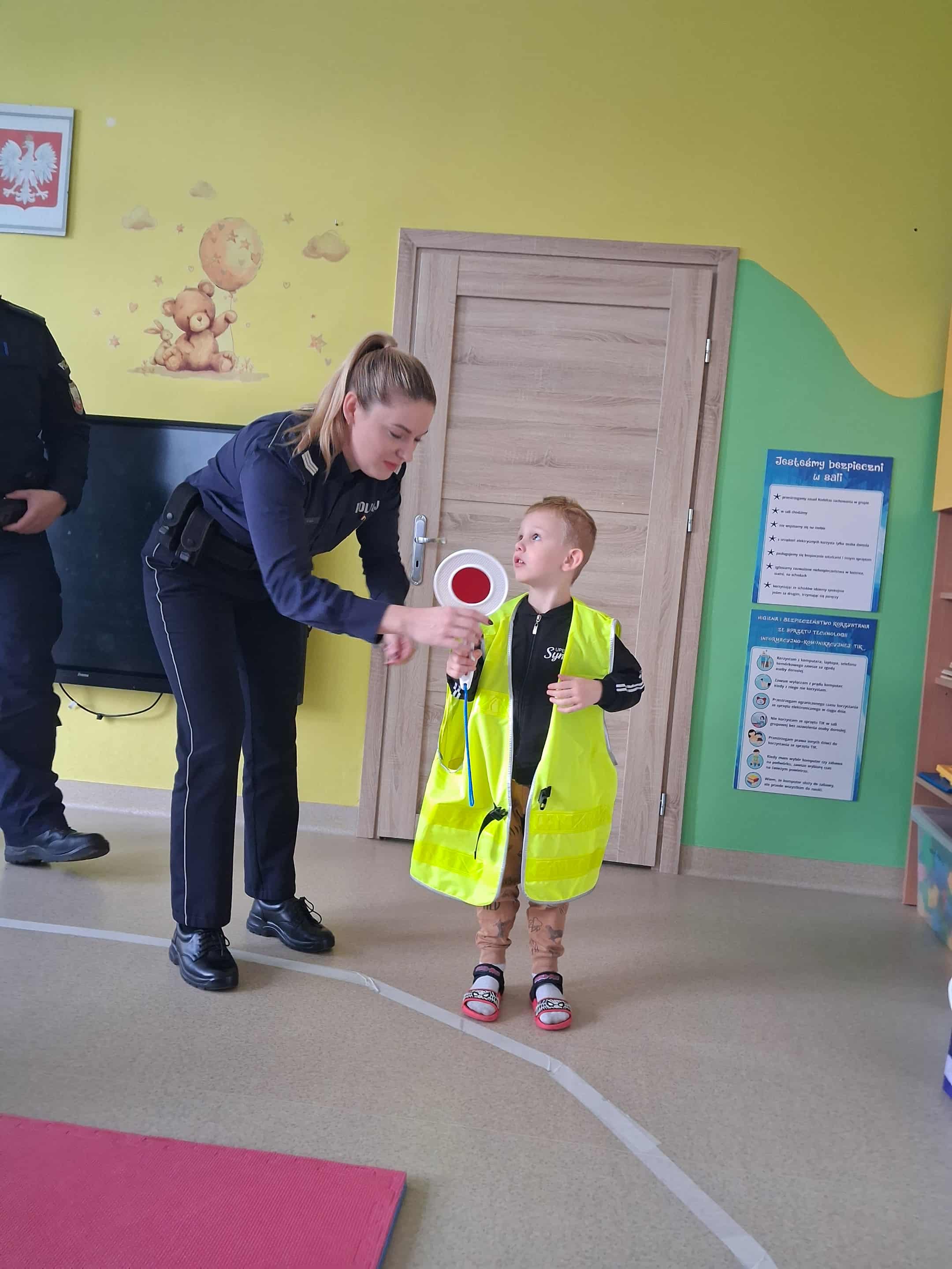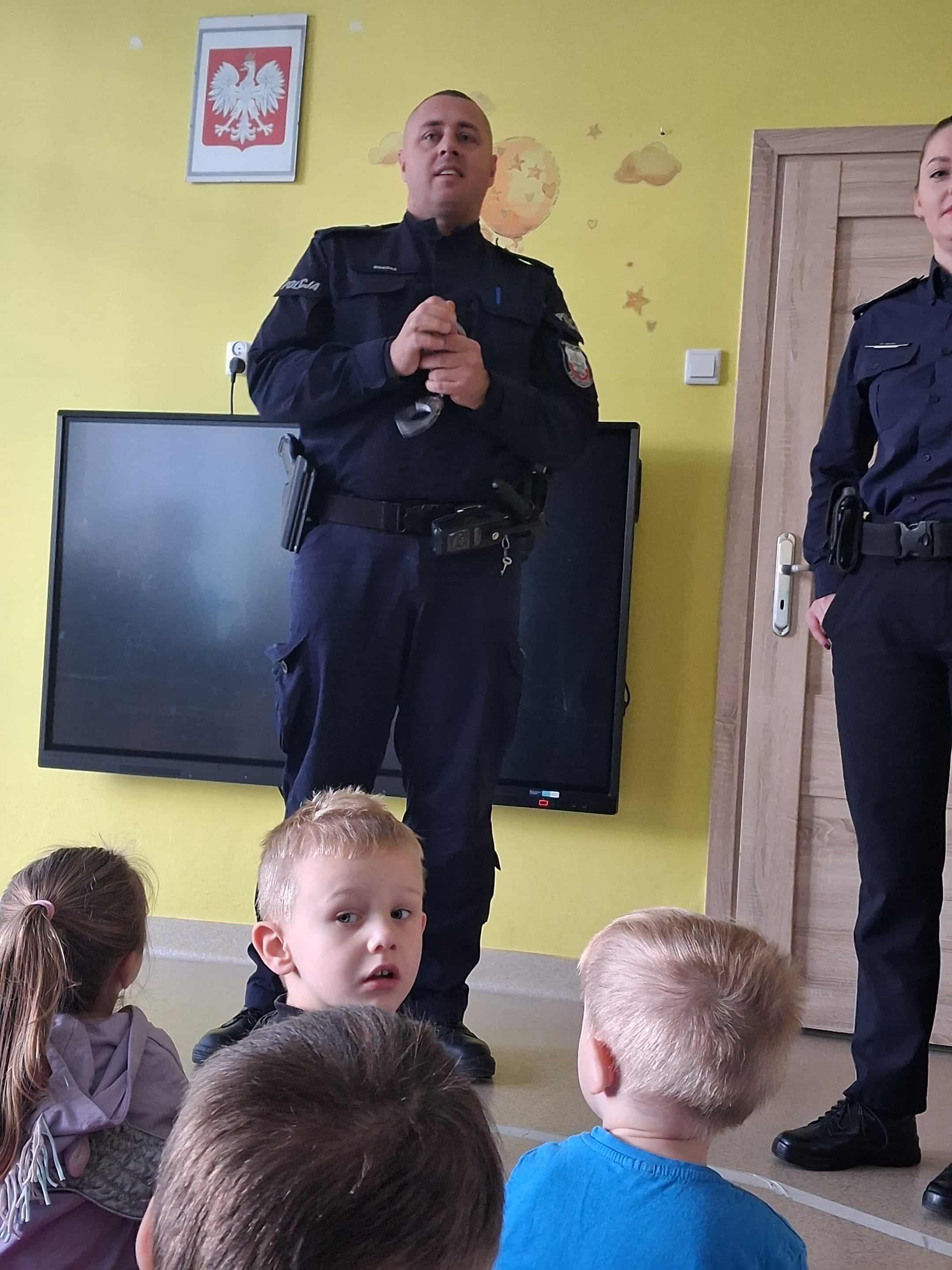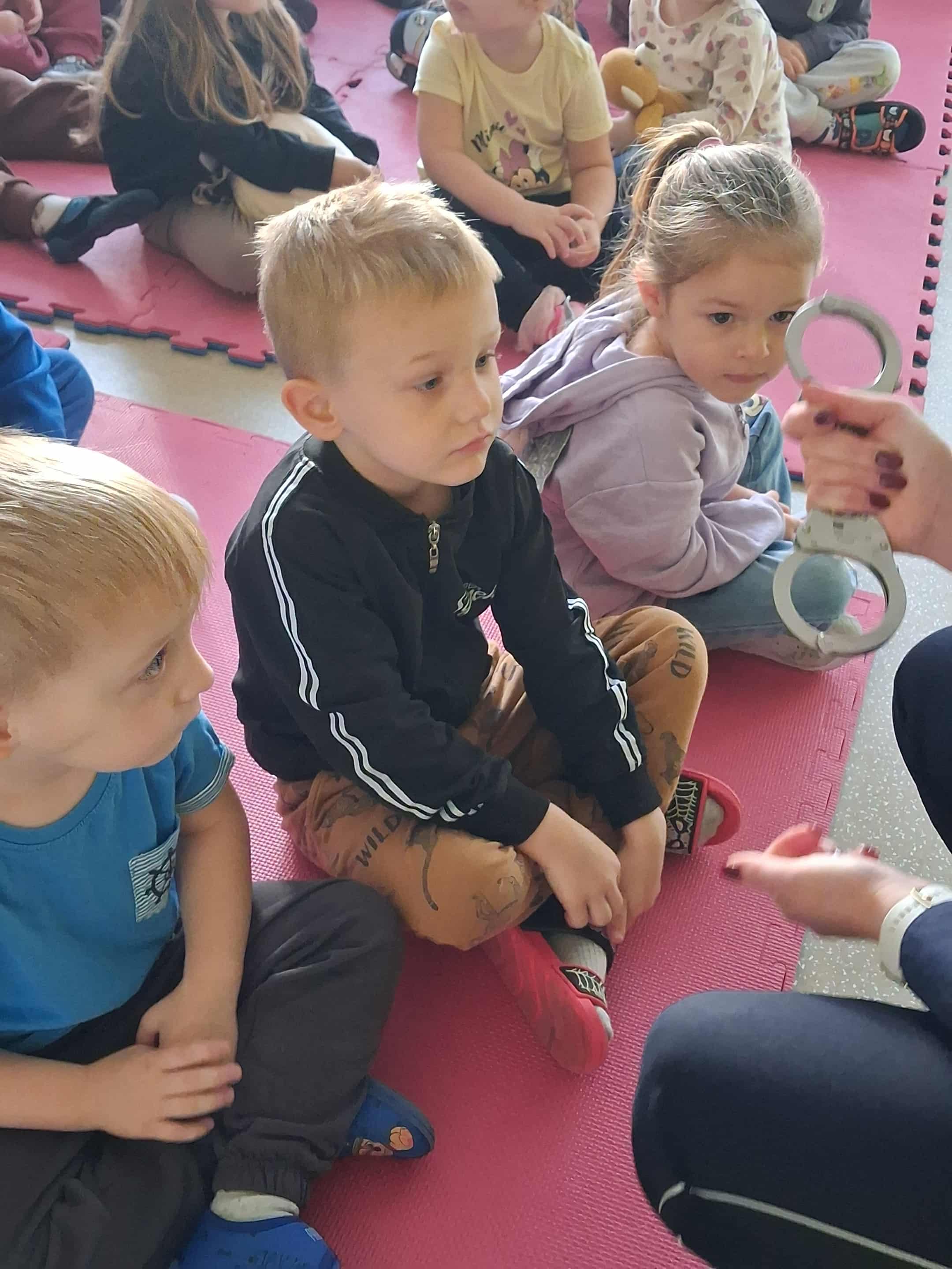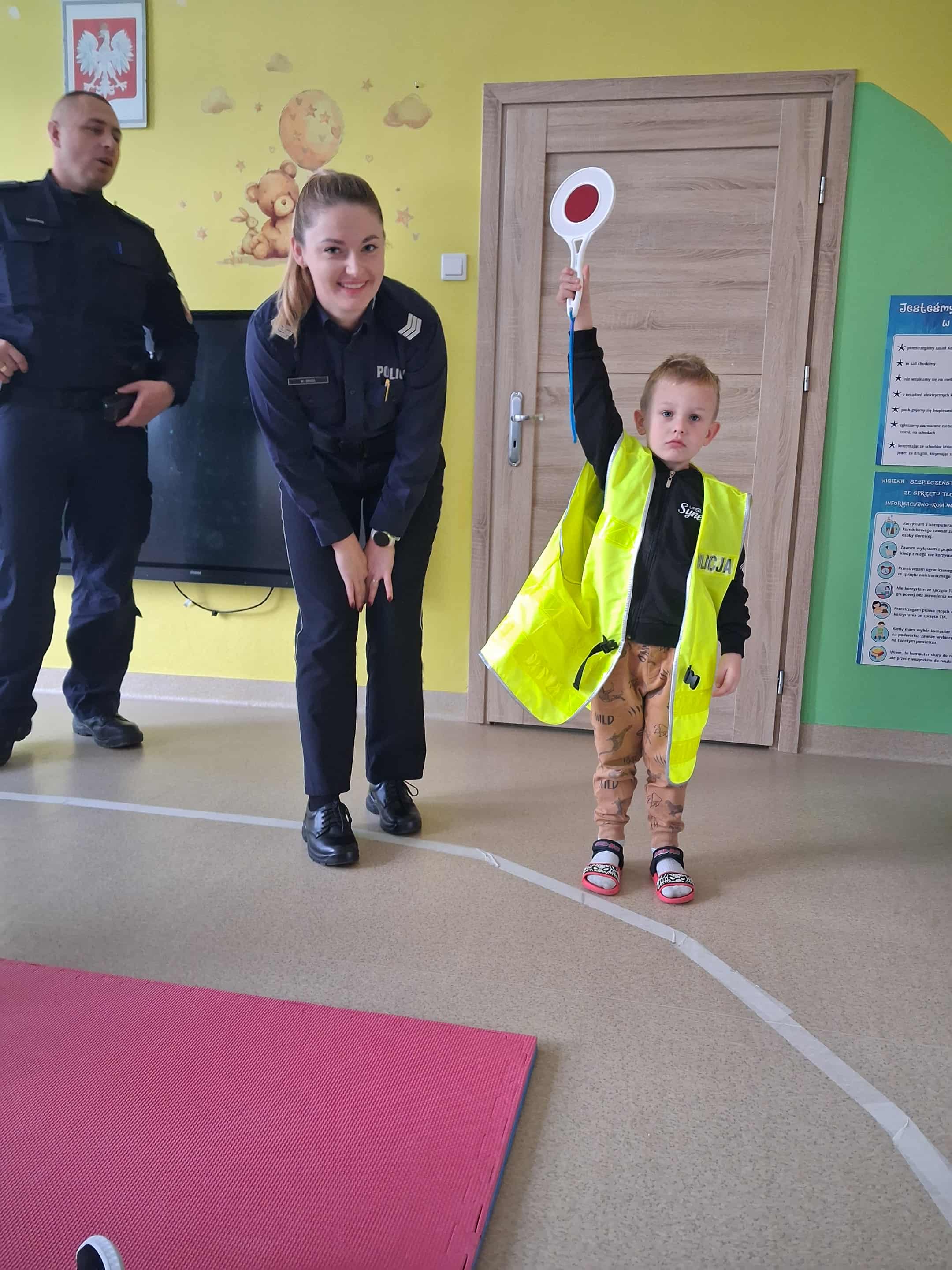W dniu dzisiejszym przedszkole odwiedzili malborscy policjanci. Przypomnieli dzieciom jak bezpiecznie poruszać się pieszo ulicami miasta. Wspólnie z przedszkolakami ustalili, że przejść można w miejscu bezpiecznym, tj. „po zebrze”, ale najpierw trzeba podejść do przejścia, zatrzymać się, rozejrzeć najpierw w lewo, potem w prawo, następnie podnieść rękę i zachowując czujność przejść na drugą stronę jezdni. Dzieci dowiedziały się, że ważnym elementem w zachowaniu bezpieczeństwa jest stosowanie odblasków na odzieży, bucikach lub plecaczku. Oglądały radiowóz policyjny i słuchały sygnału policyjnego. To była miła wizyta. Dziękujemy:)