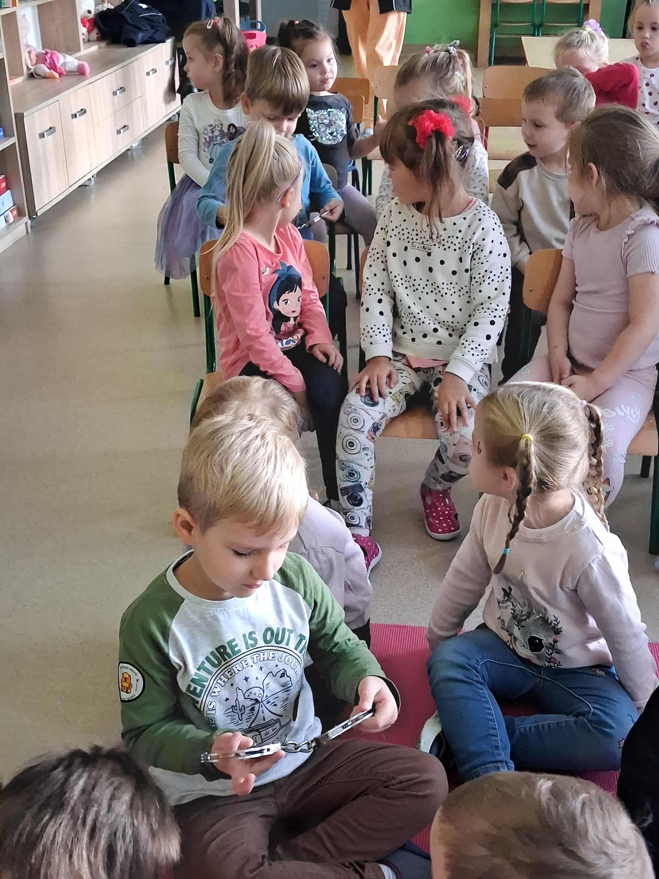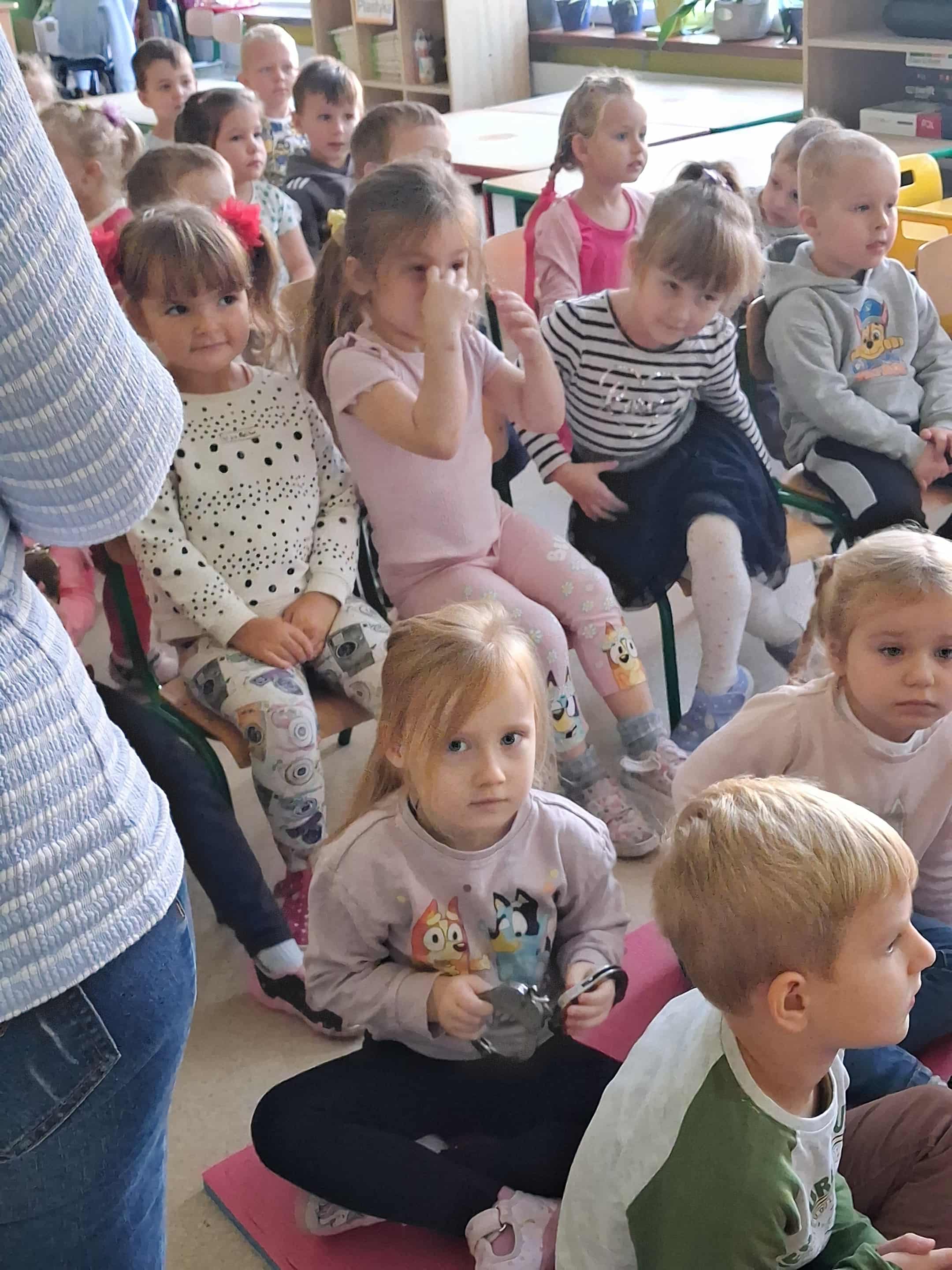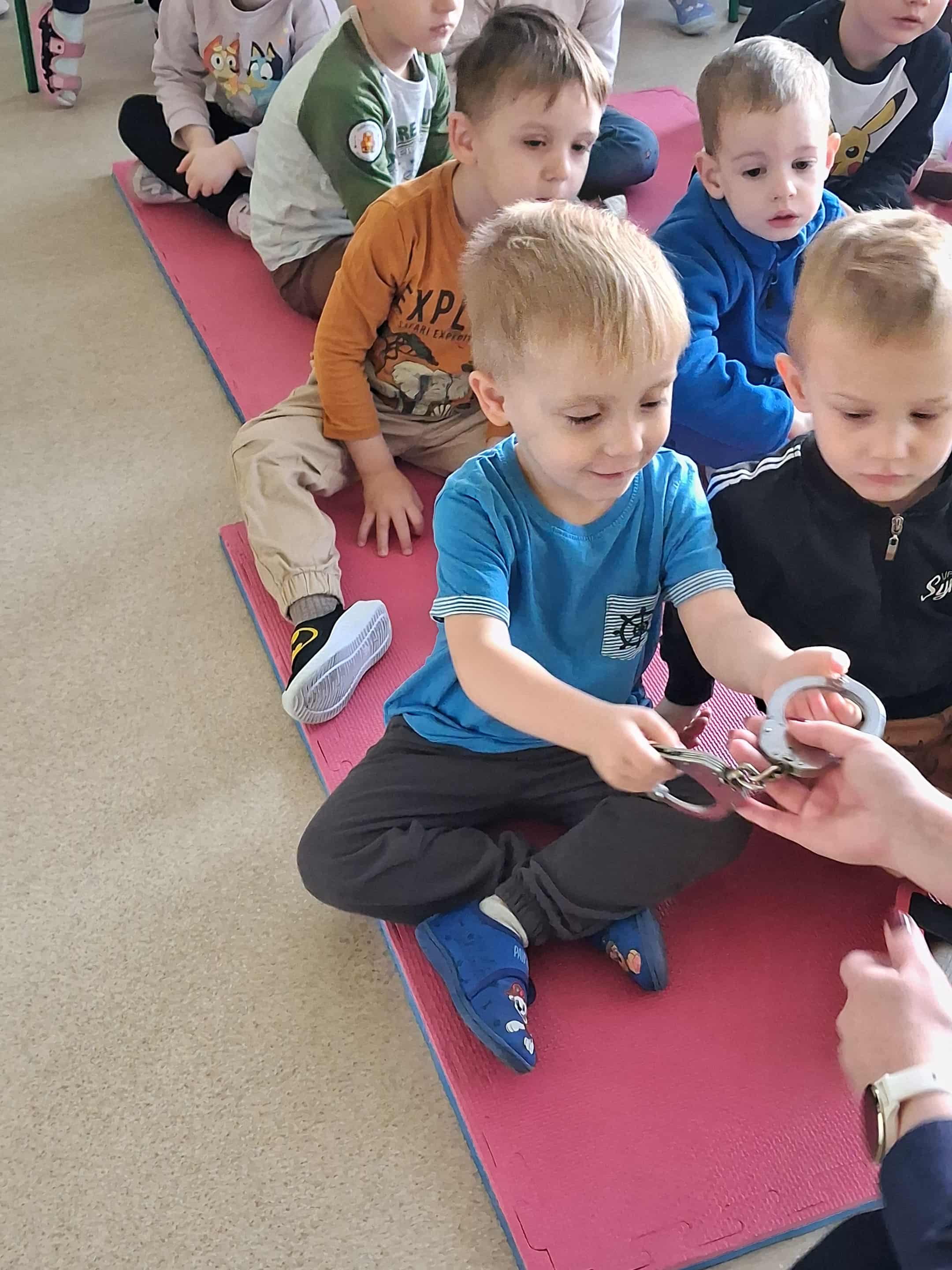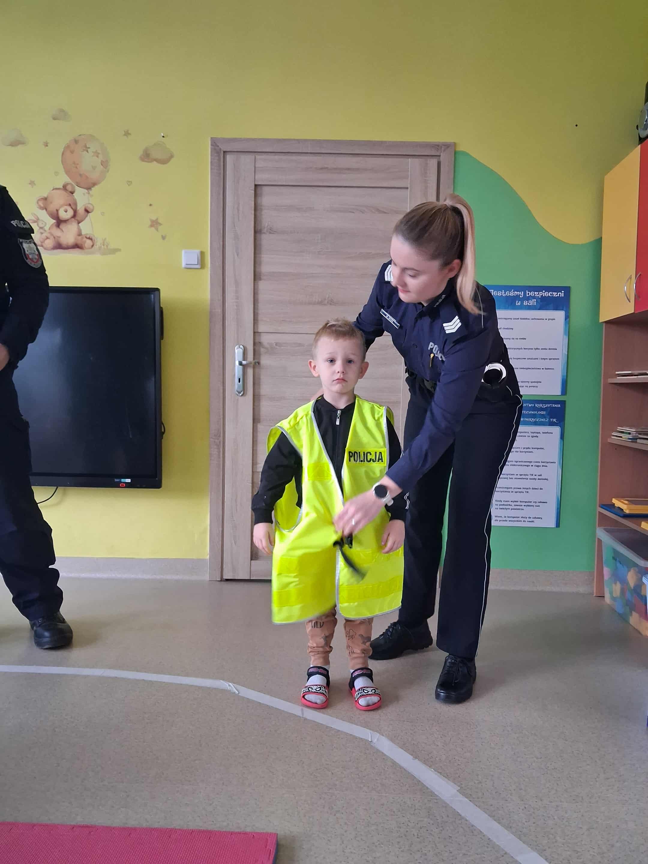 W dniu dzisiejszym przedszkole odwiedzili malborscy policjanci. Przypomnieli dzieciom jak bezpiecznie poruszać się pieszo ulicami miasta. Wspólnie z przedszkolakami ustalili, że przejść można w miejscu bezpiecznym, tj. „po zebrze”, ale najpierw trzeba podejść do przejścia, zatrzymać się, rozejrzeć najpierw w lewo, potem w prawo, następnie podnieść rękę i zachowując czujność przejść na drugą stronę jezdni. Dzieci dowiedziały się, że ważnym elementem w zachowaniu bezpieczeństwa jest stosowanie odblasków na odzieży, bucikach lub plecaczku. Oglądały radiowóz policyjny i słuchały sygnału policyjnego. To była miła wizyta. Dziękujemy:)