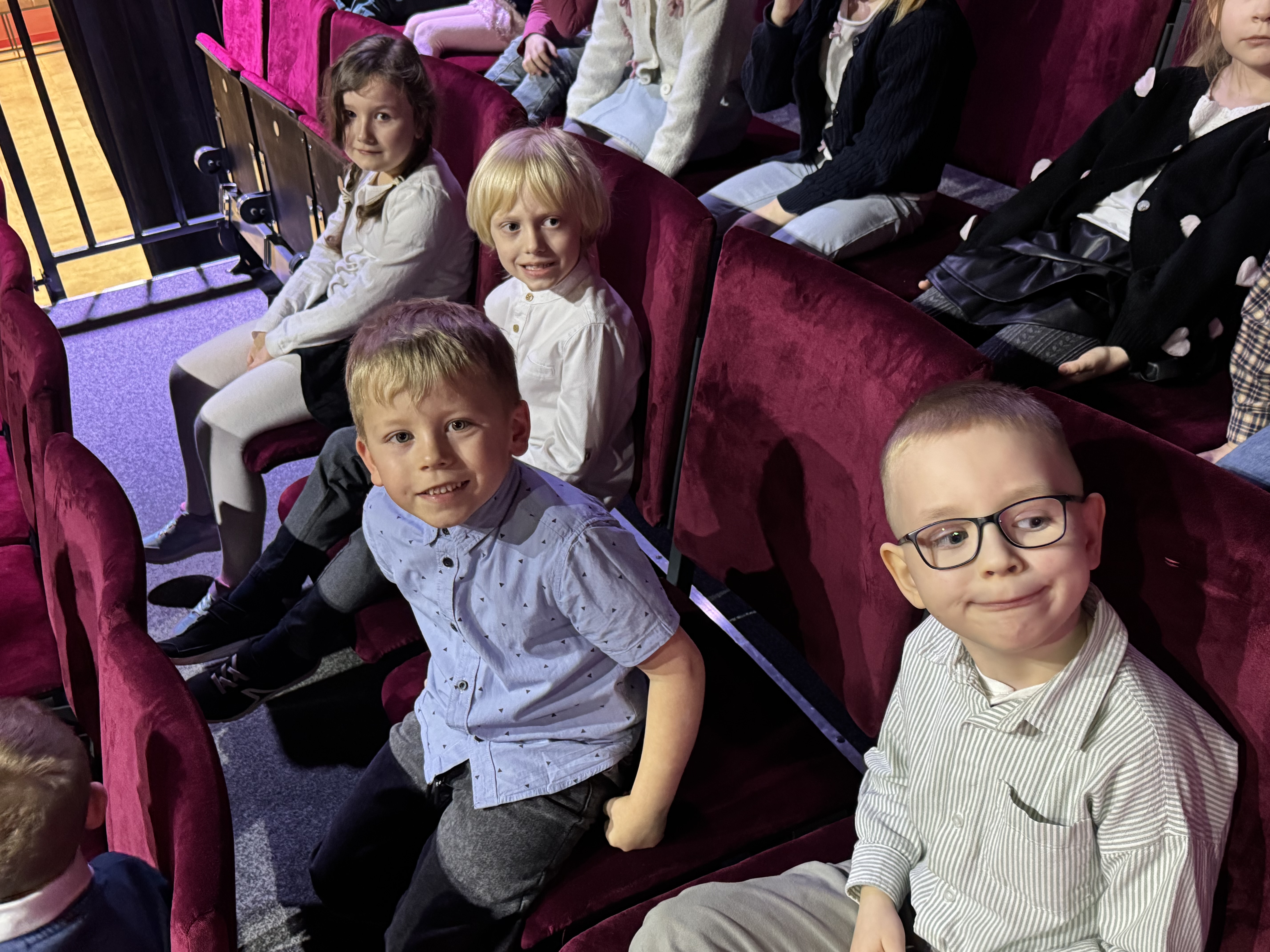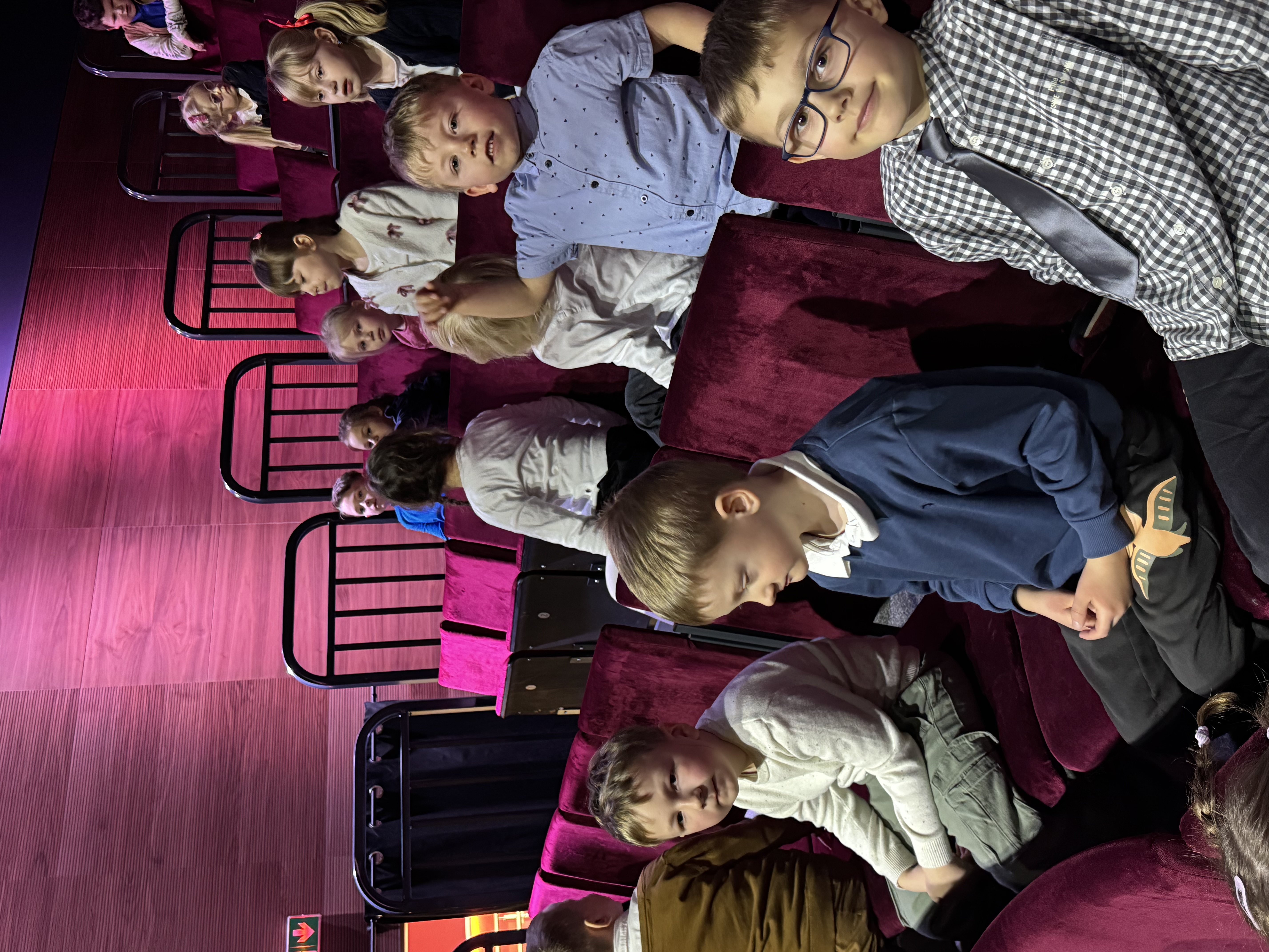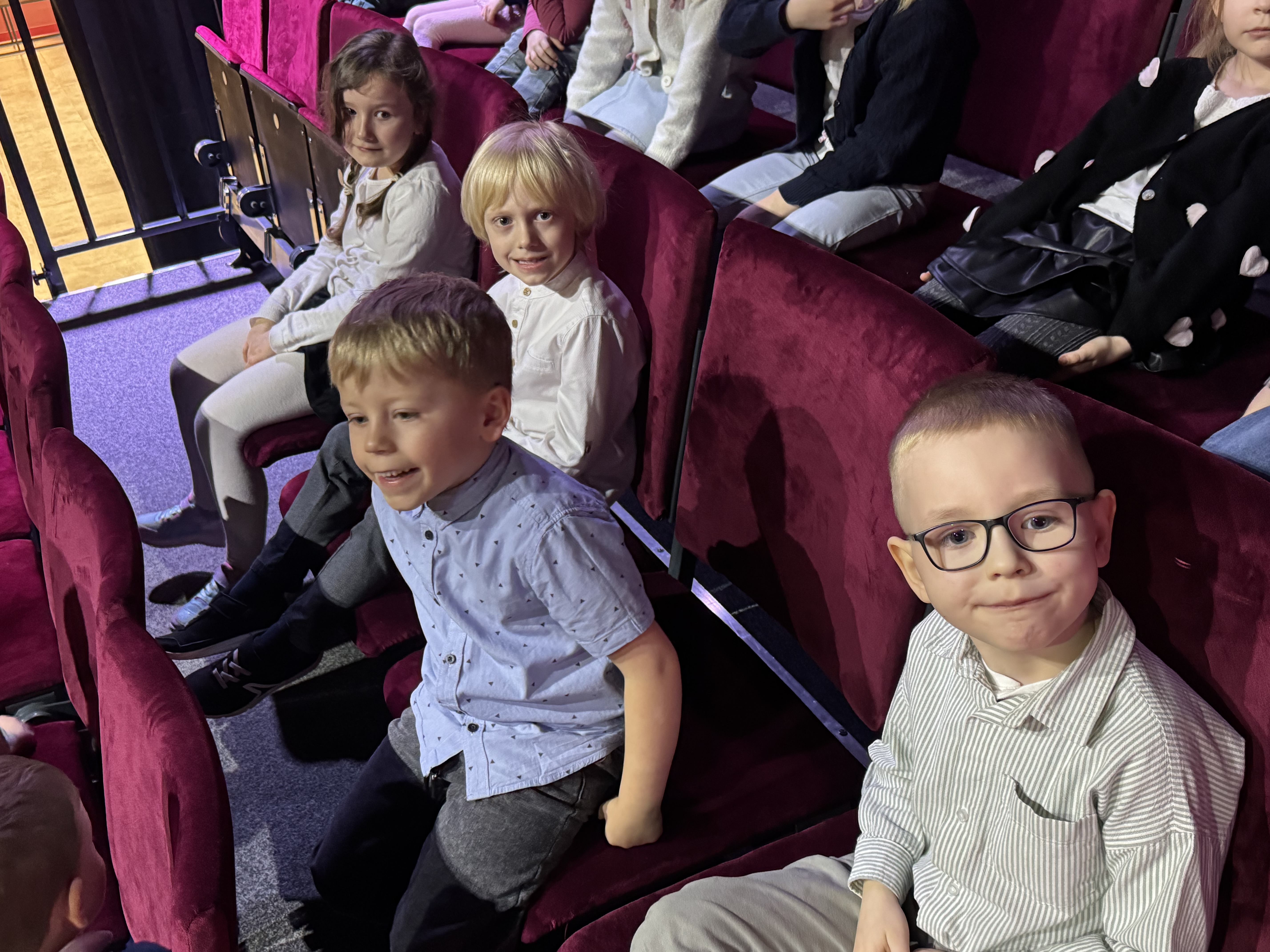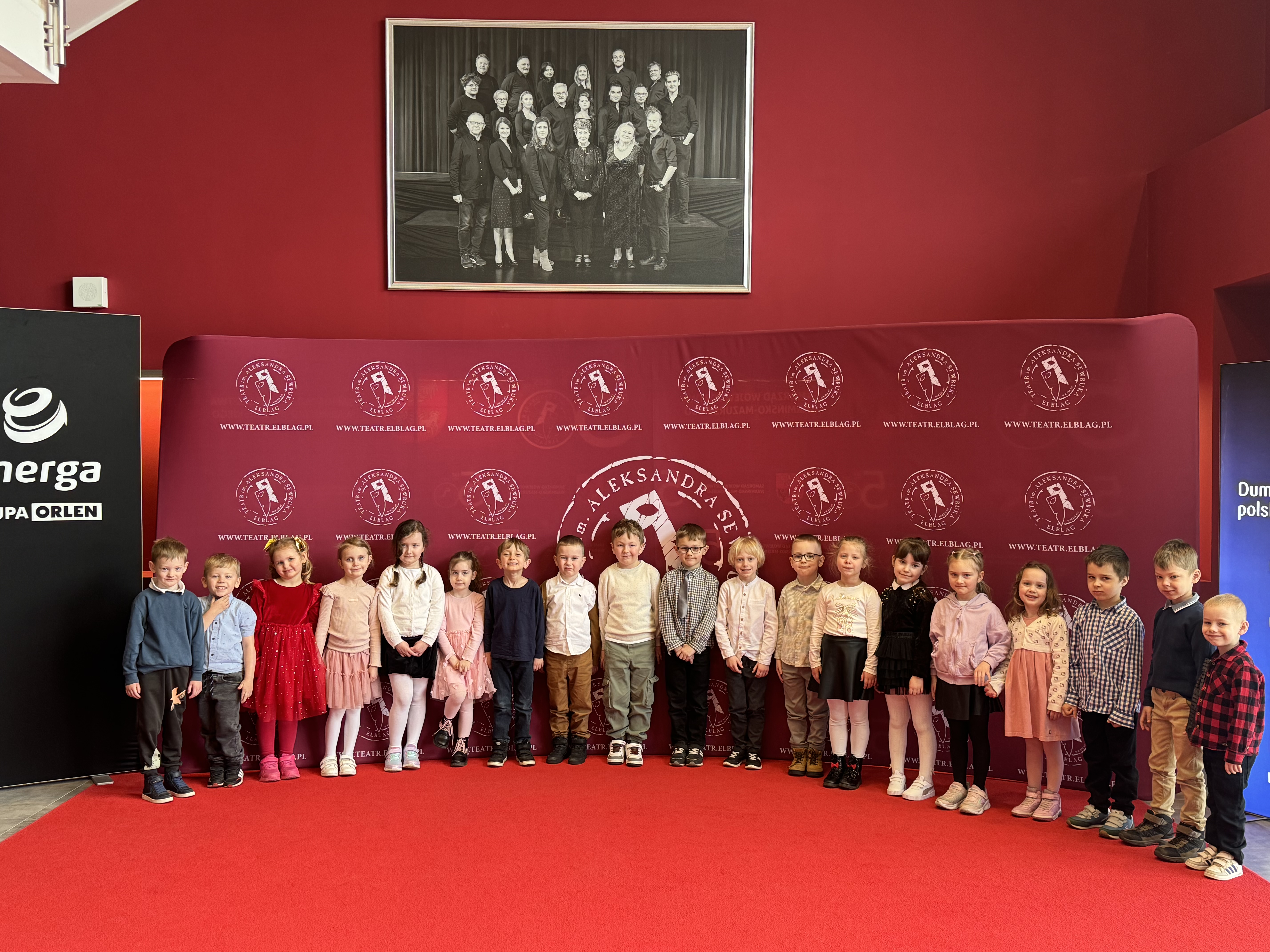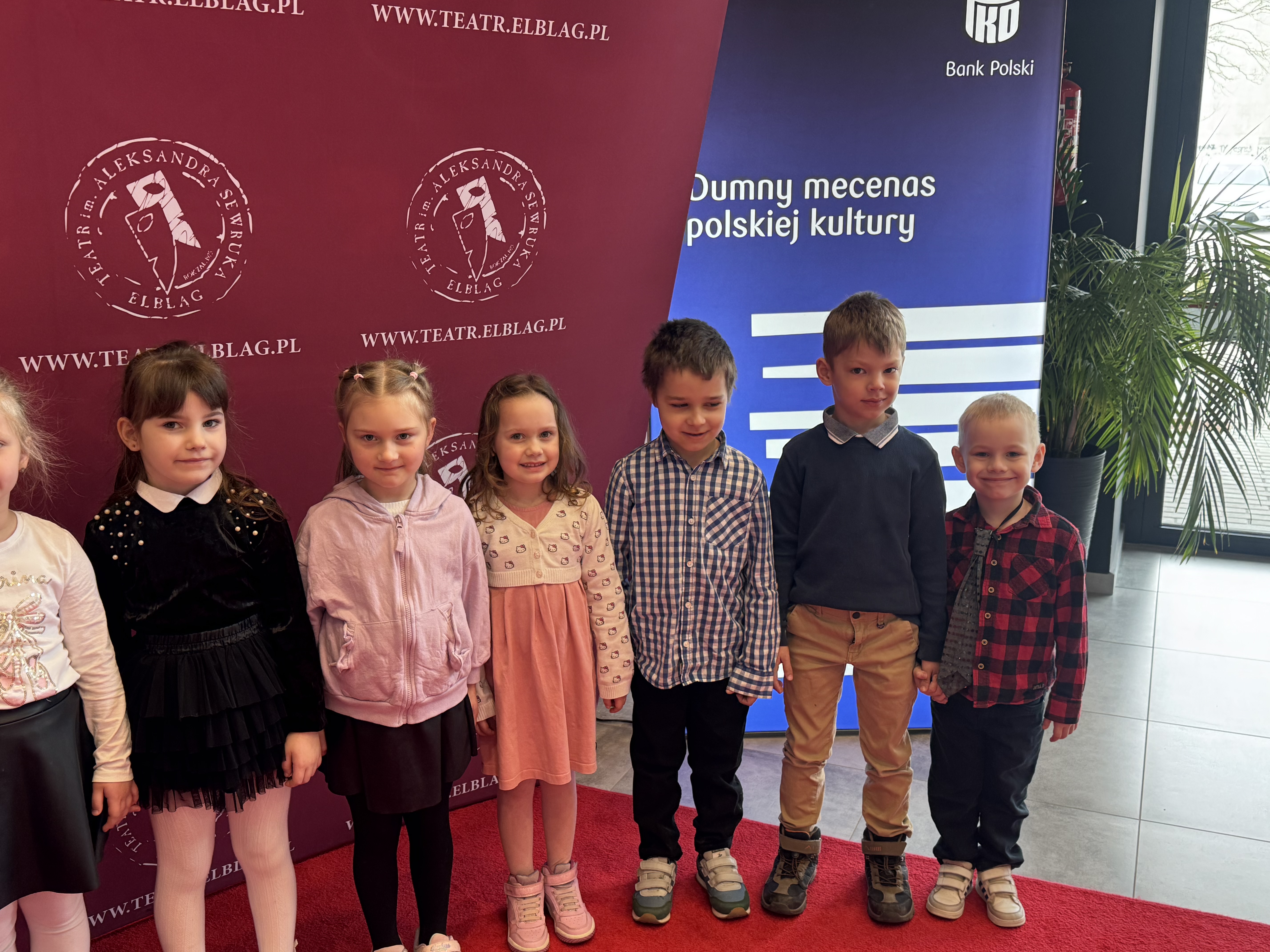 Wyjazd do teatru w Elblągu był dla naszych przedszkolaków wyjątkowym przeżyciem. Dzieci miały okazję obejrzeć spektakl „Koziołek Matołek”, który dostarczył im wielu radości, śmiechu i niezapomnianych wrażeń. Barwna scenografia, ciekawe kostiumy oraz pełna humoru gra aktorów sprawiły, że mali widzowie z ogromnym zainteresowaniem śledzili przygody sympatycznego bohatera.