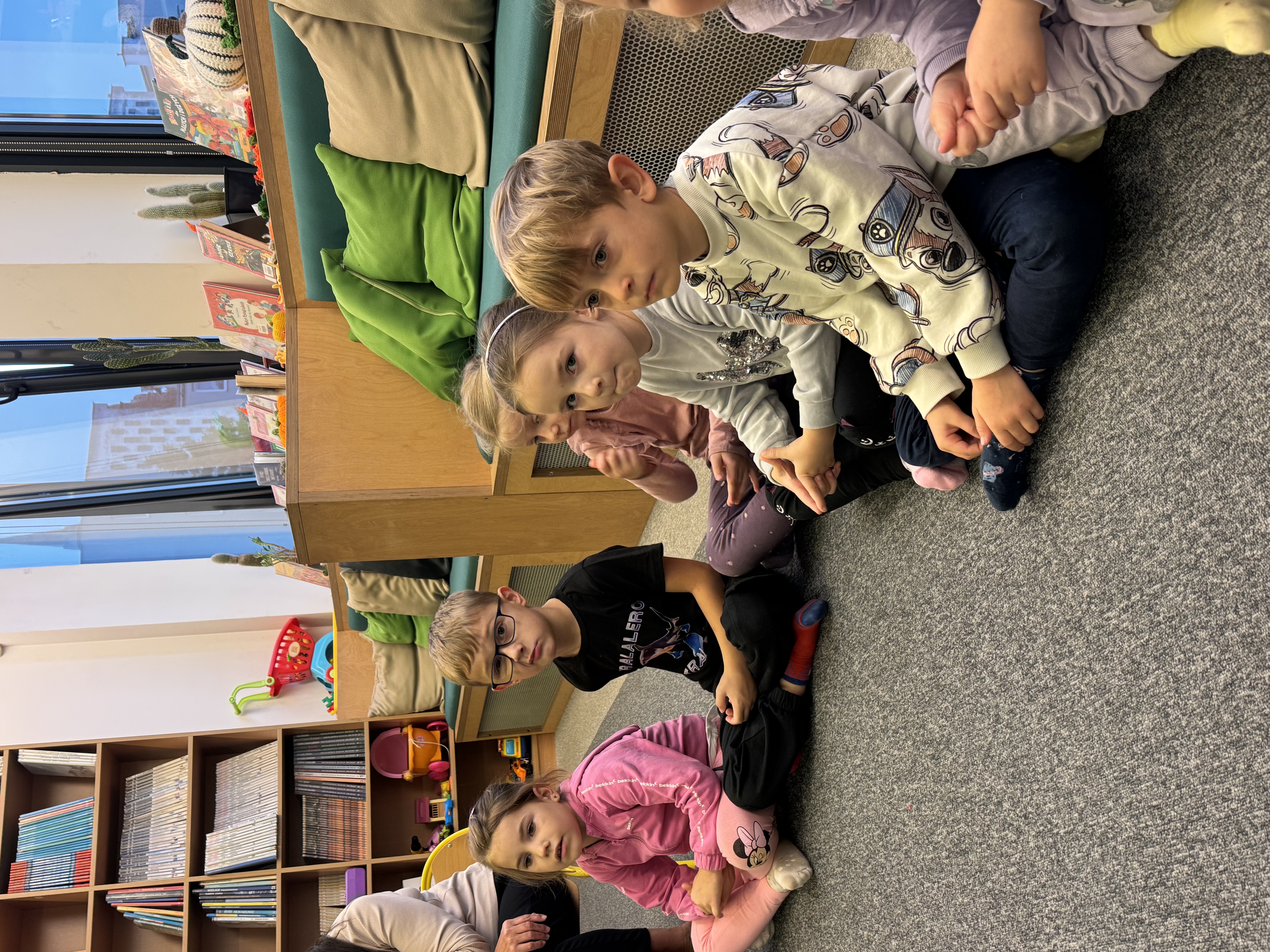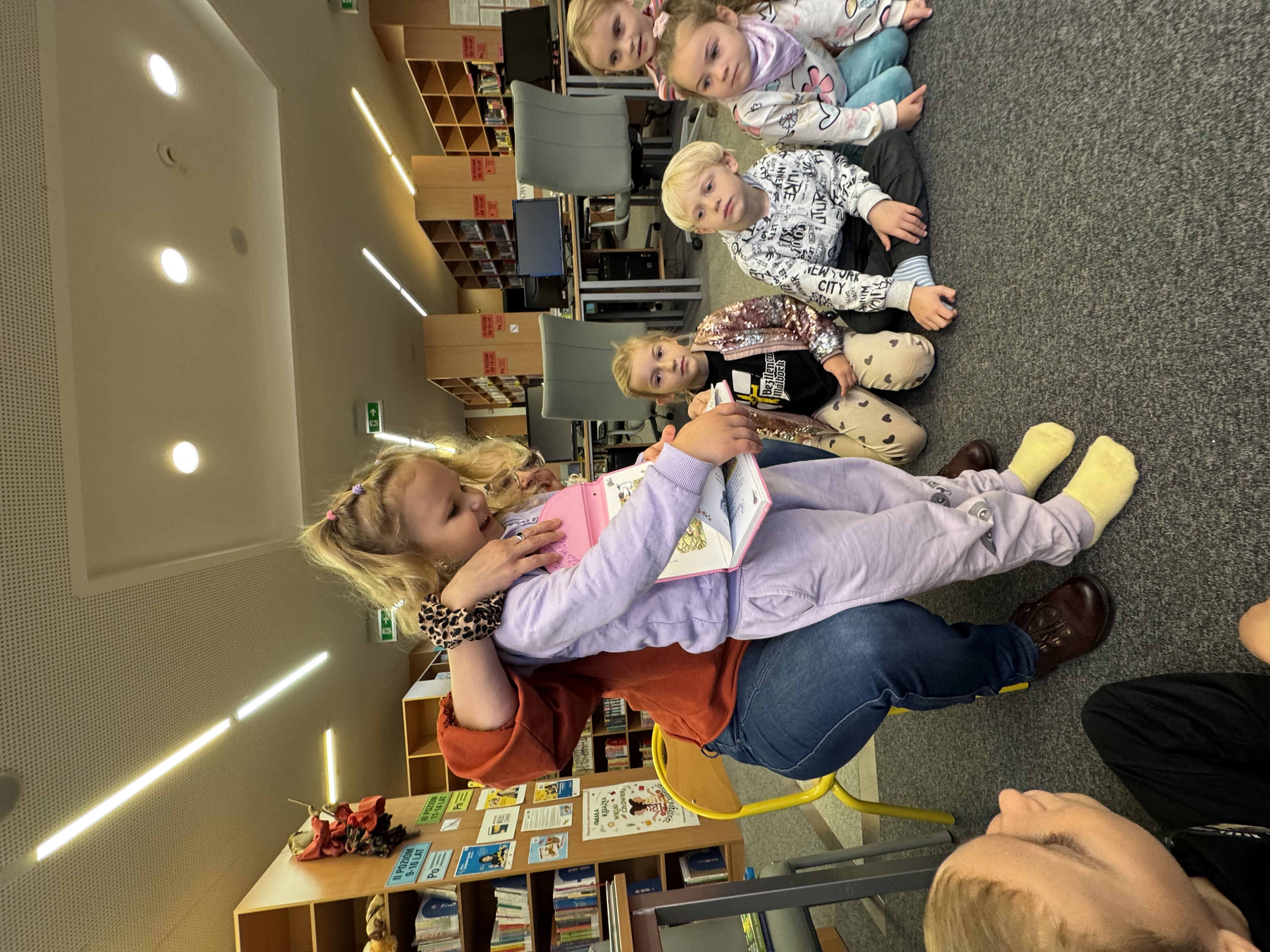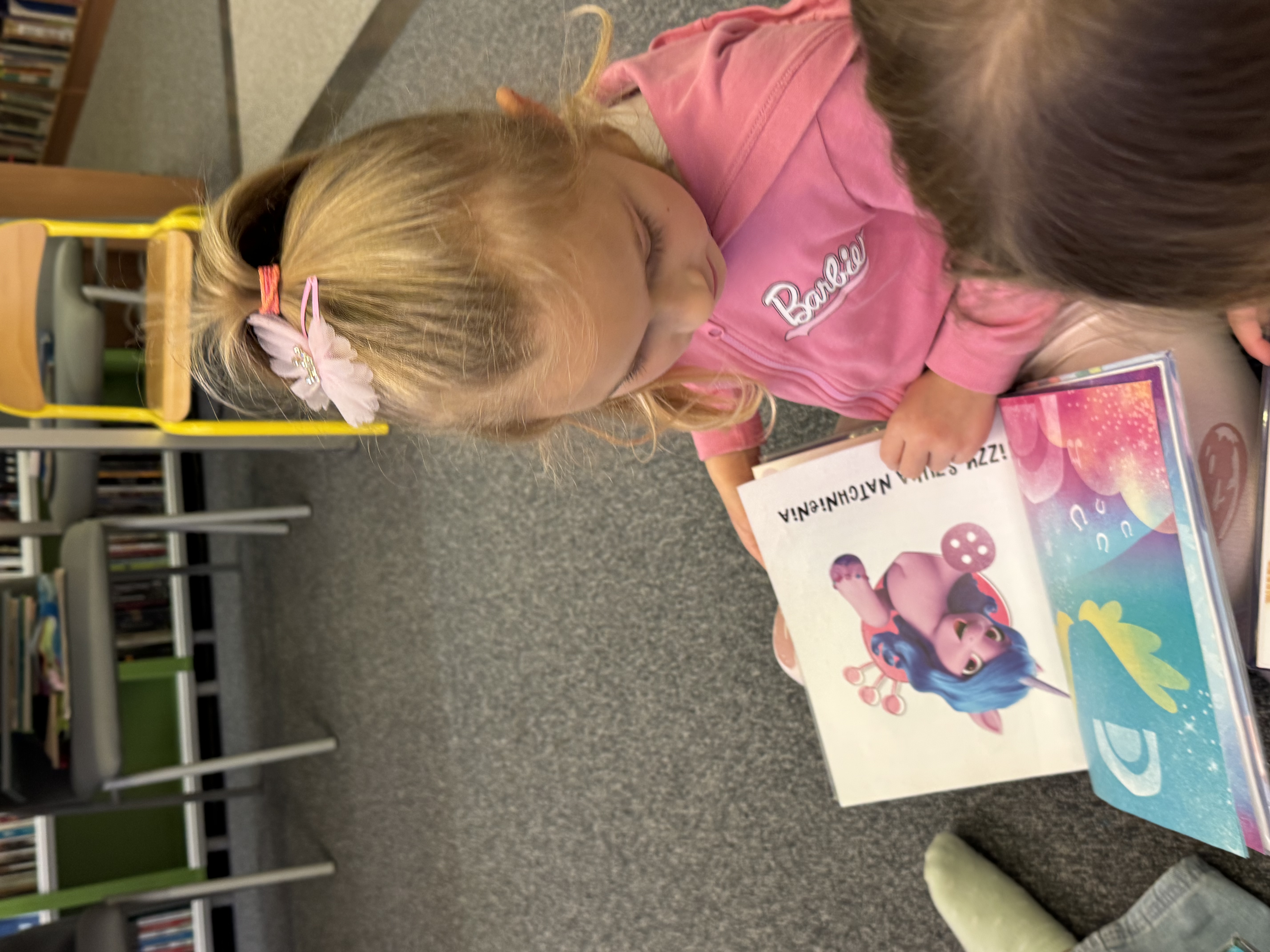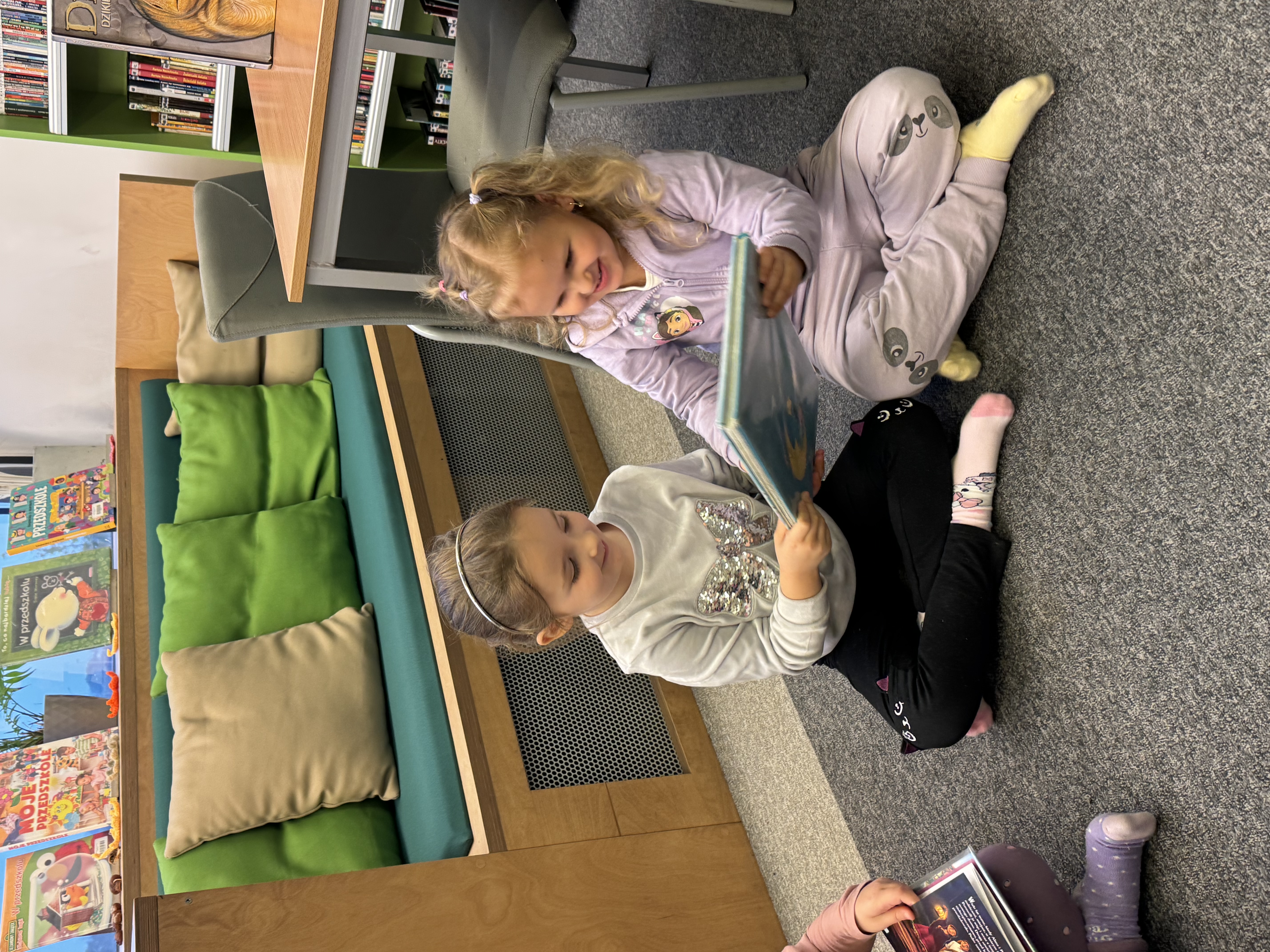 Podczas wizyty wysłuchały ciekawie przeczytanej bajki i zapoznały się z biblioteką oraz jej księgozbiorem.