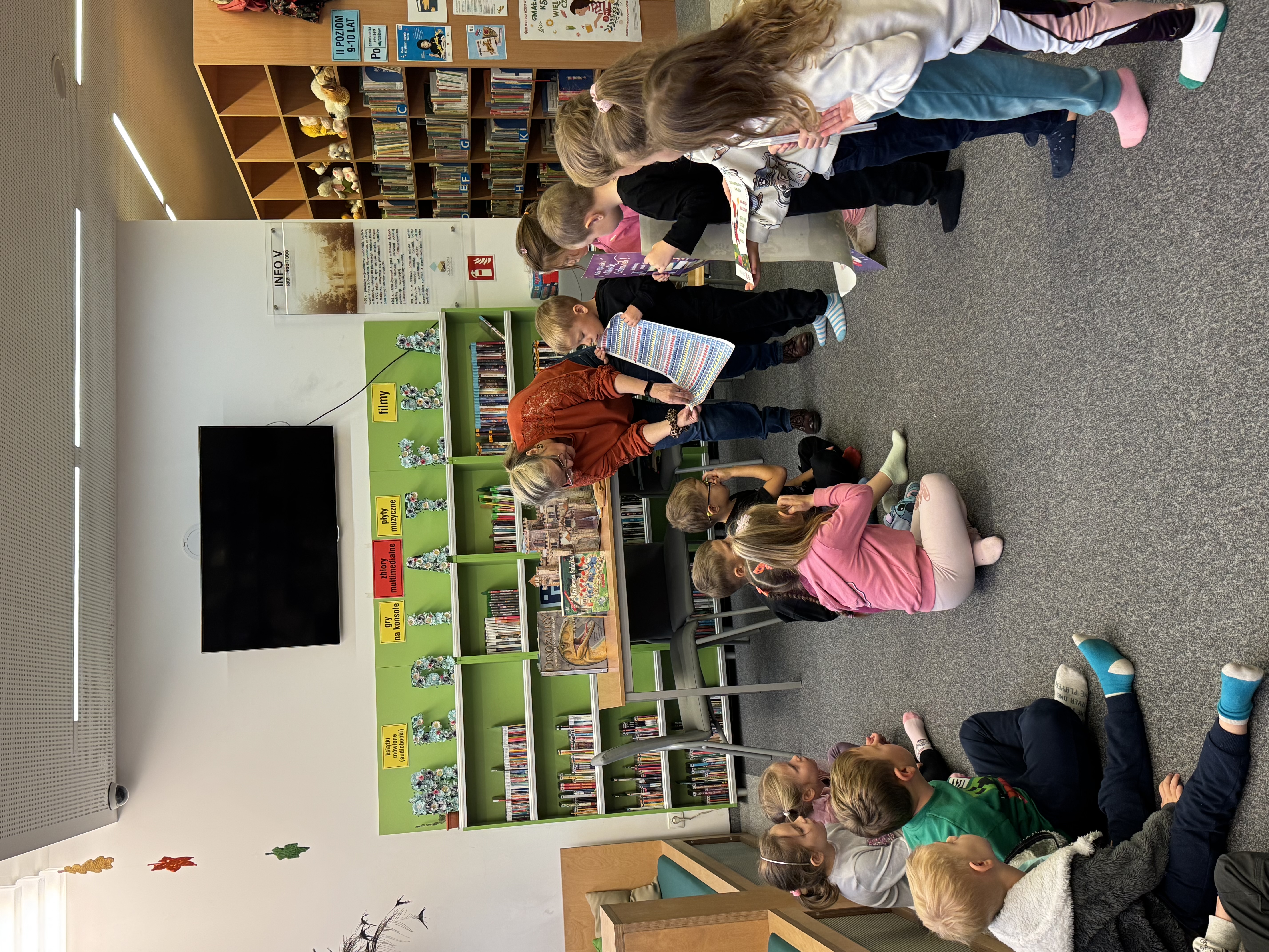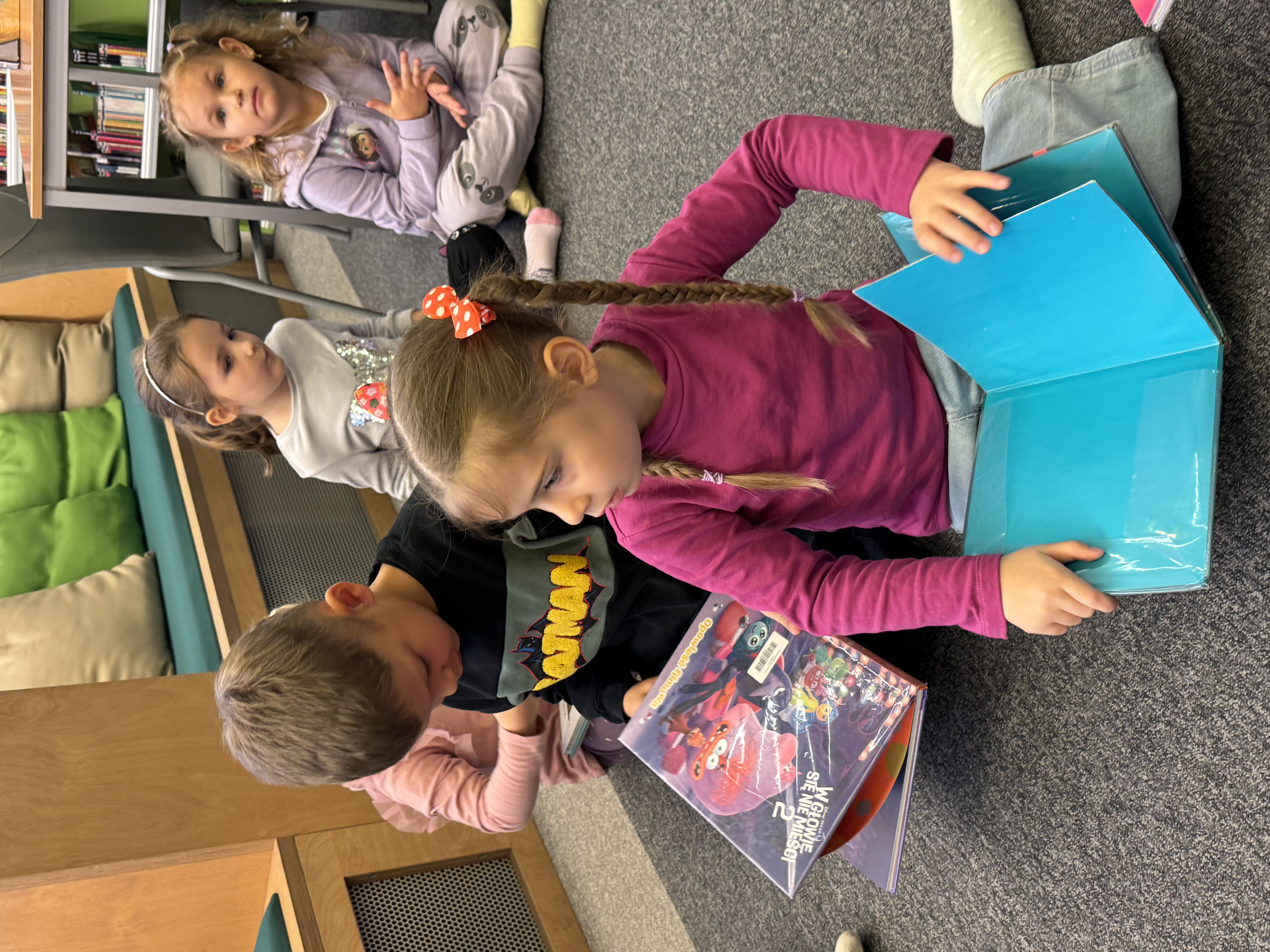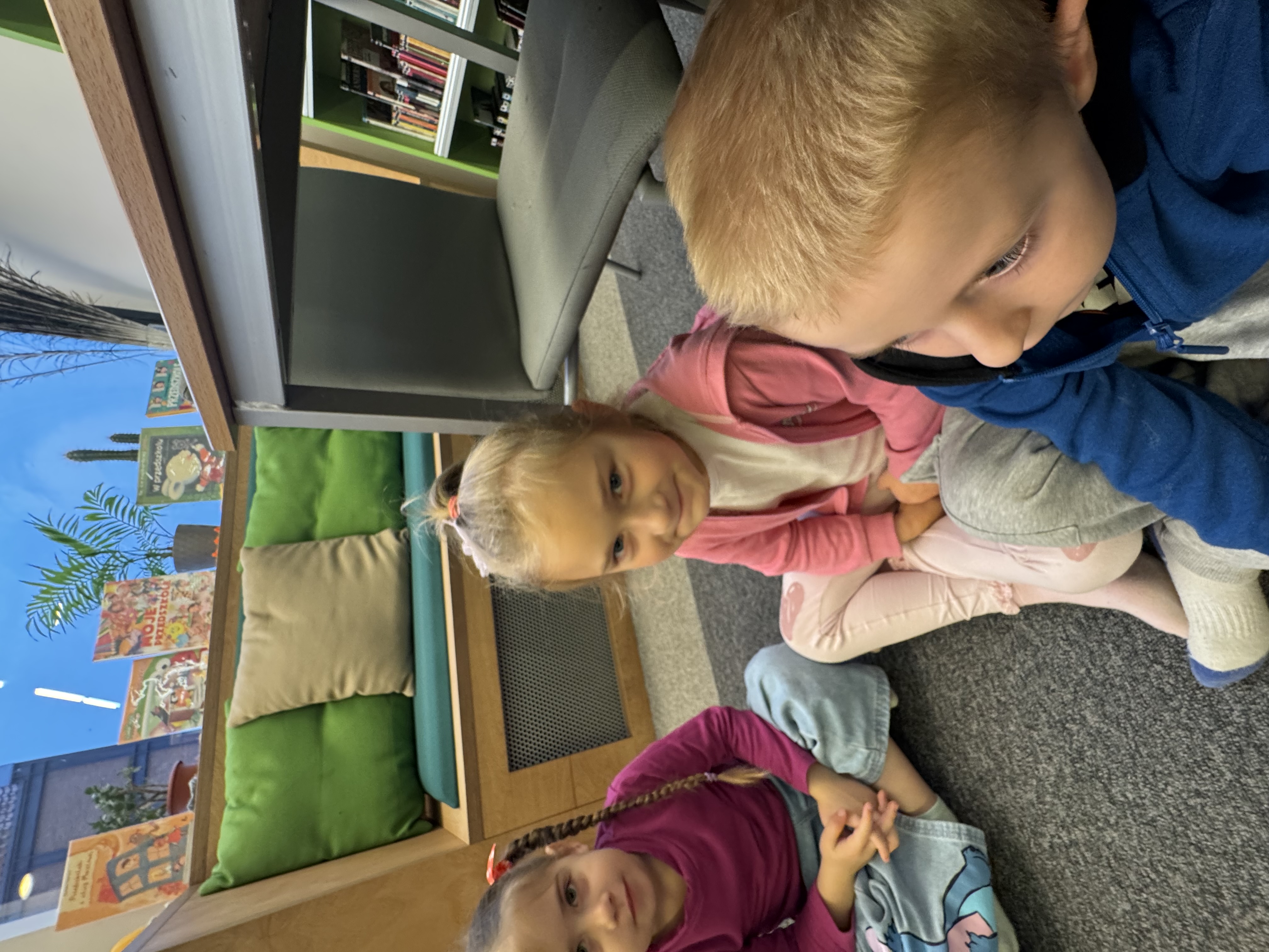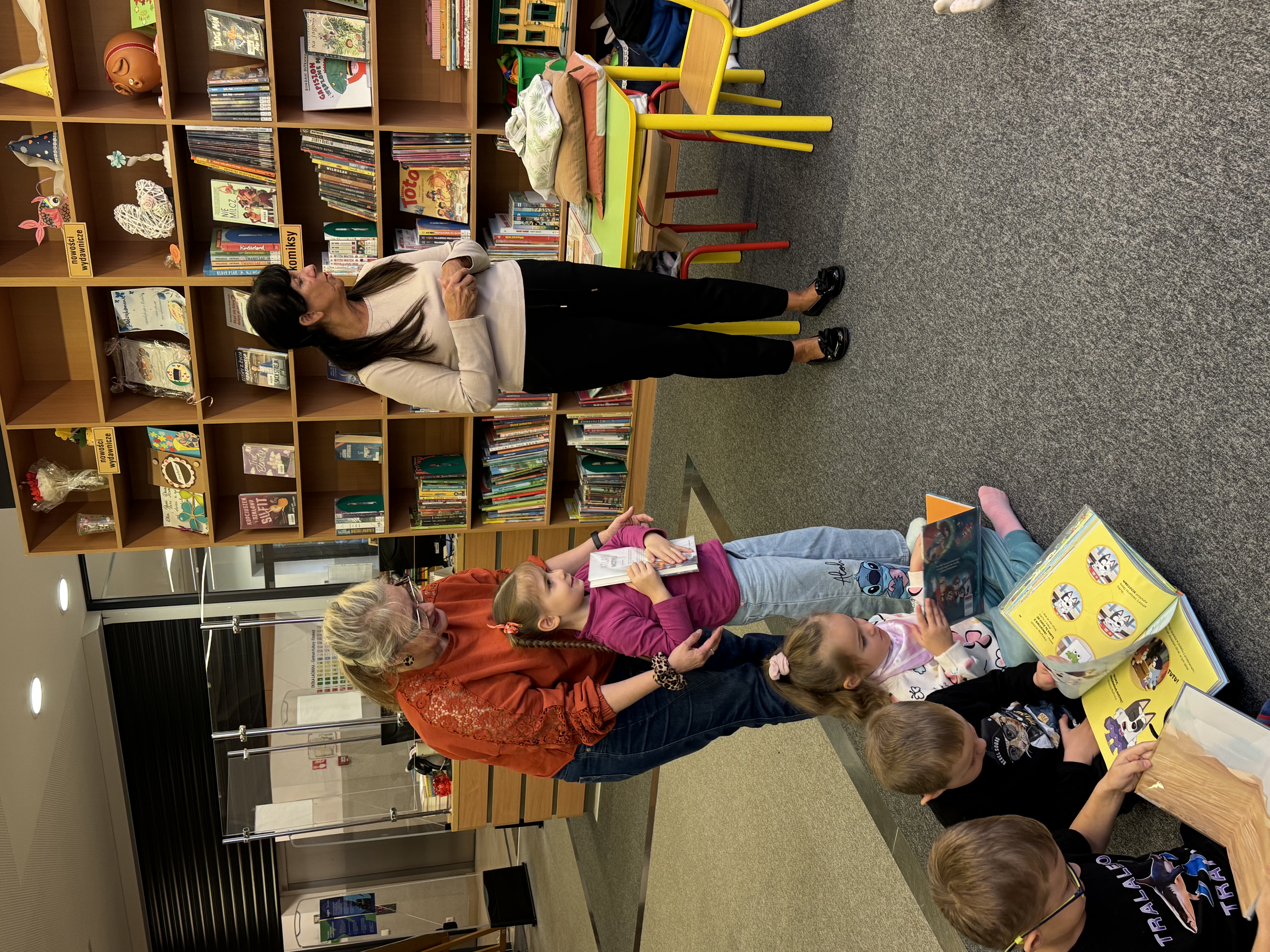 Podczas wizyty wysłuchały ciekawie przeczytanej bajki i zapoznały się z biblioteką oraz jej księgozbiorem.