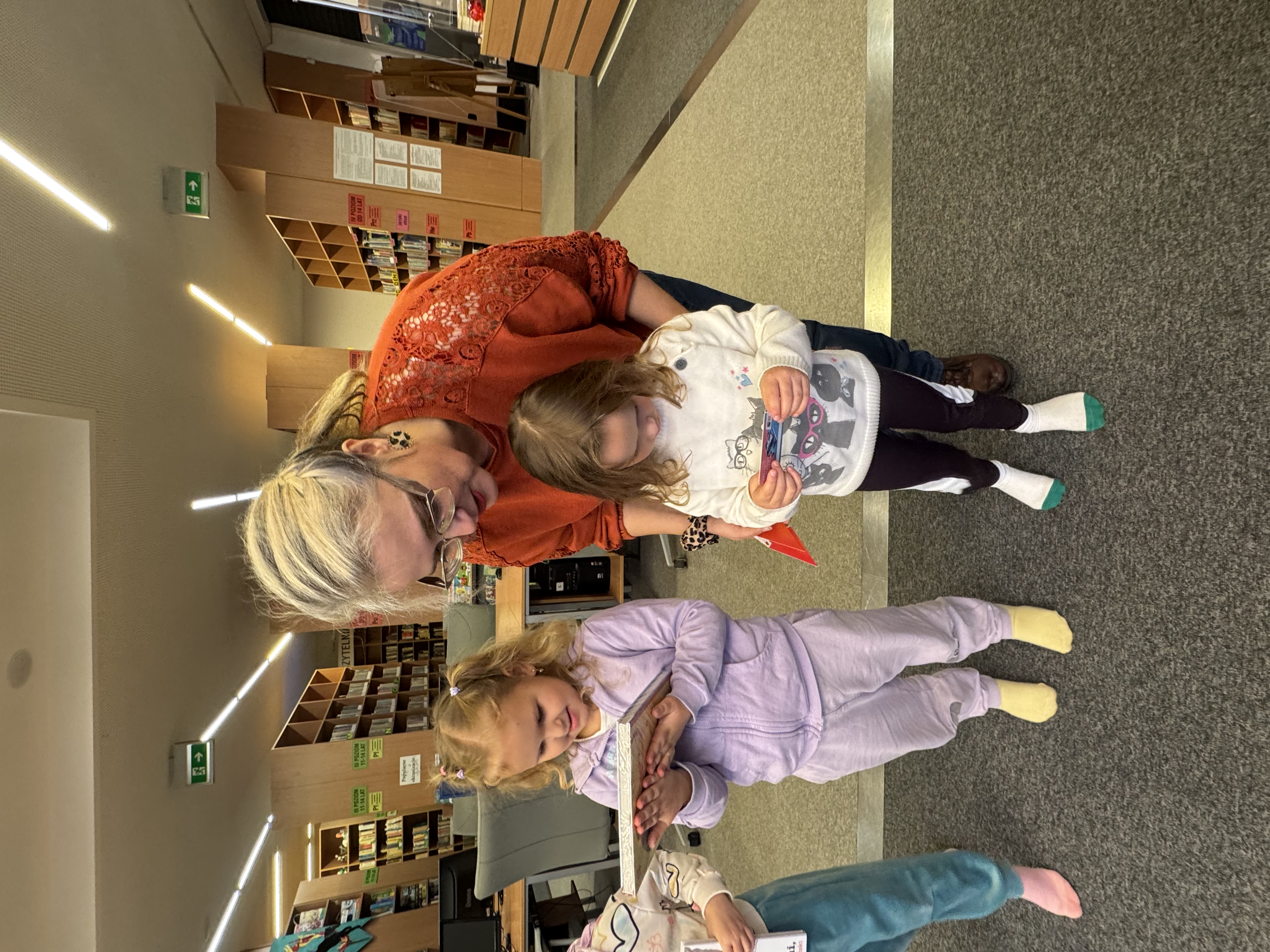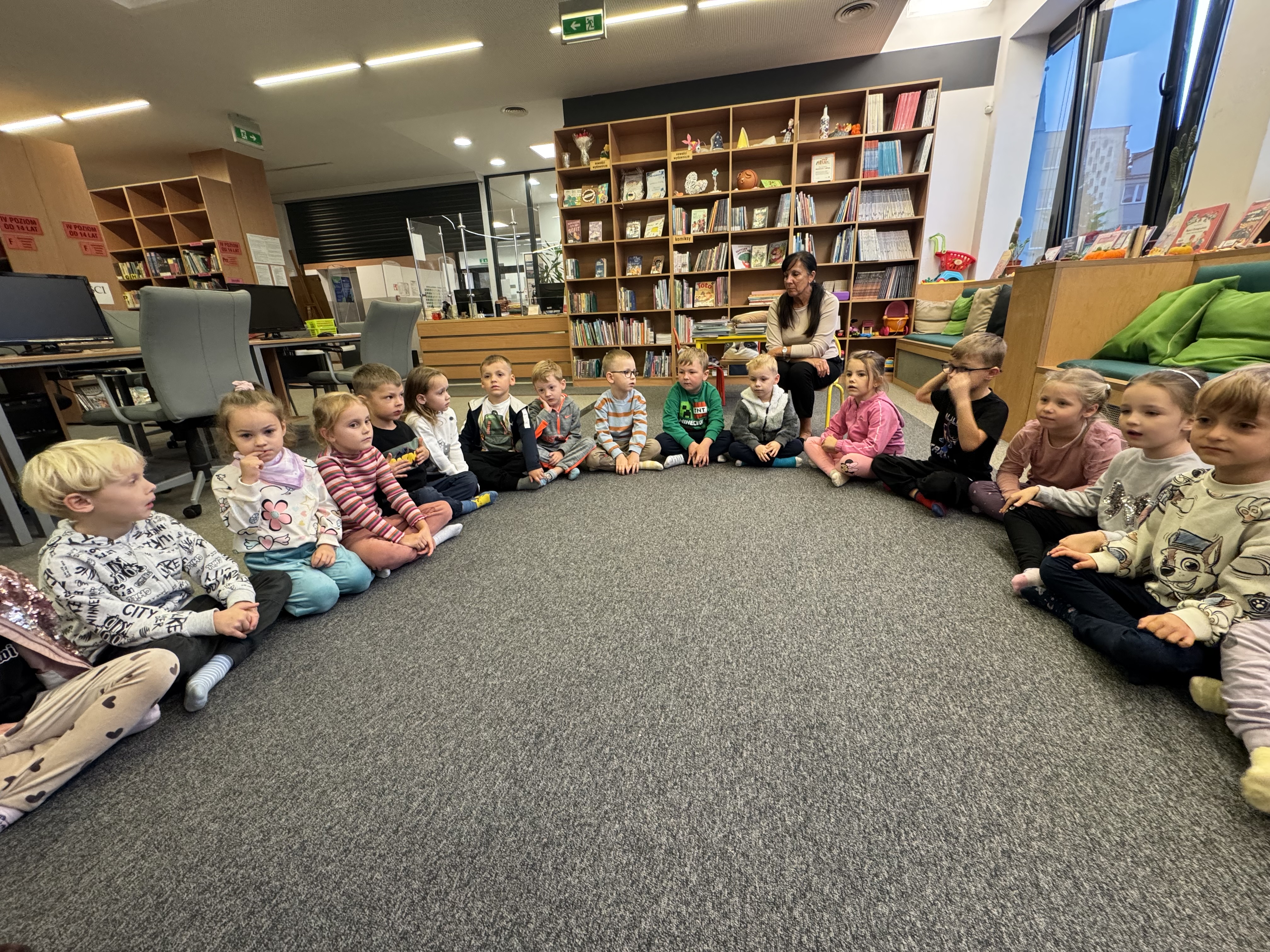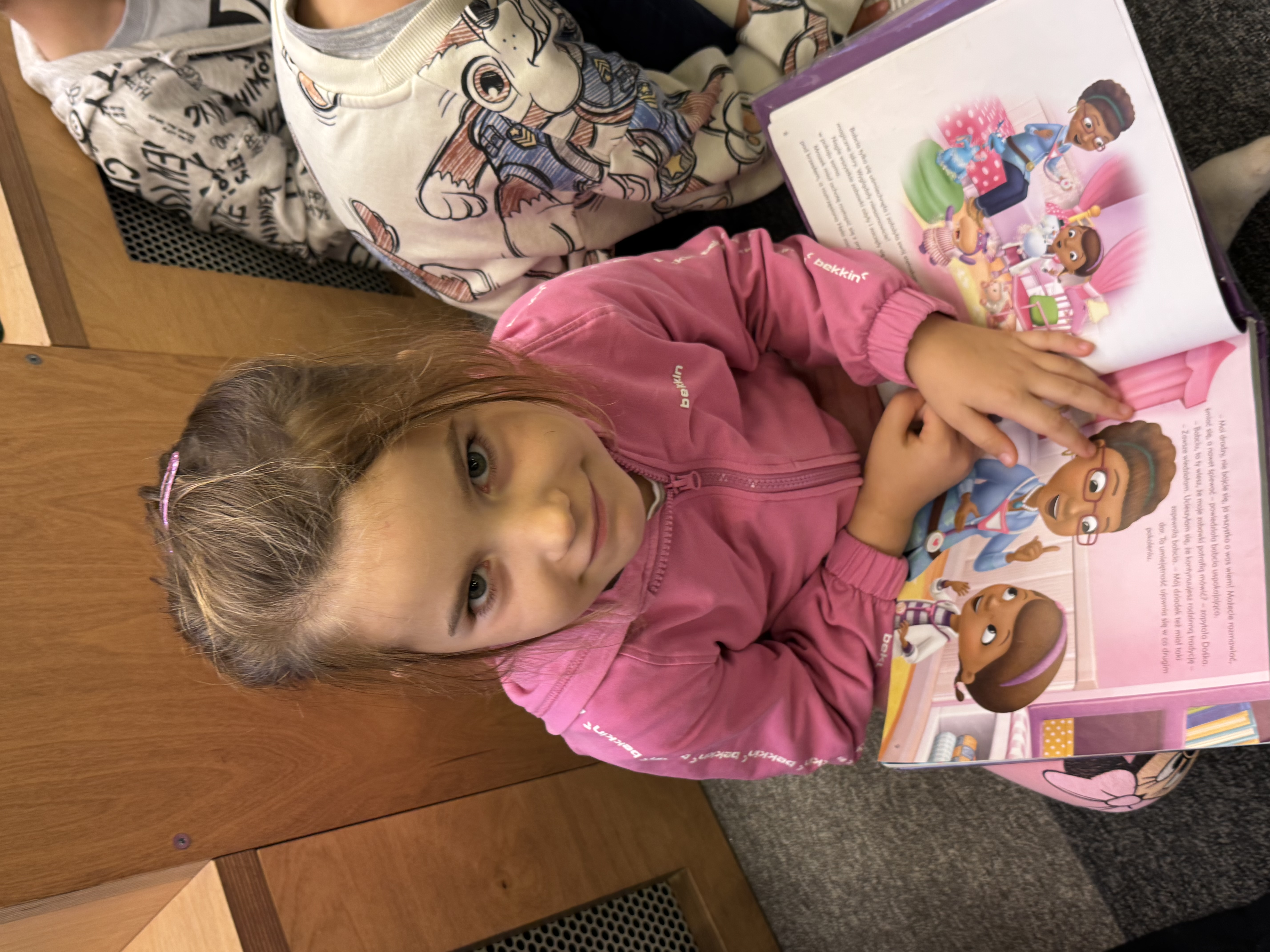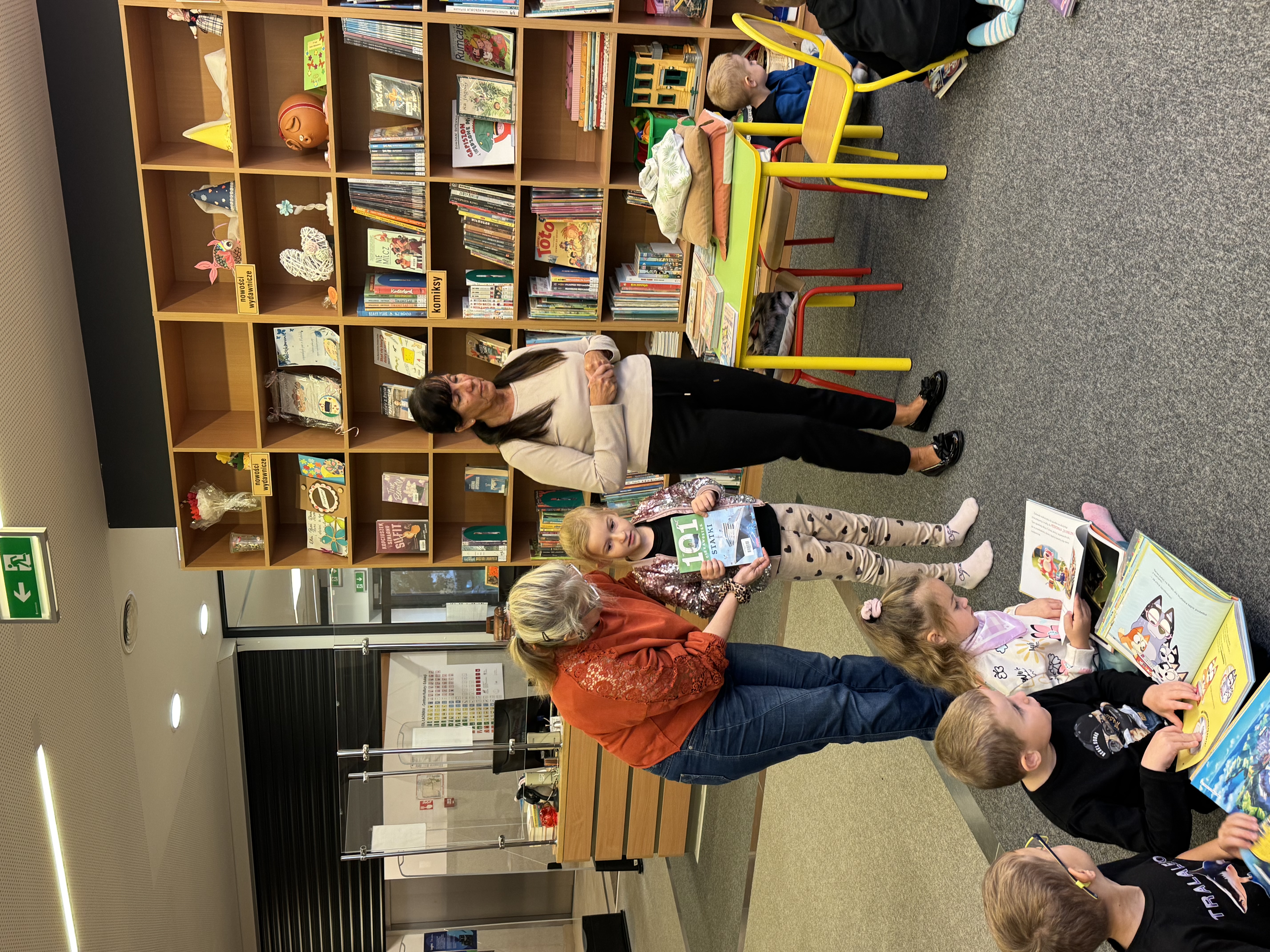 Podczas wizyty wysłuchały ciekawie przeczytanej bajki i zapoznały się z biblioteką oraz jej księgozbiorem.