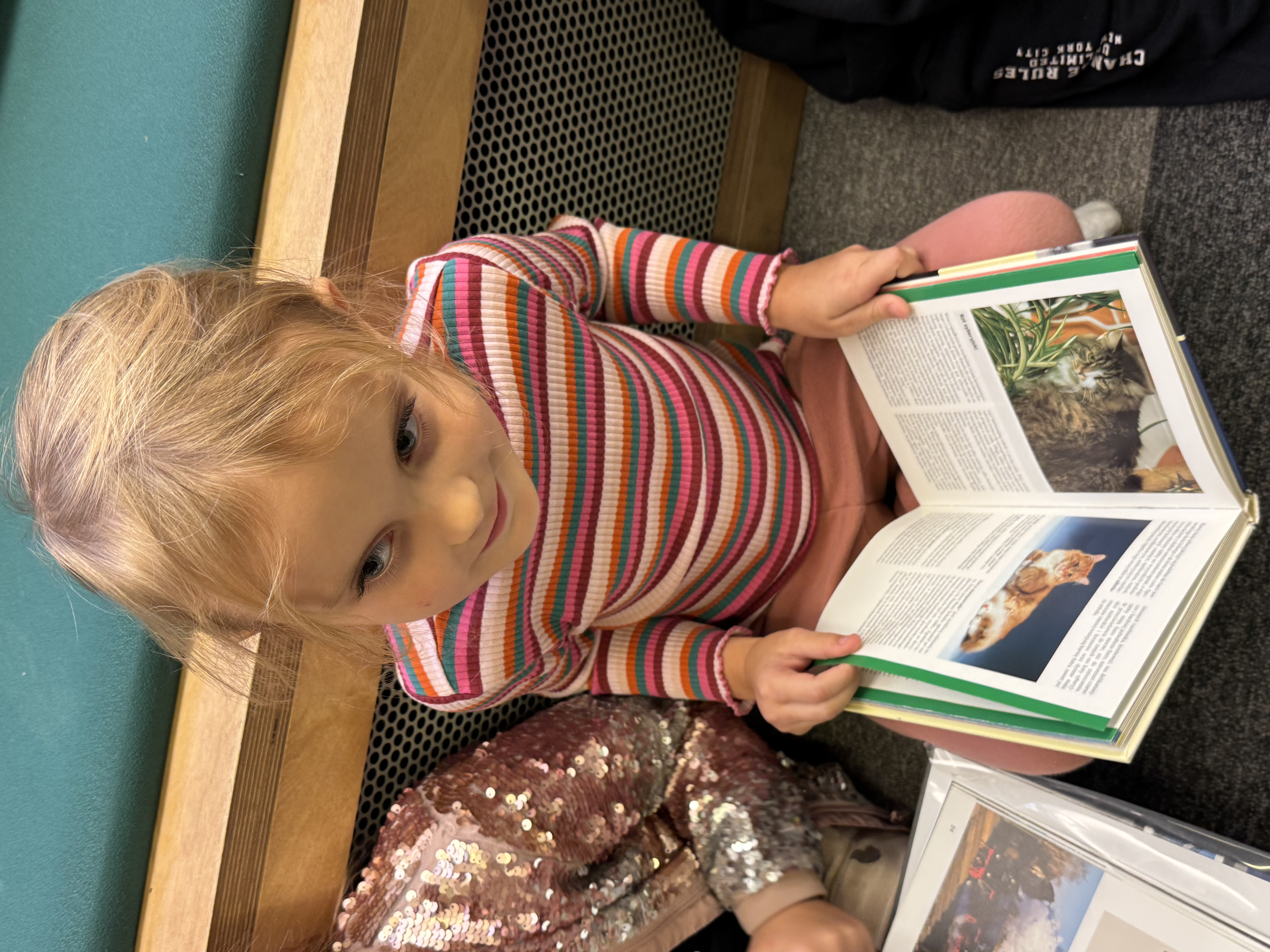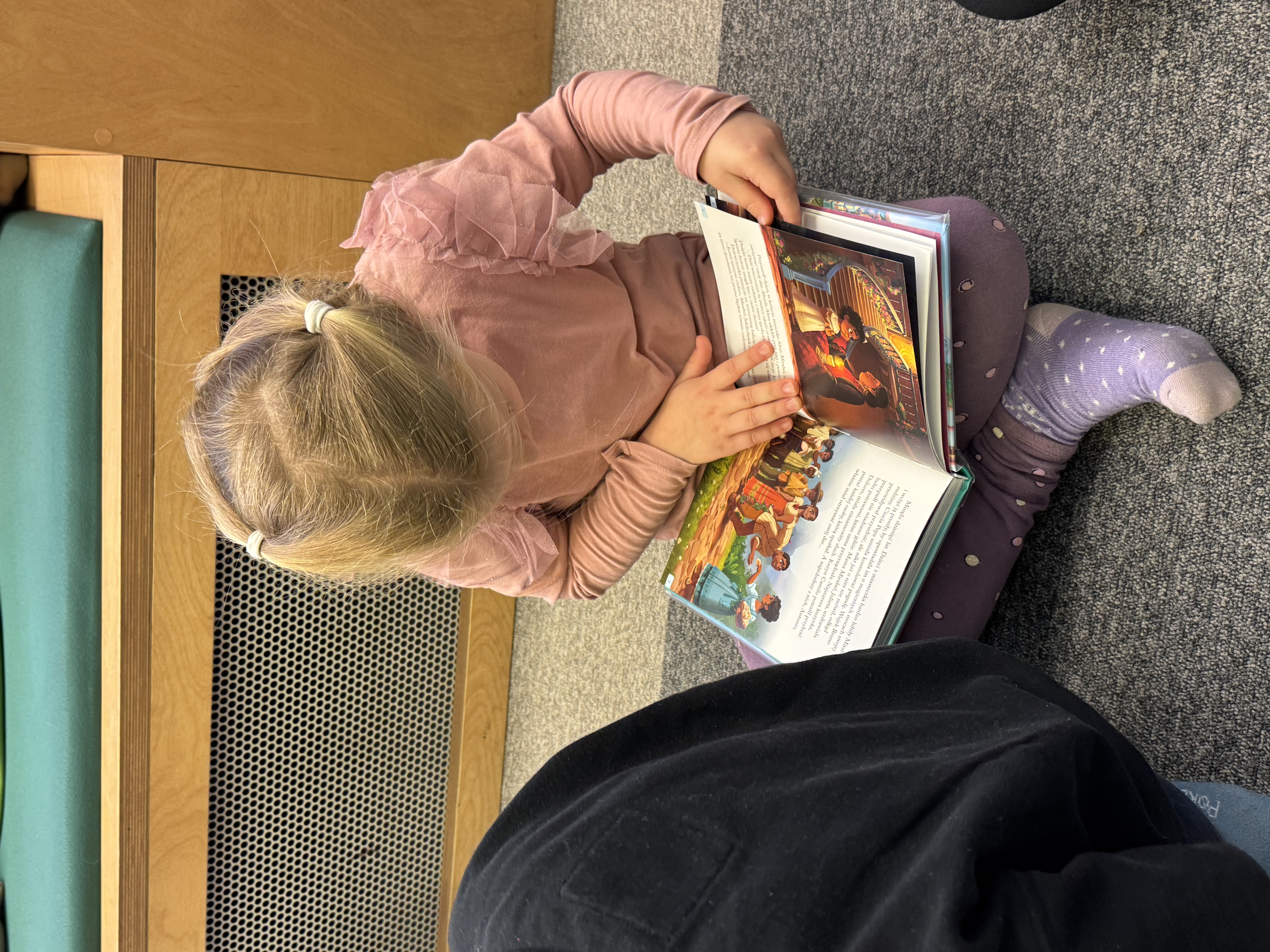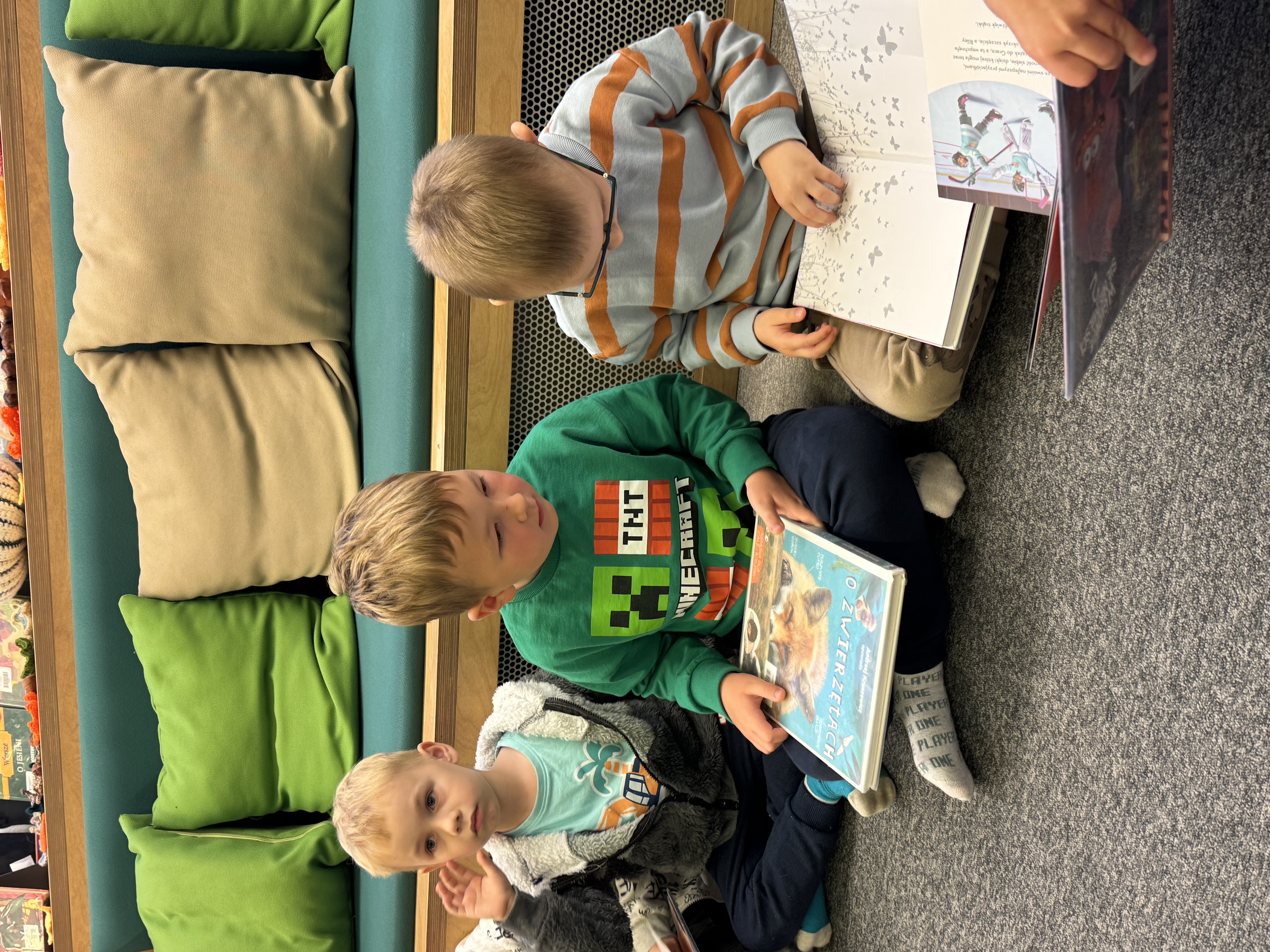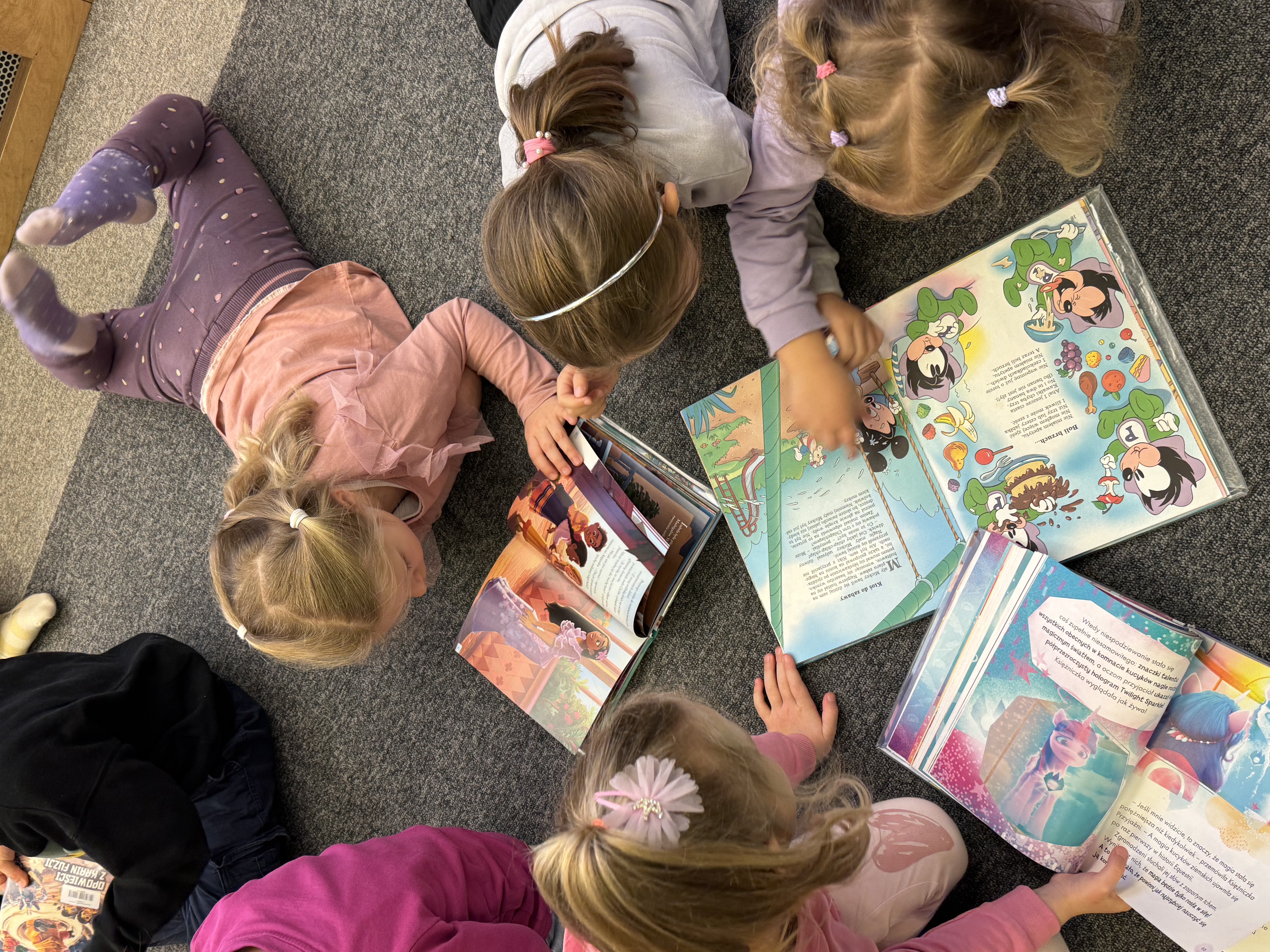 Podczas wizyty wysłuchały ciekawie przeczytanej bajki i zapoznały się z biblioteką oraz jej księgozbiorem.